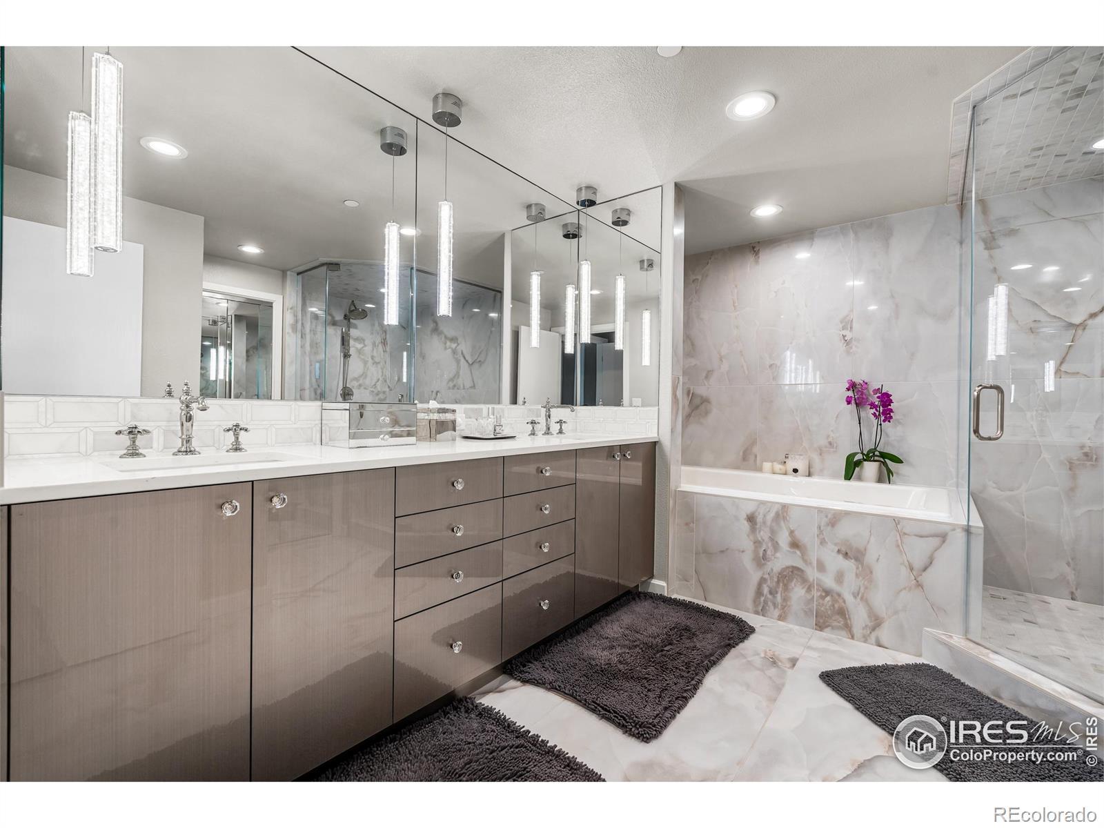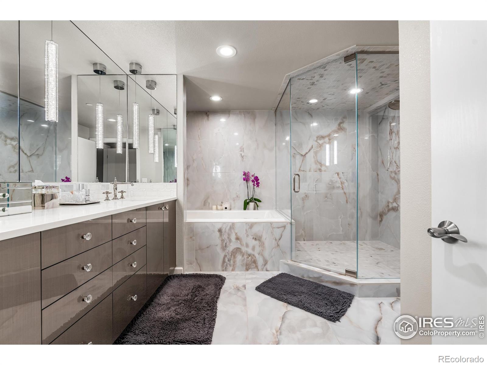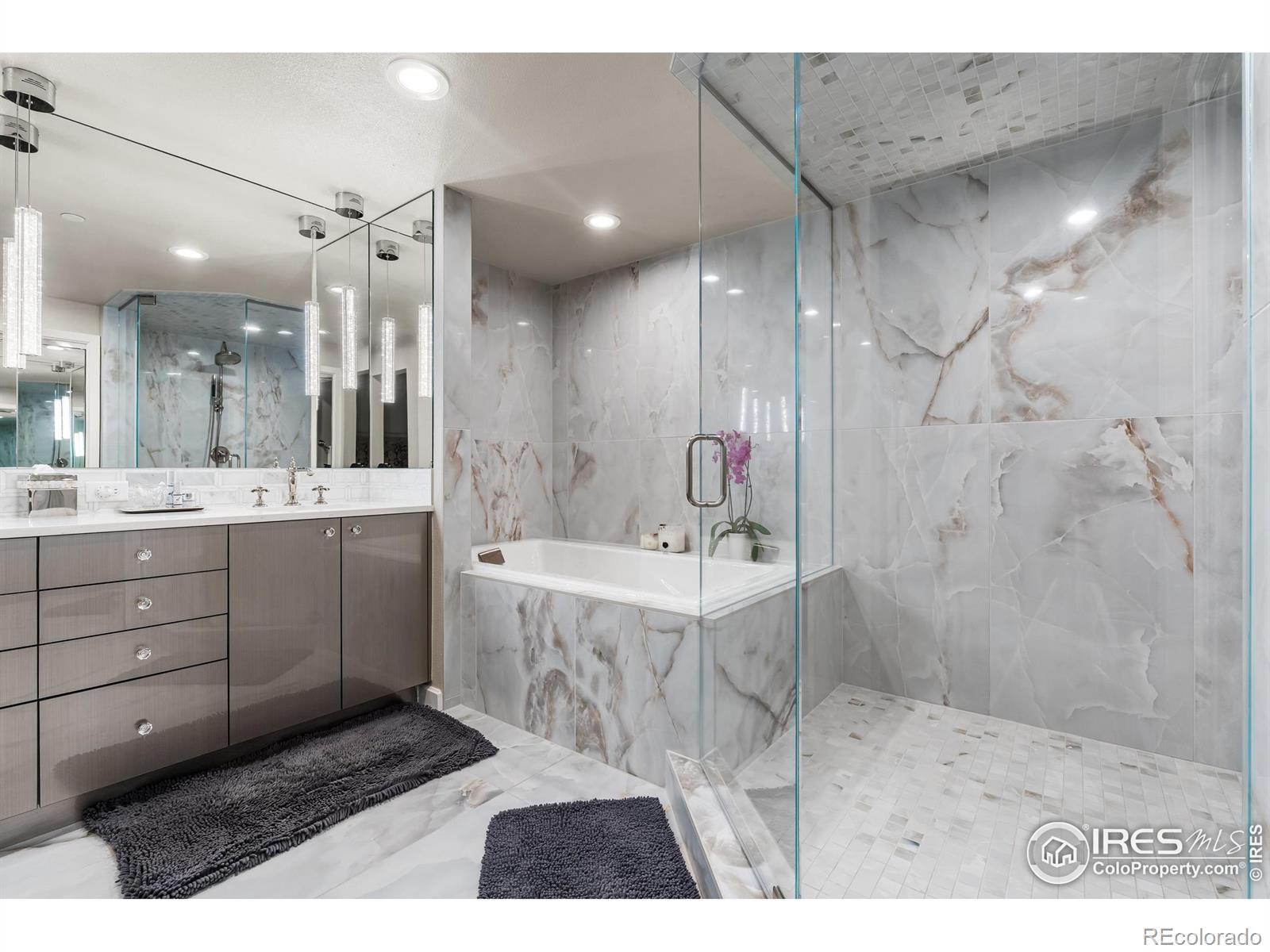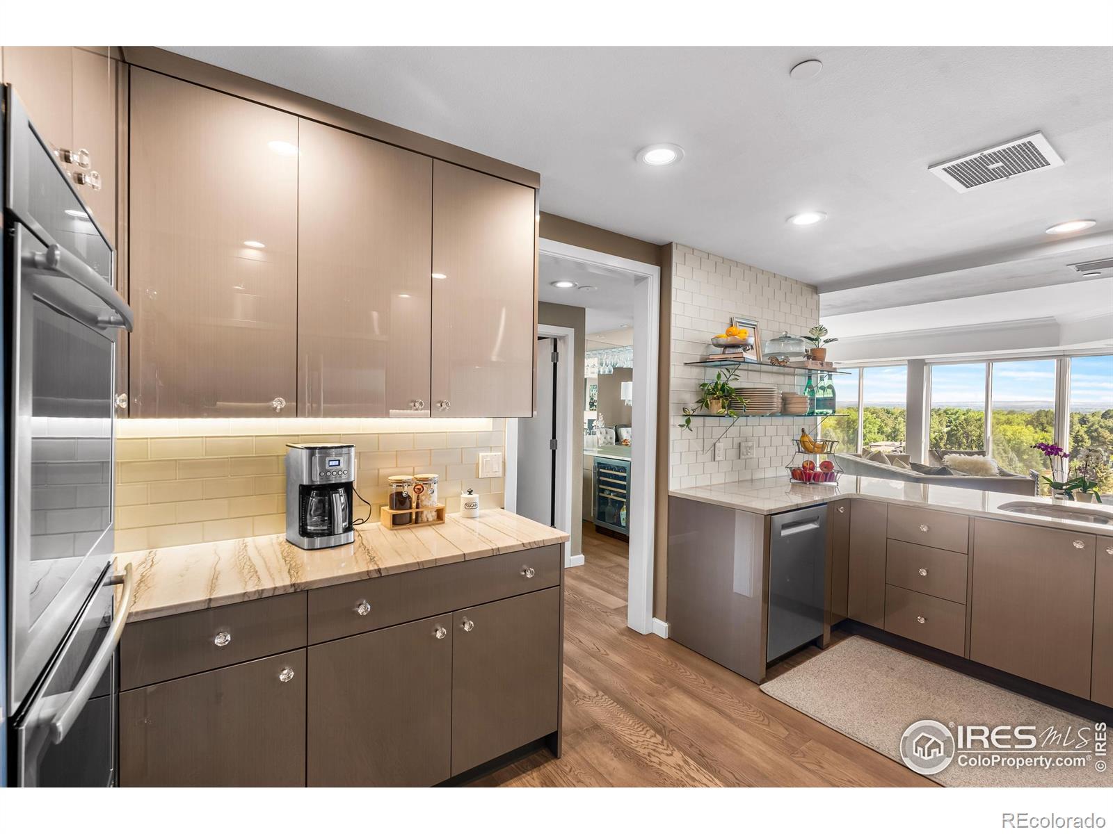Welcome to resort-style sophistication in the heart of Cherry Hills. Experience comfort, elegance, and ease in this rare southeast-corner residence at the esteemed Waterford Condominiums-an address synonymous with refined resort living and unparalleled views. Thoughtfully created by combining two spacious units, this 2-bedroom, 3-bath home offers an expansive, open-concept layout framed by dramatic floor-to-ceiling windows showcasing breathtaking mountain and city skyline vistas. The gourmet kitchen dazzles with White Macaubas quartzite countertops, Jenn-Air appliances, Bosch dishwasher, Kohler Artifacts faucet, custom rollouts, cushion-close cabinetry, and a perfectly organized pantry. For entertaining, a dedicated wet bar with wine refrigerator adds a touch of sophistication. Wide-plank European White Oak flooring flows throughout, leading to two private bedroom suites-each featuring a spa-inspired 5-piece bath with porcelain tile and deep Kohler soaking tubs. The primary suite boasts a boutique-style walk-in closet designed by Closet Factory, complete with built-in peninsula, quartz countertops, tailored storage, and a hidden ironing board. Waterford's resort-style amenities include 24-hour staffed security, three deeded secured parking spaces in the heated underground garage, a large storage room, fitness center, indoor/outdoor pool, tennis and pickleball courts, clubhouse with gathering spaces and catering kitchen, plus guest accommodations. Located within Cherry Creek School District, you're moments from Cherry Creek, the DTC, scenic paths, parks, and fine dining. Welcome to a lifestyle of distinction, comfort, and timeless appeal.