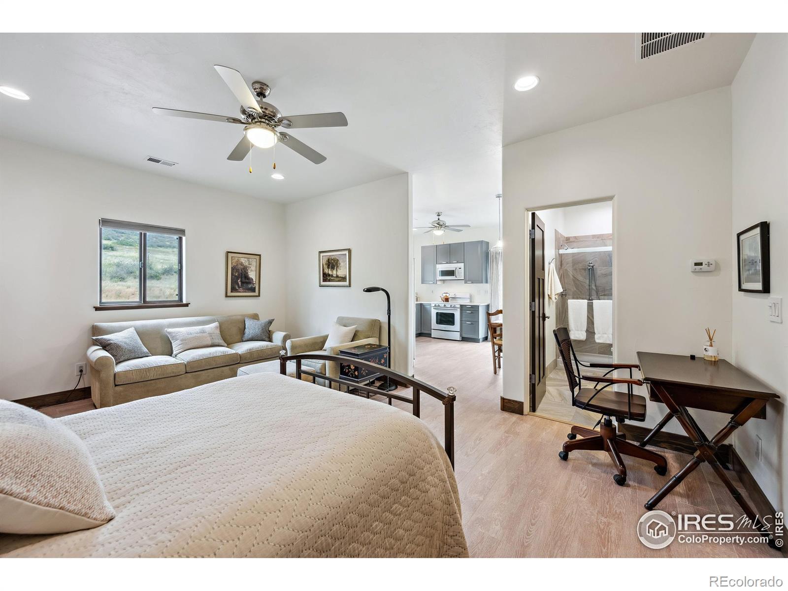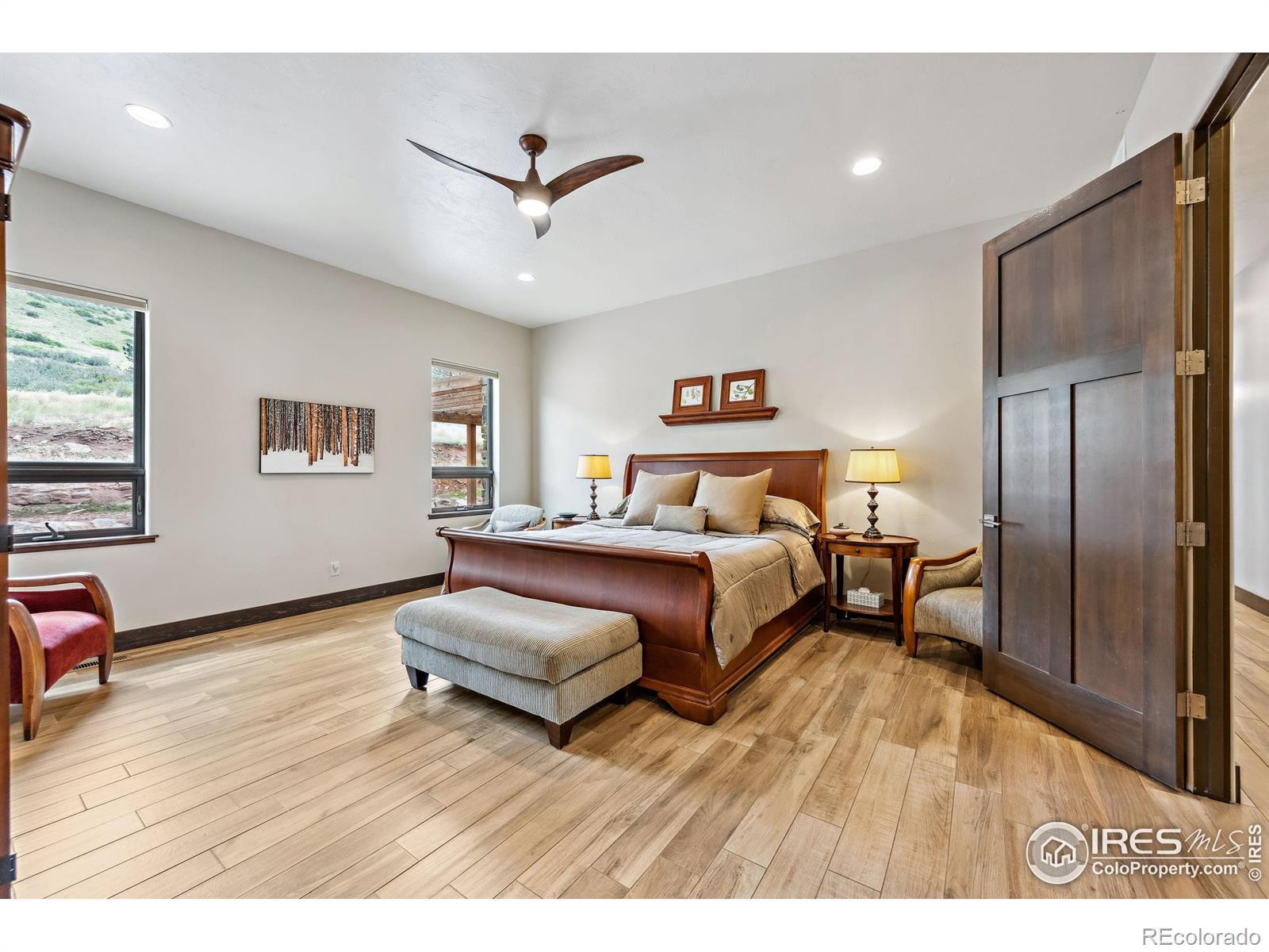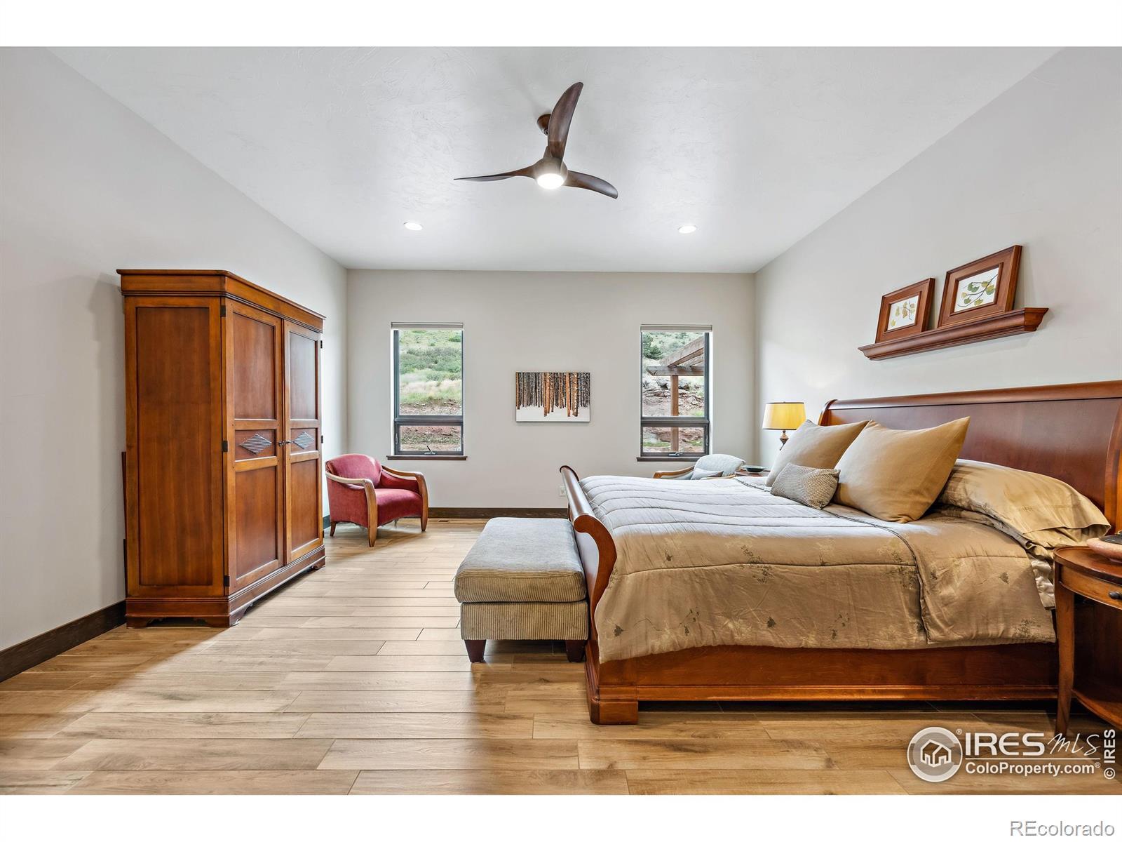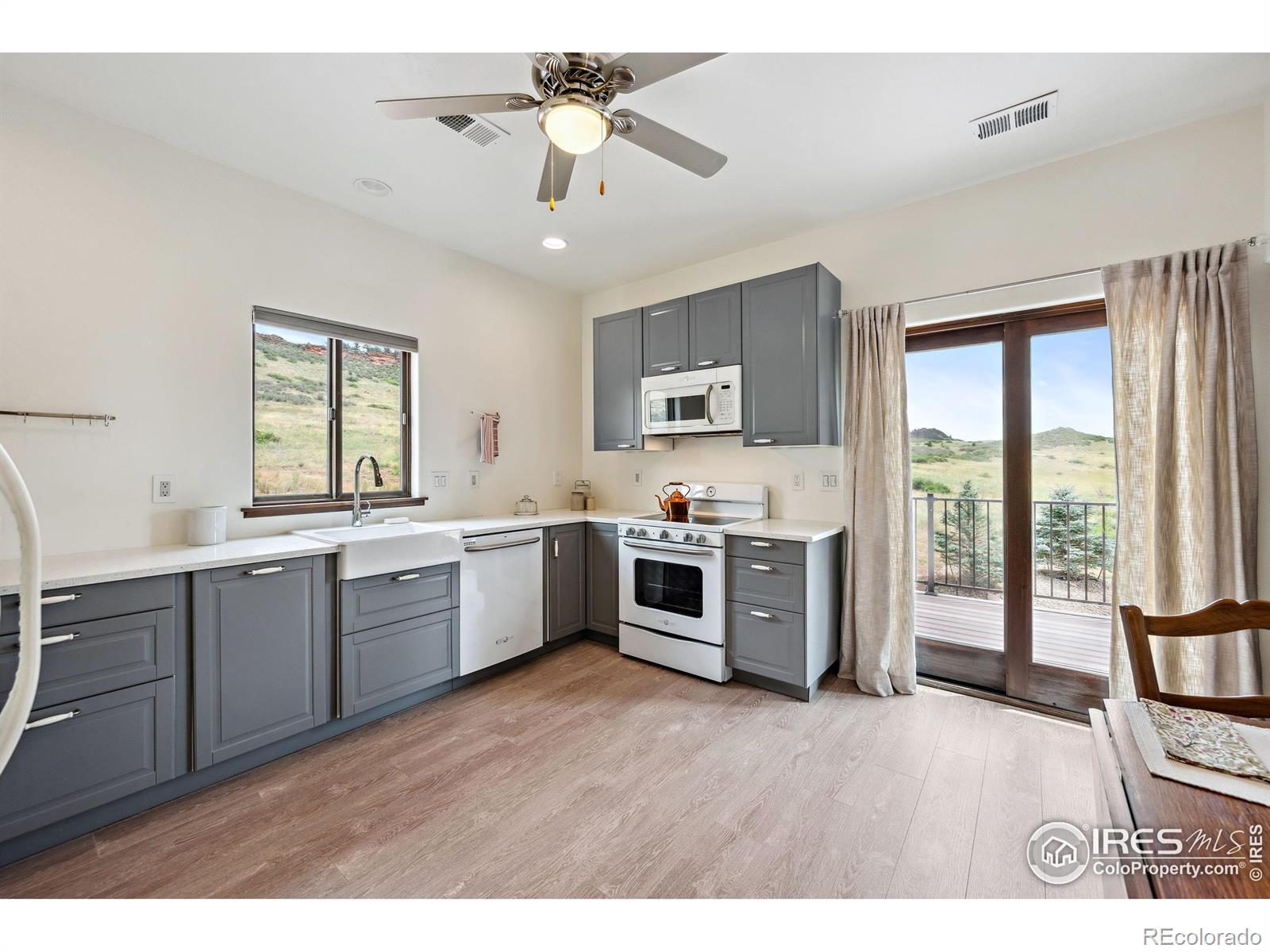Located in the sought-after gated community of Sedona Hills, this property offers miles of hiking trails, sweeping mountain views, and the privacy you want-just 10 minutes from Carter Lake and 15 minutes from Loveland or Berthoud. 4400 Sedona Hills Drive is a custom-built home designed for comfort and convenience, with quality at the forefront. Set on 35 acres, the home provides more than 3,500 square feet of main-floor living. The entry opens to a bright great room with a 27-foot ceiling and a large linear gas fireplace. The chef's kitchen includes a complete set of Bosch professional appliances, rift-cut oak cabinetry, Cambria quartz counters, and a spacious walk-in pantry. The main-level primary suite features a spa-inspired bathroom, a large shared walk-in closet, heated floors, and a private patio. A secondary suite with an en suite bath is also on the main level. Upstairs adds 2,000 square feet of living space, including a separate apartment with its own kitchen, bathroom, and laundry. Every upstairs room takes in wide mountain views and has ample space. A fenced and landscaped backyard surrounds the attached 20-foot greenhouse, which has well water irrigation and an automatic air circulation system. Open zoning allows for horses, target practice, and more. Interior features include porcelain tile and cork plank flooring, Toto bidet toilets, Douglas Fir trim, Milgard fiberglass windows, and multi-zone climate control. Exterior features include a high-production well plus Little Thompson water service, 300-amp electric service, concrete board-and-batten siding for wind and fire resistance, and a metal roof. For the complete list of technical specifications, safety elements, and quality upgrades, contact your agent or arrange an in-person visit.