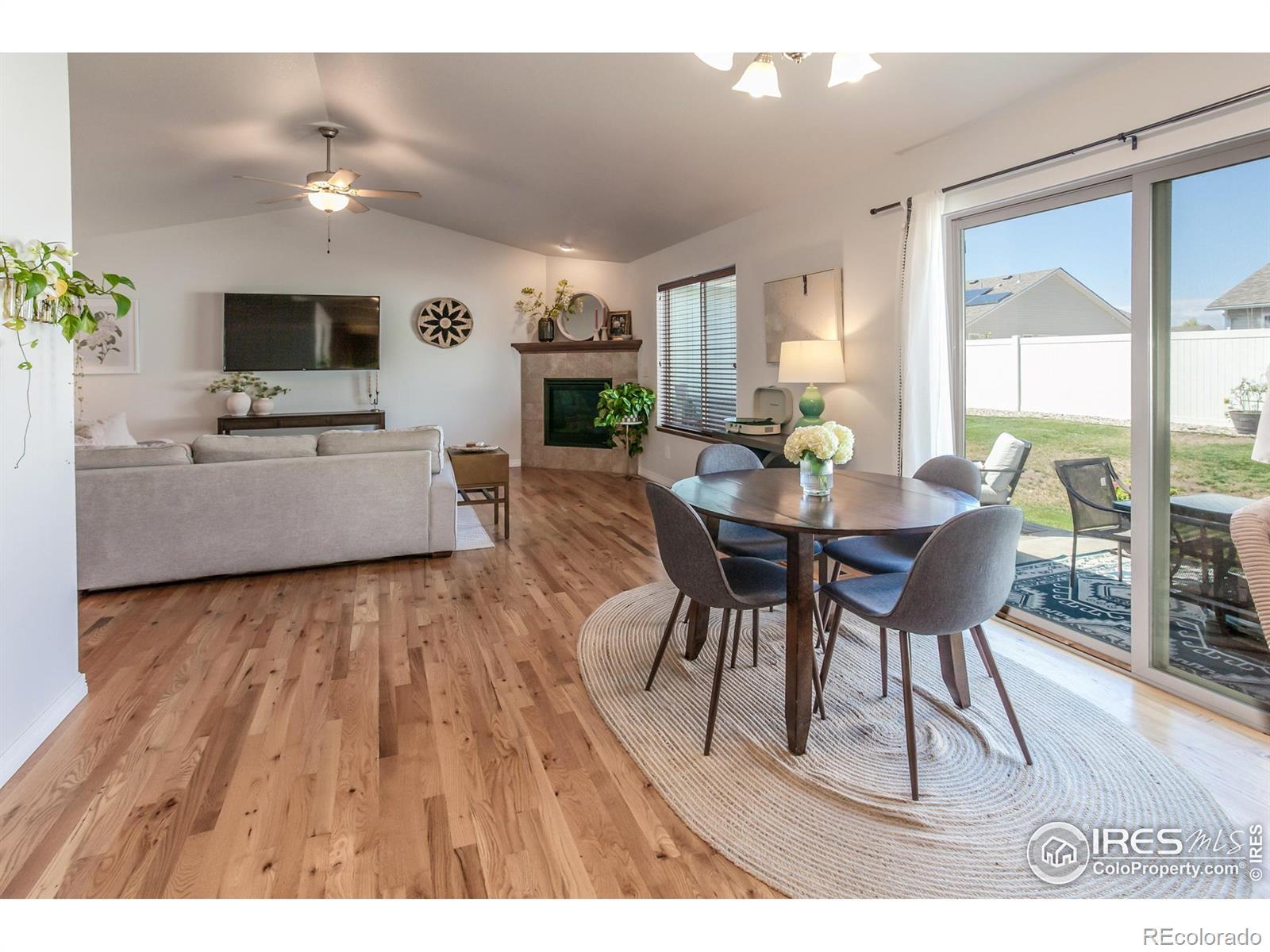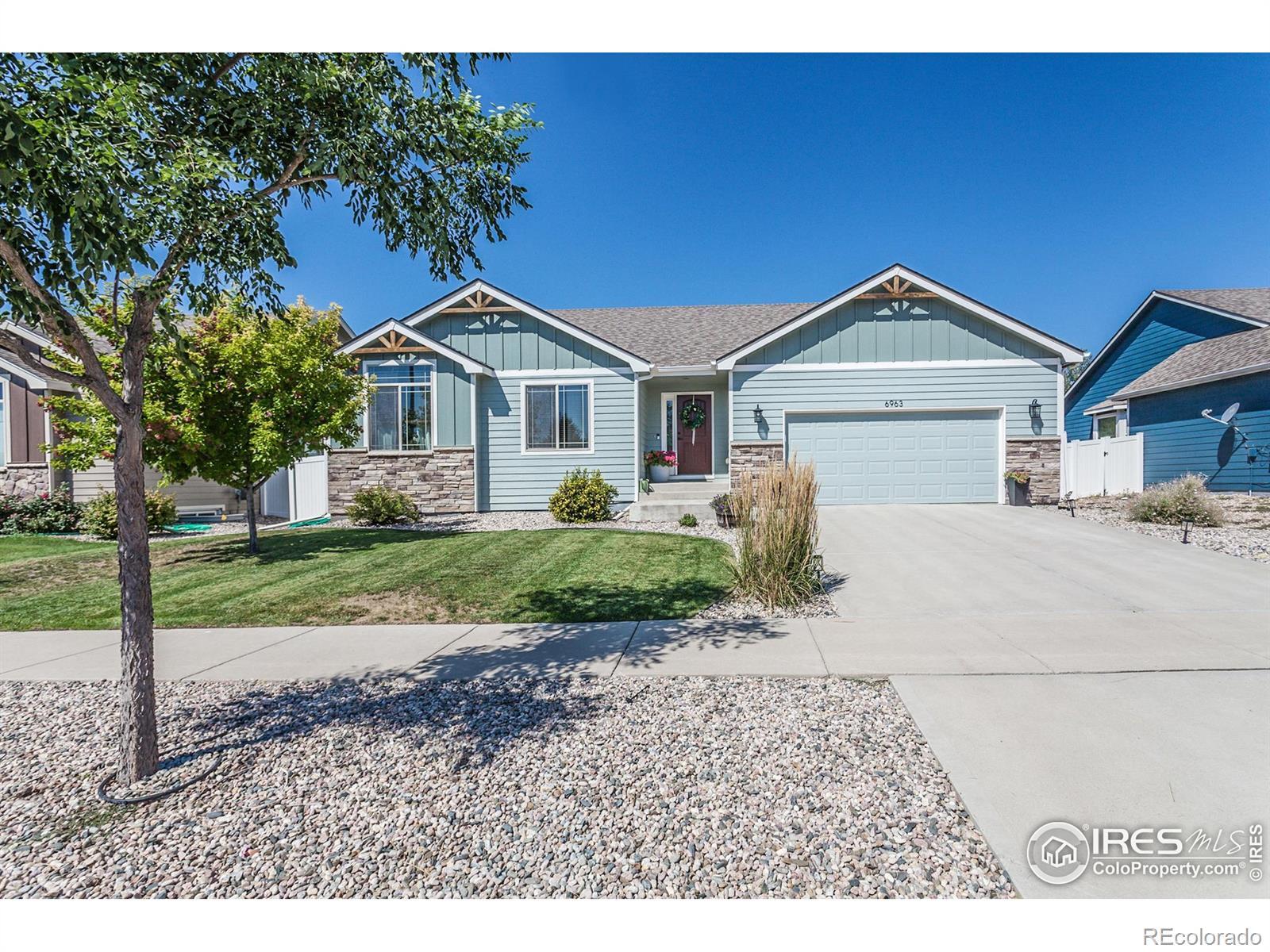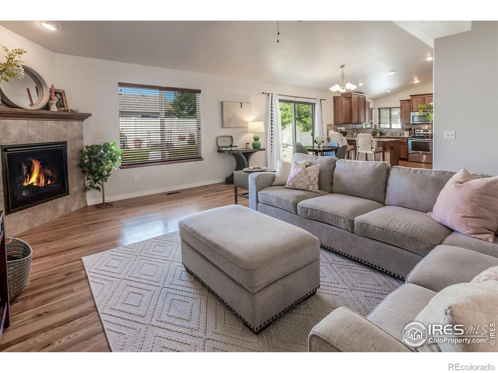 Welcome to this beautifully designed ranch-style home offering comfort, convenience, and thoughtful details throughout. A covered front porch invites you inside to a bright, open floor plan with vaulted ceilings in the living room and kitchen. A cozy gas fireplace serves as the heart of the home, creating a warm and inviting gathering space. The kitchen features stylish cityscape cabinets, stainless steel appliances, and granite countertops-perfect for both daily cooking and entertaining. Just off the garage, a convenient drop zone keeps things organized, and the included washer and dryer make move-in simple. The spacious primary suite is highlighted by vaulted ceilings, dual vanities in a spa-like five-piece bath, and a generous walk-in closet. The finished basement extends your living space with two additional bedrooms, a full bathroom, a large rec room, and ample storage. Outside, the fully fenced backyard and expanded patio provide the perfect setting for barbecues, outdoor gatherings, or simply enjoying a quiet evening at home. New exterior paint 2024 and New Furnace and A/C installed in 2023.
