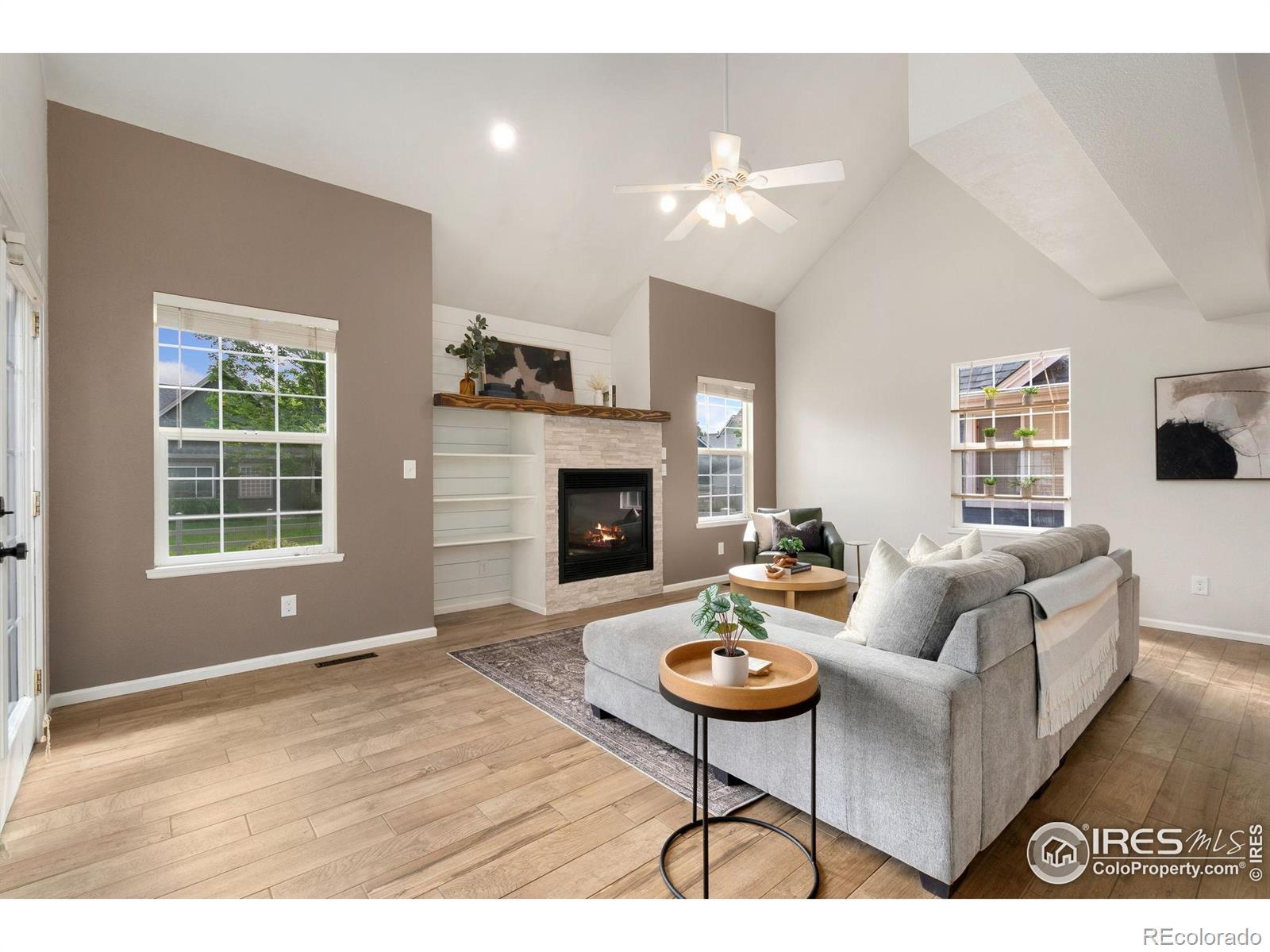 NEW PRICE!!! Best Value in convenient Ridgen Farm subdivision close to the best shopping centers, schools, walking paths and trails through the Fort Collins Environmental Center. The seller has lovingly cared for with updated paint, fixtures, hardwood tile flooring in the family room and new gas fireplace surround. Cute as a button---you will truly love to call this place "home". Enjoy sipping your morning coffee on the covered front porch and evening BBQs on your spacious backyard deck with fully fenced yard and established landscaping. Bring your oversized cars and toys! This 27x20 foot garage has room for it all! A true gem and priced to sell! Seller will have a new Class 4 shingle roof professionally installed before closing. Homeowners insurance discounts available.