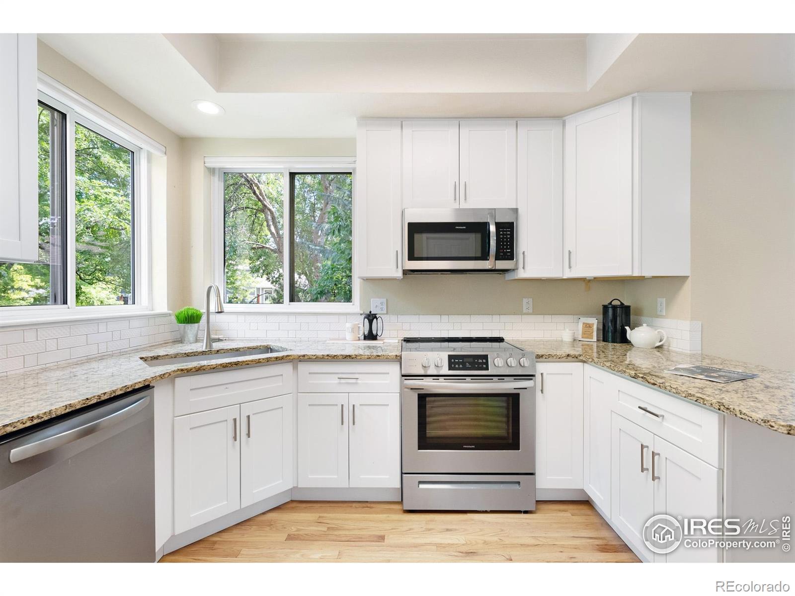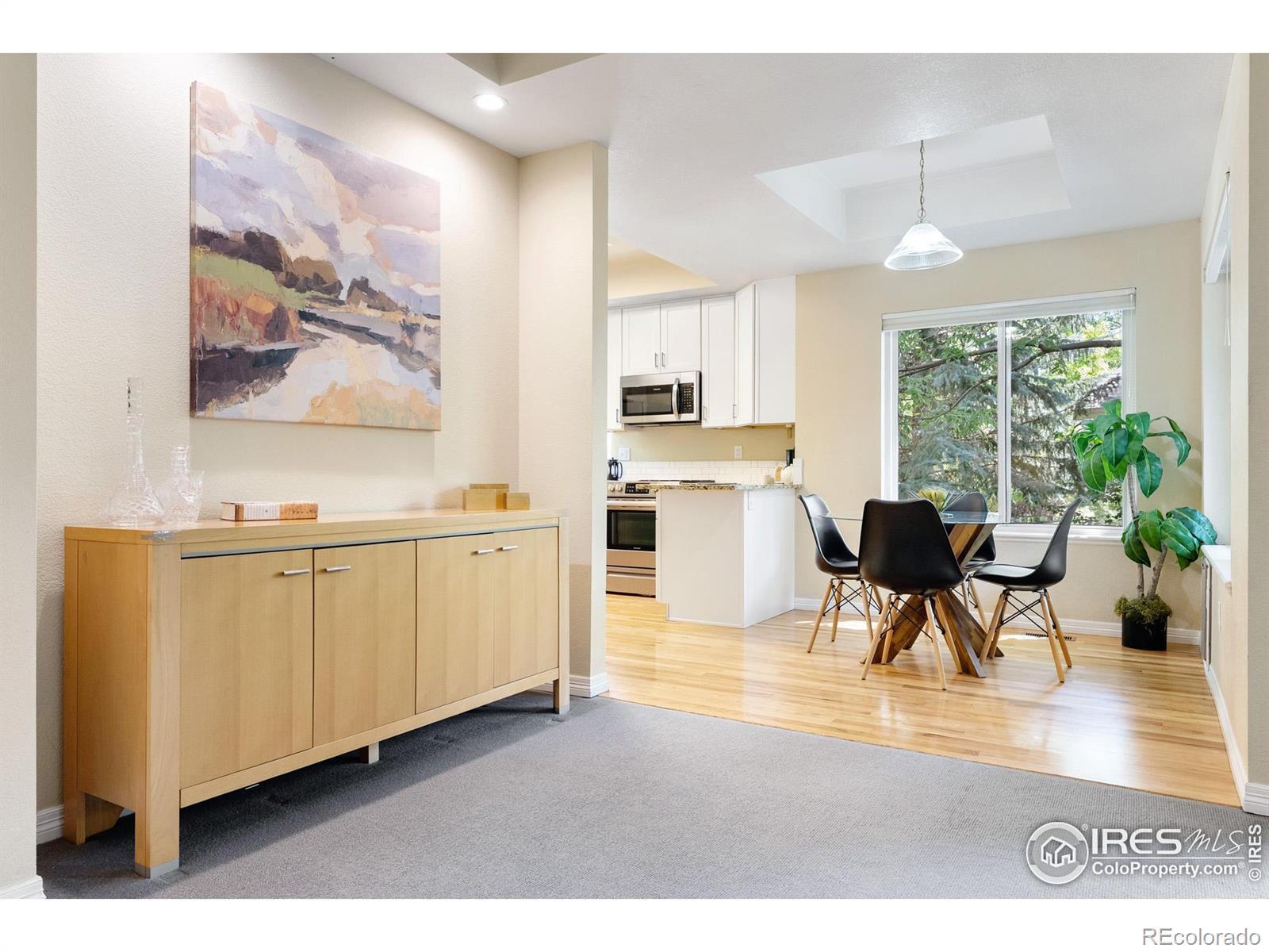 Perfectly Positioned in Noble Park as well as a Cyclist's Dream and Walker's Delight! Steps to Wonderland Creek Trail Network, Sidewalks Surround this elegant residence that pairs Refined Design with a Fabulous Floor Plan. Perfect Lock n Leave with a low maintenance, fenced yard, two neighborhood parks and miles of trails. Thoughtful upgrades abound, from custom lighting and remodeled baths to beautiful new flooring and top down/bottom up window coverings. A light-filled, open floor plan is anchored by a sophisticated living room, where a tray ceiling and gas fireplace create a striking focal point. The dining room, illuminated by a chic statement fixture, flows into a sunlit kitchen with sleek white cabinetry, granite countertops and sleek stainless steel appliances. A bright main-level bedroom or office sits adjacent to a 3/4 bath. The upstairs primary suite is a sanctuary of its own, boasting a private deck overlooking lush treetops, an oversized walk-in closet and a remodeled five-piece bath. A finished lower level with 2 bedrooms, a full bath and expansive recreation room provides the perfect space for teens, fun and entertaining. Outdoors, the low maintenance, fenced yard that's just the right size with a shaded deck and mature trees create a private retreat in the heart of Boulder's vibrant trail network. Walk across the street to Christensen Park or the Neighborhood Park, both just steps away!