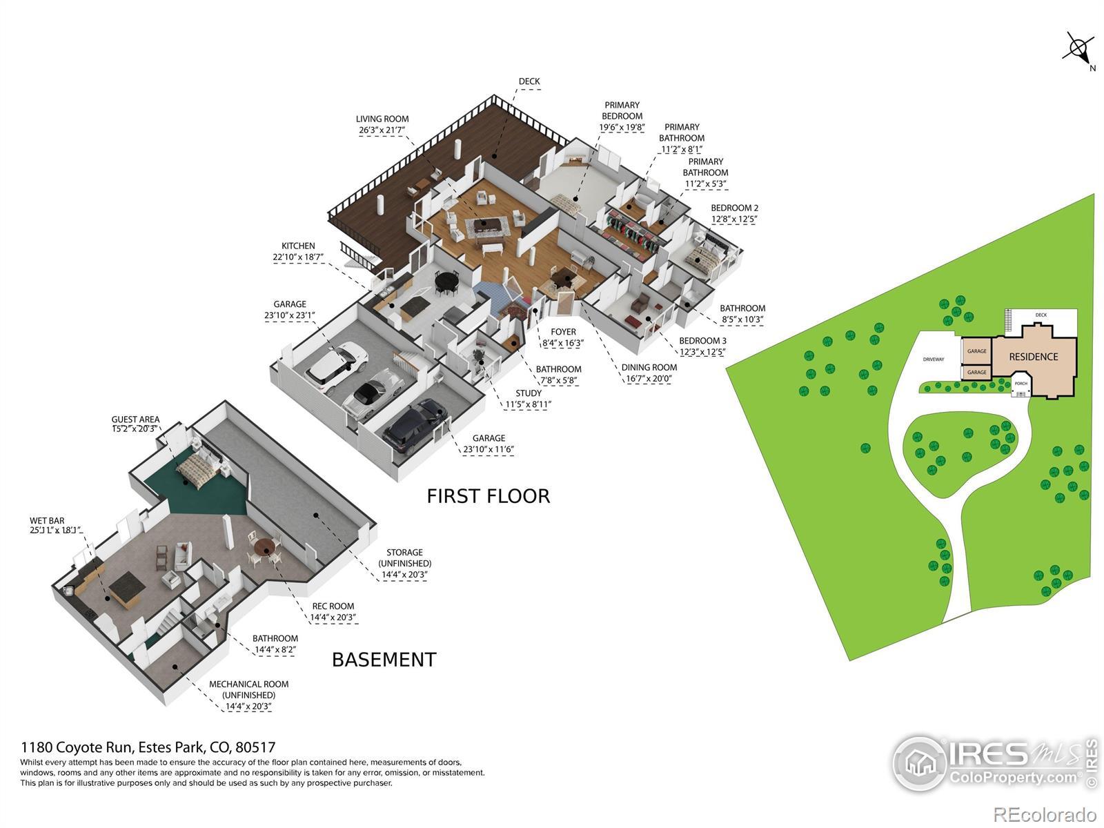 Easy living awaits at The Reserve, one of Estes Park's most desirable areas with those stunning views to Longs Peak and The Continental Divide... Welcome to 1180 Coyote Run, your immaculate mountain home with all the features and spaces for everyday living and grand entertaining. The circular driveway draws you in to the custom-crafted entry, open the door to a soaring greatroom with hardwood flooring, stone fireplace and those views. A chef's kitchen with huge island and lots of prep space makes for enjoyable entertaining in the heart of the house. Luxurious primary suite with fireplace, new spa-like bath and walk-in closets, plus French doors that open to the deck, perfect for that hot tub and starry night skies. Two additional guest rooms and 2nd full bath on the main level will keep family & friends comfortable. Dedicated home office, laundry and an oversized 3-bay garage with generous shop space complete the main level. Downstairs, you'll find the perfect family/rec room for gathering, with spaces for your home theatre, game nights and a well-equipped wet bar for hosting the big game watch party. Step out to the patio and follow the fairy lights to the firepit for s'mores and stories...the perfect way to end a great day. Offered fully furnished and ready to enjoy. Adjacent 2.49/acre Lot also available. A true gem, embracing the Colorado lifestyle...