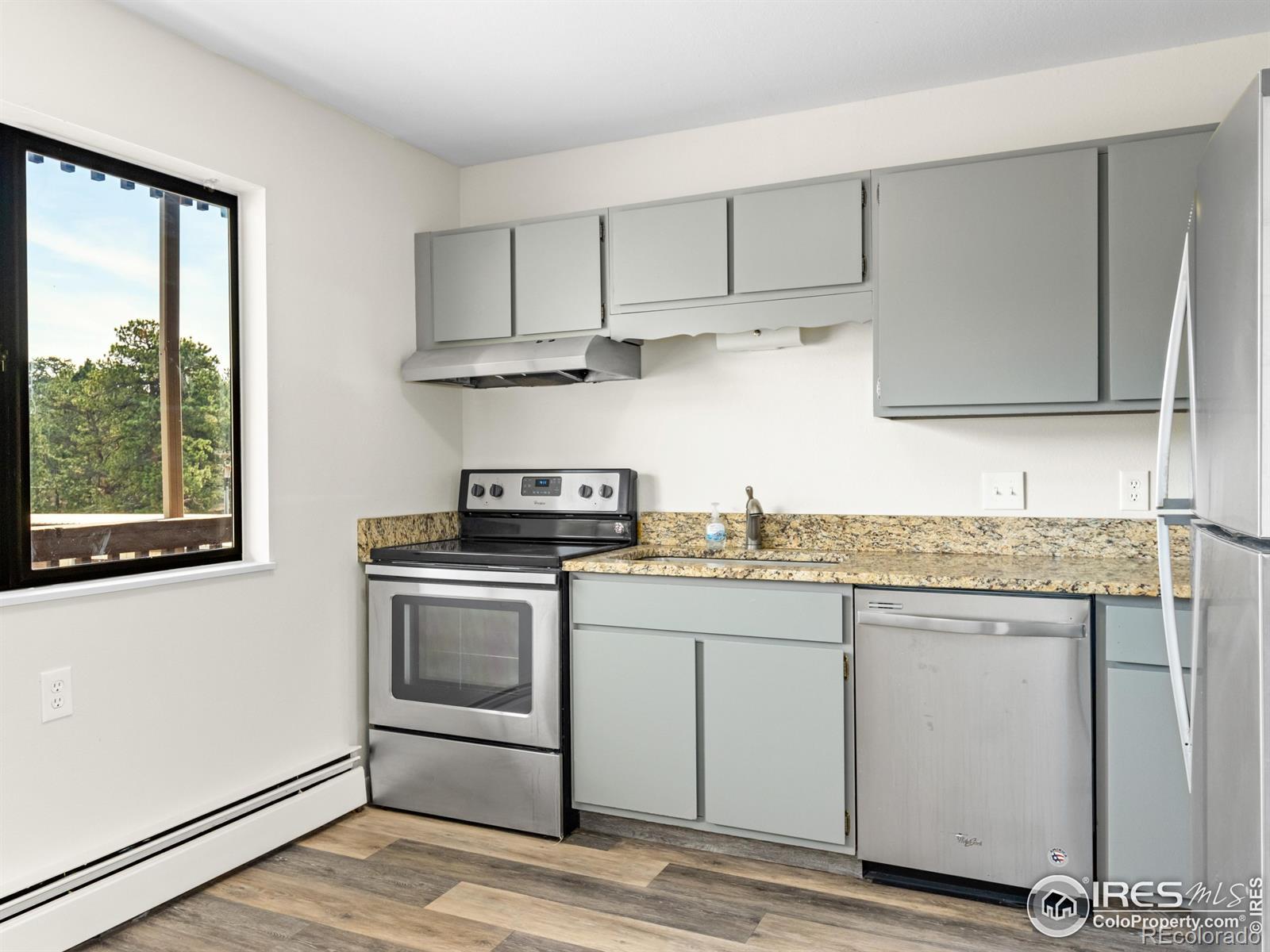 Easy & Affordable Mountain Living! Kick back and enjoy life in this 2-bedroom, 1-full bath condo that's freshly painted and ready for you to move right in. Perfect investment for employee housing! The HOA conveniently covers most utilities including heat so you'll have more time to explore the trails, grab a coffee in town, or just relax and take in the mountain air & scenic views from the deck. Utilities not included are electric, internet & cable. Additional amenities include shared laundry facilities and extra storage in the basement. Perfectly positioned within walking distance to restaurants and shopping in downtown Estes Park, Colorado. A path conveniently crosses right in front of the building, providing easy access to the 9-hole golf course and Lake Estes. Plus, just a quick drive to Rocky Mountain National Park. Please note virtually staged images are included to help visualize room layout and design possibilities. Conveniently close to everything you need-this is mountain living made simple.