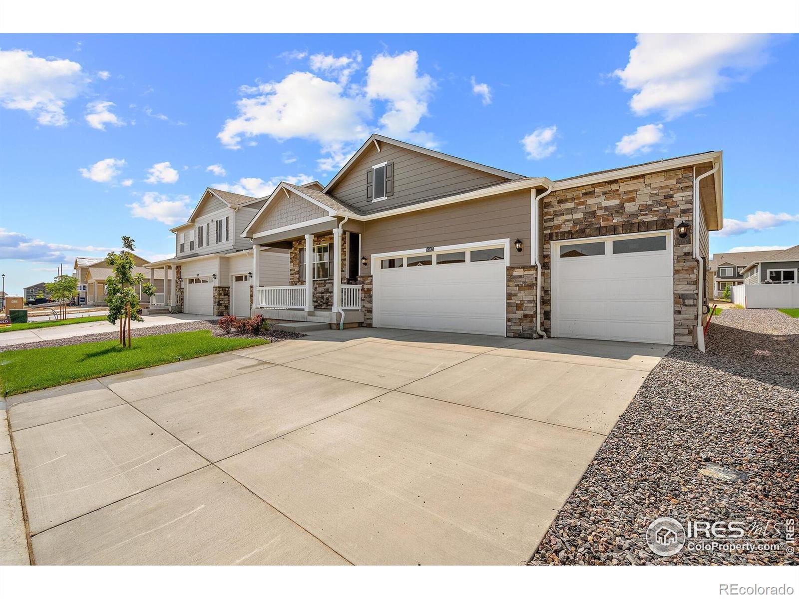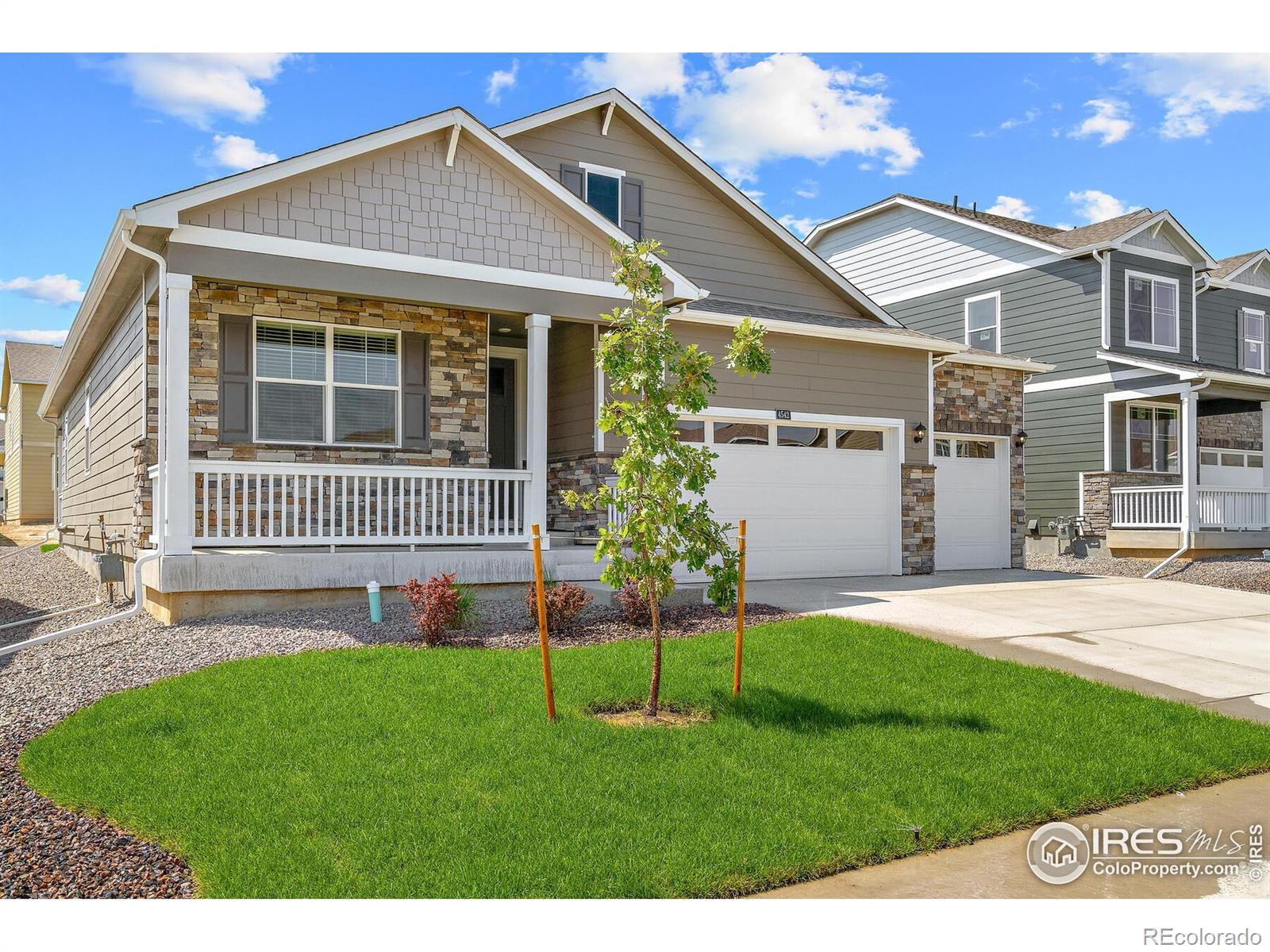Move in ready & turnkey! Contemporary, open design ranch plan with a 3-car garage, on a full, unfinished basement with 9' ceilings! There is so much about this home, from the covered front porch to the covered patio and everything in between! 4 bedrooms, 2 baths, 9' ceilings, and a gorgeous Kitchen! Contemporary white cabinetry, a large island, quartz countertops, a full suite of stainless steel appliances and a big corner walk in pantry set the stage! LVP runs throughout the main living area, and the electric fireplace in the Great Room is simply stunning! The basement has rough ins for an additional bath, making future expansion super easy! This home is loaded! Front load washer/dryer, air conditioning, a tankless hot water heater, smart home technology and blinds throughout. It's time to make this home yours and celebrate the holidays in a brand new home! Located between Longmont/Firestone/Mead with quick access to I-25 and just steps from the Peninsula state park! This neighborhood also has its own 2 dog parks, a large central park, playground, and miles of trails! Come live playfully at Lakeside Canyon! ***Photos are representative and not of actual property***