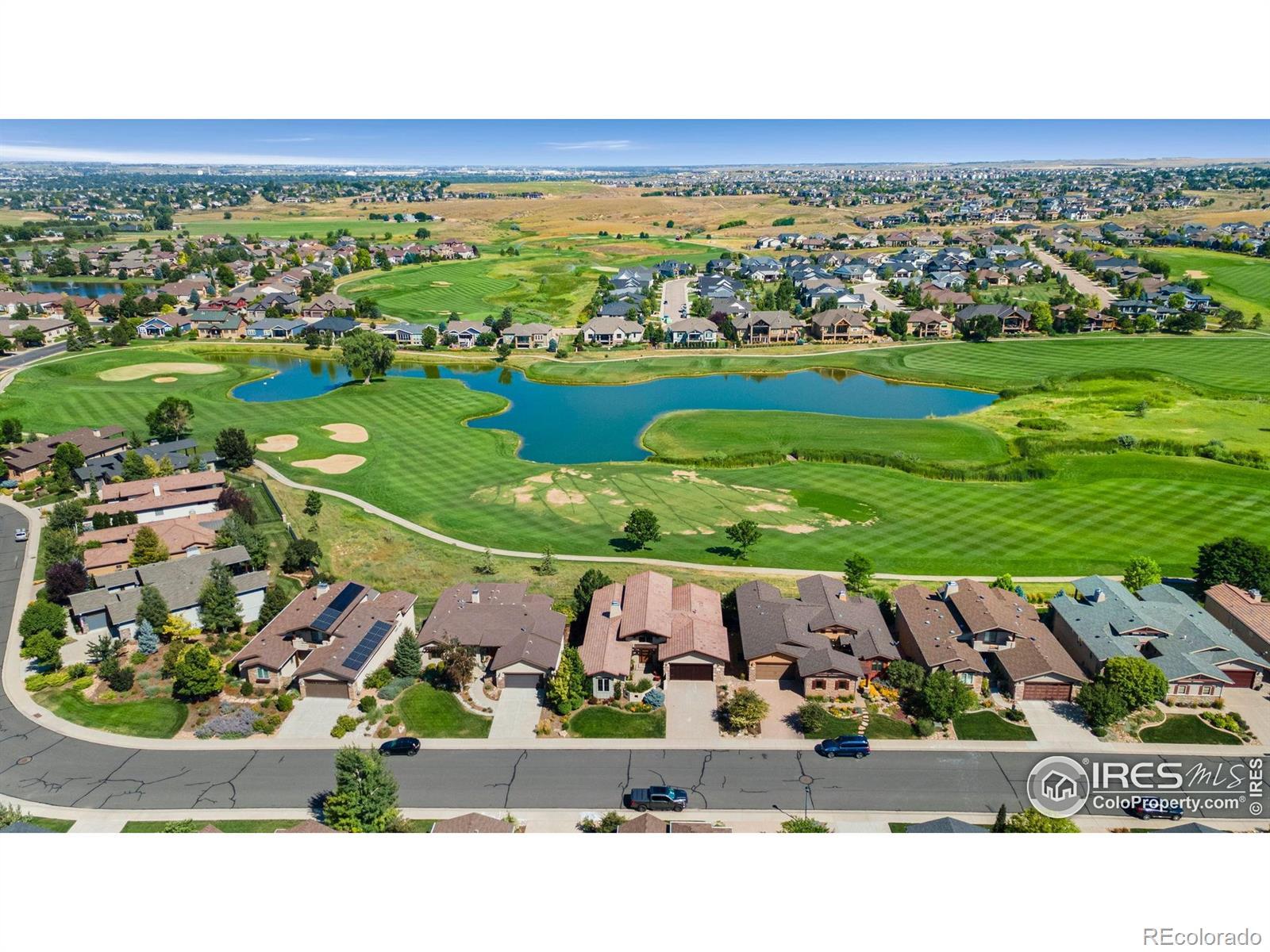 This luxury home in Highland Meadows will take your breath away the moment you walk in the door! You'll be met with a private courtyard, perfect for morning coffee and your favorite potted plants. The grand entry offers 20ft+ ceilings, wood beams and unobstructed views of the lakes on the 1st fairway. The open floor plan is ideal for entertaining, as is the large covered deck with built in gas fireplace, grill and waterproof ceiling. Elegant kitchen has stainless steel appliances, pantry, gas range, and granite counters. Red oak floors, fresh paint and light fixtures make the home feel like light and bright! Main level office has beautiful views and wood built ins. Vaulted ceilings in the master bedroom along with 5 piece bathroom with new quartz counters make it a true retreat! Huge walk-in closet with direct access to the laundry for ultra convenience. Large 2nd bedroom on main has courtyard access. Walkout basement features 2 additional bedrooms, theater room complete with theater chairs and projector equipment! Hot tub is negotiable! Home is wired for surround sound, has ample storage and Alexa compatible. Enjoy low maintenance living in this patio style home with landscaping maintenance, irrigation water, and snow removal included! Enjoy access to the pool and clubhouse, included in the metro district. Highland Meadows Golf Course offers 18 holes on a world class course. Tennis lovers will appreciate the nearby tennis club (available for a fee). Only a stone's throw from the club house!