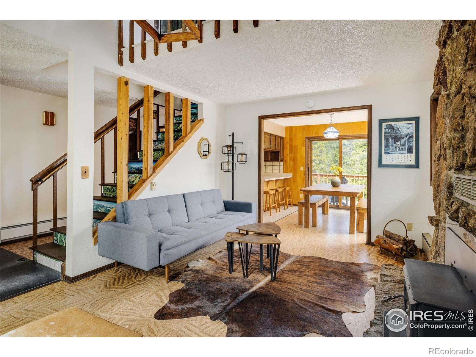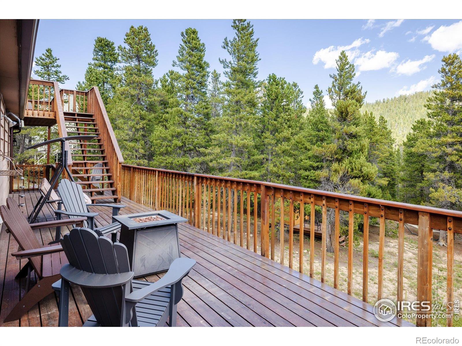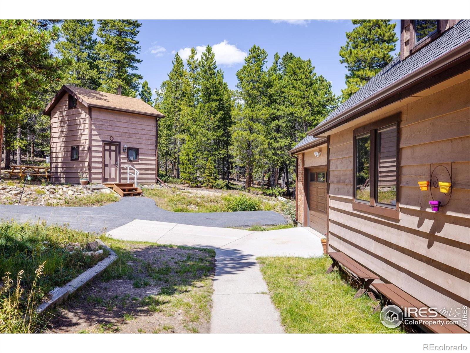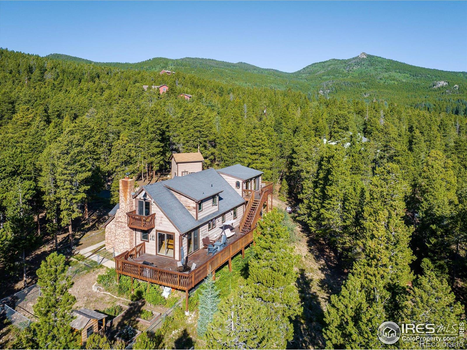 *Lender paid incentives of up to $8,000, being offered.* Escape to the soul-stirring beauty of Stanton Acres, where this mountain home offers a lifestyle steeped in nature, adventure, and community. Perfectly situated just below the Continental Divide and only minutes from the breathtaking trails of Golden Gate Canyon State Park, this property is more than a home, it's a gateway to mountain living at its finest. Surrounded by pines and aromatic junipers, the home is a private sanctuary with panoramic views framed by expansive windows. Step inside to find warm cork flooring that flows through the open-concept layout. The heart of the living space is a custom stone fireplace with a wood stove insert, inviting cozy evenings. The kitchen and dining area are bright, open, and ready to host everything from intimate dinners to festive gatherings. Step outside to the spacious, reinforced deck which is ideal for soaking in the stars from a future hot tub or enjoying the sounds of nature with your morning coffee. The main level includes a charming bedroom and updated full bath, with convenient laundry and storage just down the hall. Upstairs, the vaulted loft offers direct deck access while the spacious primary includes an attached office or studio, perfect for remote work or creative pursuits. Bonus spaces include a charming remodeled detached two-story "cabin suite" with a sitting area and upper-level bedroom, an oversized two-car garage with a custom people door, and tucked into the trees, you'll also find a brand-new Finnish sauna and a peaceful yoga deck. Recent updates bring peace of mind: whole house water filtration system, new hot water heater and electrical, chimney cleaning with new topper, newer roof, gutters, decking, and forced air fans for year-round comfort. Located in the welcoming Deer Trail Basin community just below Star Peak, this home blends solitude with connection. Enjoy quick access to South Boulder, Nederland, Eldora Ski Mountain, and DIA.