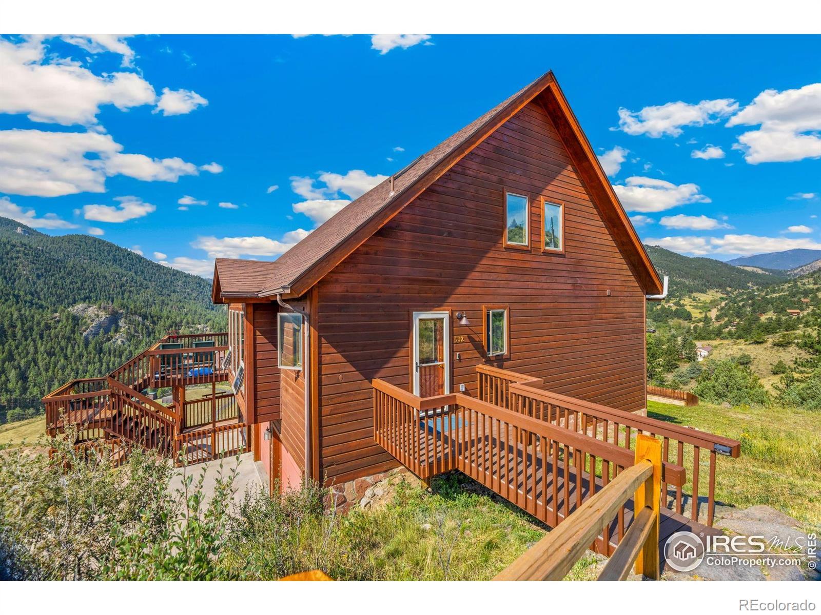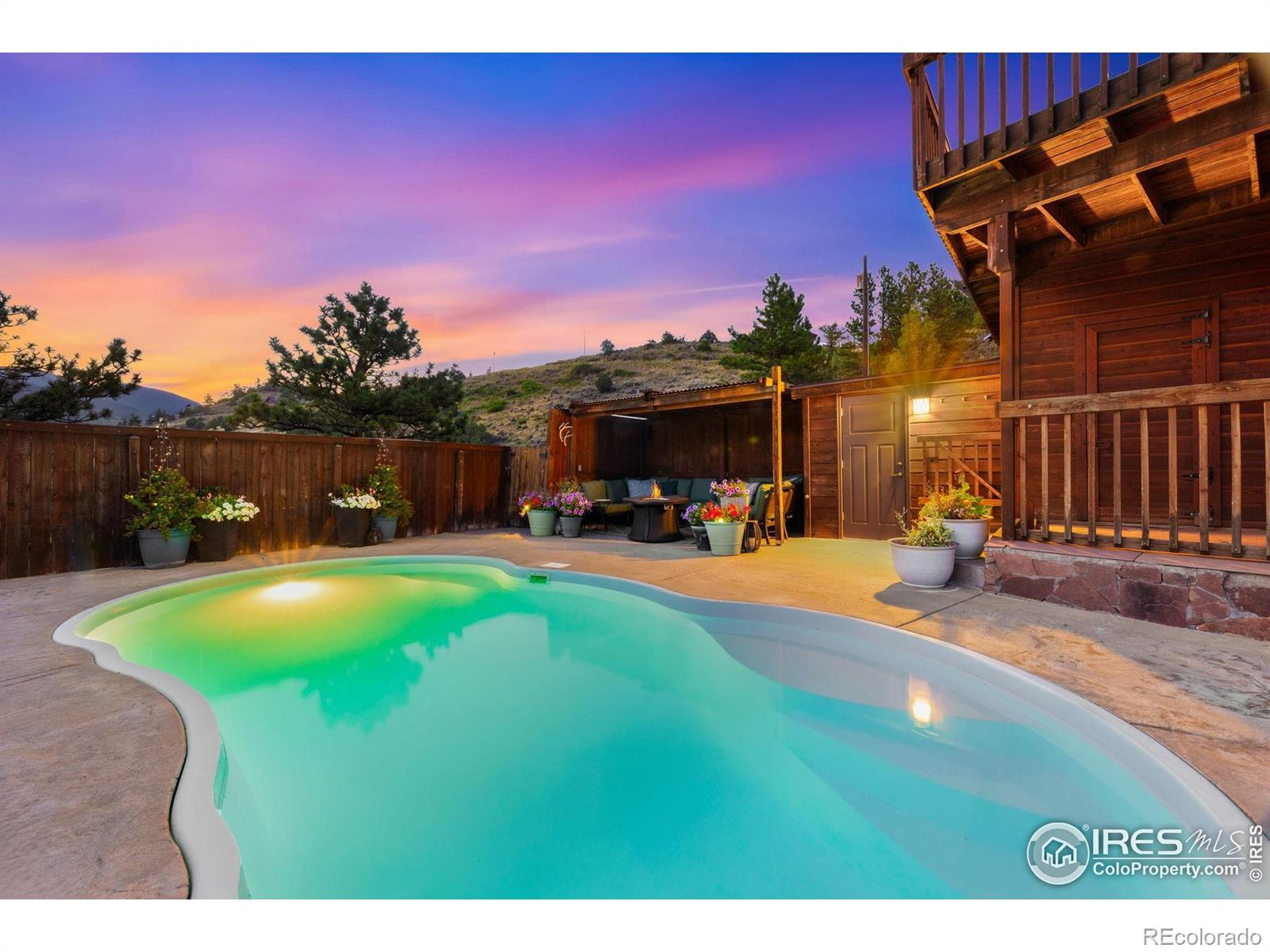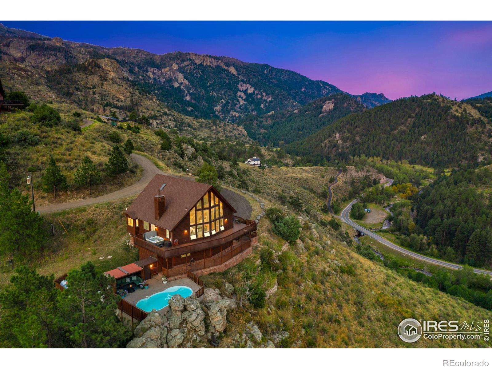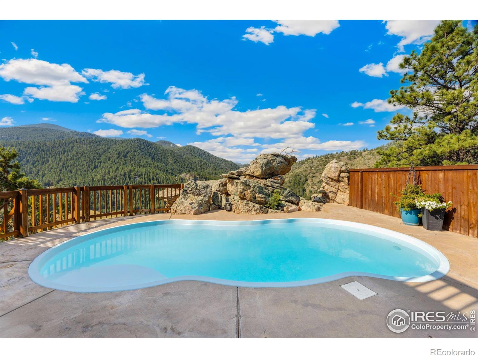 A saltwater pool and hot tub... in the Colorado mountains. This rare hillside chalet in The Retreat at Glen Haven combines everyday comfort with unforgettable mountain views and wide-open spaces.Set on two spacious lots, the home offers privacy and room to roam, all while being just a short drive from downtown Estes Park. Inside, you'll find soaring windows, warm knotty pine finishes, and an open floor plan that connects seamlessly to a large loft-perfect for a home office, creative retreat, or lounge. An oversized attached garage offers convenience, while separate RV and boat parking areas give you space for all your Colorado adventures.The wraparound deck on three sides becomes an extension of the living space, ideal for morning coffee, evening dinners, and stargazing under clear Rocky Mountain skies. A flexible lower-level room, once a sauna and now a poolside bar, offers unique potential to fit your lifestyle.What truly sets this property apart is its outdoor living: relax in the hot tub, take a dip in the saltwater pool, or simply enjoy the incredible views in every direction. Wildlife, fresh air, and access to Roosevelt National Forest trails make this home a true Colorado retreat.If you're searching for a mountain home with character, privacy, and a lifestyle that blends relaxation with adventure, 532 Elkridge is waiting for you.