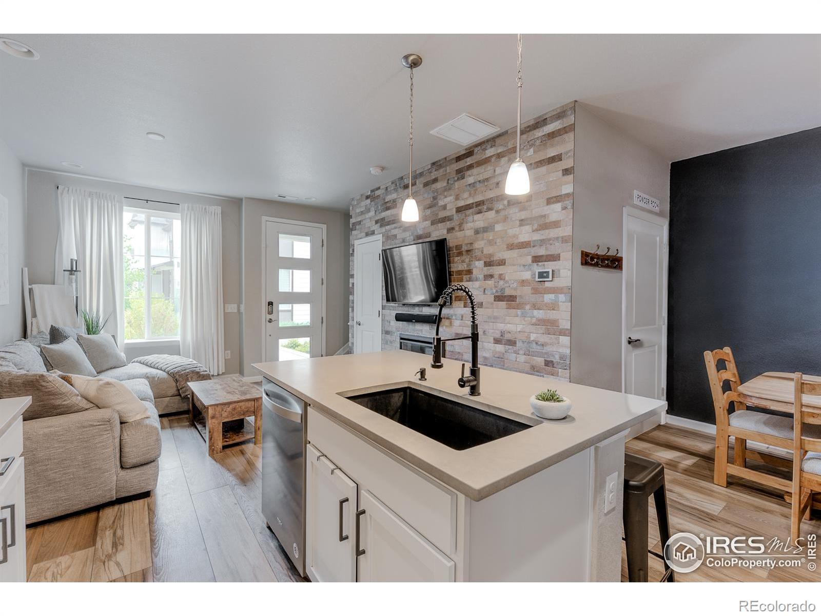 Welcome to a home where comfort meets craftsmanship-a beautifully curated haven in the sought-after Candelas community offering resort style amenities. This thoughtfully designed residence blends sophisticated style with everyday livability, featuring an open floorplan, premium finishes, and inviting living spaces. Every room is enhanced with custom touches, creating a home full of charm and personality. A welcoming covered front porch leads to a sun-filled interior where wood-style laminate flooring spans the main level, staircase, and upper hallway. The bright, open-concept layout seamlessly connects the living, kitchen, and dining areas, creating a harmonious flow for everyday life and entertaining. At the heart of the home, the kitchen impresses with 42" white shaker cabinets, quartz countertops, and a custom brick backsplash. A center island invites casual connection, while upgraded stainless steel appliances-including a gas range-ensure culinary success. A single-bowl granite sink, contrasting black fixtures, and open shelving add both function and style. Just off the kitchen, the intimate dining area sets the tone for memorable meals, where a custom chandelier casts a warm, artisanal glow. The living room centers around a cozy fireplace framed by a custom brick wall, offering a perfect blend of texture, comfort, and sophistication. Upstairs, two full bedroom suites with brand new carpeting offer private retreats. The primary suite features a generous walk-in closet and a spa-inspired bath with dual sinks, sleek finishes, and a luxurious walk-in shower with a glass enclosure and built-in bench. The secondary suite includes its own walk-in closet and private bath-spacious enough for kids to share or ideal for guests or a home office. A nearby laundry room with full-size washer and dryer and built-in shelving adds everyday convenience while custom overhead storage in the two car garage and more under the stairs insure everything has its place.
