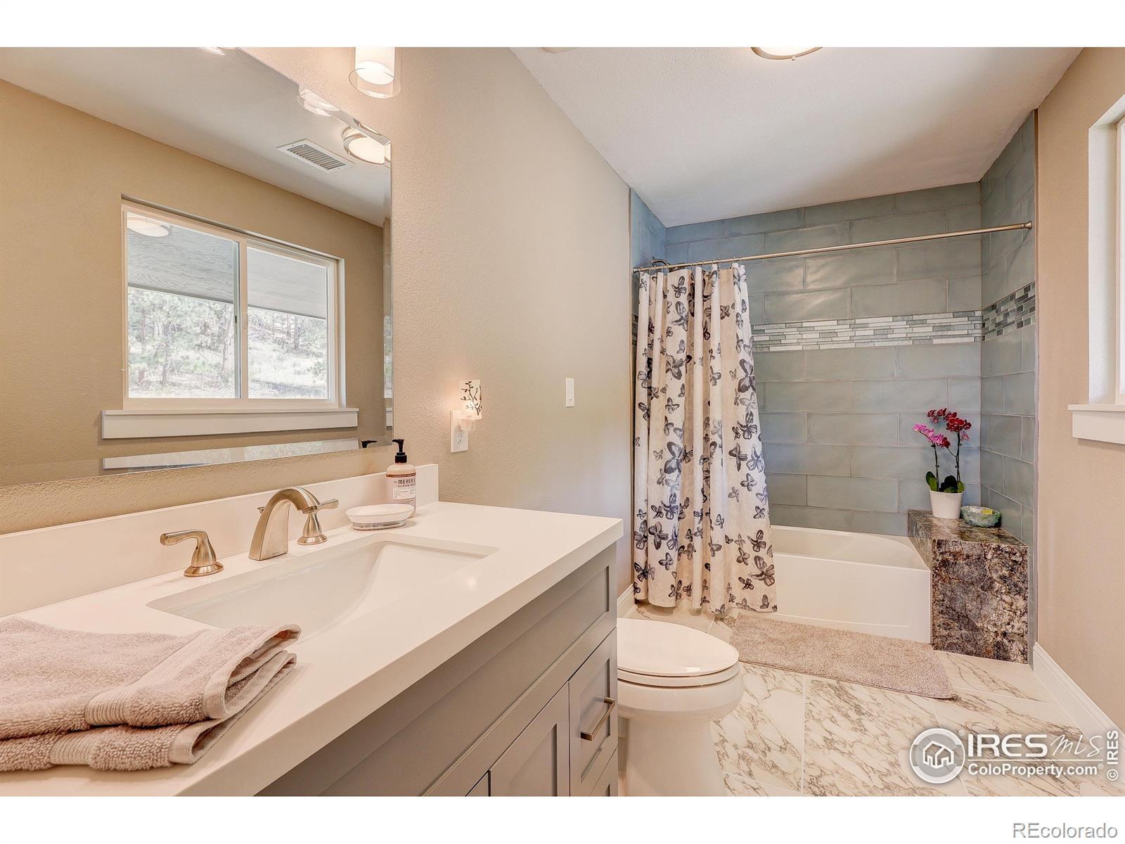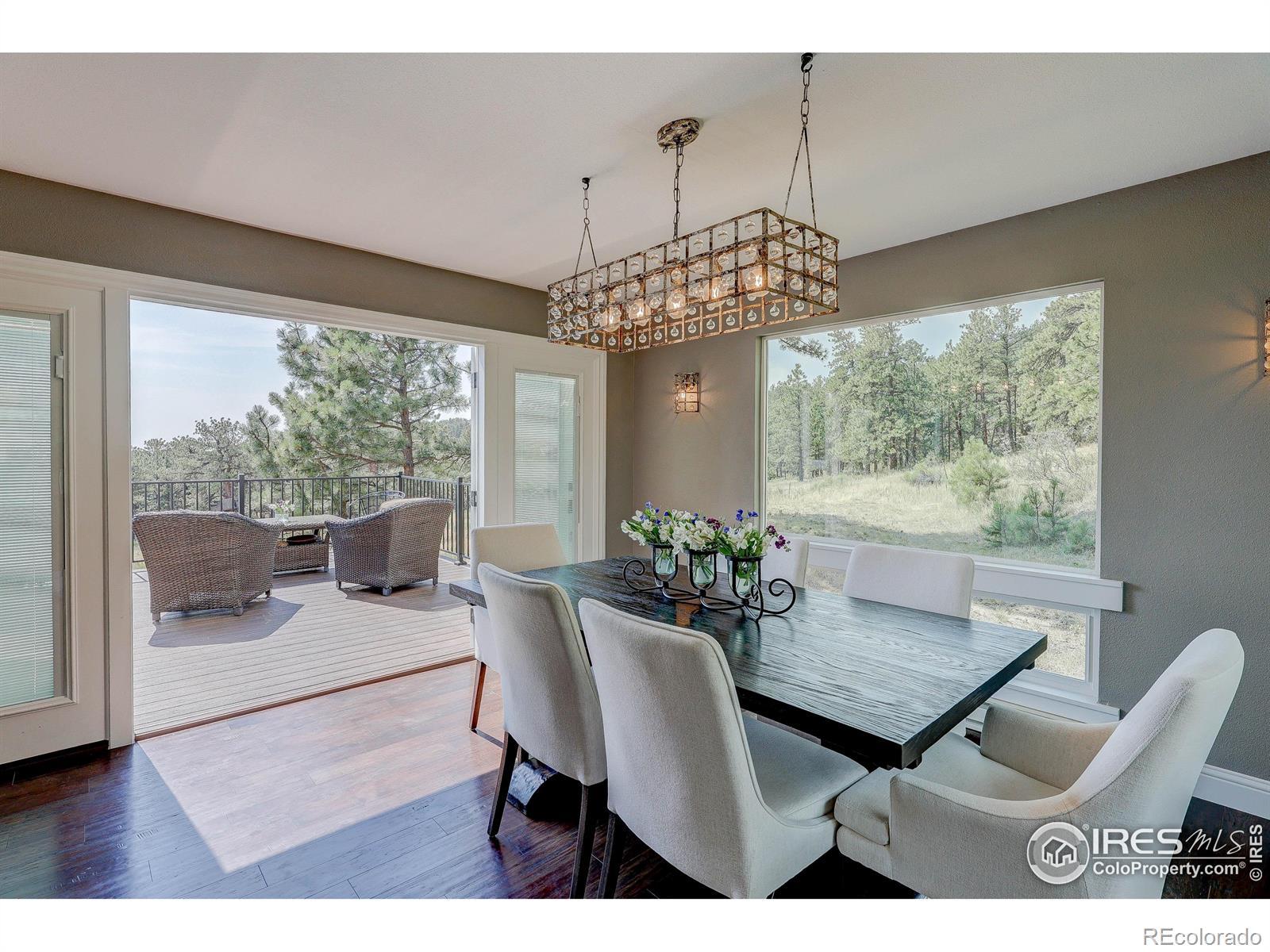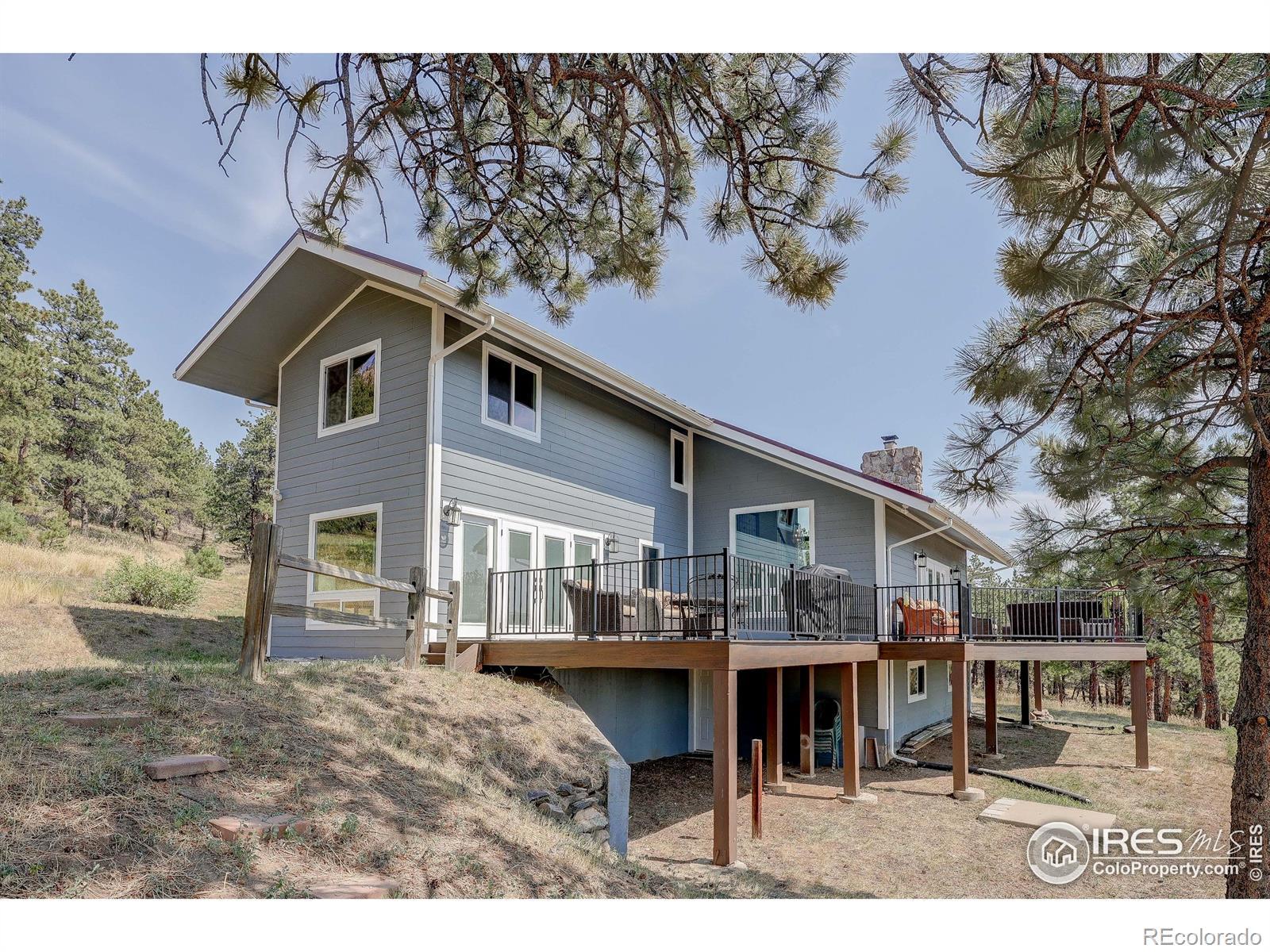 First time on the market in over 35 years!This beautifully remodeled 2-story home sits on 75 breathtaking acres that can be divided into two parcels. Bordering Roosevelt National Forest and the Sylvan Dale Guest Ranch Conservation Easement Land, the property offers unmatched privacy, panoramic views, and direct access to endless trails.Inside, you'll find light-filled living spaces, 3 bedrooms, and 4 bathrooms. The stunning kitchen flows into a dining room surrounded by windows that frame incredible views. Both the dining and living rooms open onto a spacious wraparound deck-perfect for entertaining, stargazing, or simply soaking in the peace and quiet.Upstairs, the primary suite feels like a retreat with a spa-like bathroom, walk-in closet with stackable washer and dryer, and a private balcony ideal for morning coffee. The main and upper levels feature wood flooring, and all three bathrooms have been tastefully remodeled.The walkout basement is ready to be finished with your personal design touches and already includes a second laundry room and a 4th bathroom awaiting updates. Additional highlights include a detached 2-car garage, efficient heating and cooling with a heat pump, a newer metal roof, durable James Hardie cement siding, and a seasonal stream running through the property. There's also plenty of space for horses and outdoor recreation.Located just 20 minutes from Loveland and everyday conveniences, this property offers jaw-dropping 360 views of Devil's Backbone, Boedecker Lake, Boyd Lake, and the surrounding mountains. A rare opportunity for unparalleled mountain living-privacy, beauty, and adventure all in one.Slow down when you drive up so you don't miss the Wild Turkeys, Deer, Elk...it seems like there's always some wildlife wandering through this peaceful area.
