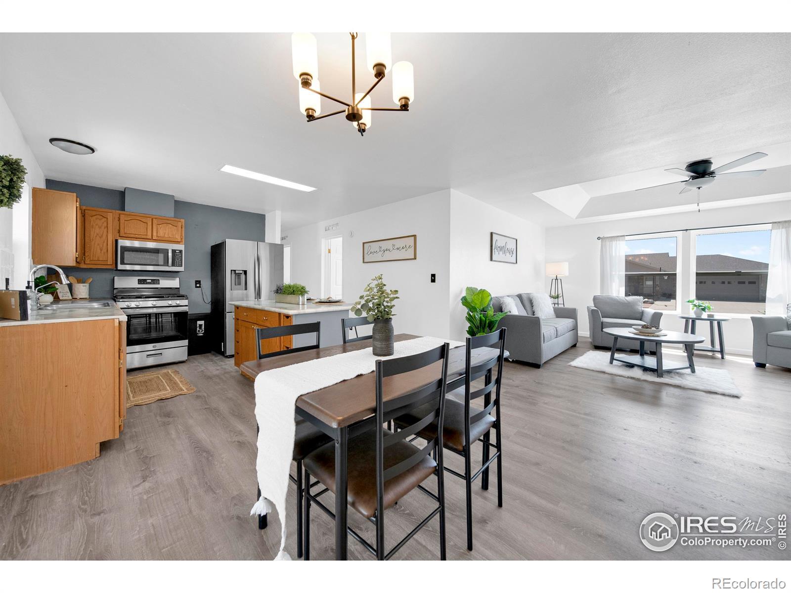 This is the one! Welcome to this beautifully updated 3-bedroom, 2-bath ranch-style home in the highly desirable Sage Point subdivision! Thoughtfully refreshed with new interior paint, luxury vinyl flooring throughout the main living areas, and newer carpets in bedrooms, this home blends modern comfort with country charm. A brand-new AC unit ensures year-round comfort. Step into the inviting living room with elegant, tray ceiling, where natural light fills the open layout. The kitchen is the heart of the home, featuring a center island, stainless steel appliances, gas stove, and seamless flow into the dining and living areas-perfect for both entertaining and everyday living. Retreat to the spacious primary suite, complete with a luxurious five-piece bathroom boasting a very large, deep soaker tub, dual sinks, and shower. Two additional generously sized bedrooms and another full bathroom offer plenty of room for family, guests, or a home office. Convenience continues with a nice-sized main floor laundry room, an oversized two-car garage, and a sliding door leading to the covered deck overlooking the large lot-ideal for enjoying those soon to be crisp fall nights. A 20x12 storage shed adds bonus space for tools, toys, or hobbies. Location, Location, Location!! This property strikes the perfect balance between country living and convenience. Enjoy the peace of the neighborhood while being just minutes from Sterling's top amenities-Walmart, Home Depot, Bomgaars and more. Plus, you're only a short drive from Sky Ranch Golf Course, making it easy to sneak in a round of golf whenever you like! The lifestyle you've been waiting for is right here-spacious, stylish, and perfectly located. Don't wait-your Sage Point dream home is ready for you!