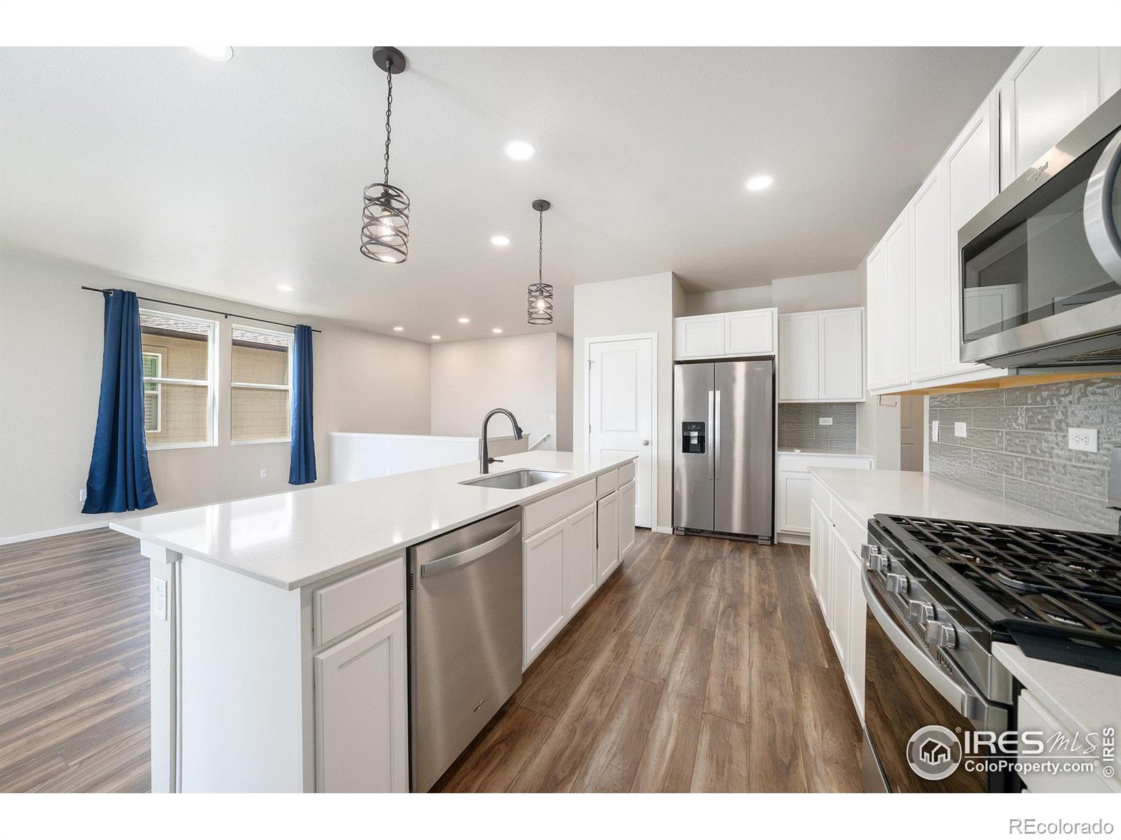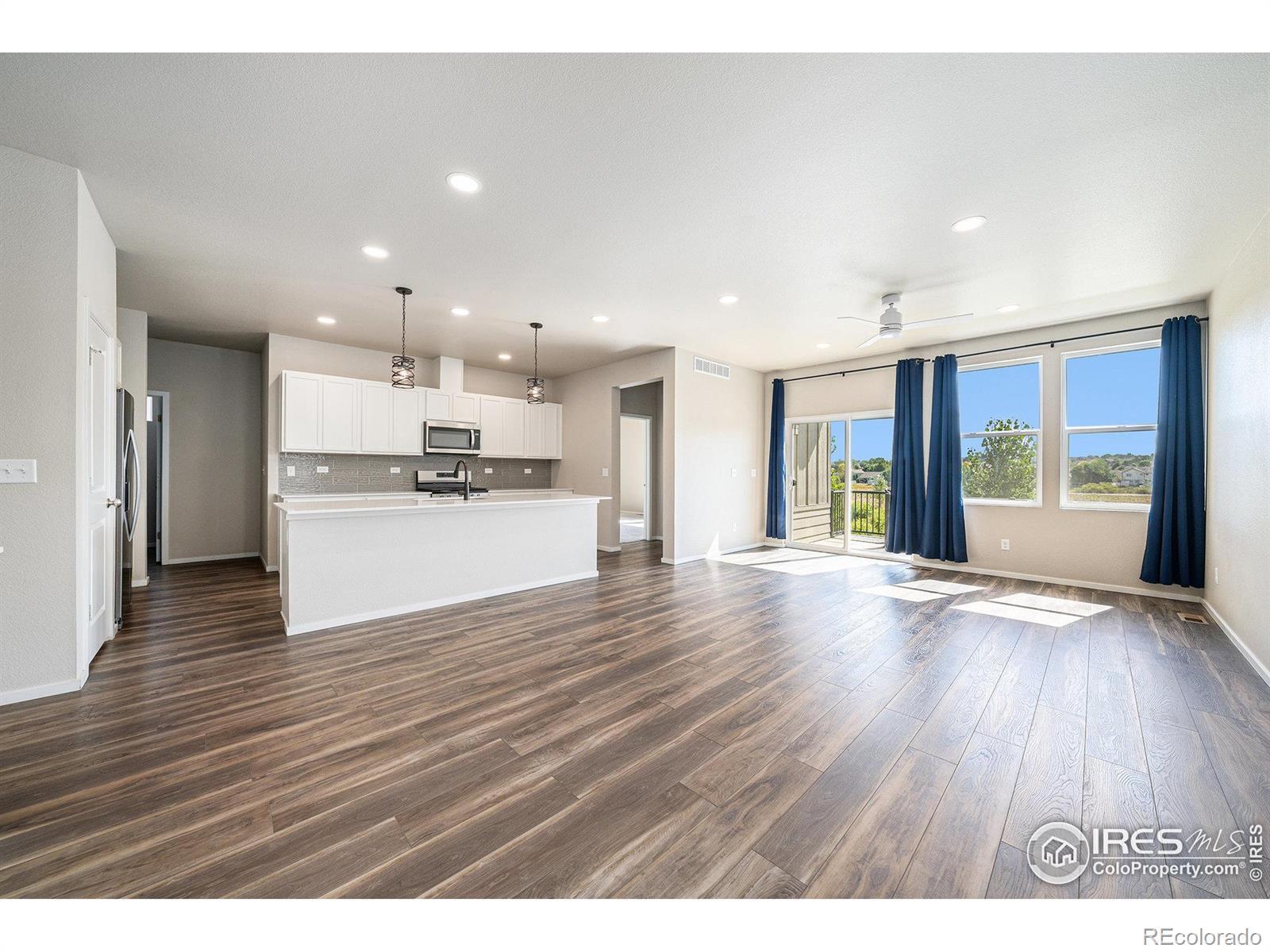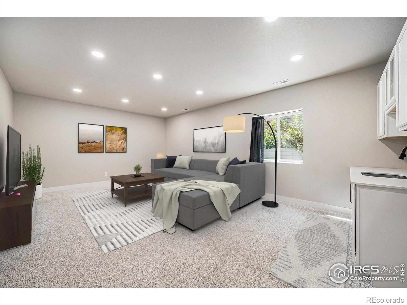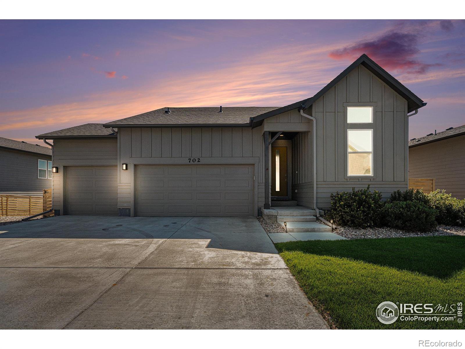Welcome to this stunning ranch style Christie plan by Harford! Open concept! Large living/dining area, white kitchen w/gas range, stainless appliances & large island w/quartz counters. Large living/dining area w/lots of natural light. Main level features 2 bedrooms, full bath. Primary w/large 3/4 bath & walk-in closet. Main floor laundry. Beautiful vinyl plank flooring throughout. Garden level basement features family room w/wet-bar. 2 bedrooms and a 3/4 bath. Backing to open space, you will be captivated by the views! Nicely landscaped fenced yard, Trex deck, large patio right next to Poudre Trail/Sheep Draw Trail. 3 car garage with storage. Buyer to verify schools, measurements and HOA/Metro fees.