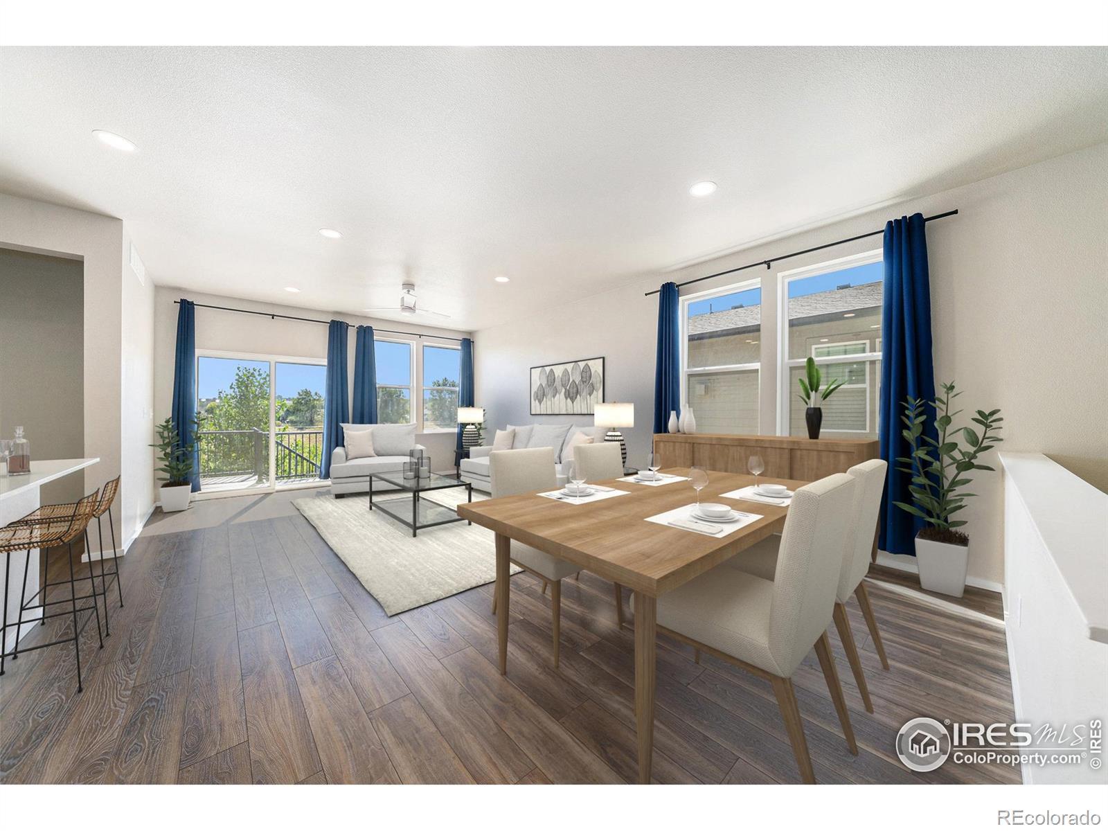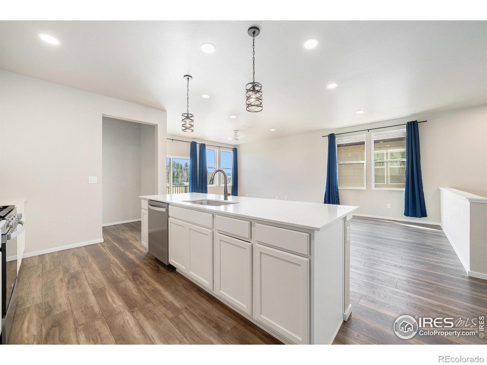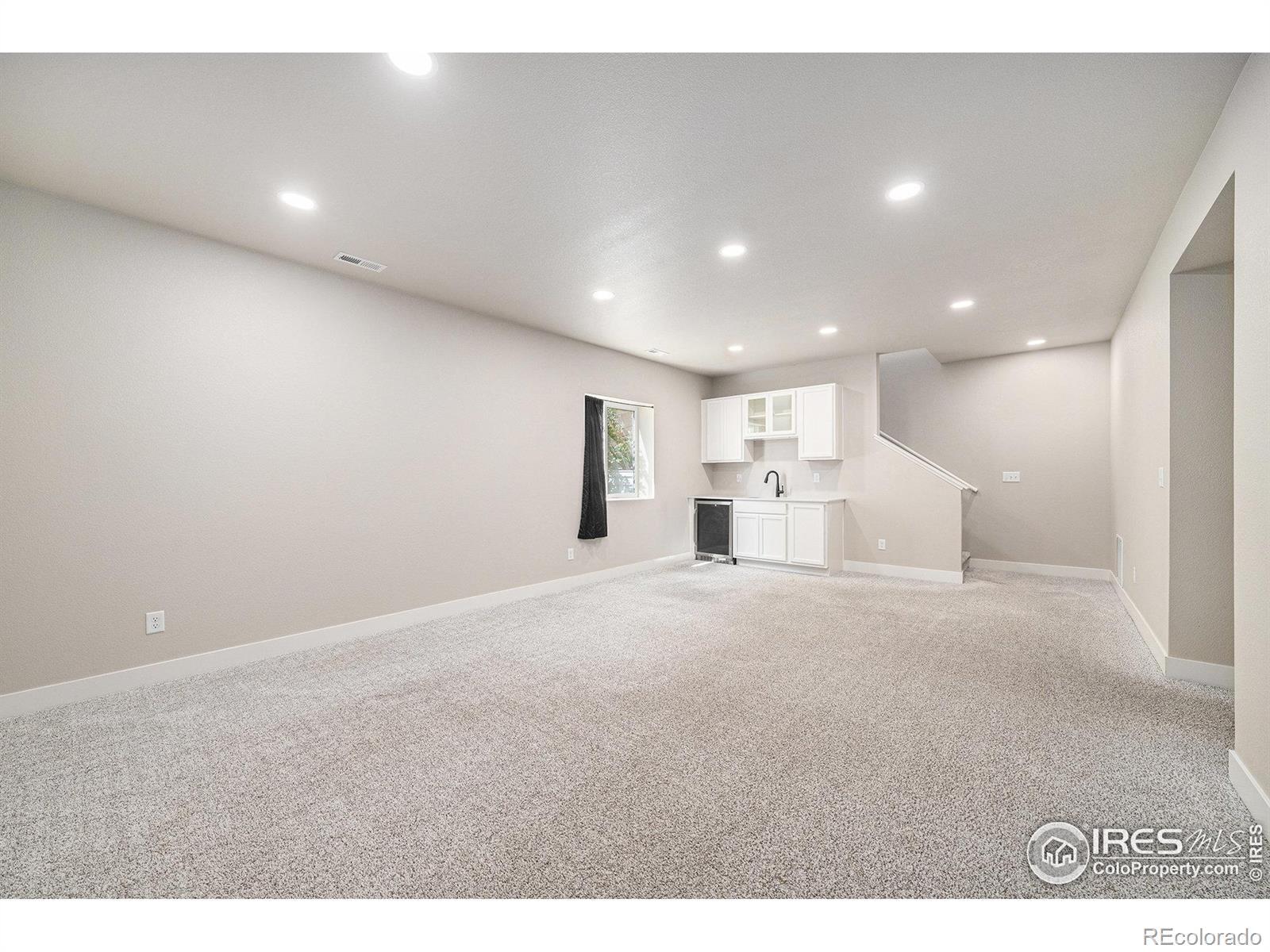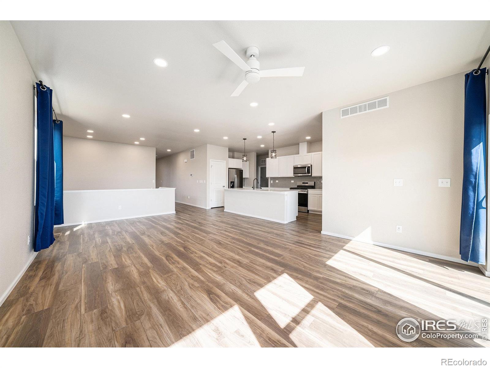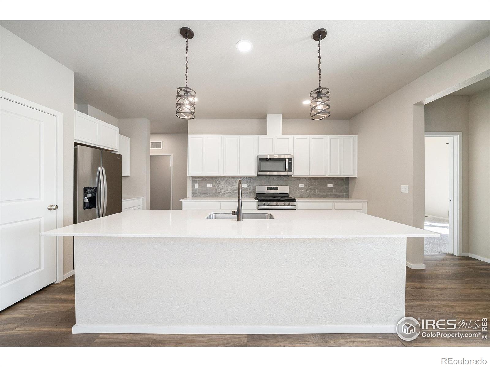 Welcome to this stunning ranch style Christie plan by Harford! Open concept! Large living/dining area, white kitchen w/gas range, stainless appliances & large island w/quartz counters. Large living/dining area w/lots of natural light. Main level features 2 bedrooms, full bath. Primary w/large 3/4 bath & walk-in closet. Main floor laundry. Beautiful vinyl plank flooring throughout. Garden level basement features family room w/wet-bar. 2 bedrooms and a 3/4 bath. Backing to open space, you will be captivated by the views! Nicely landscaped fenced yard, Trex deck, large patio right next to Poudre Trail/Sheep Draw Trail. 3 car garage with storage. Buyer to verify schools, measurements and HOA/Metro fees.