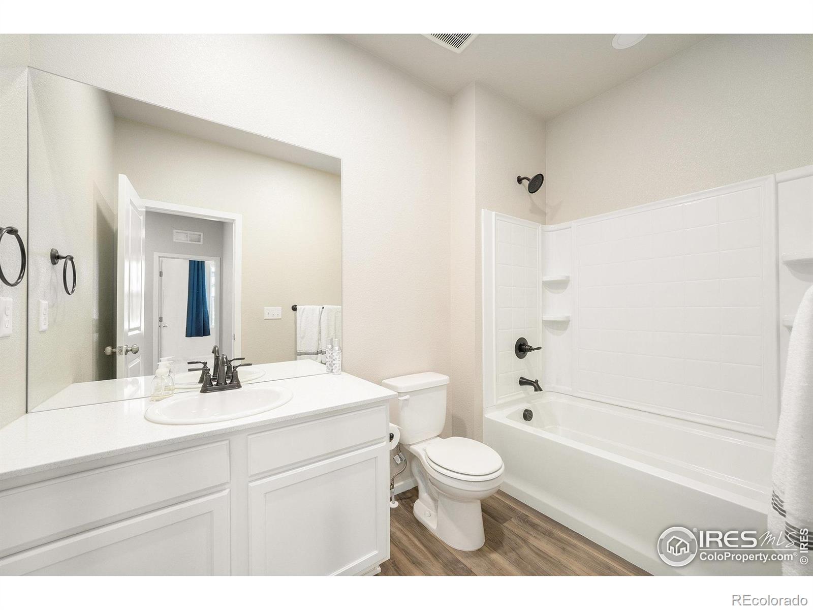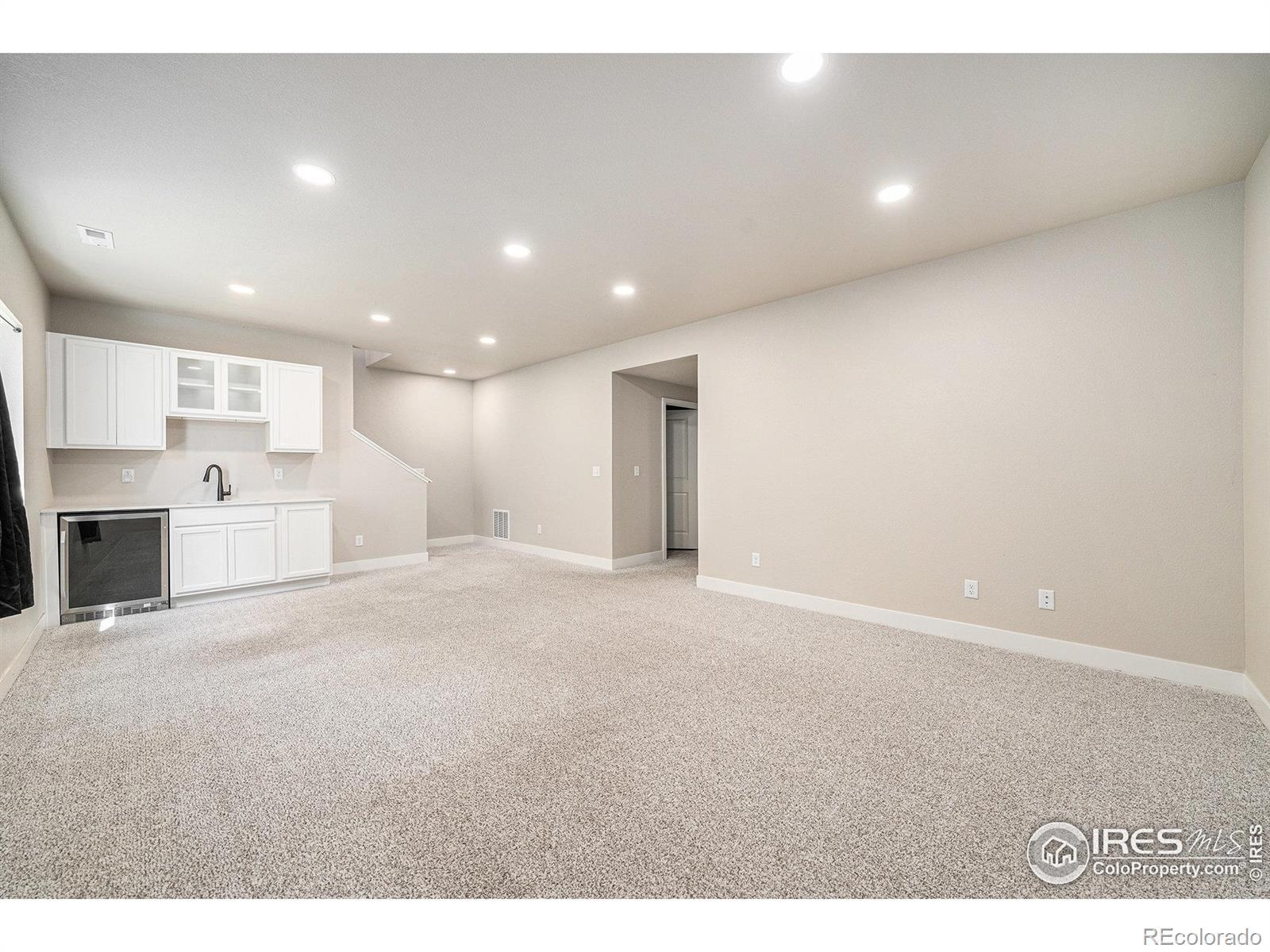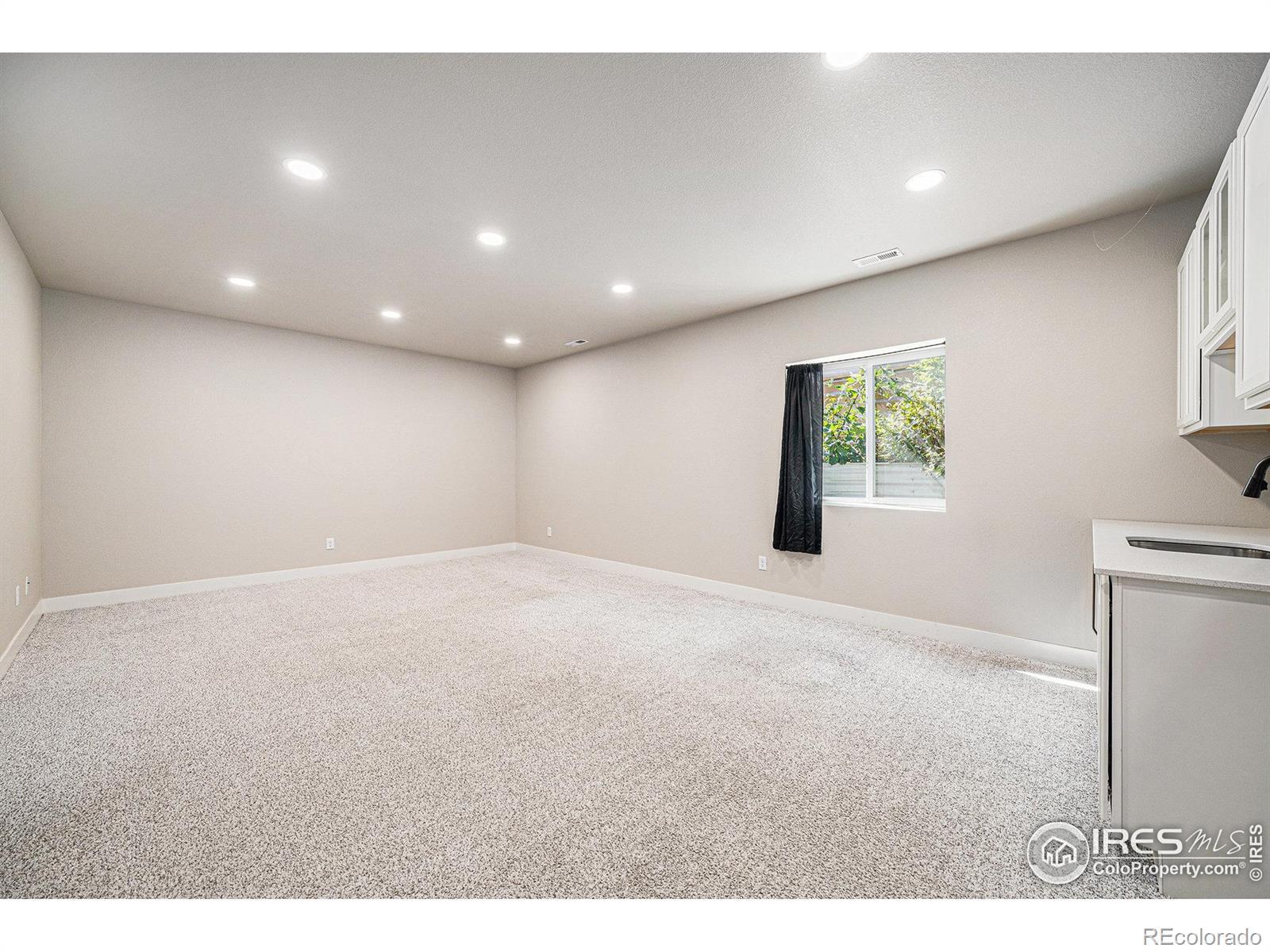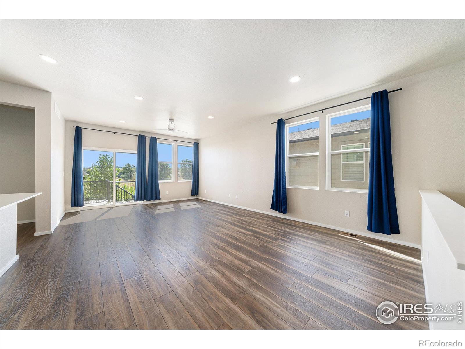 Welcome to this stunning ranch style Christie plan by Harford! Open concept! Large living/dining area, white kitchen w/gas range, stainless appliances & large island w/quartz counters. Large living/dining area w/lots of natural light. Main level features 2 bedrooms, full bath. Primary w/large 3/4 bath & walk-in closet. Main floor laundry. Beautiful vinyl plank flooring throughout. Garden level basement features family room w/wet-bar. 2 bedrooms and a 3/4 bath. Backing to open space, you will be captivated by the views! Nicely landscaped fenced yard, Trex deck, large patio right next to Poudre Trail/Sheep Draw Trail. 3 car garage with storage. Buyer to verify schools, measurements and HOA/Metro fees.