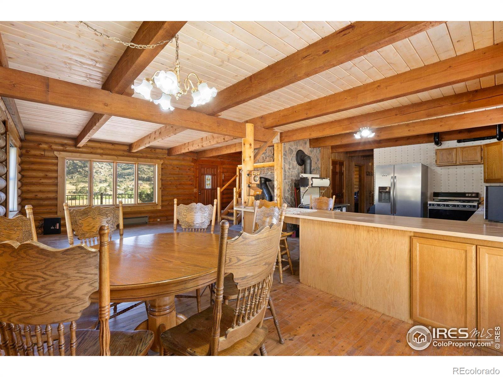 This stunning 3 bedroom log home is nestled on 35 acres of beautiful land, offering breathtaking views and endless possibilities. Featuring rustic charm and modern amenities. Part of the basement can be finished for more living space. Outside, you'll find two large metal outbuildings - one 27X43 and another 27x48 - ideal for hay storage, a small business, or workshop space. The property also boasts a deluxe chicken coop (the Ritz-Carlton of coops!), a two-stall horse barn that can store 8 large bales of hay, a fenced corral, and ample pasture where horses can roam freely. Rabbit Creek runs thru the property and the front pasture grows hay that can be cut. Additional features include a 5th wheel RV setup, fully connected to septic, water, and power - perfect for guests or for comfortable living while remodeling the main house.This is a one-of-a-kind opportunity to own a versatile property with space, beauty, and functionality. Schedule your showing today!