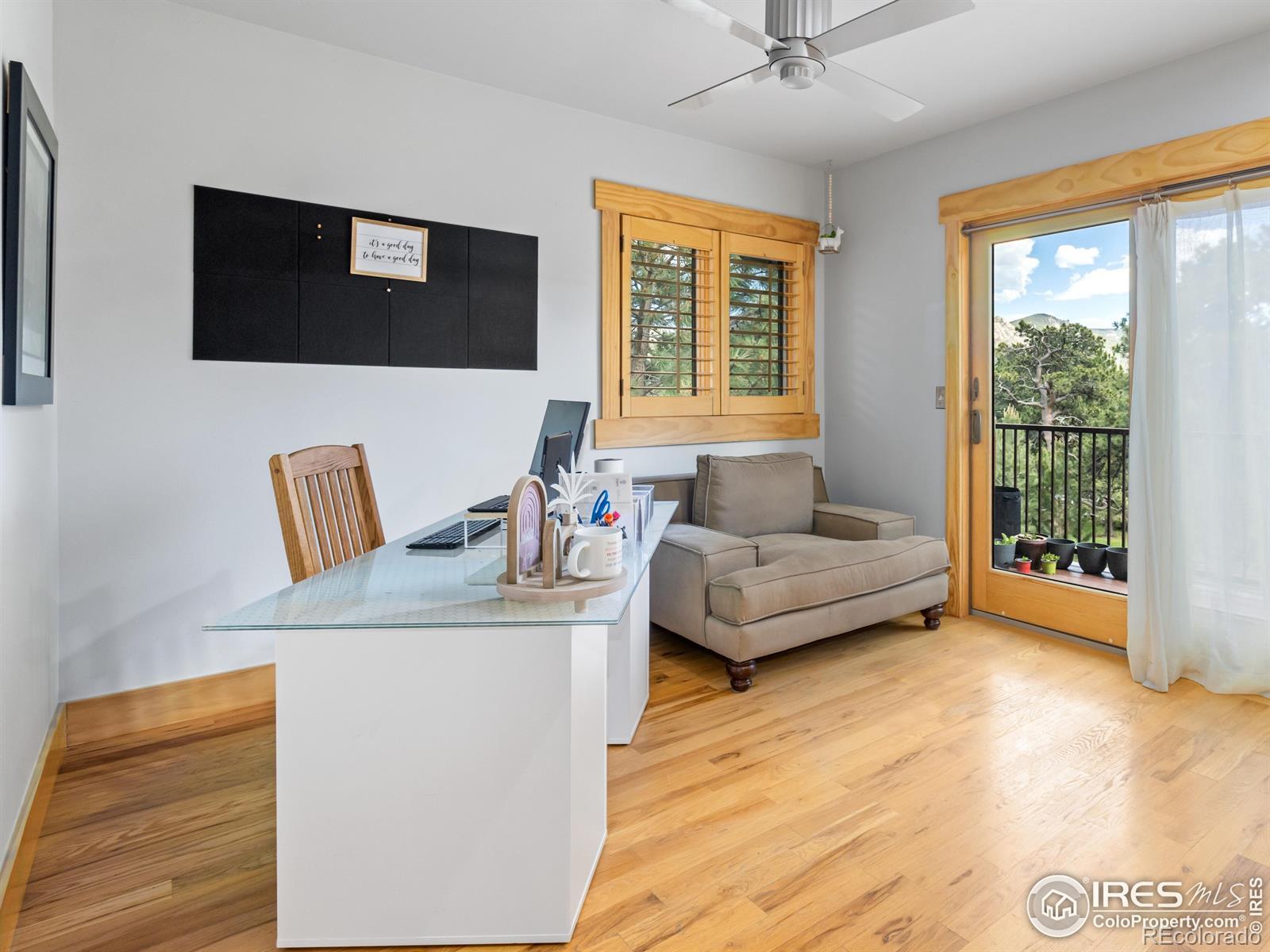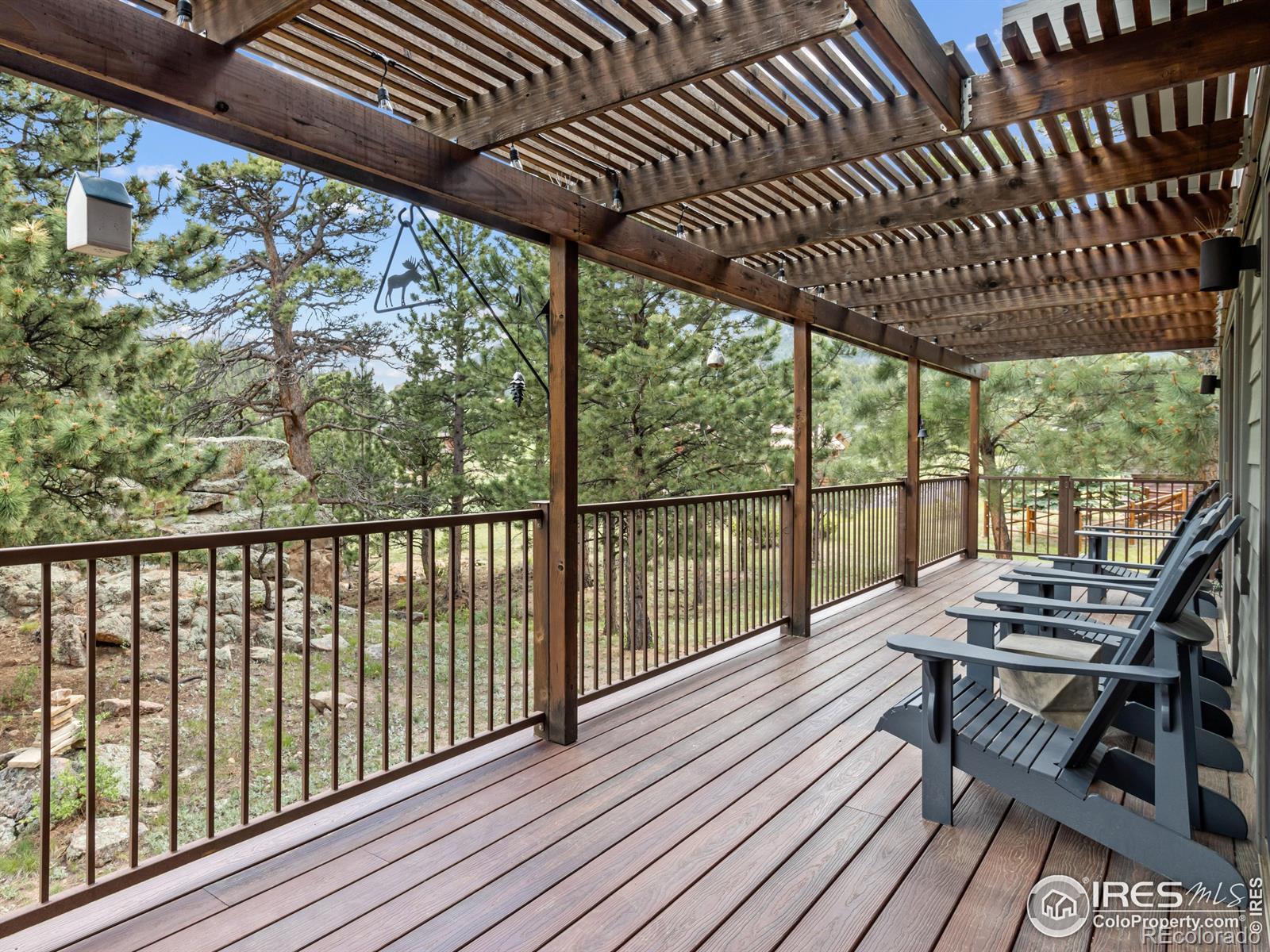 Escape to your Home in Estes! This beautiful custom home is a true haven, with impeccable design and mountain vibe. Step out into the backyard private sanctuary with 3 decks and lower patio, & rock outcroppings and mature ponderosa pines. Nature's beauty is your constant companion. The home is wonderfully orchestrated and of the highest quality throughout, featuring soaring ceilings, floor to ceiling stone fireplace, wall of windows, and wood floors! It has an inviting, sun-soaked, open-concept living, kitchen and dining area. Enter & take in the dramatic cathedral ceilings & the flood of sunlight throughout the entire space. Cozy up in front of the fireplace. The open loft provides a sunny space for your in-home office, with a private deck for getting fresh air. The kitchen, with high-end stainless steel appliances, gas stove, quartz countertops and ample storage, will delight any foodie. Stretch out in the spacious downstairs family room and workshop/hobby room which could be your media room, yoga retreat, music space, the possibilities are endless. Main floor primary bedroom features it's own deck for greeting the day. & There is a fenced dog run. The Thumb open space and hiking path is just up the hill & access to Nat'l Forest is just up the road. Drive 5 minutes to the fun filled local Estes Park main drag! Hiking, fly fishing, wildlife photography in Rocky Mountain National Park is 10 min. Make this mountain retreat your own private escape.