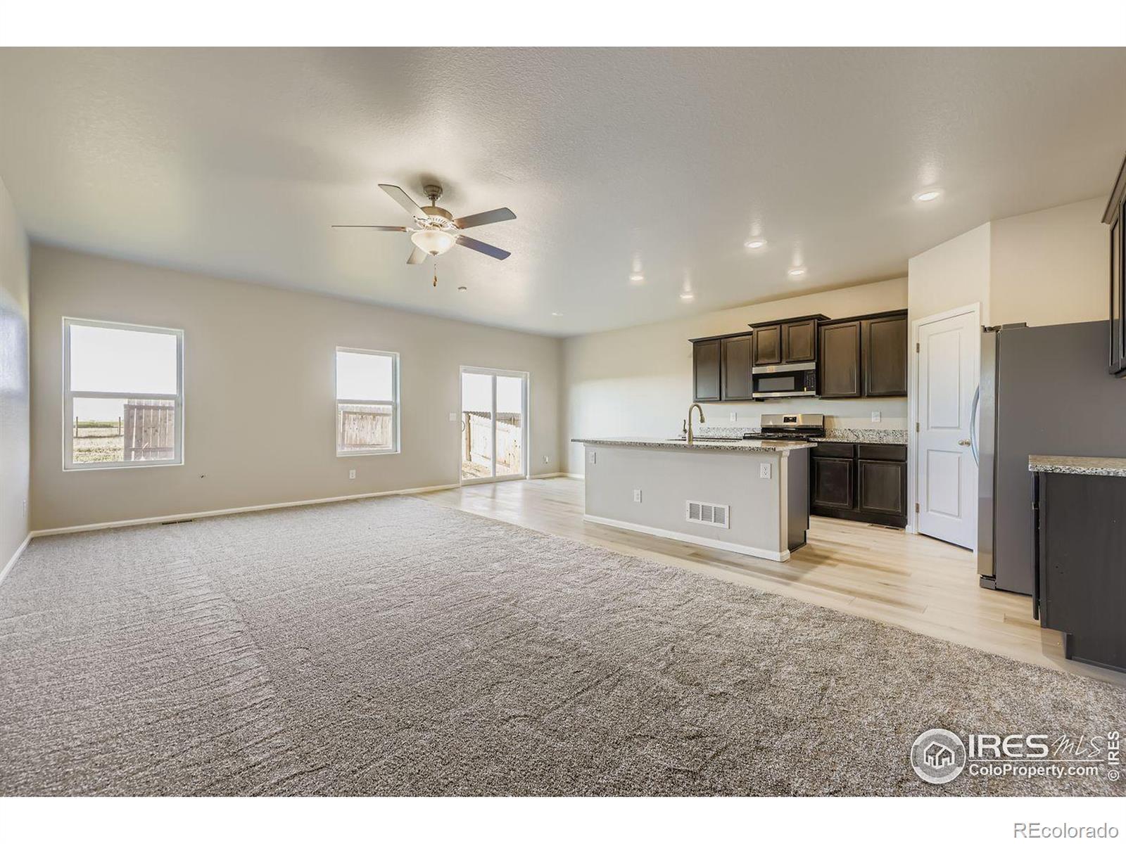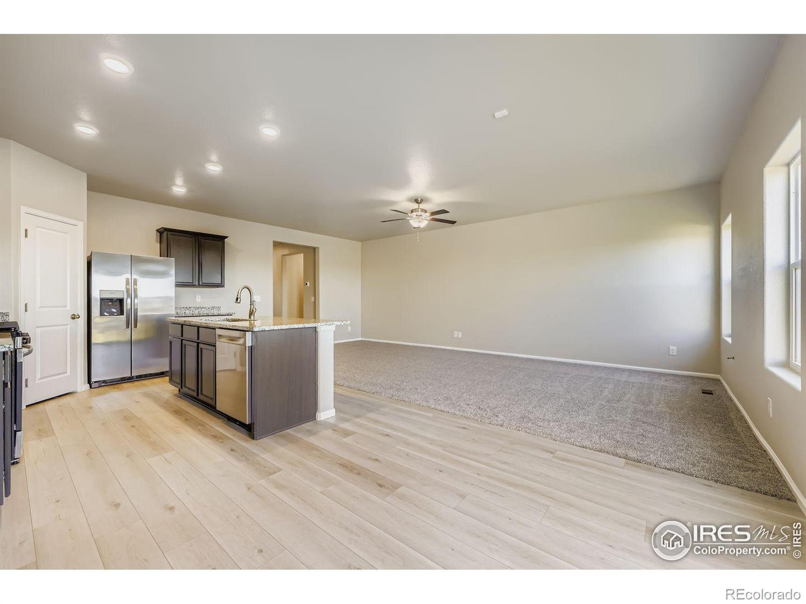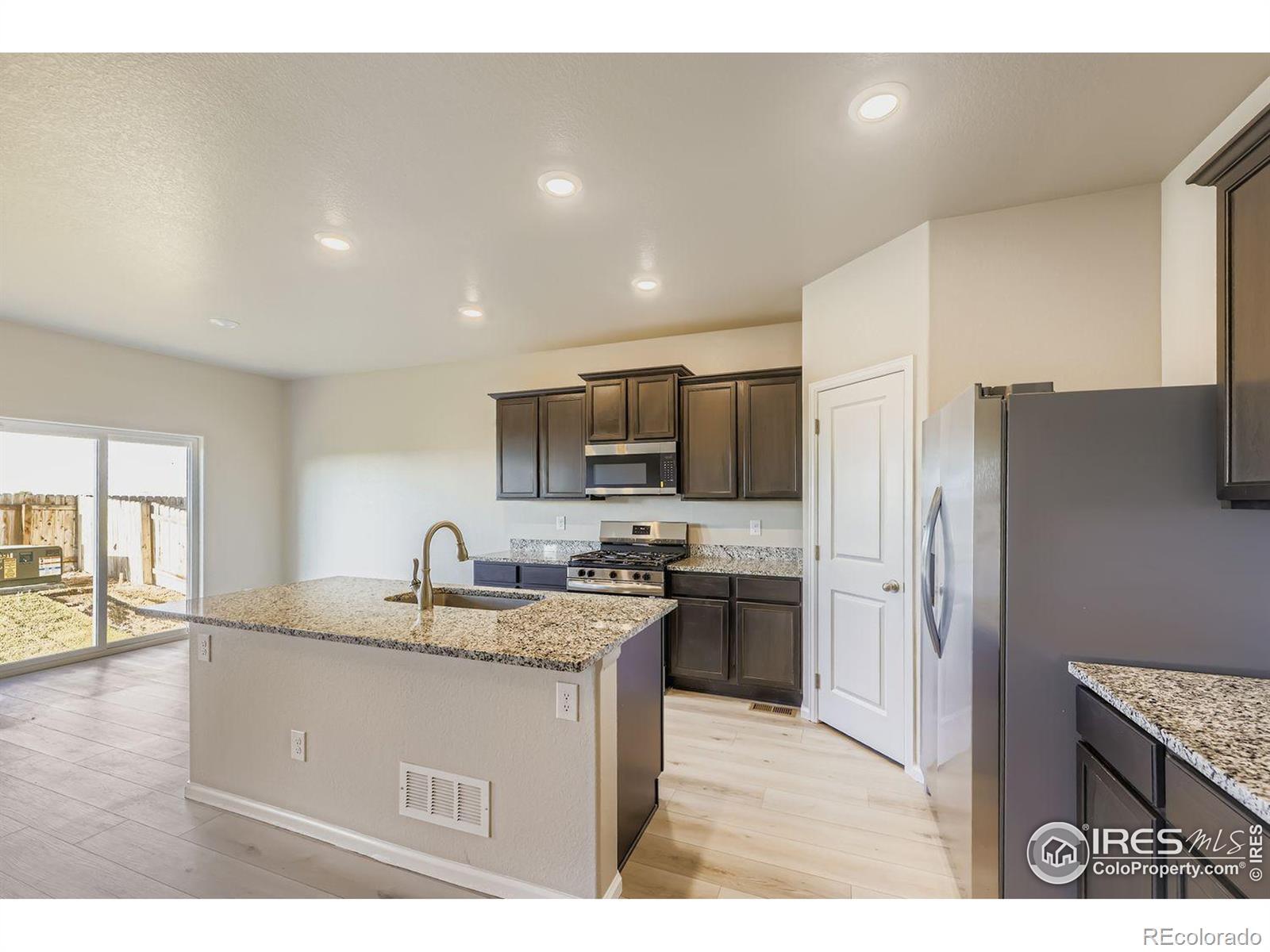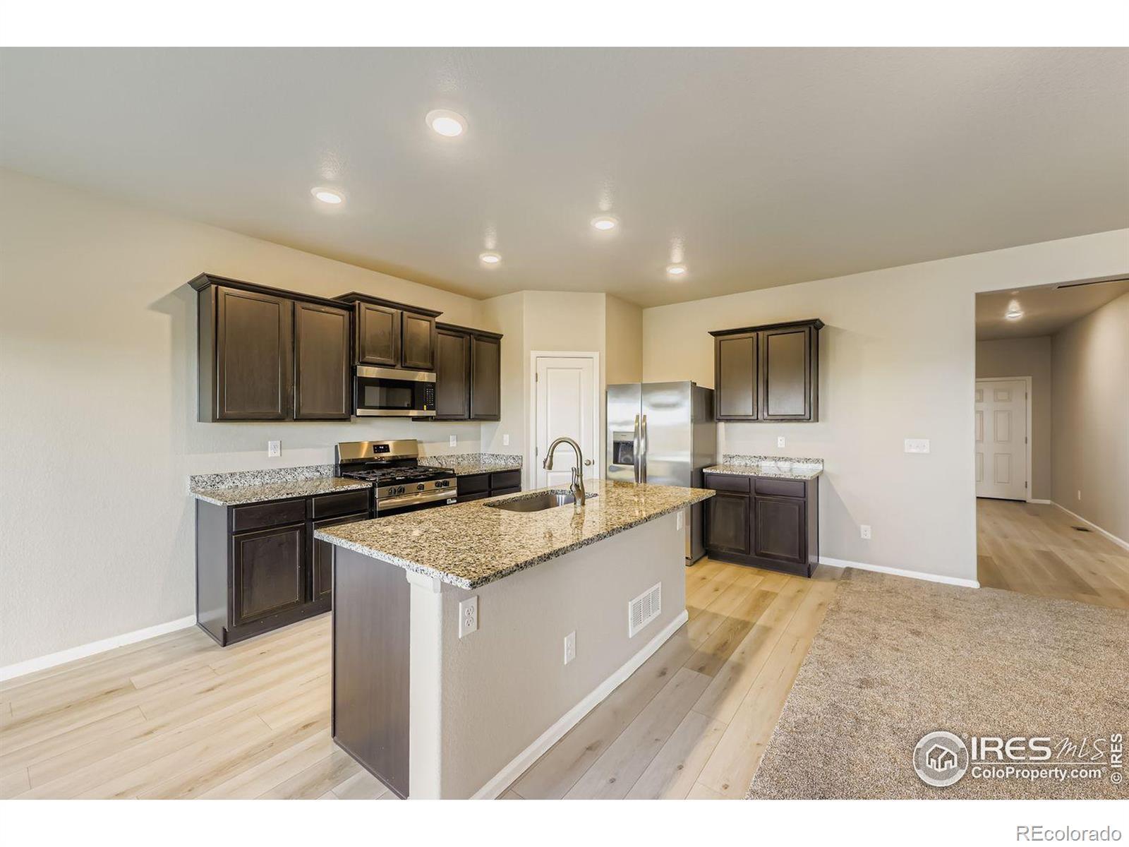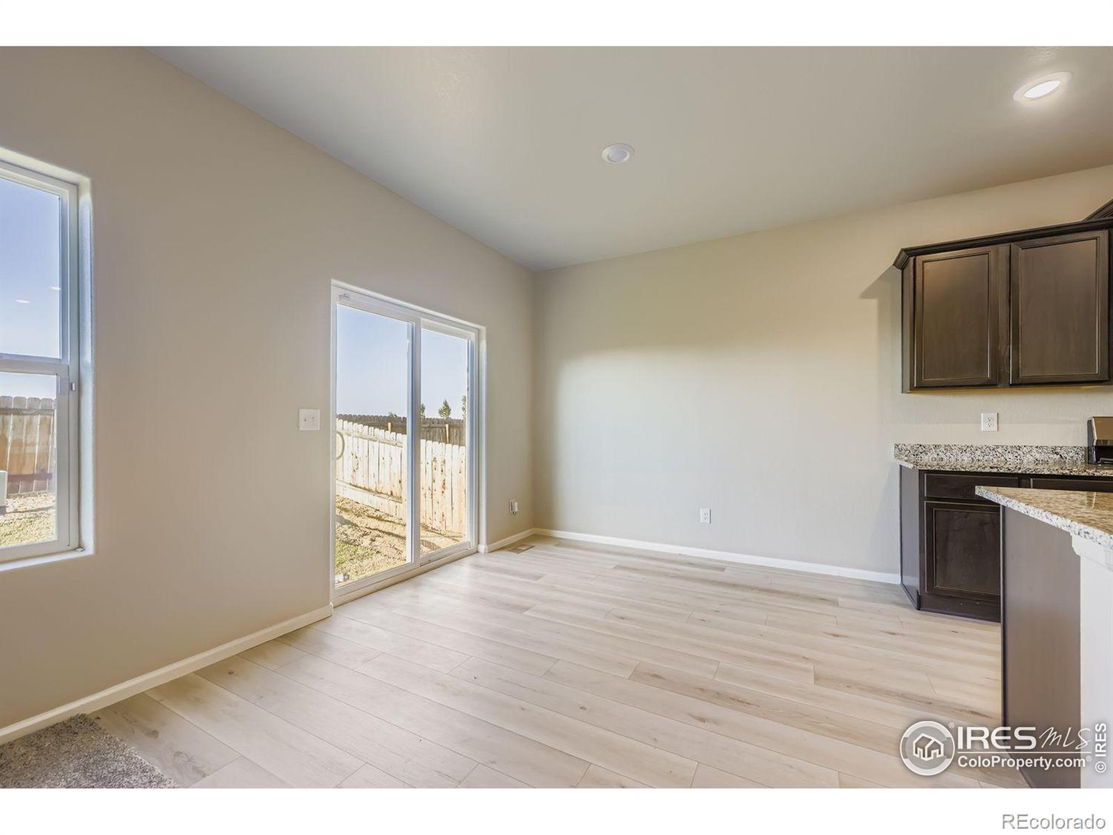 This home is eligible for a $0 Down USDA Loan! Built in 2021, this home boasts elegant luxury vinyl flooring and an open-concept design. The expansive kitchen shines with granite countertops, all brand-new appliances, a sizable island, deep espresso cabinetry, and space for a dining area. Step through the sliding glass door to the backyard for a game of Corn Hole while catching a stunning Colorado sunset. Enjoy privacy in a completely fenced in backyard featuring brand new sod. The primary suite includes a full bathroom with granite a countertop and a walk-in closet. Two more bedrooms share a second full bath, also with granite. A convenient laundry room and entry to the attached two-car garage complete the practical, well-thought-out layout. Plus, a spacious crawlspace provides additional storage. Conveniently situated just minutes from I-76, this property ensures a straightforward commute to Denver and surrounding areas. With affordable monthly HOA dues and turnkey readiness, it's an opportunity not to be overlooked. The freshly installed carpet adds the perfect finishing touch! Stop by to see it soon! The listing agent holds an ownership stake in the entity owning the property.