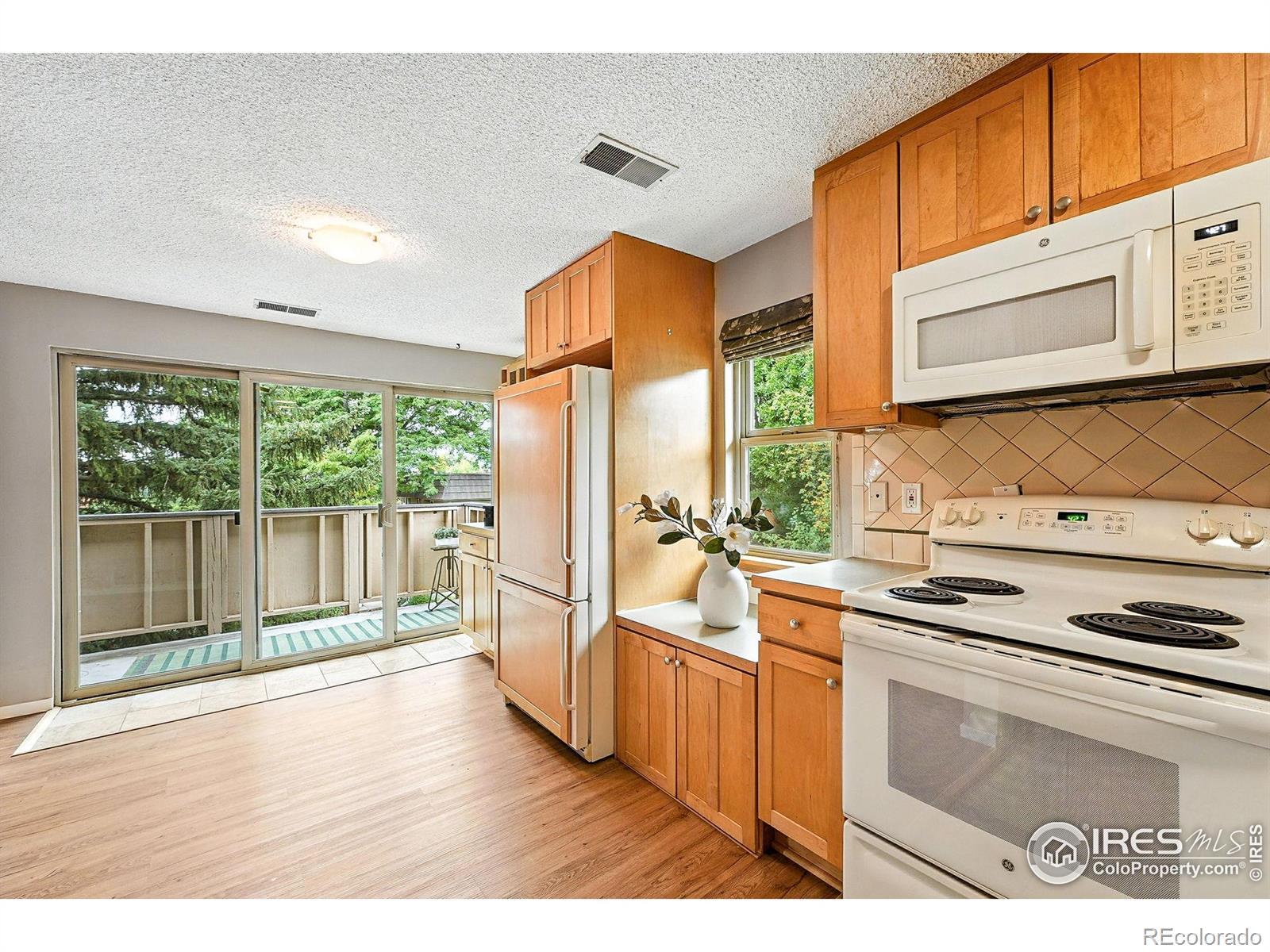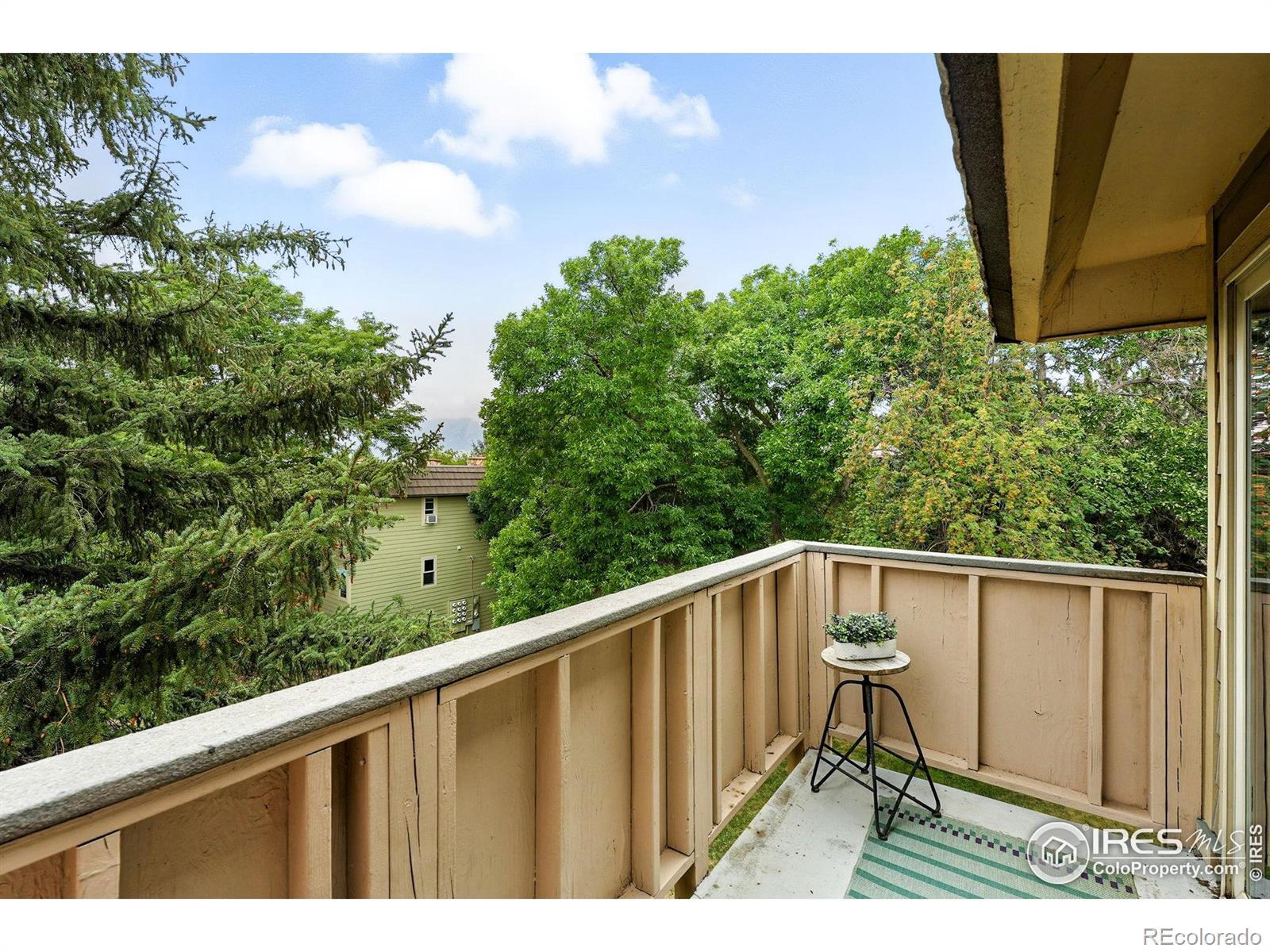 Serene top-floor corner 2 bedroom and 1 bathroom condo with gorgeous Flatiron mountain views. Beautifully maintained community, this stunning two-bedroom, one-bathroom corner condo location is sought after and offers the perfect blend of comfort, convenience, and breathtaking scenery. Step out onto your southwest-facing balcony and take in views of the iconic Flatiron Mountains, framed by mature trees that surround the neighborhood with a sense of privacy and tranquility inside. Enjoy the open-concept layout with wood panel floors and abundant natural light streaming through large corner windows, creating a bright and airy atmosphere. The open kitchen includes beautiful maple cabinets, extensive counter space and a corner built in desk area. The large living room features a moss rock gas fireplace, perfect for chilly Colorado evenings. A covered carport and additional storage space provide everyday ease. The subdivision immense amenities include an indoor saline pool, relaxing sauna, clubhouse, basketball courts, tennis and pickleball courts, a fully equipped gym, and picnic areas for gatherings. Perfectly situated near local restaurants, coffee shops, grocery stores, and Howard Houston Park. Super close to Foothills Parkway and Highway 119 for easy access to Denver, Longmont, and Boulder's vibrant downtown. Welcome Home!