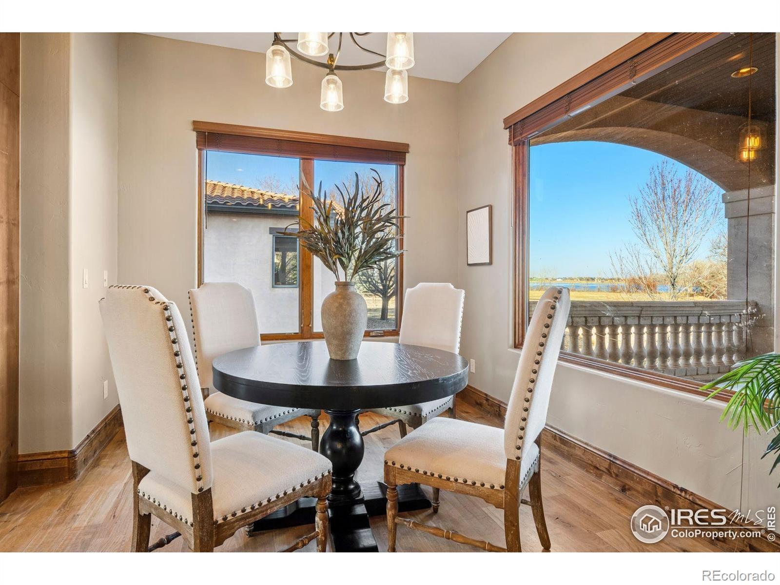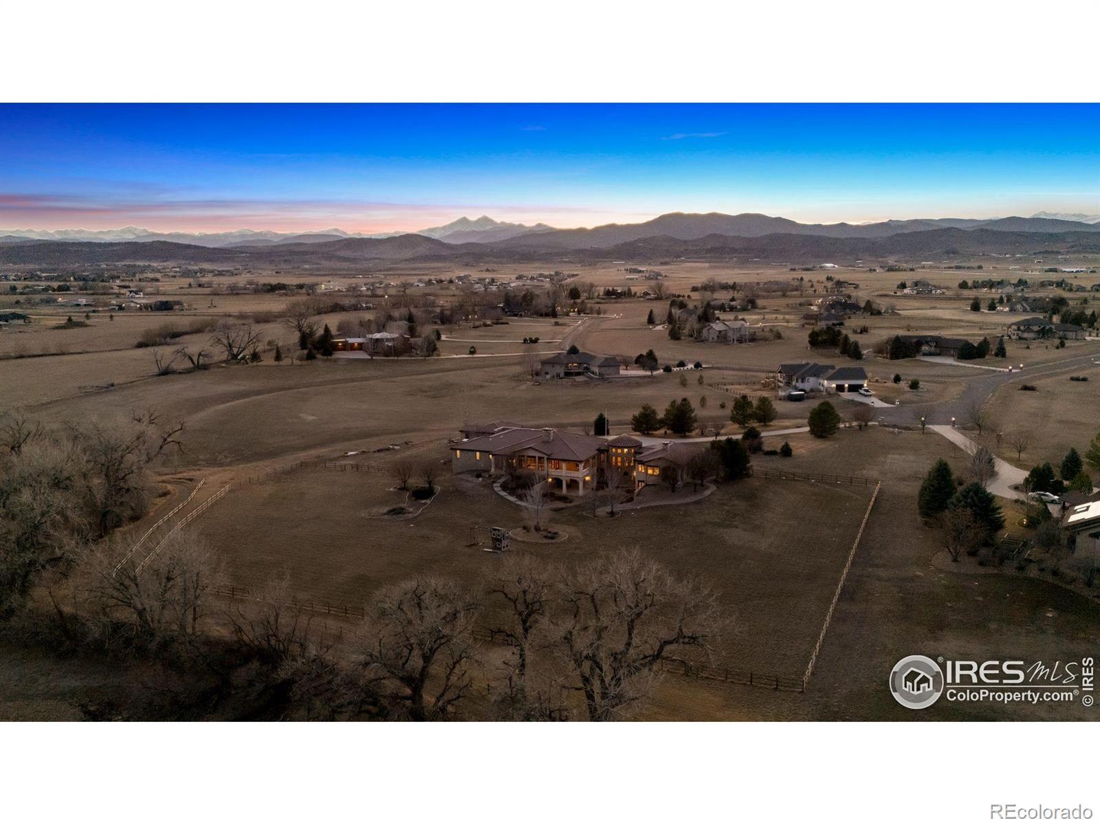 Set on a picturesque 3.56-acre lot with breathtaking mountain and water views, this exquisite estate offers the perfect fusion of luxury, comfort, and modern innovation. Thoughtfully designed with seven bedrooms and eight bathrooms, the home includes five bedrooms with private ensuite bathrooms, while the grand owner's suite provides a spa-like retreat featuring its own cozy fireplace. A private mother-in-law suite adds versatility and convenience for hosting extended family or guests. At the heart of the home is a chef-inspired kitchen, complete with access to a private covered patio, ideal for relaxing or entertaining in style. The main level also features a bright, spacious office for work or study. This walk-out home is equipped with cutting-edge smart home technology, seamlessly integrating modern convenience with timeless elegance. The expansive basement is tailored for entertainment and leisure, boasting a state-of-the-art theater, a stylish bar, a fortified safe room, a dedicated workout area, and a wine cellar. Outside, the sprawling property backs to Lonetree Reservoir, with lake access and full boating privileges available for purchase through the Lonetree Lake Club. For car enthusiasts, the estate offers an impressive seven garage spaces-four attached and three detached-providing ample storage and versatility. Blending refined interiors, unmatched amenities, and stunning natural surroundings, this home represents the pinnacle of luxury living.