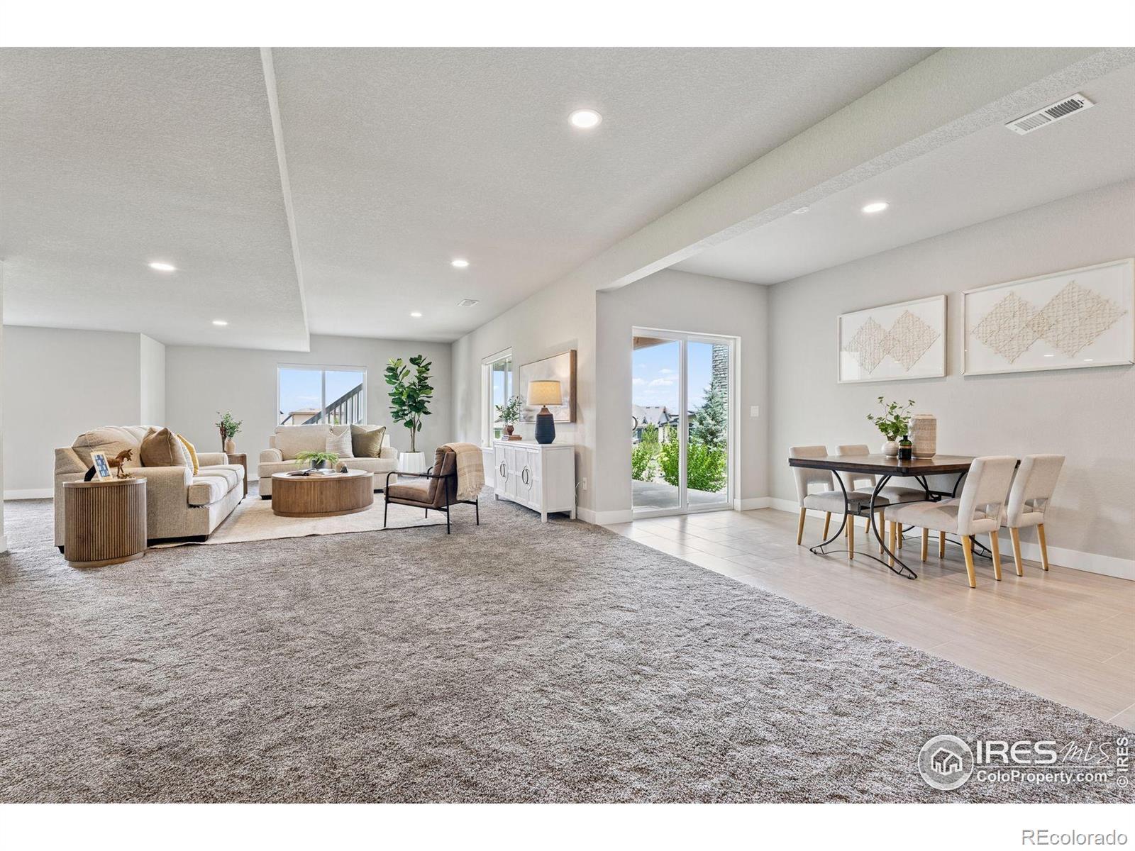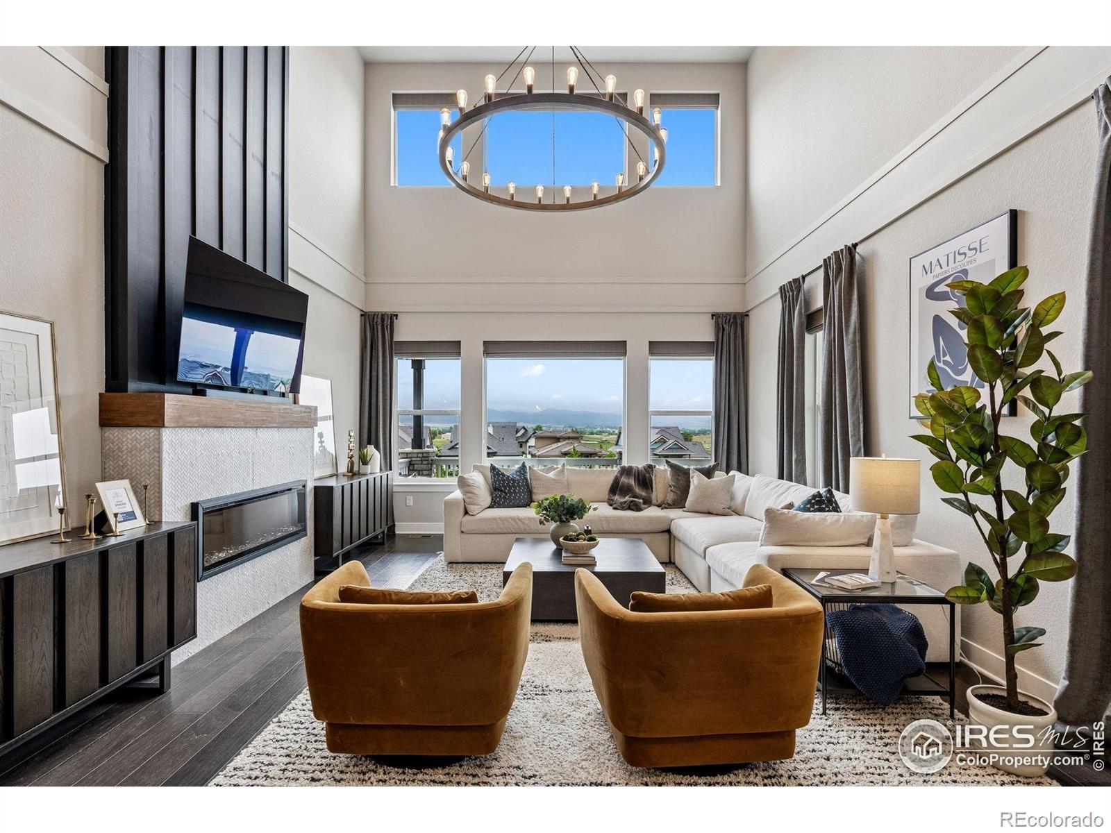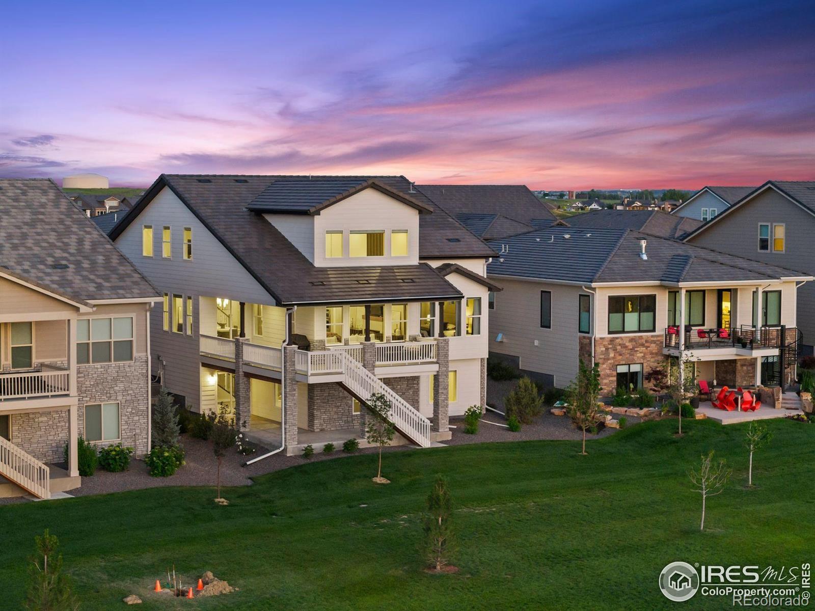 Thoughtfully designed for effortless main-floor living with the added bonus of a finished walk-out basement. Furniture is negotiable for a turnkey option of rental or second home. This stunning home combines comfort, space, and breathtaking Front Range views. The primary suite, laundry, office, and main living areas are all conveniently located on the main floor, making daily living seamless and accessible. The open-concept layout showcases a gourmet kitchen, soaring ceilings, and expansive windows that frame uninterrupted views of the Front Range. A cozy fireplace adds warmth to the inviting living area, ideal for entertaining or relaxing. The serene primary suite overlooks peaceful open space with expansive mountain views and features a spa-inspired walk-in shower and custom-designed closet. Upstairs, guests enjoy their own private retreat with two additional bedrooms, two bathrooms, and a spacious loft, perfect for visitors or a second work-from-home space. The walk-out lower level expands the living and entertaining options with an additional bedroom, full bath, wet bar, and a large recreational area. Enjoy two separate covered outdoor living spaces, ideal for watching sunsets or hosting gatherings. Located in Northern Colorado's premier golf community, TPC Heron Lakes, this home offers maintenance-free living, access to miles of open space and trails, a resort-style pool, clubhouse, fitness center, and more. This is Colorado luxury living at its finest. Schedule your showing and personal tour of the amenities at Heron Lakes today.