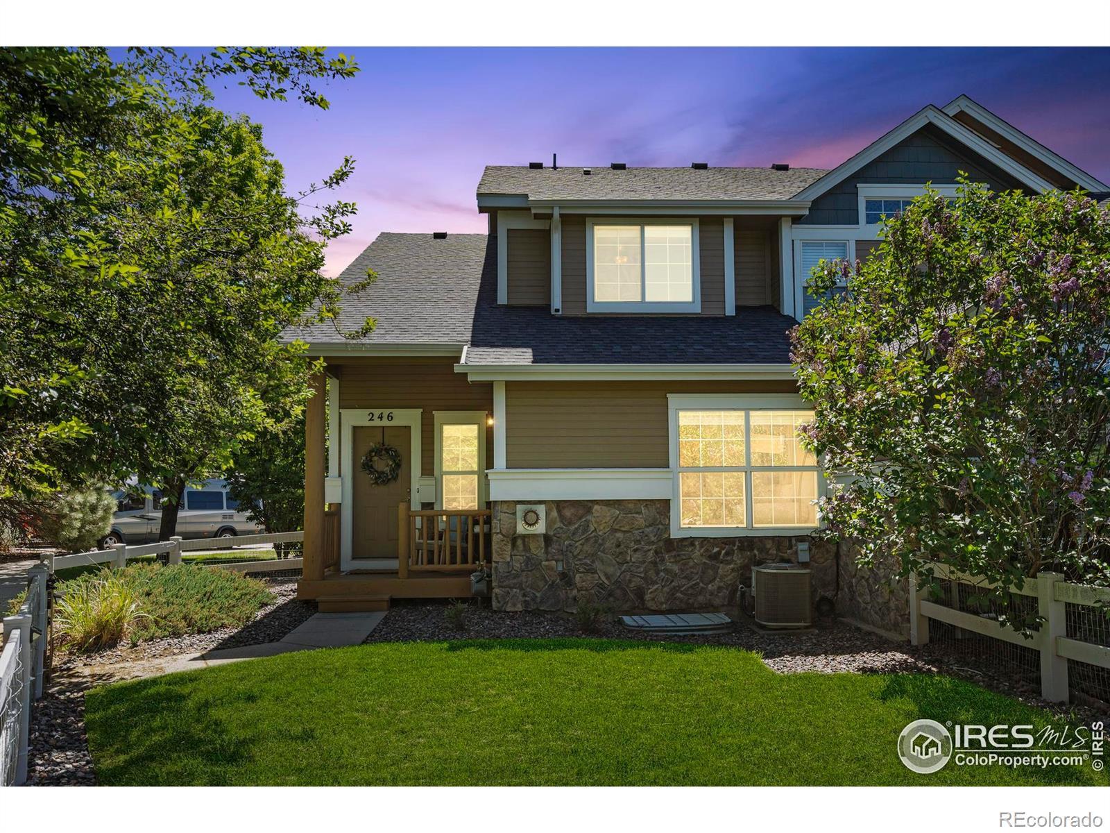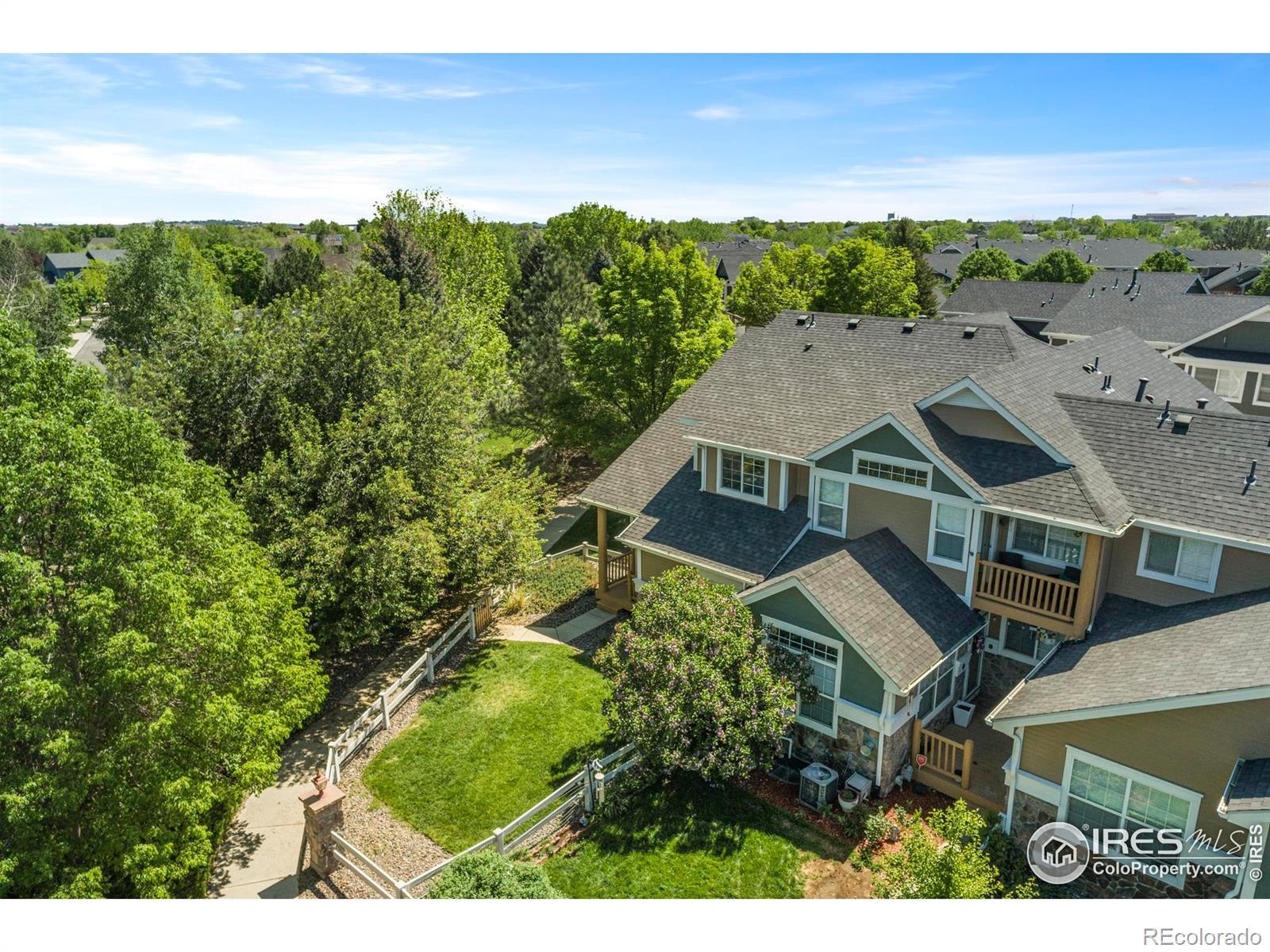Beautiful end-unit townhome with a private, fenced yard surrounded by mature trees and opens to a green space. Attached 2-car garage. This tranquil setting offers rare privacy in the vibrant, amenity-rich Water Valley community. The home features vaulted ceilings, large windows, and updated finishes throughout. Enjoy an open main level that flows from the living room with gas fireplace to the dining area, refreshed kitchen, and powder room. Upstairs boasts two spacious primary bedrooms, both with en-suite bathrooms and walk-in closets, plus convenient laundry on the landing. The finished basement, including a full bath and egress window, can be used as a nonconforming 3rd bedroom, office, rec room, or flex space. Low-maintenance living with HOA covering snow removal, irrigation, mowing (including inside the fence), water, trash, and partial exterior building maintenance and insurance. Updates include flooring, interior paint, fireplace surround and mantel, kitchen refresh, window blinds, ceiling fans, basement bathroom vanity and wainscoting, and new hot water heater in Dec 2022. Seller is offering a one year home warranty. Resort-style amenities just steps away include multiple lakes for paddleboarding, fishing, kayaking, and swimming, plus sandy beaches, walking/biking trails, tennis & pickleball courts, Pelican Lakes Golf Courses, and restaurants. This golf cart friendly community is connected to the Raindance neighborhood featuring additional dining, Raindance National Golf Course, and Hoe Down Hill. Optional pool and athletic club memberships available. Conveniently located near Fort Collins, Loveland, Greeley, shopping, and entertainment. A rare opportunity to enjoy a lifestyle that feels like a vacation every day!