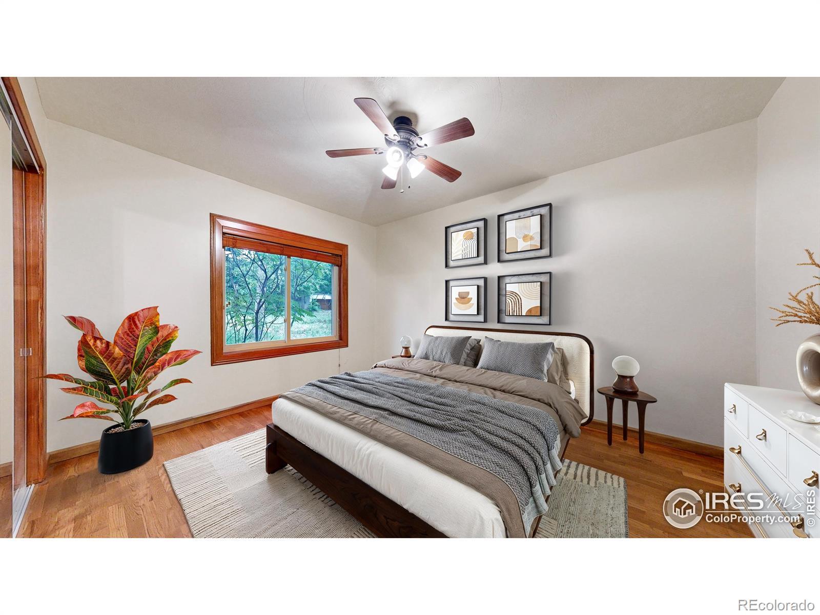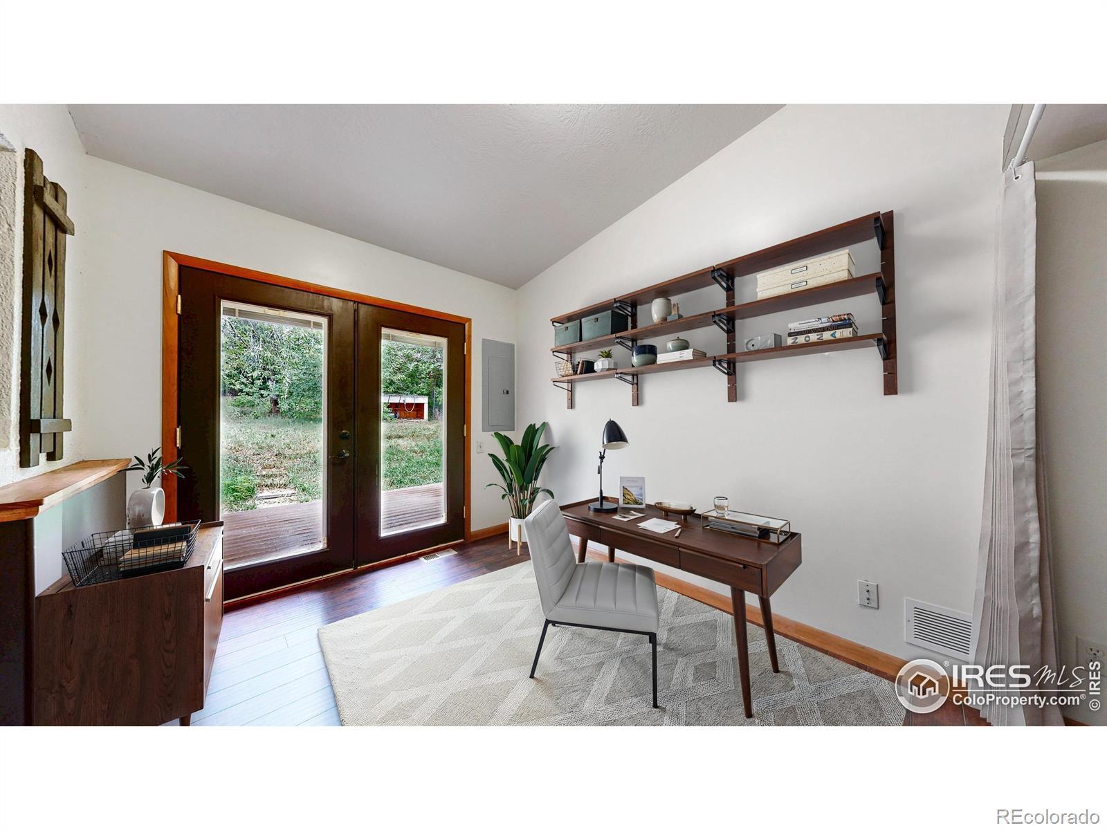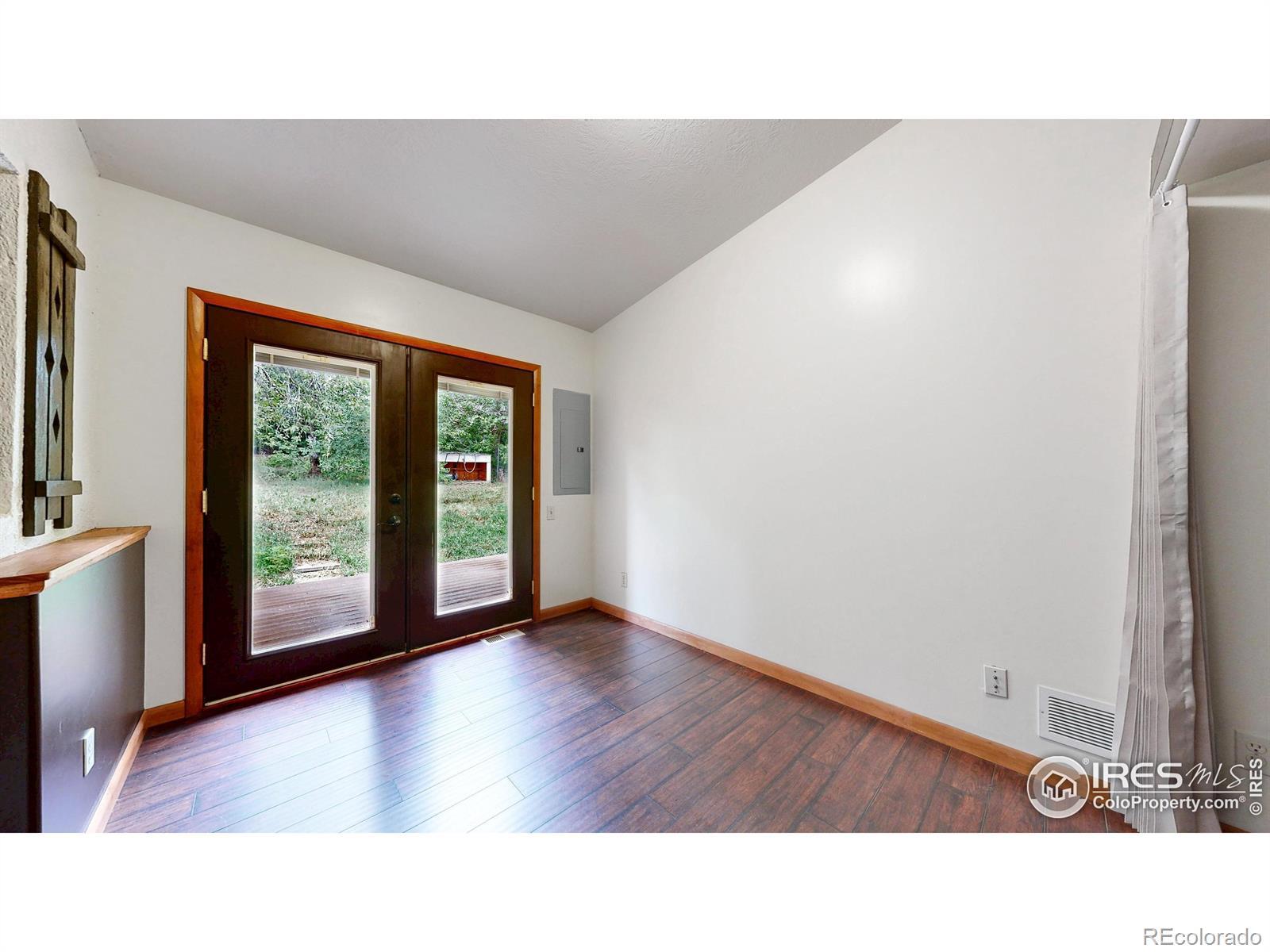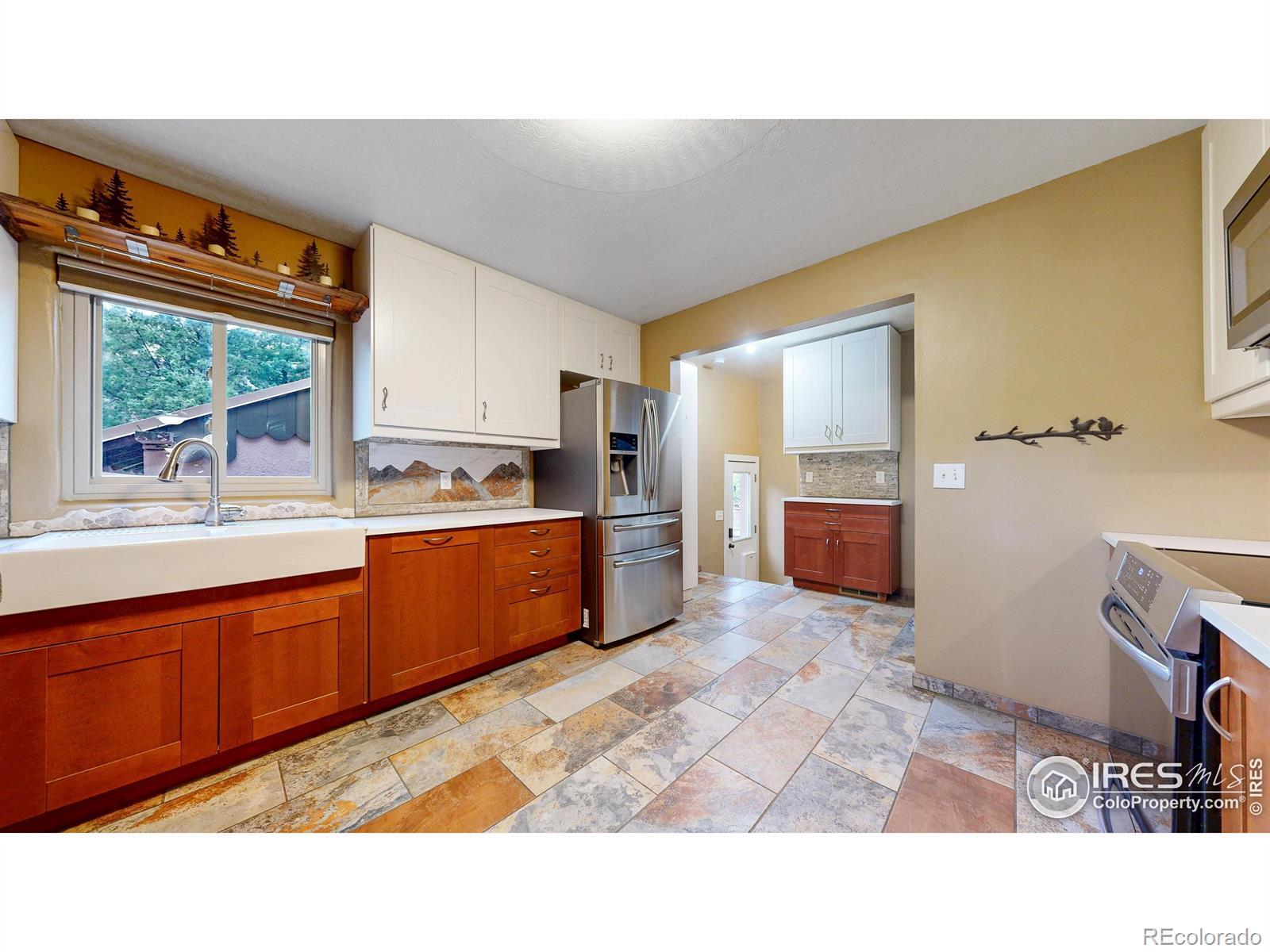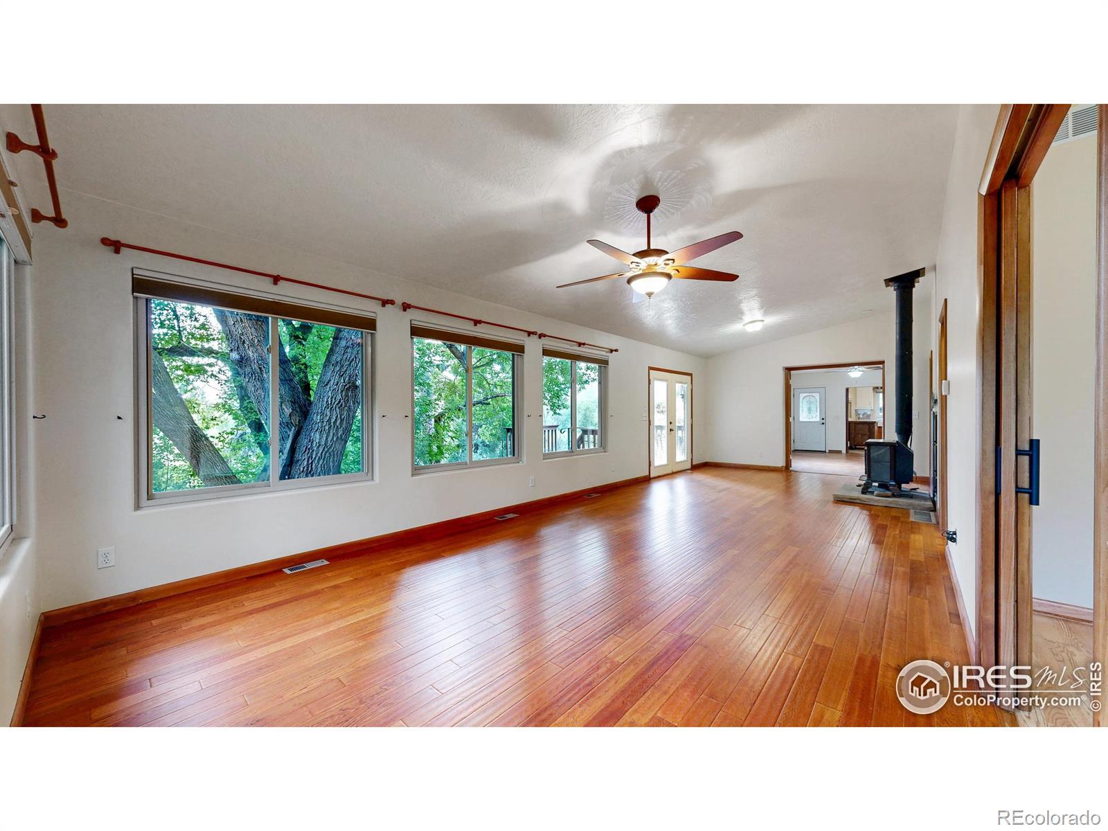 Charmingly situated against the backdrop of Loveland's scenic landscapes, this home offers an interior that blends rustic warmth w/modern comfort, making it a unique retreat while still being highly functional for daily living. The spacious living room is highlighted by beautiful wood floors and oversized windows that capture the trees & sweeping mountain views, a wood-burning fireplace that creates a cozy centerpiece for gatherings. The open layout flows into a generous dining area & kitchen, where stainless steel appliances, custom cabinetry, ample counter space, & a breakfast bar island provide both style and practicality for cooking & entertaining. Primary suite offers a private haven w/a large bedroom, walk-in closet, and en-suite bath featuring dual vanities, and a separate shower, Two additional bedrooms are comfortable, versatile, and filled w/natural light, making them ideal for guests, family, or home office. Bathrooms throughout home have been updated w/modern fixtures and finishes. Wood accents, stone details, and warm-toned flooring throughout the house add to its inviting Colorado charm, while the unfinished basement provide opportunities for a media room, fitness area, or hobby space. Outside decks and patios create the perfect setting for outdoor dining or simply enjoying the mountain air, w/a large yard offering space for recreation or gardening. Home abuts to 168-acre Conservation Easement. Minutes away, residents can enjoy Carter Lake and Boyd Lake State Park for boating, fishing, and hiking, as well as the Big Thompson Canyon leading directly to Estes Park and Rocky Mountain National Park for endless outdoor adventure. Nearby Downtown Loveland provides shopping, art galleries, breweries, and dining, ensuring a balance between convenience and a serene mountain lifestyle. With its spacious, light-filled interior and prime location near Northern Colorado's best natural attractions, makes this home an ideal retreat to fully embrace Colorado living.