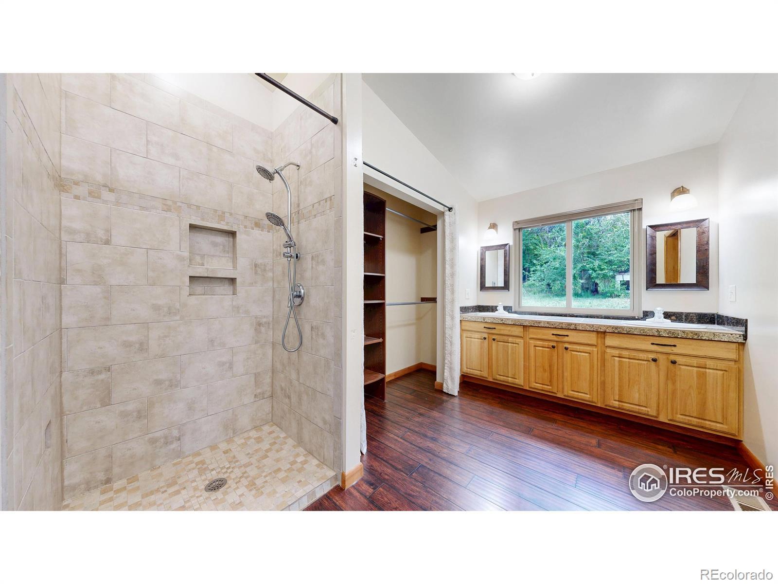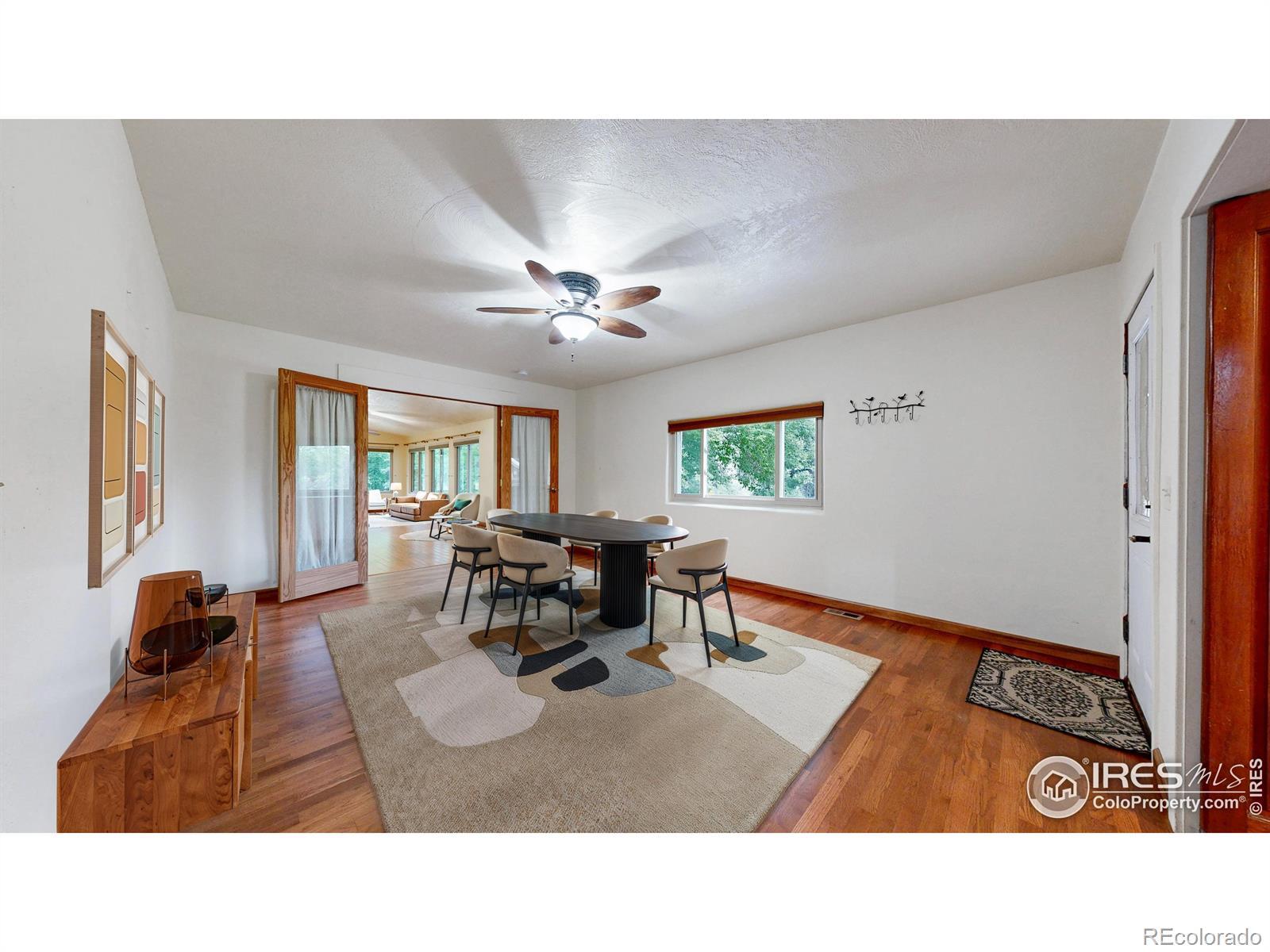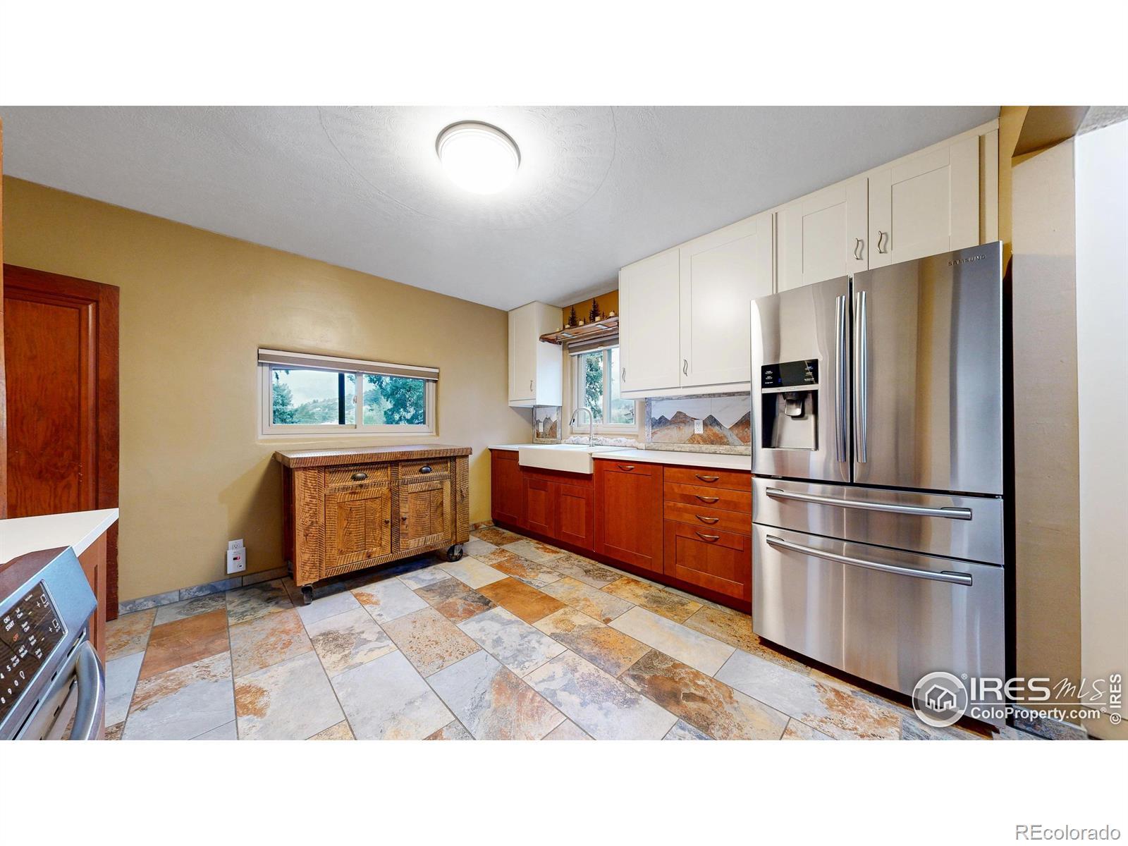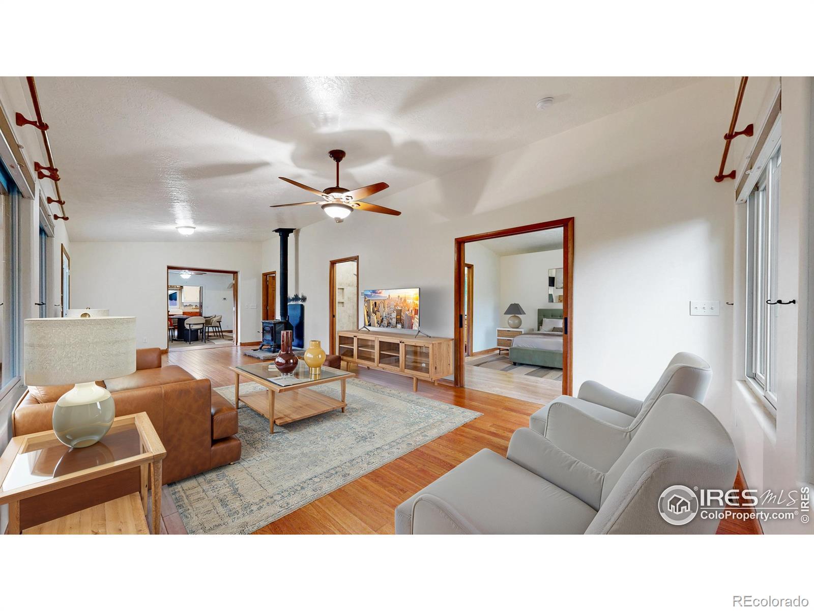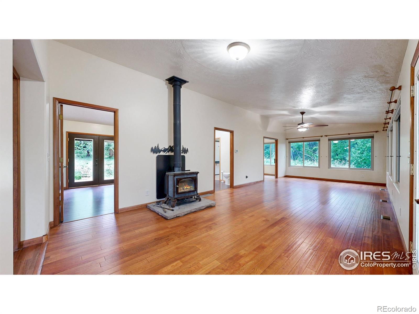 Charmingly situated against the backdrop of Loveland's scenic landscapes, this home offers an interior that blends rustic warmth w/modern comfort, making it a unique retreat while still being highly functional for daily living. The spacious living room is highlighted by beautiful wood floors and oversized windows that capture the trees & sweeping mountain views, a wood-burning fireplace that creates a cozy centerpiece for gatherings. The open layout flows into a generous dining area & kitchen, where stainless steel appliances, custom cabinetry, ample counter space, & a breakfast bar island provide both style and practicality for cooking & entertaining. Primary suite offers a private haven w/a large bedroom, walk-in closet, and en-suite bath featuring dual vanities, and a separate shower, Two additional bedrooms are comfortable, versatile, and filled w/natural light, making them ideal for guests, family, or home office. Bathrooms throughout home have been updated w/modern fixtures and finishes. Wood accents, stone details, and warm-toned flooring throughout the house add to its inviting Colorado charm, while the unfinished basement provide opportunities for a media room, fitness area, or hobby space. Outside decks and patios create the perfect setting for outdoor dining or simply enjoying the mountain air, w/a large yard offering space for recreation or gardening. Home abuts to 168-acre Conservation Easement. Minutes away, residents can enjoy Carter Lake and Boyd Lake State Park for boating, fishing, and hiking, as well as the Big Thompson Canyon leading directly to Estes Park and Rocky Mountain National Park for endless outdoor adventure. Nearby Downtown Loveland provides shopping, art galleries, breweries, and dining, ensuring a balance between convenience and a serene mountain lifestyle. With its spacious, light-filled interior and prime location near Northern Colorado's best natural attractions, makes this home an ideal retreat to fully embrace Colorado living.