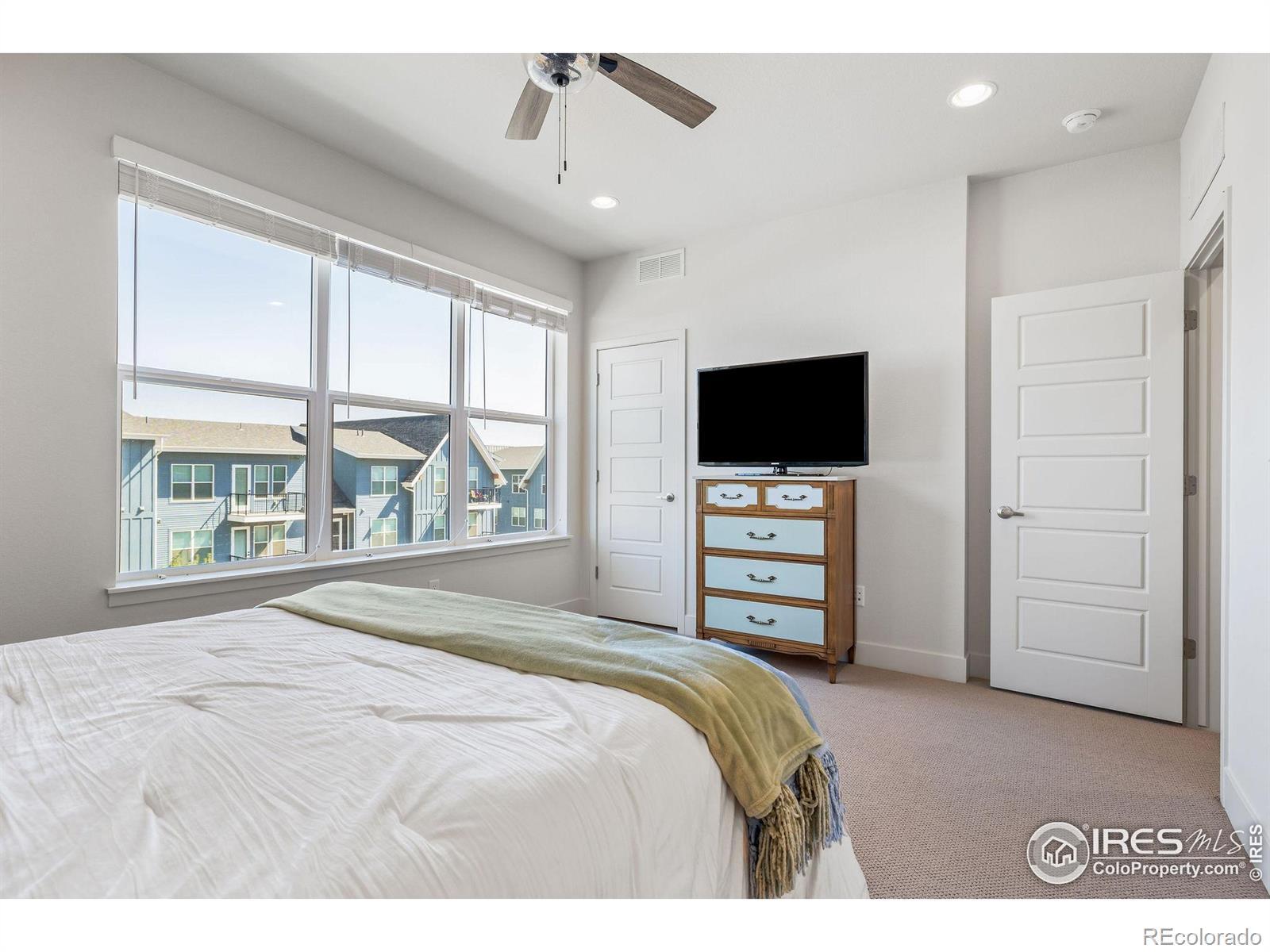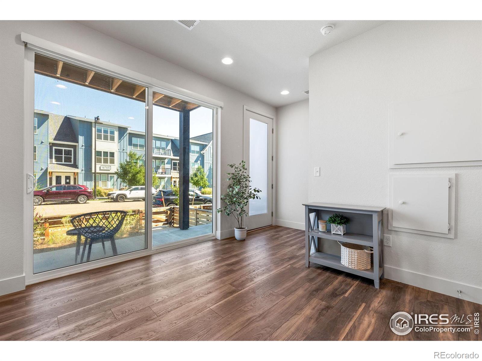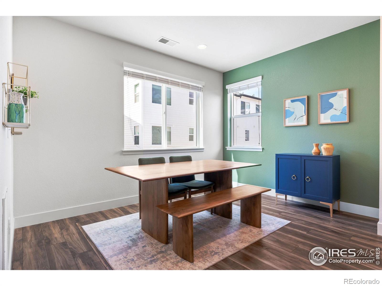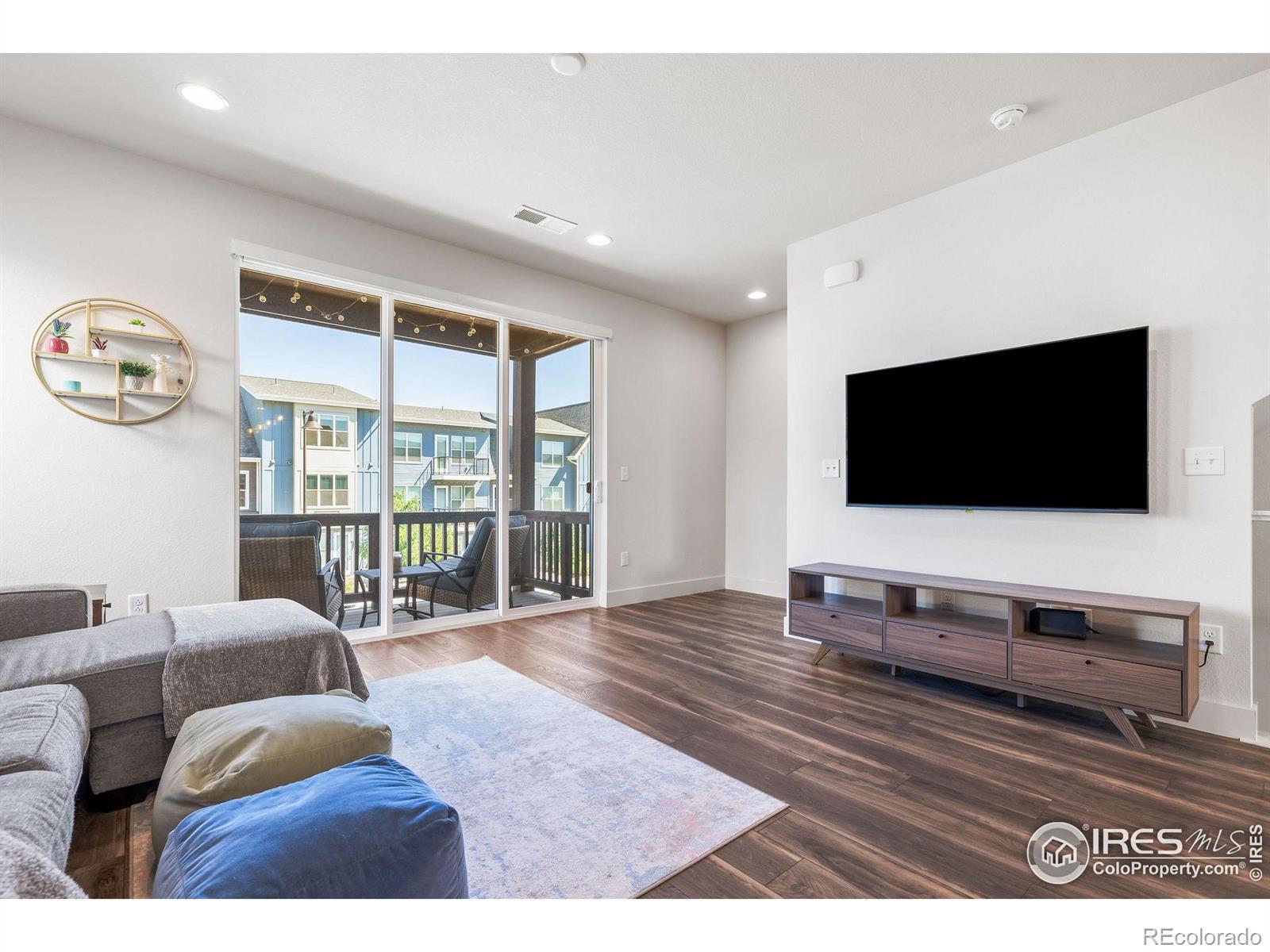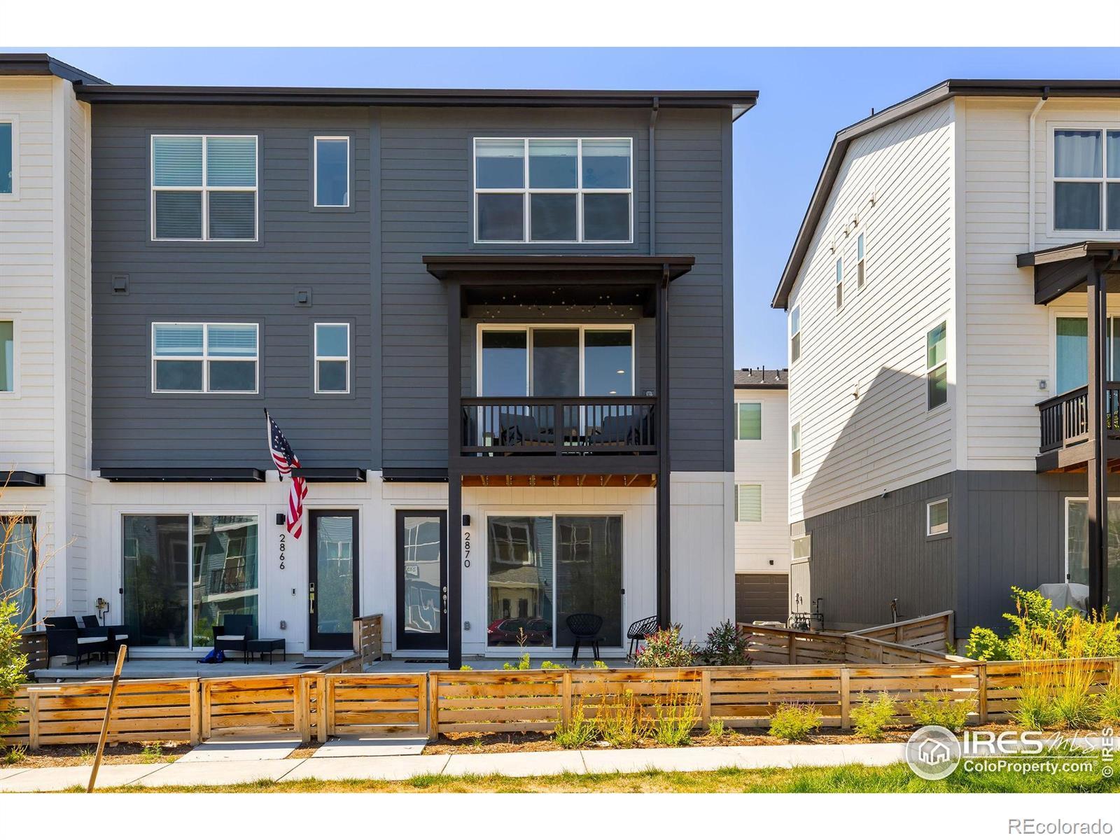 Welcome to exceptional living in the vibrant Baseline community of Broomfield. Built in 2023, this end-unit residence offers an abundance of natural light with sought-after Southern, Western, and Northern exposures, creating a bright and airy atmosphere throughout. This home is as smart and eco-conscious as it is stylish and comfortable, with LEED-certified construction, and energy efficient solar panels that will transfer to the new owner at closing, reducing your carbon footprint on day one!Step inside to discover a thoughtfully designed floor plan that seamlessly blends style and function. The main level greets you with a versatile flex space-- the perfect office space, studio, or home gym with its own adjacent bath. A spacious open layout allows the kitchen, dining, and living areas to flow effortlessly together. The gourmet kitchen comes complete with a large island, stainless steel gas appliances, and premium finishes. The adjacent living room provides a relaxing space with access to a serene balcony, ideal for enjoying a cup of coffee or a breath of fresh Colorado air. The upper level is dedicated to rest and relaxation, featuring two generously sized bedrooms, each with its own full en-suite bathroom for ultimate privacy and convenience. An upper-level laundry room, conveniently located between the bedrooms, adds to the home's practicality. Even more convenience comes from the home's attached two-car garage, complete with 220-volt power capabilities- the perfect additional storage, and space for tools or even an EV charger.This prime location puts you within easy reach of a variety of shops, grocery stores, and restaurants. Popular destinations like Costco, Topgolf, and Home Depot are minutes away, and you'll enjoy effortless access to both Denver and Boulder. Experience the perfect balance of urban energy and outdoor serenity in a community that has it all. Don't miss the opportunity to maximize the essence of modern Colorado living!