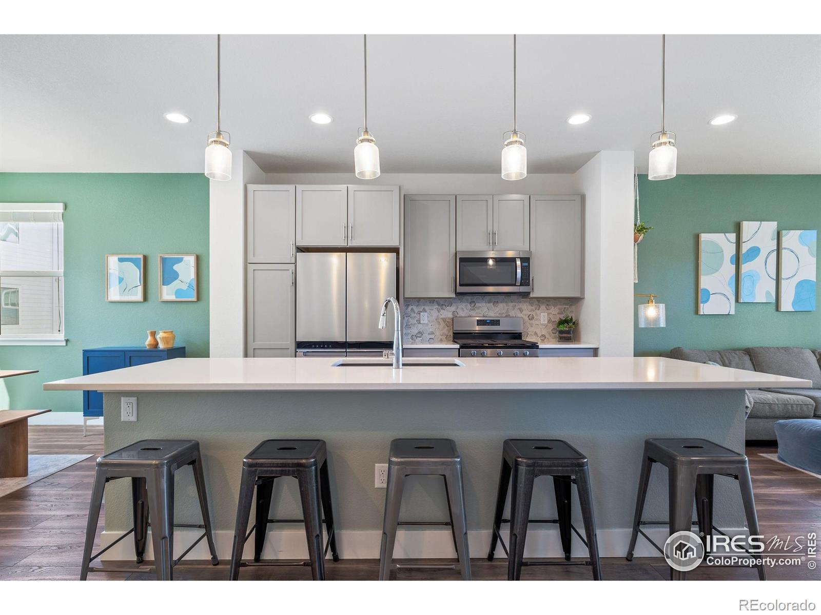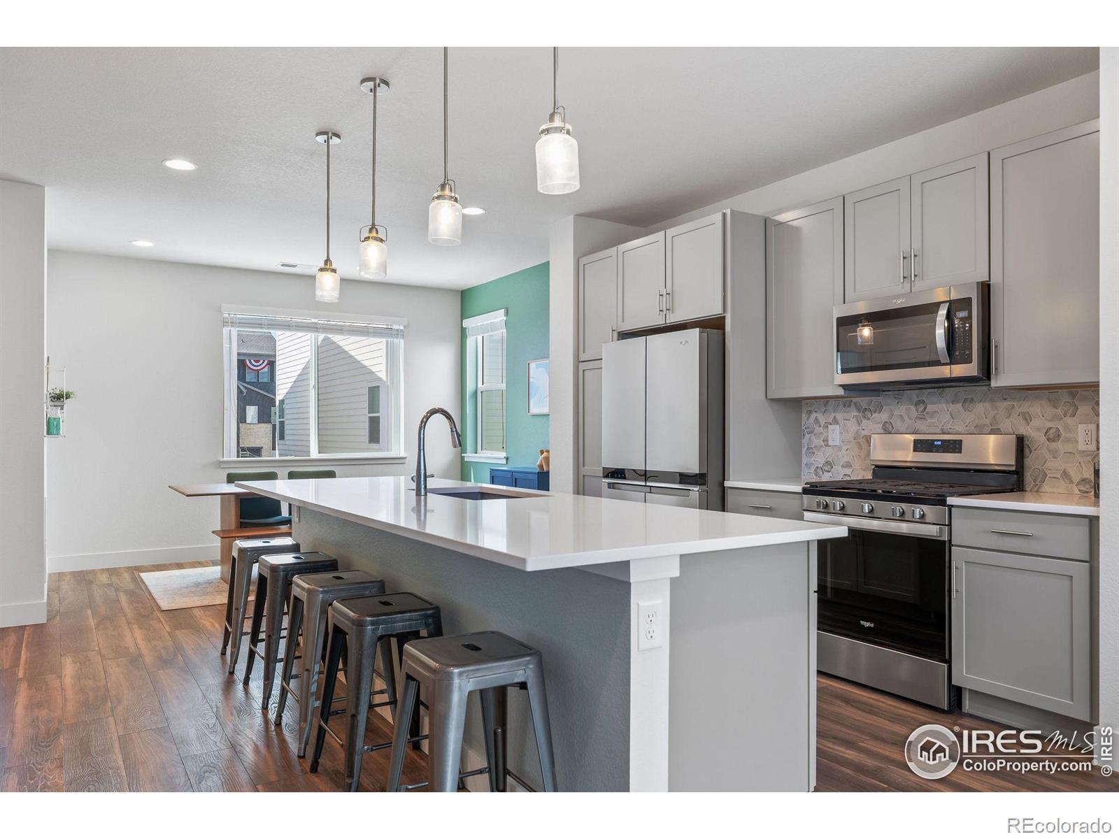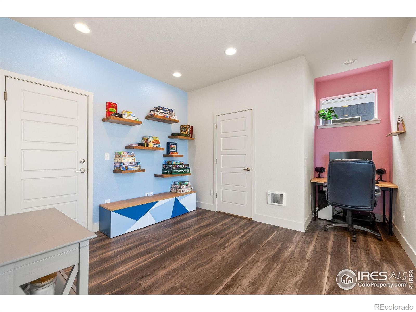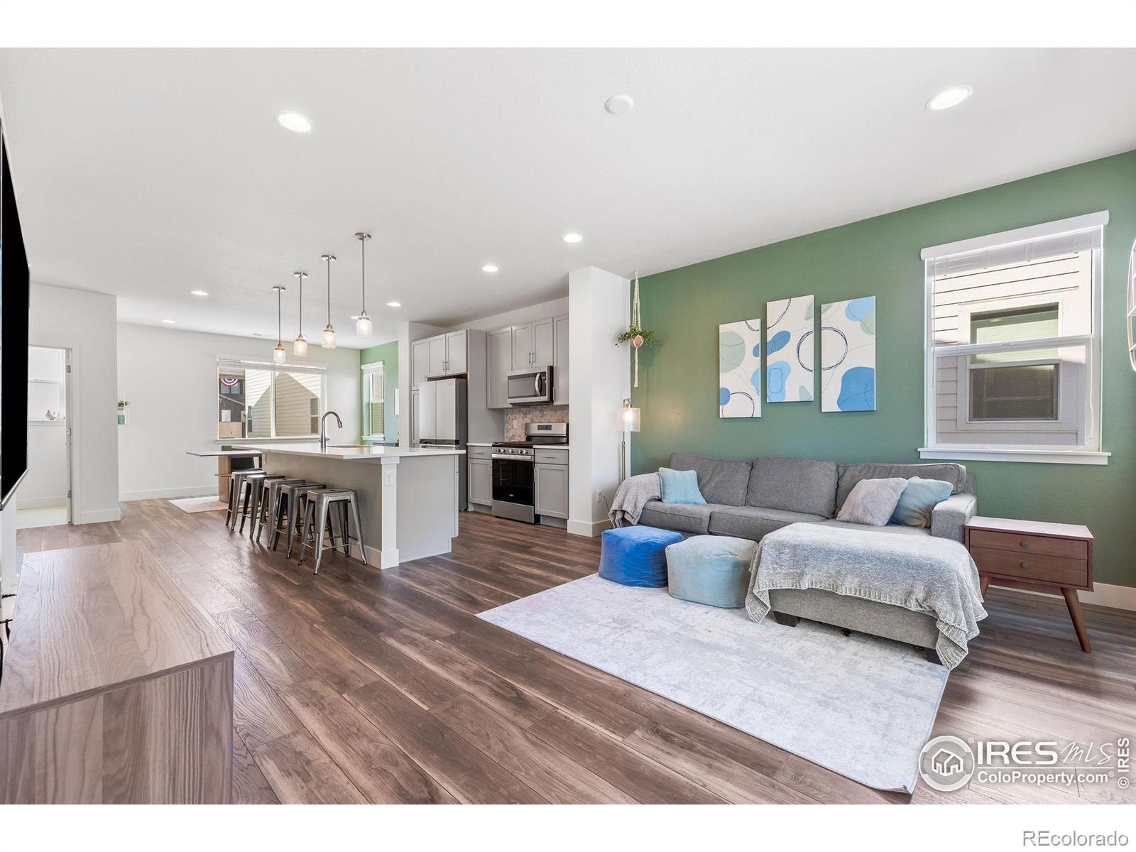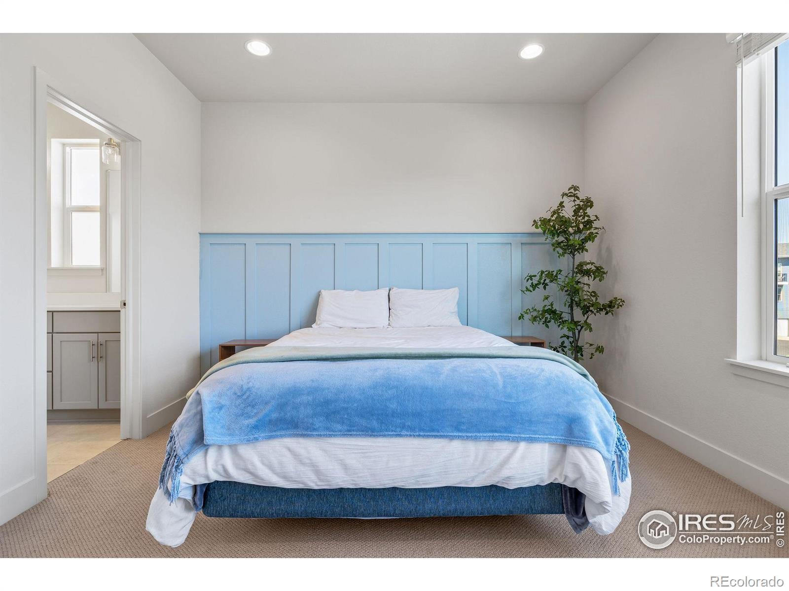 Welcome to exceptional living in the vibrant Baseline community of Broomfield. Built in 2023, this end-unit residence offers an abundance of natural light with sought-after Southern, Western, and Northern exposures, creating a bright and airy atmosphere throughout. This home is as smart and eco-conscious as it is stylish and comfortable, with LEED-certified construction, and energy efficient solar panels that will transfer to the new owner at closing, reducing your carbon footprint on day one!Step inside to discover a thoughtfully designed floor plan that seamlessly blends style and function. The main level greets you with a versatile flex space-- the perfect office space, studio, or home gym with its own adjacent bath. A spacious open layout allows the kitchen, dining, and living areas to flow effortlessly together. The gourmet kitchen comes complete with a large island, stainless steel gas appliances, and premium finishes. The adjacent living room provides a relaxing space with access to a serene balcony, ideal for enjoying a cup of coffee or a breath of fresh Colorado air. The upper level is dedicated to rest and relaxation, featuring two generously sized bedrooms, each with its own full en-suite bathroom for ultimate privacy and convenience. An upper-level laundry room, conveniently located between the bedrooms, adds to the home's practicality. Even more convenience comes from the home's attached two-car garage, complete with 220-volt power capabilities- the perfect additional storage, and space for tools or even an EV charger.This prime location puts you within easy reach of a variety of shops, grocery stores, and restaurants. Popular destinations like Costco, Topgolf, and Home Depot are minutes away, and you'll enjoy effortless access to both Denver and Boulder. Experience the perfect balance of urban energy and outdoor serenity in a community that has it all. Don't miss the opportunity to maximize the essence of modern Colorado living!