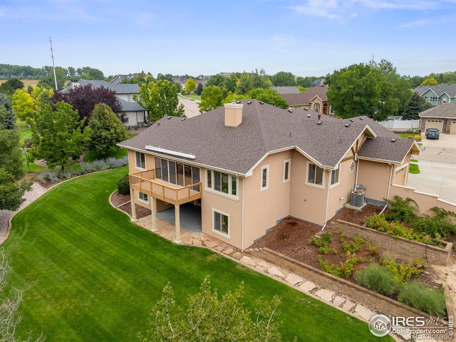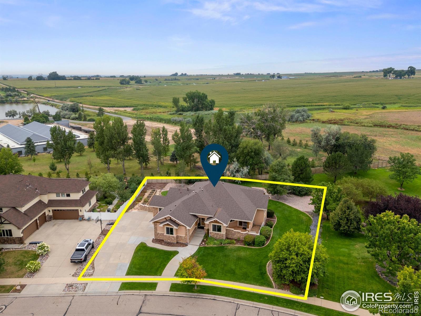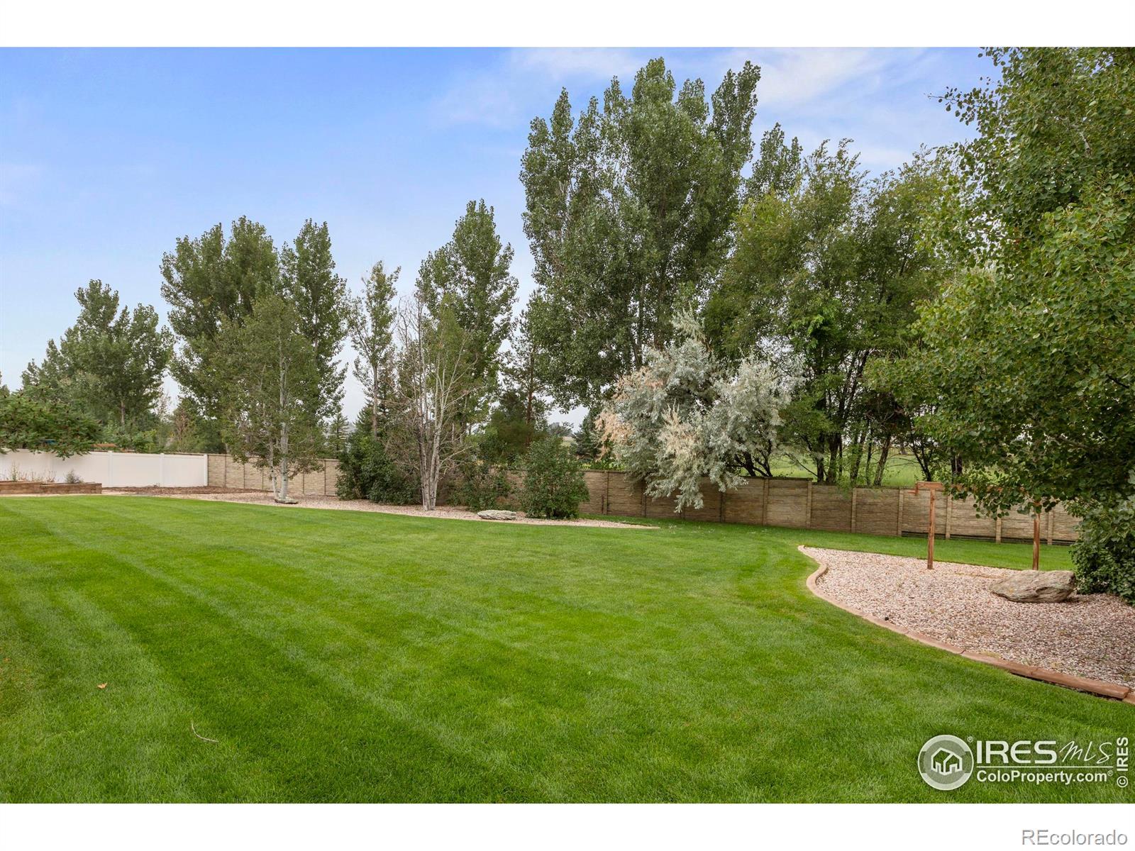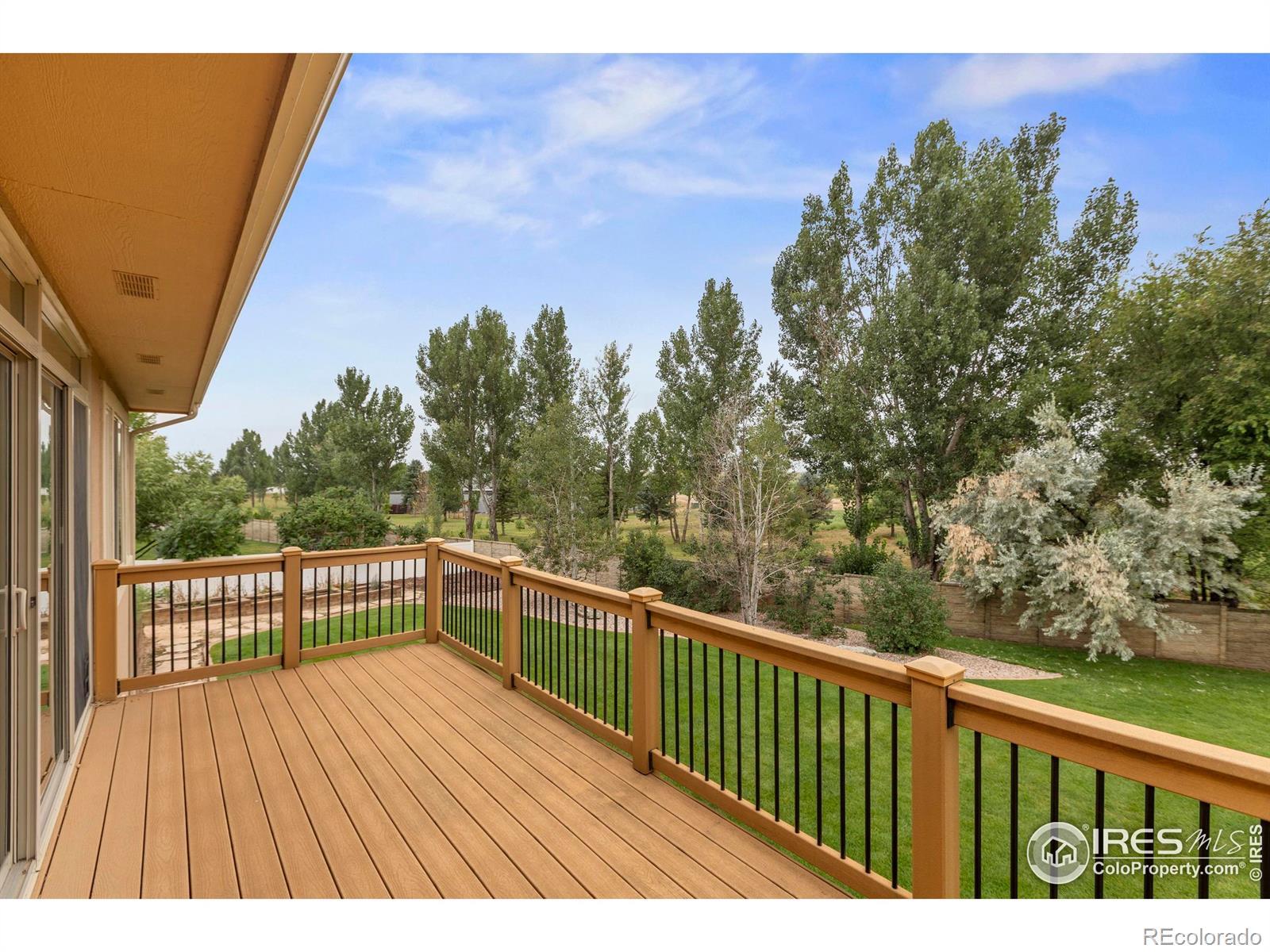 Stunning estate home on a lush .52-acre lot in the St Michael's neighborhood. This ranch-style property with a fully finished walkout basement offers 5 bedrooms, 5 bathrooms, and a dedicated office with custom built-in desks, shelving, and a closet. The open kitchen is an entertainer's dream, with granite counters, an island, 5-burner gas cooktop, stainless steel appliances, trash compactor, pullout drawers in cabinets, a pantry, and a bright breakfast nook. Just off the kitchen, step onto a private deck set up perfectly for grilling, with a fenced dog run connected for convenience. Enjoy multiple spaces for indoor-outdoor living, including a Trex deck with a power awning, a light-filled sunroom overlooking the backyard, and a shaded patio off the walkout basement. The expansive yard features garden boxes with a drip irrigation system, mature trees, and no neighbors behind-creating a peaceful and private setting. The primary suite overlooks the trees and yard, with a spacious bathroom and ample closet space. Natural light fills the home, highlighted by vaulted ceilings. The walkout basement is designed for entertaining, with a wet bar, storage areas, and direct access to the backyard, with open space behind the property.Updates include a new roof with Class 4 shingles, two new water heaters, a QuietCool whole house fan, central vacuum system, and a side-load 3-car garage. Located in west Greeley near parks, restaurants, and shopping, don't miss your opportunity to live on an estate lot in this coveted neighborhood.