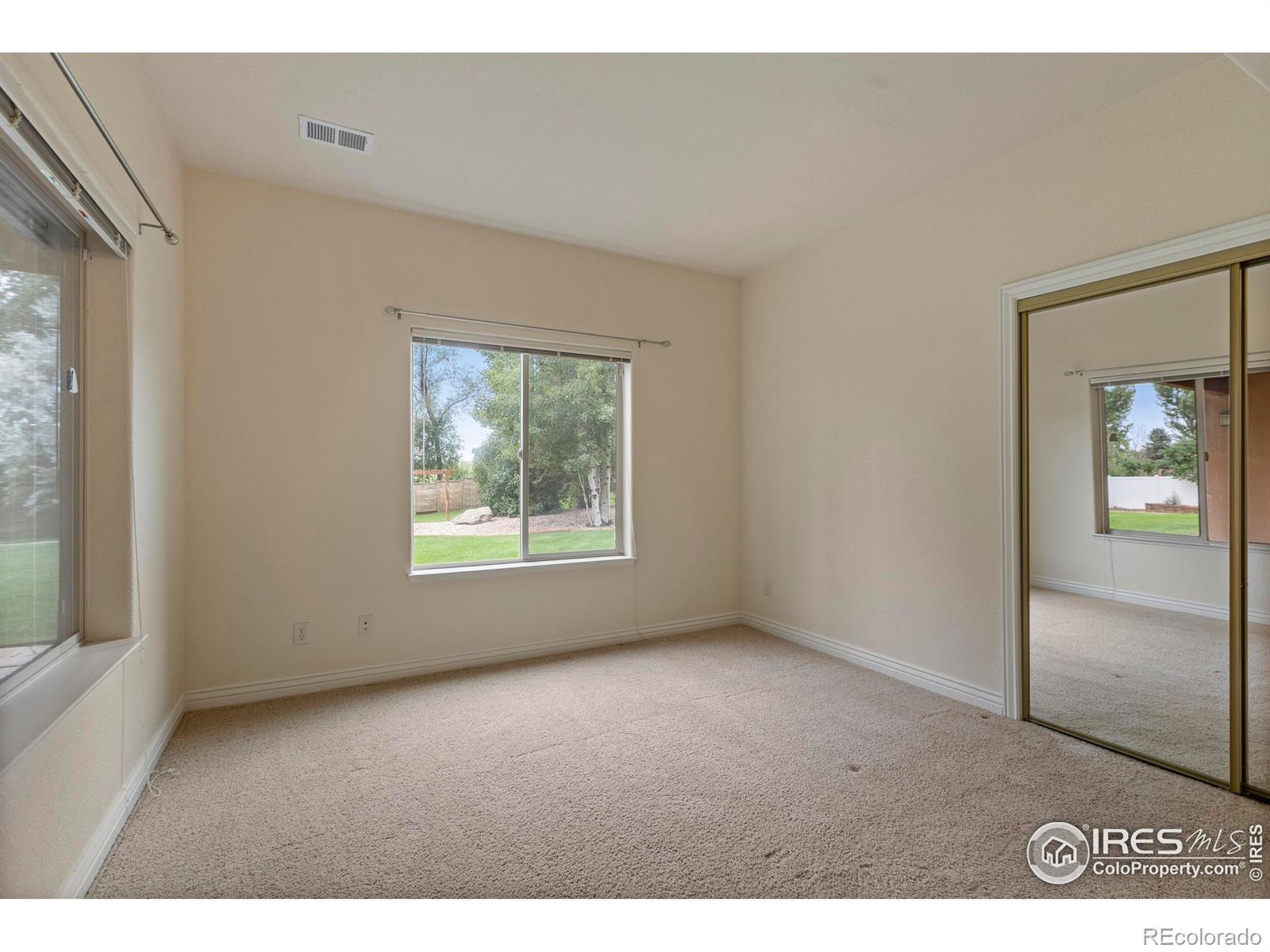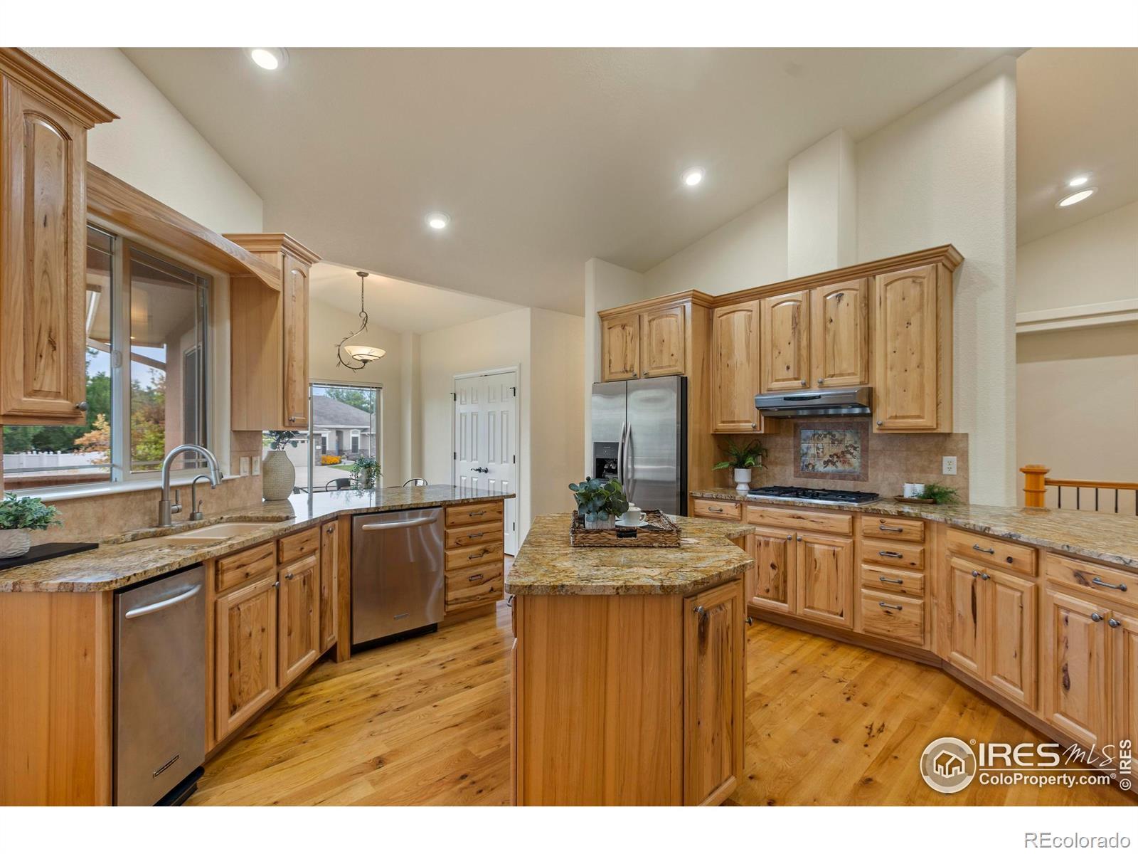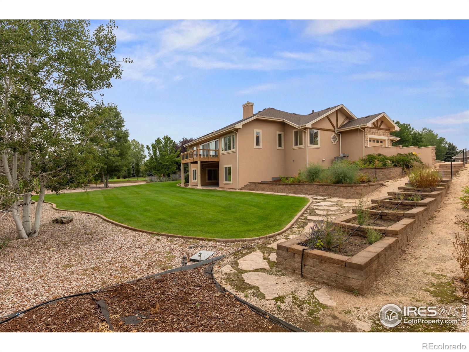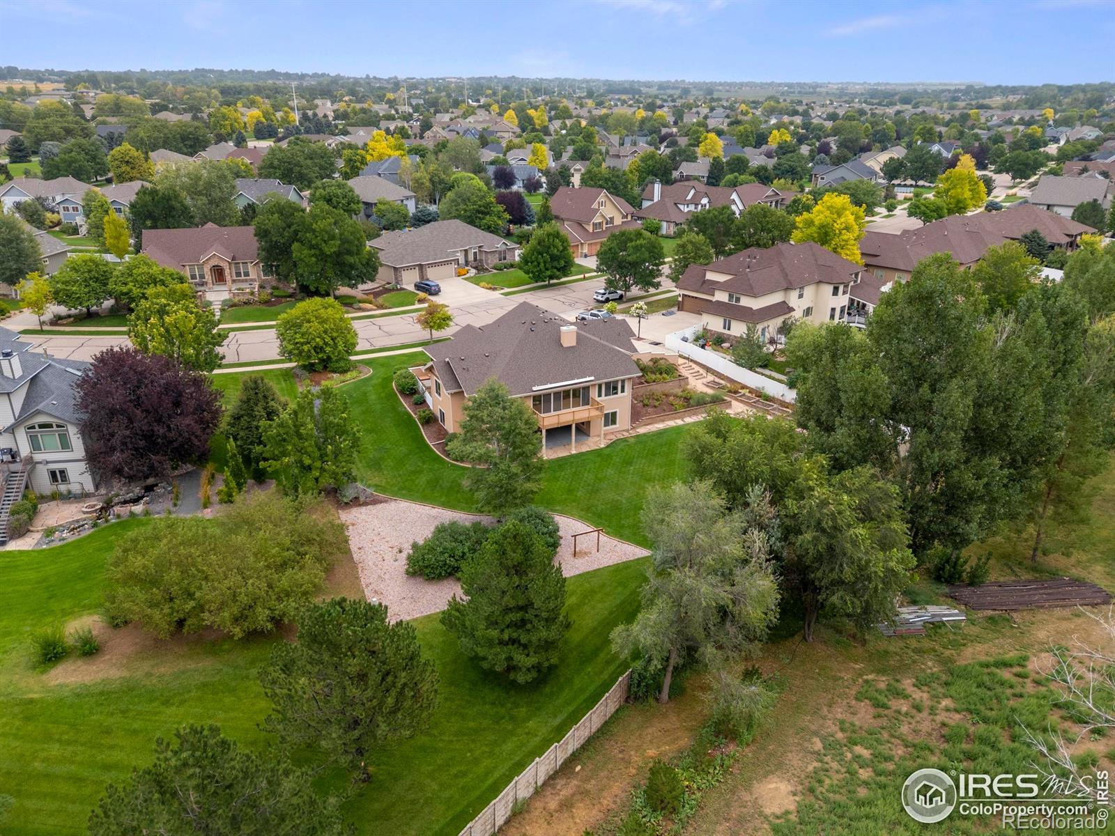 Stunning estate home on a lush .52-acre lot in the St Michael's neighborhood. This ranch-style property with a fully finished walkout basement offers 5 bedrooms, 5 bathrooms, and a dedicated office with custom built-in desks, shelving, and a closet. The open kitchen is an entertainer's dream, with granite counters, an island, 5-burner gas cooktop, stainless steel appliances, trash compactor, pullout drawers in cabinets, a pantry, and a bright breakfast nook. Just off the kitchen, step onto a private deck set up perfectly for grilling, with a fenced dog run connected for convenience. Enjoy multiple spaces for indoor-outdoor living, including a Trex deck with a power awning, a light-filled sunroom overlooking the backyard, and a shaded patio off the walkout basement. The expansive yard features garden boxes with a drip irrigation system, mature trees, and no neighbors behind-creating a peaceful and private setting. The primary suite overlooks the trees and yard, with a spacious bathroom and ample closet space. Natural light fills the home, highlighted by vaulted ceilings. The walkout basement is designed for entertaining, with a wet bar, storage areas, and direct access to the backyard, with open space behind the property.Updates include a new roof with Class 4 shingles, two new water heaters, a QuietCool whole house fan, central vacuum system, and a side-load 3-car garage. Located in west Greeley near parks, restaurants, and shopping, don't miss your opportunity to live on an estate lot in this coveted neighborhood.