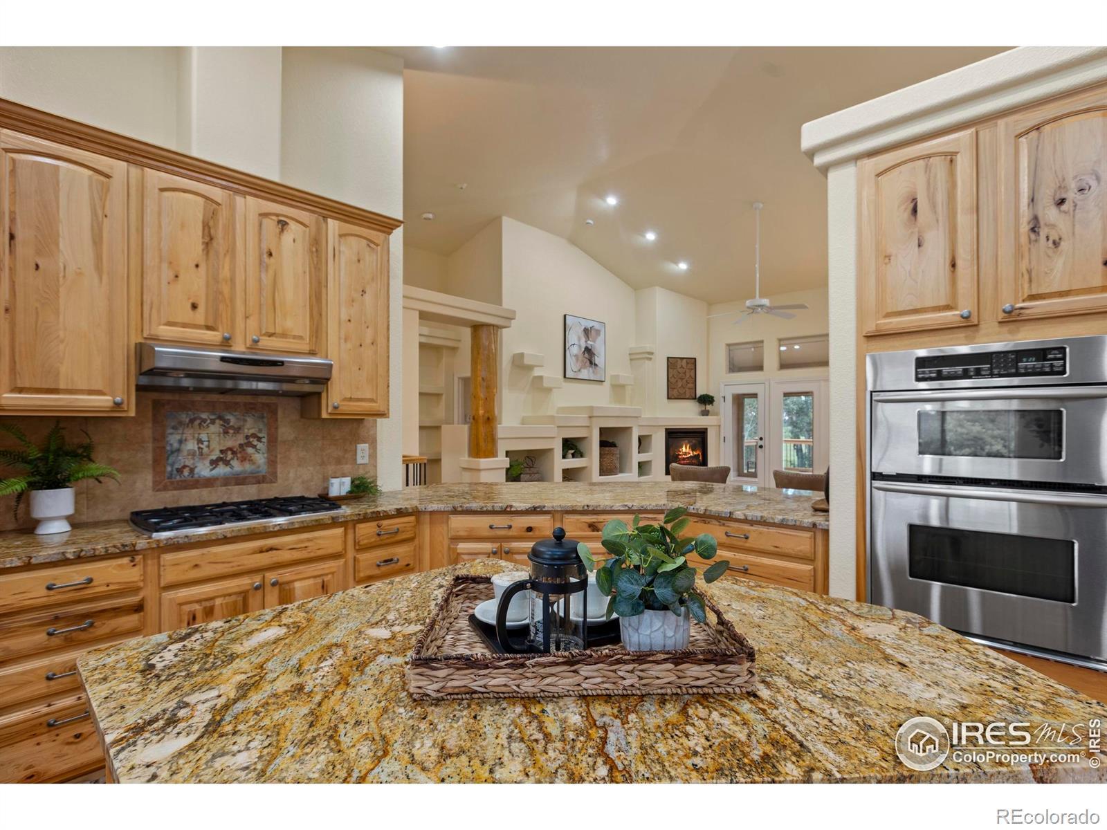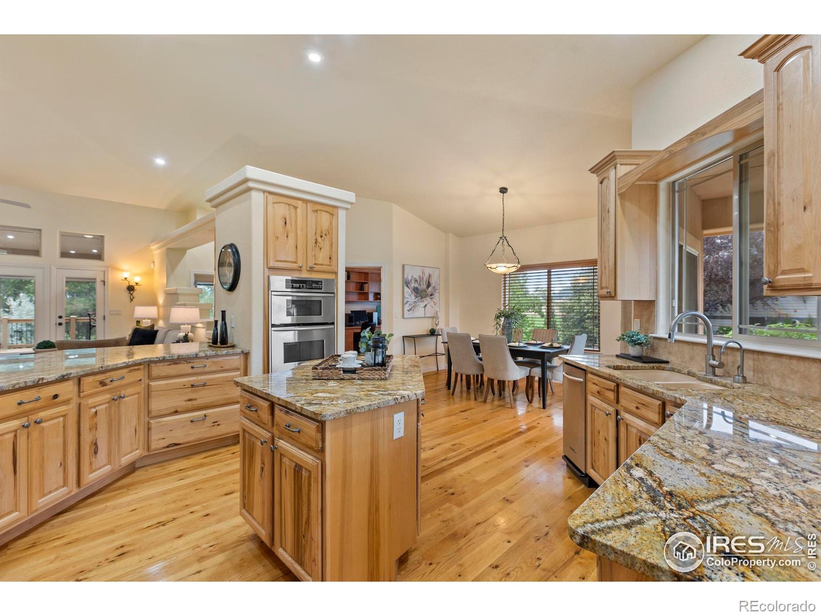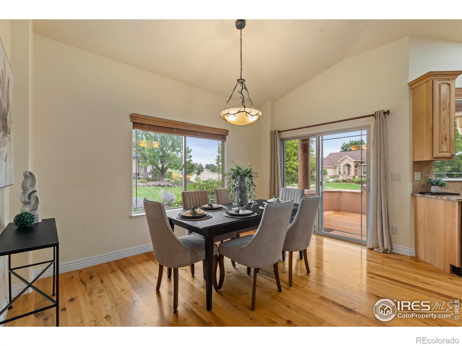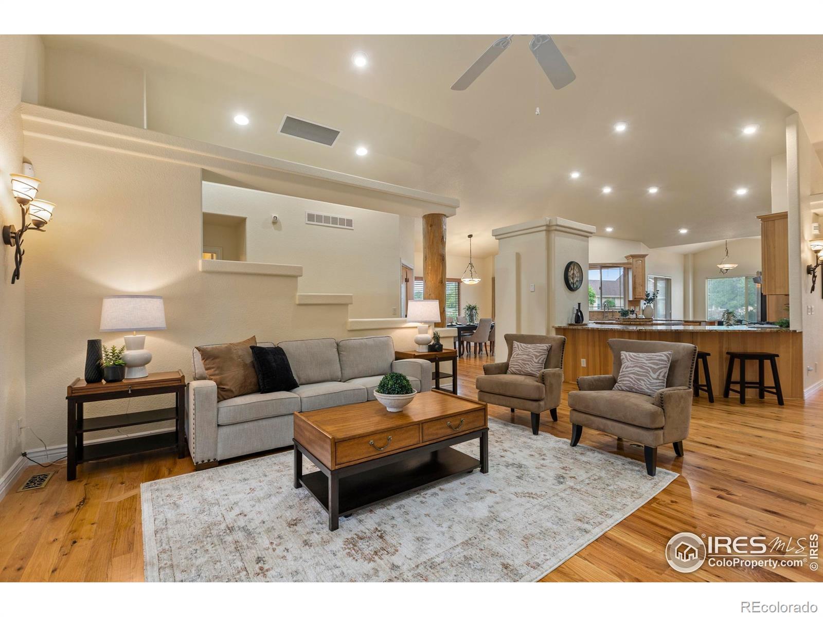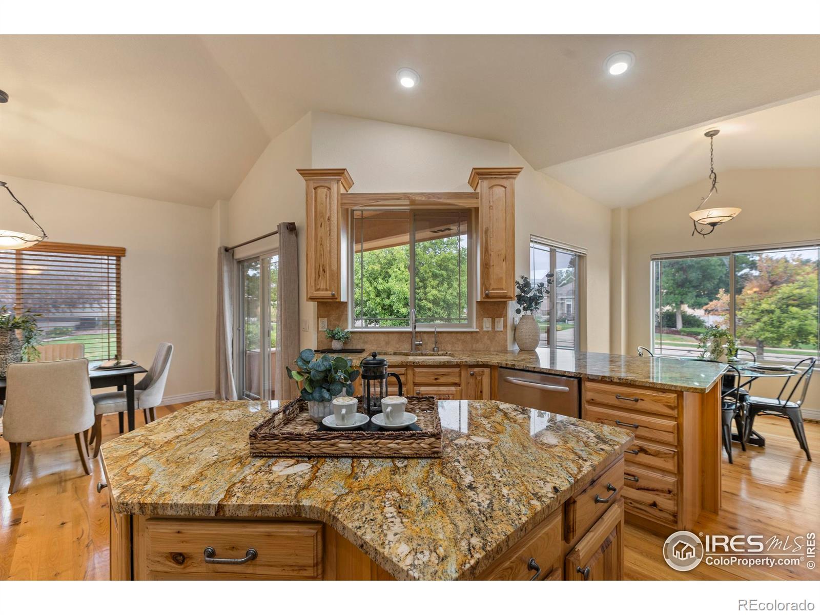 Stunning estate home on a lush .52-acre lot in the St Michael's neighborhood. This ranch-style property with a fully finished walkout basement offers 5 bedrooms, 5 bathrooms, and a dedicated office with custom built-in desks, shelving, and a closet. The open kitchen is an entertainer's dream, with granite counters, an island, 5-burner gas cooktop, stainless steel appliances, trash compactor, pullout drawers in cabinets, a pantry, and a bright breakfast nook. Just off the kitchen, step onto a private deck set up perfectly for grilling, with a fenced dog run connected for convenience. Enjoy multiple spaces for indoor-outdoor living, including a Trex deck with a power awning, a light-filled sunroom overlooking the backyard, and a shaded patio off the walkout basement. The expansive yard features garden boxes with a drip irrigation system, mature trees, and no neighbors behind-creating a peaceful and private setting. The primary suite overlooks the trees and yard, with a spacious bathroom and ample closet space. Natural light fills the home, highlighted by vaulted ceilings. The walkout basement is designed for entertaining, with a wet bar, storage areas, and direct access to the backyard, with open space behind the property.Updates include a new roof with Class 4 shingles, two new water heaters, a QuietCool whole house fan, central vacuum system, and a side-load 3-car garage. Located in west Greeley near parks, restaurants, and shopping, don't miss your opportunity to live on an estate lot in this coveted neighborhood.