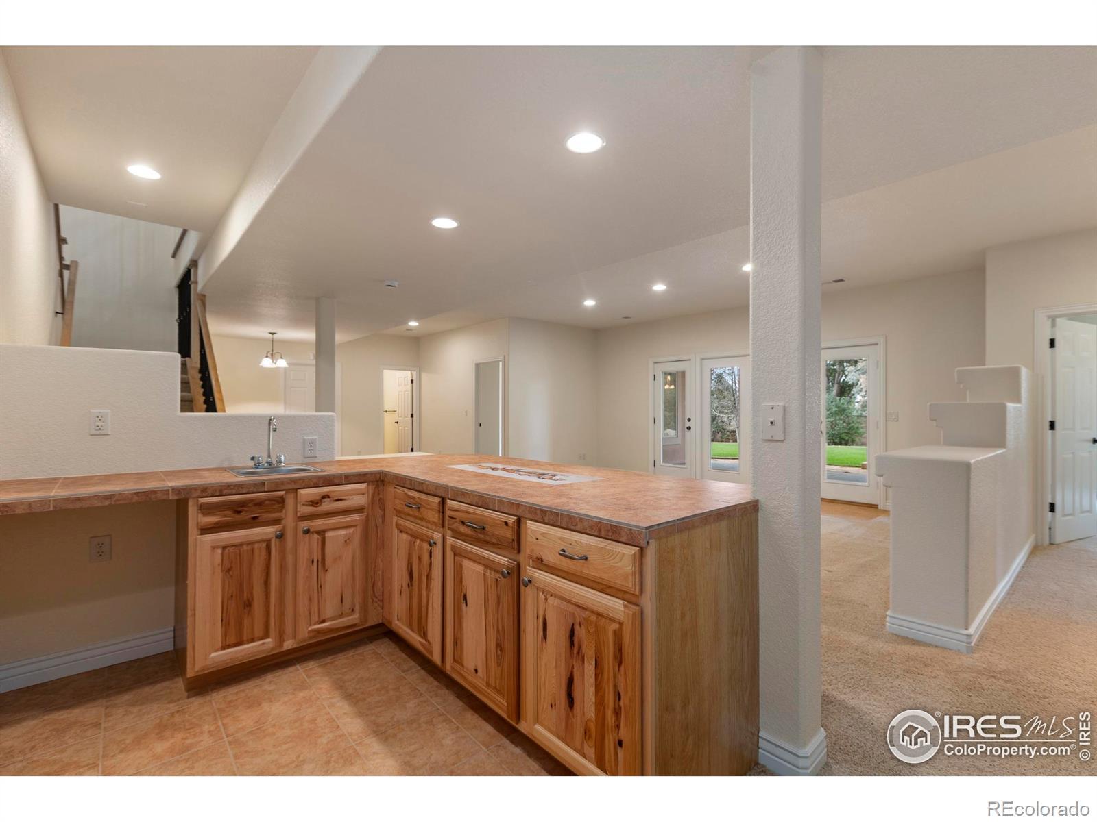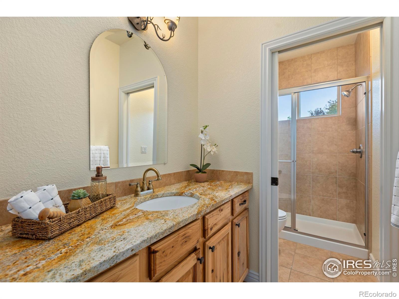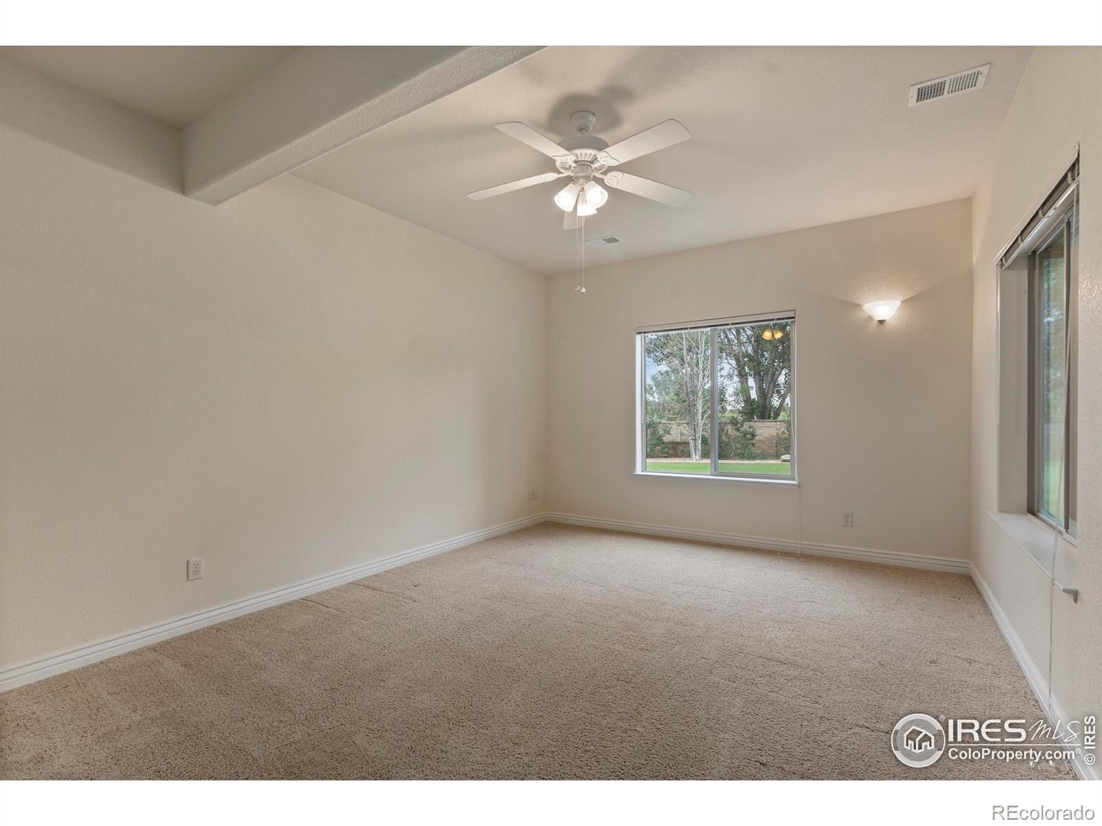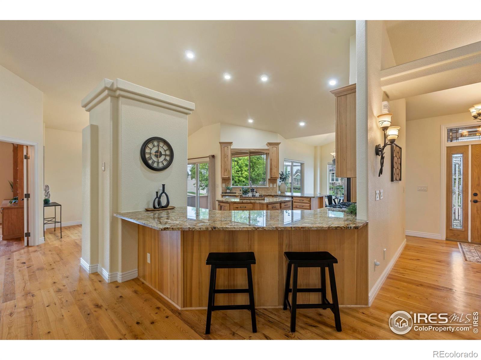 Stunning estate home on a lush .52-acre lot in the St Michael's neighborhood. This ranch-style property with a fully finished walkout basement offers 5 bedrooms, 5 bathrooms, and a dedicated office with custom built-in desks, shelving, and a closet. The open kitchen is an entertainer's dream, with granite counters, an island, 5-burner gas cooktop, stainless steel appliances, trash compactor, pullout drawers in cabinets, a pantry, and a bright breakfast nook. Just off the kitchen, step onto a private deck set up perfectly for grilling, with a fenced dog run connected for convenience. Enjoy multiple spaces for indoor-outdoor living, including a Trex deck with a power awning, a light-filled sunroom overlooking the backyard, and a shaded patio off the walkout basement. The expansive yard features garden boxes with a drip irrigation system, mature trees, and no neighbors behind-creating a peaceful and private setting. The primary suite overlooks the trees and yard, with a spacious bathroom and ample closet space. Natural light fills the home, highlighted by vaulted ceilings. The walkout basement is designed for entertaining, with a wet bar, storage areas, and direct access to the backyard, with open space behind the property.Updates include a new roof with Class 4 shingles, two new water heaters, a QuietCool whole house fan, central vacuum system, and a side-load 3-car garage. Located in west Greeley near parks, restaurants, and shopping, don't miss your opportunity to live on an estate lot in this coveted neighborhood.
