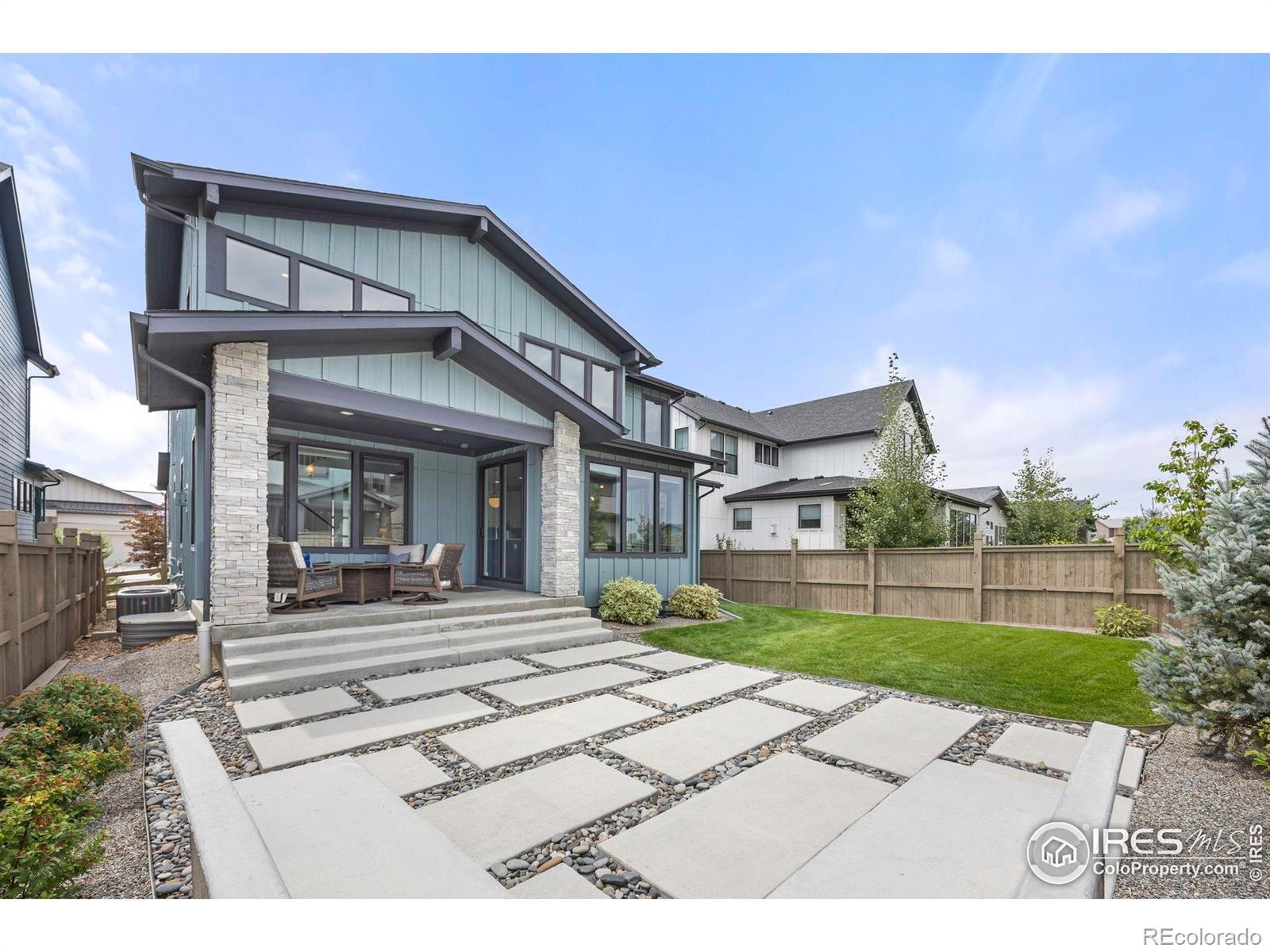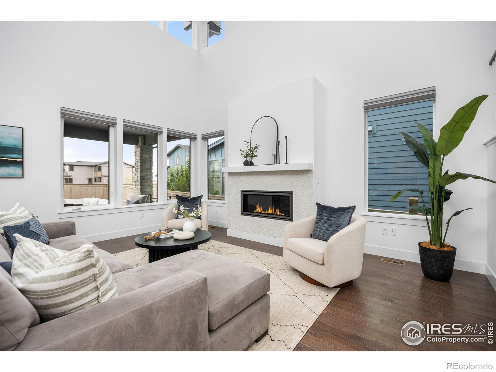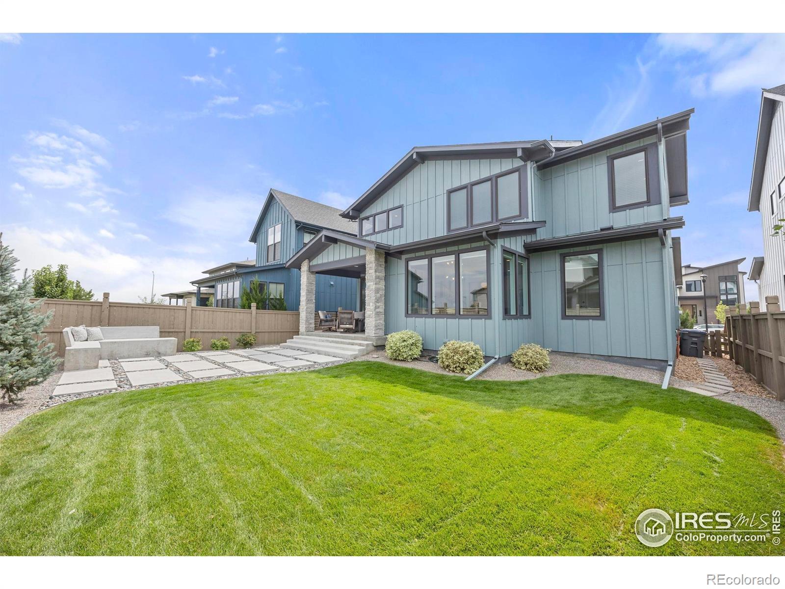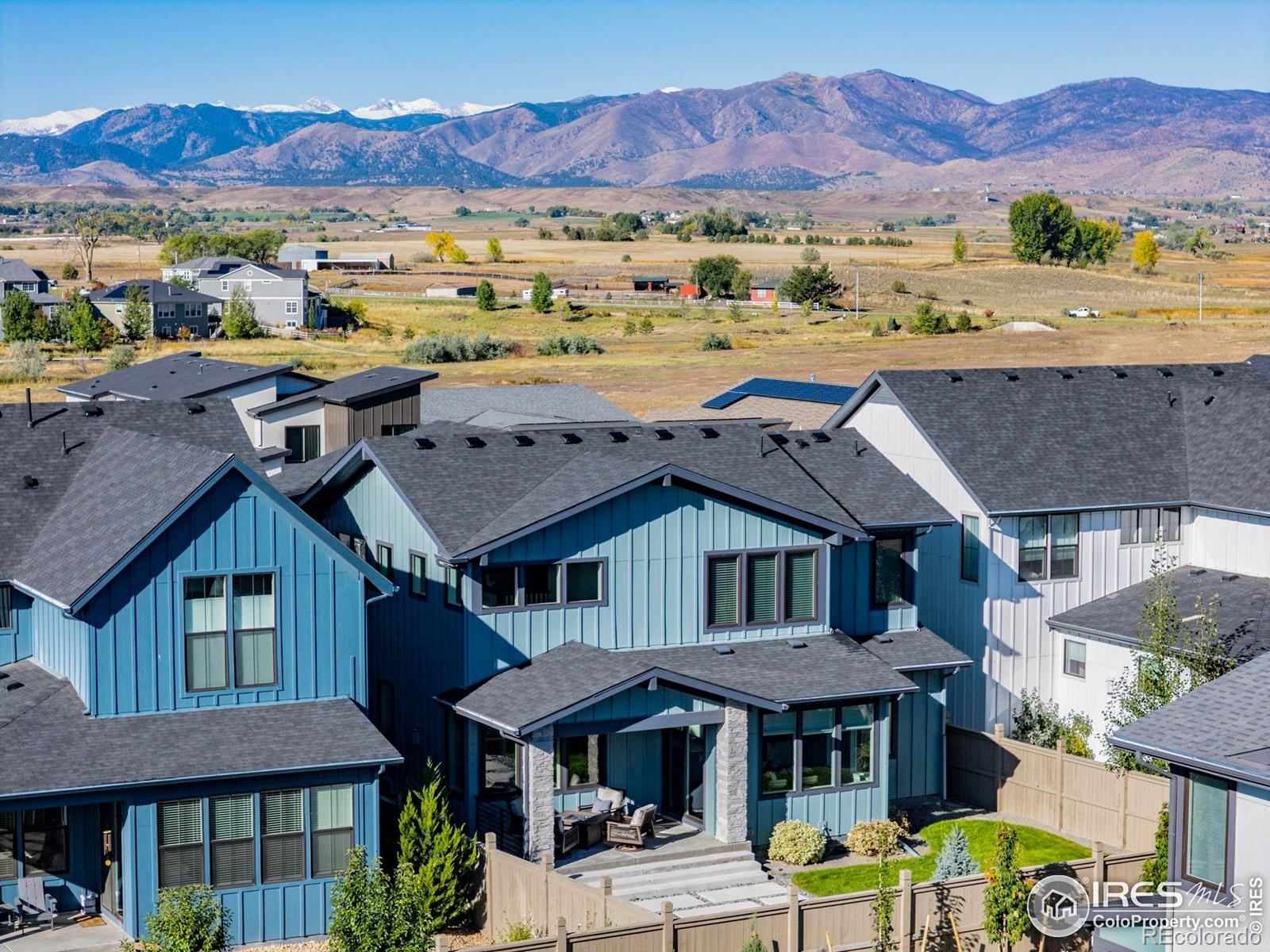 Step into effortless style in this beautifully upgraded home tucked within one of southwest Longmont's most sought-after neighborhoods, West Grange, where scenic trails wind throughout the community and Silver Creek High School and Blue Mountain Elementary are just a short walk away. From the covered front porch, step into a sunny home office with south-facing windows, perfectly paired with a stylish powder bath nearby featuring designer wallpaper and fixtures. The main level welcomes you with gleaming wood plank floors and is filled with natural light, where soaring ceilings and expansive windows create a bright and open feel. The kitchen shines with white quartz counters, a designer backsplash, gas range, and upgraded navy and white cabinetry. The adjacent dining room, surrounded by windows, overlooks the spacious covered patio and reimagined backyard with an expanded, modern concrete patio and grassy play area. Pleated window coverings throughout the living space add both style and privacy while a gas fireplace serves as an inviting focal point in the living room. Upstairs, retreat to a serene primary suite with a spa-inspired five-piece bath complete with a freestanding soaking tub and glass-enclosed rain shower. Two additional bedrooms enjoy stunning mountain views and southern exposure, while a convenient laundry room rounds out the upper level. Brand-new carpet and custom window coverings, including blackout shades in the secondary bedrooms, bring comfort and refinement. The unfinished basement offers endless possibilities, ready to be transformed into a recreation room, guest suite, or fitness area. Don't miss the mudroom and epoxy-finished 3-car tandem garage, both practical and polished.