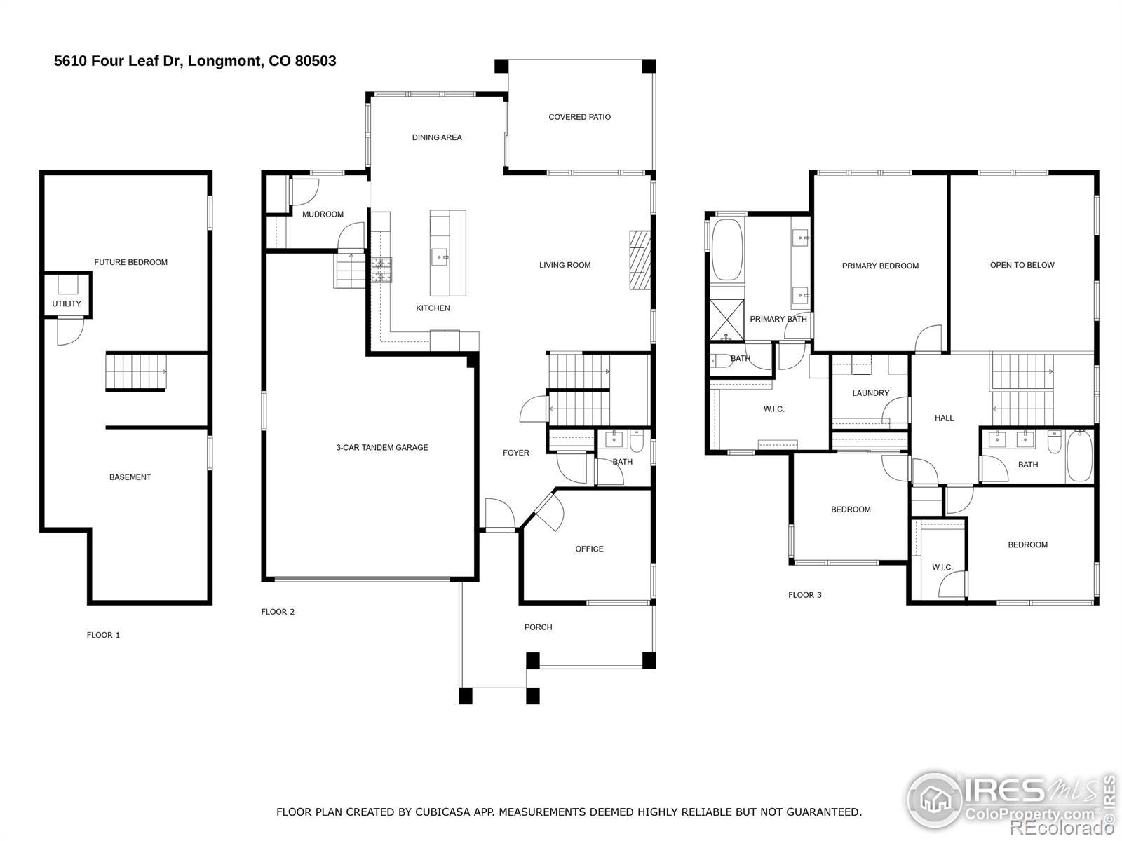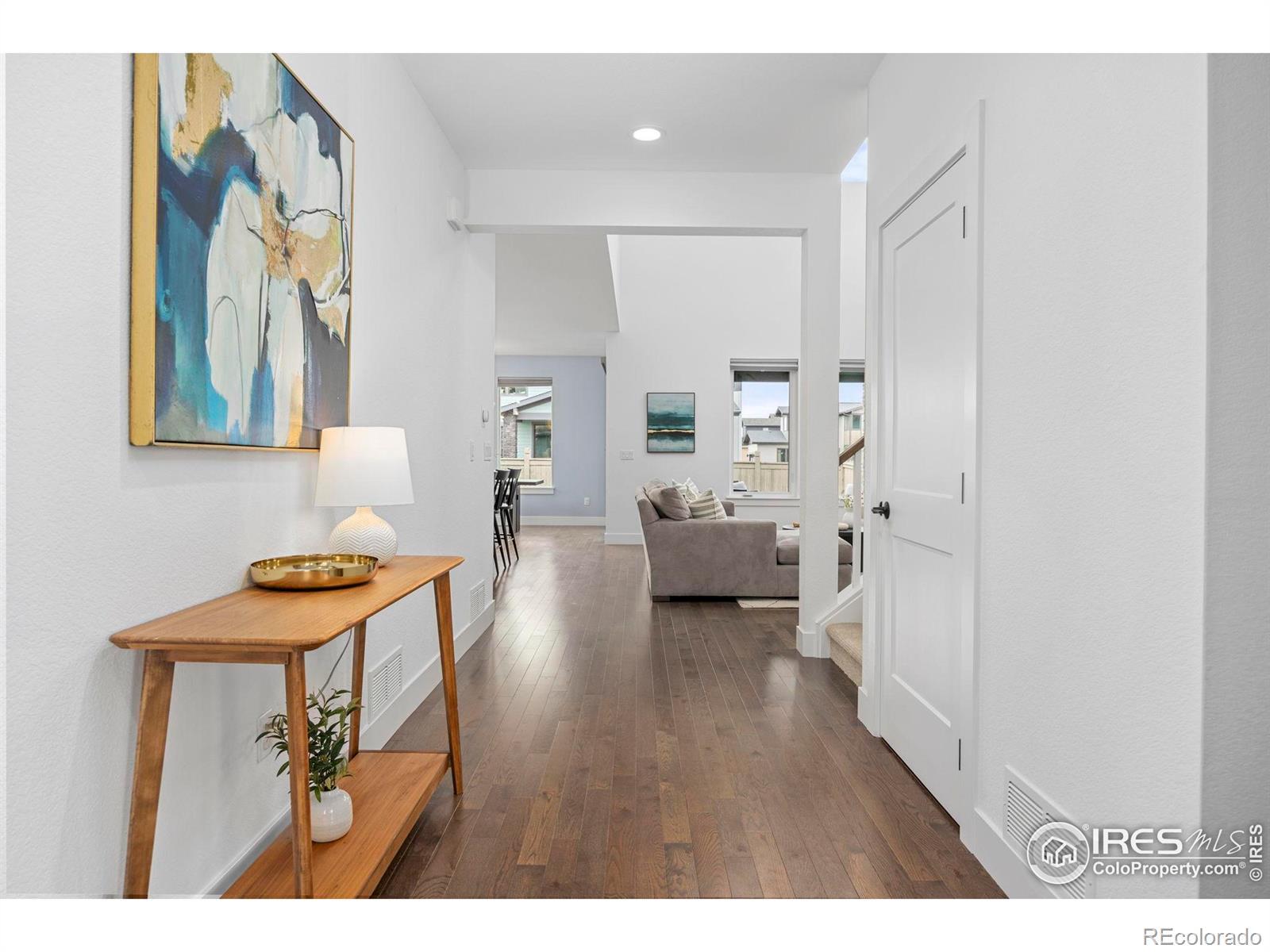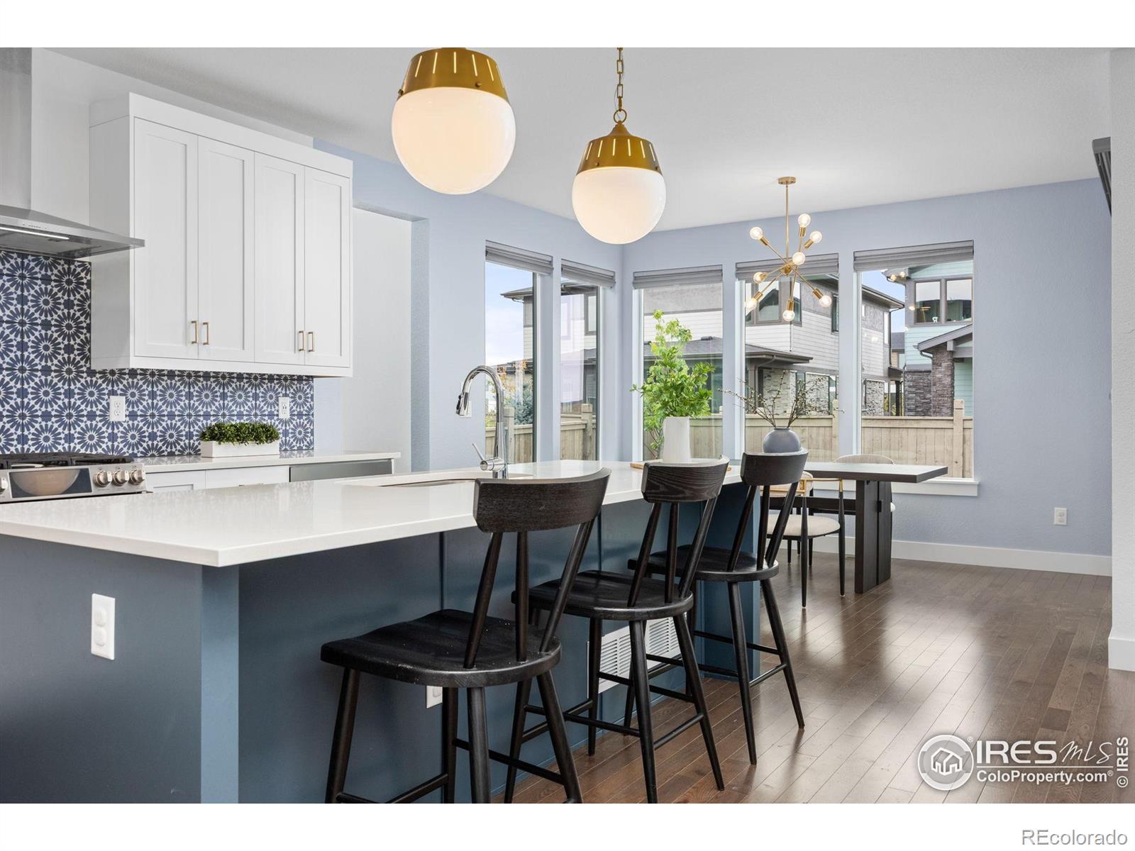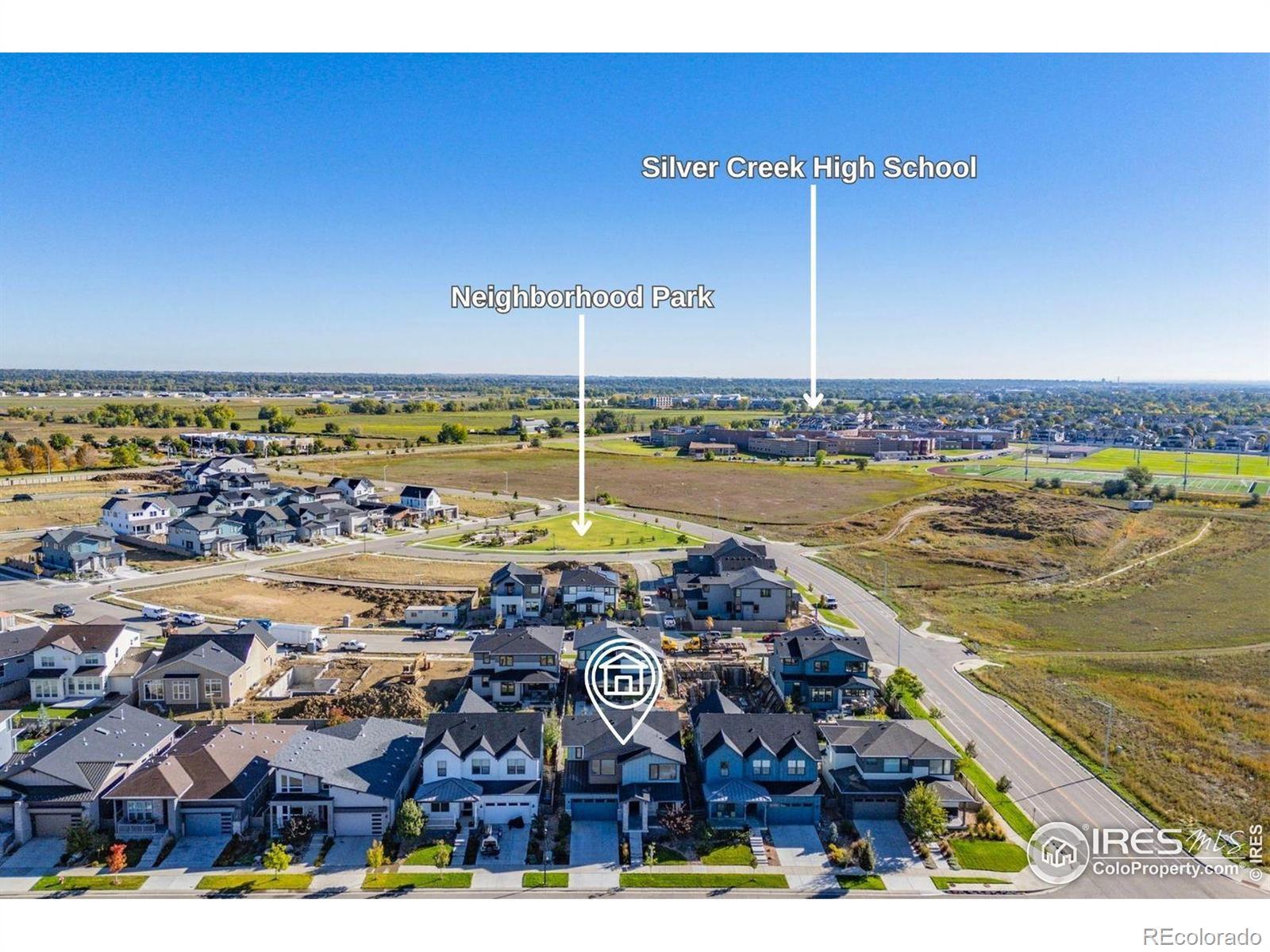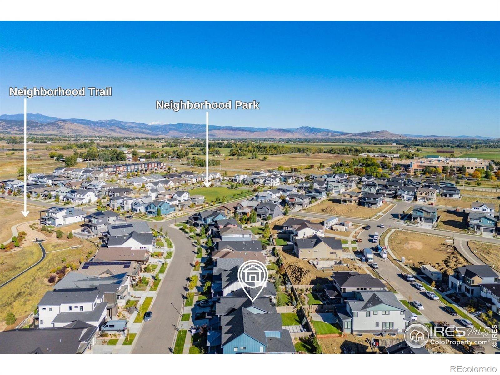 Step into effortless style in this beautifully upgraded home tucked within one of southwest Longmont's most sought-after neighborhoods, West Grange, where scenic trails wind throughout the community and Silver Creek High School and Blue Mountain Elementary are just a short walk away. From the covered front porch, step into a sunny home office with south-facing windows, perfectly paired with a stylish powder bath nearby featuring designer wallpaper and fixtures. The main level welcomes you with gleaming wood plank floors and is filled with natural light, where soaring ceilings and expansive windows create a bright and open feel. The kitchen shines with white quartz counters, a designer backsplash, gas range, and upgraded navy and white cabinetry. The adjacent dining room, surrounded by windows, overlooks the spacious covered patio and reimagined backyard with an expanded, modern concrete patio and grassy play area. Pleated window coverings throughout the living space add both style and privacy while a gas fireplace serves as an inviting focal point in the living room. Upstairs, retreat to a serene primary suite with a spa-inspired five-piece bath complete with a freestanding soaking tub and glass-enclosed rain shower. Two additional bedrooms enjoy stunning mountain views and southern exposure, while a convenient laundry room rounds out the upper level. Brand-new carpet and custom window coverings, including blackout shades in the secondary bedrooms, bring comfort and refinement. The unfinished basement offers endless possibilities, ready to be transformed into a recreation room, guest suite, or fitness area. Don't miss the mudroom and epoxy-finished 3-car tandem garage, both practical and polished.