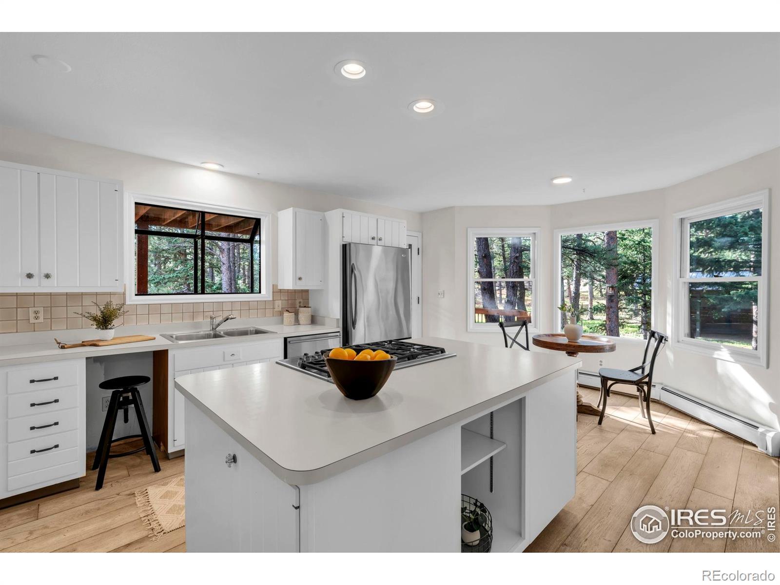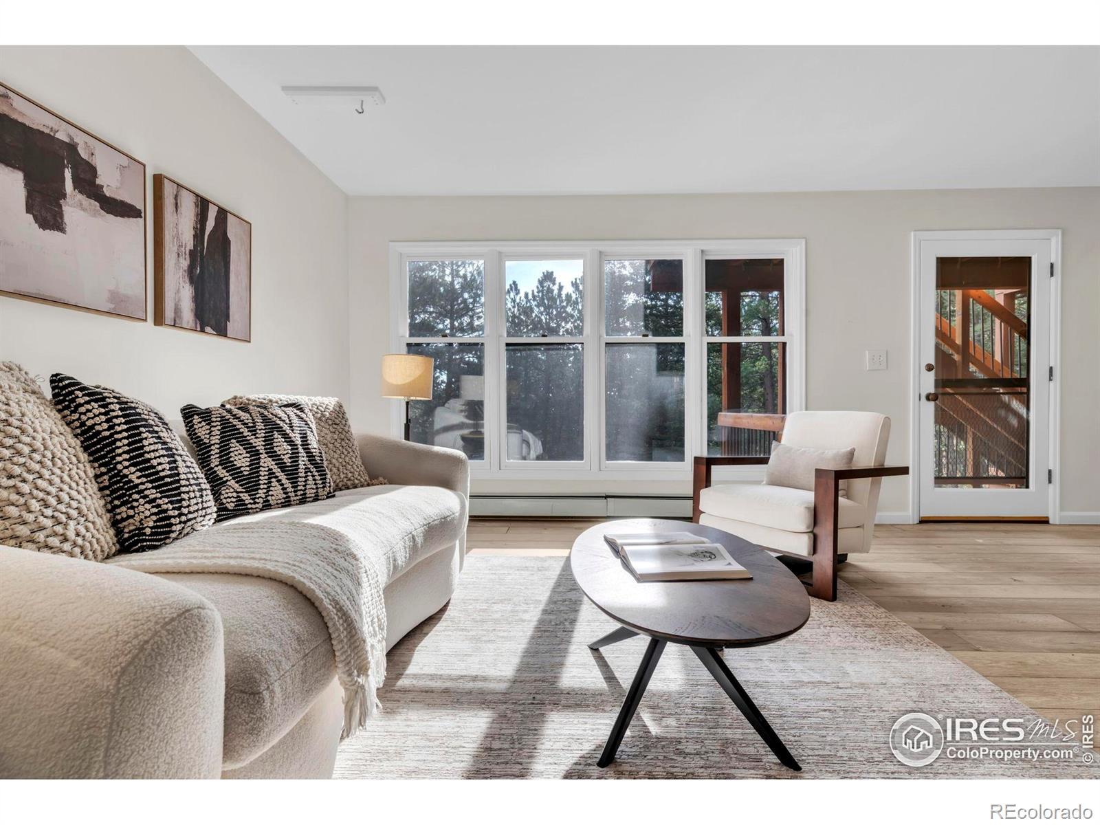 Come experience unmatched value in this close-in mountain home, quietly tucked away in the desirable Boulder Heights neighborhood. With over 4,000 SF, this remarkable find offers a unique balance of privacy and versatility, and is just 15 minutes from Downtown at an excellent price. Bordering a pristine 240-acre woodland preserve and nestled on 2 acres of usable land, this airy, light-filled home provides a peaceful retreat with room to breathe deep and live well. Wide-plank pine and European white oak flooring add character and warmth throughout. The living room showcases expansive windows framing tranquil scenery, while the adjacent family room features a hand-crafted wood-burning fireplace and custom built-in bookshelves, creating an inviting focal point. The bright kitchen, designed for both cooking and gathering, features a Wolf range, Viking oven, a generous walk-in pantry, and direct access to a spacious main-level deck. The dining area is strategically placed to capture views of the natural setting. Upstairs, the primary suite is a calm sanctuary with private deck access, abundant windows, and an indulgent en-suite bath offering a soaking tub, skylight, and charming built-in window seat with storage. Two additional bedrooms upstairs are comfortable, and filled with natural daylight. The lower level features a fully independent apartment with its own kitchen and a brand-new steam shower. The apartment opens directly outdoors, ideal for multigenerational living, guest quarters, or rental opportunities. Loafing shed for horses or use as a unique party barn. This rare offering seamlessly blends refined living with recreational possibility - biking, hiking & more! This one-of-a-kind Boulder oasis combines thoughtful design, abundant land, and unmatched access to nature. At the best pricing per sq foot, you owe it to yourself to come see the exceptional opportunity in this special property.