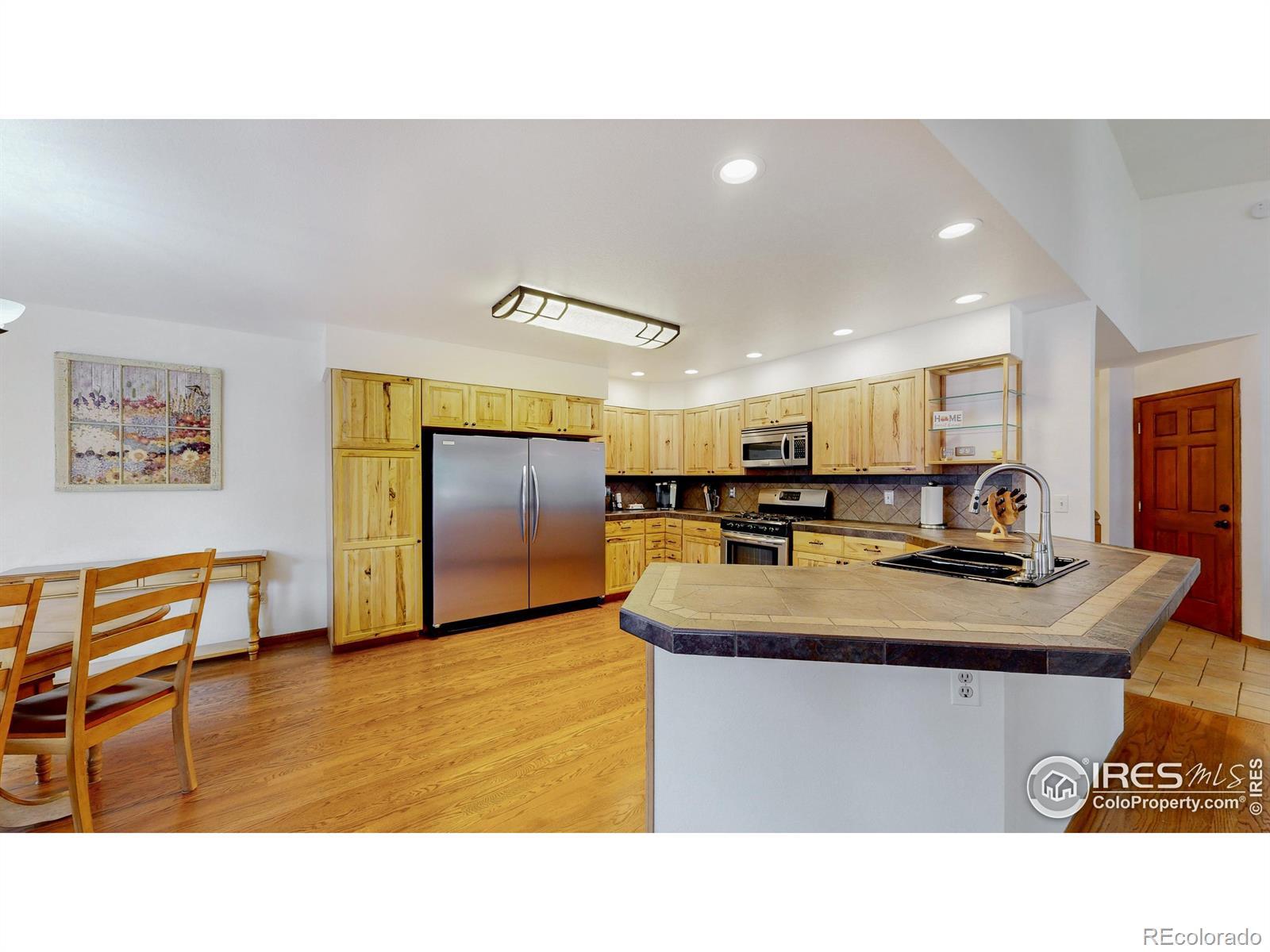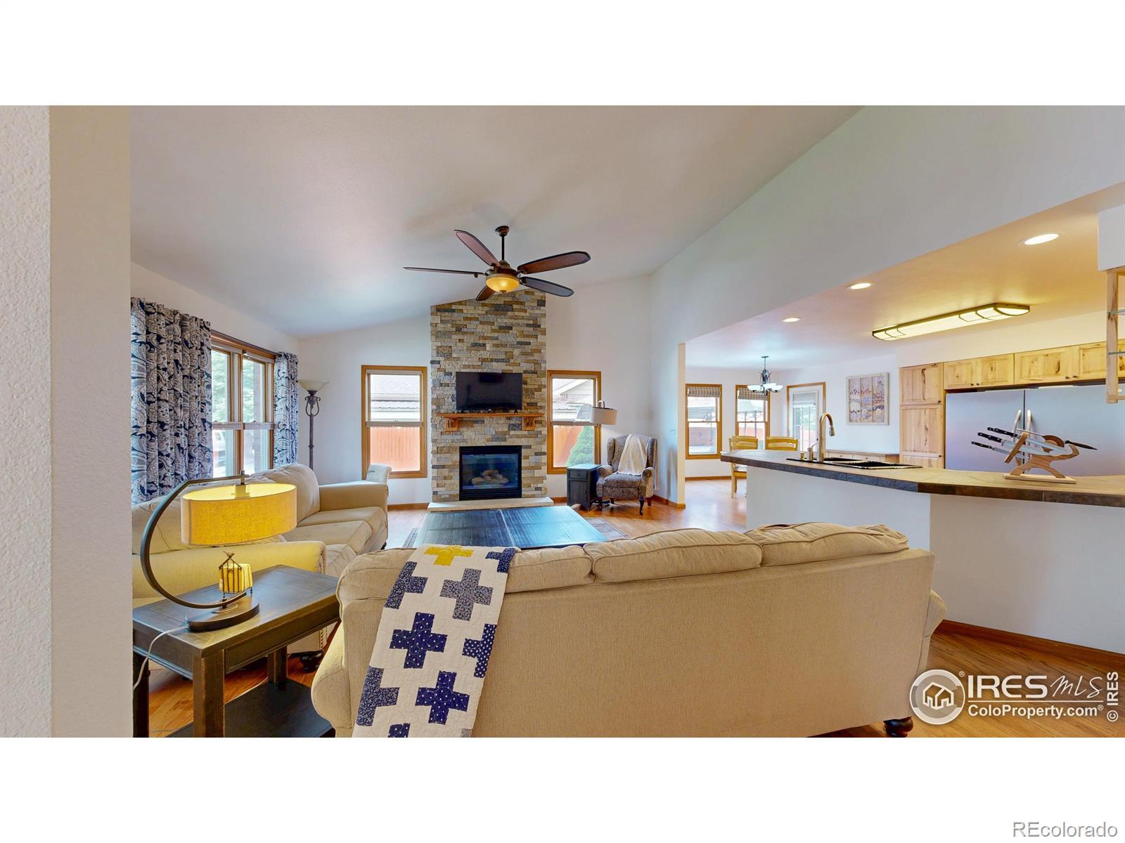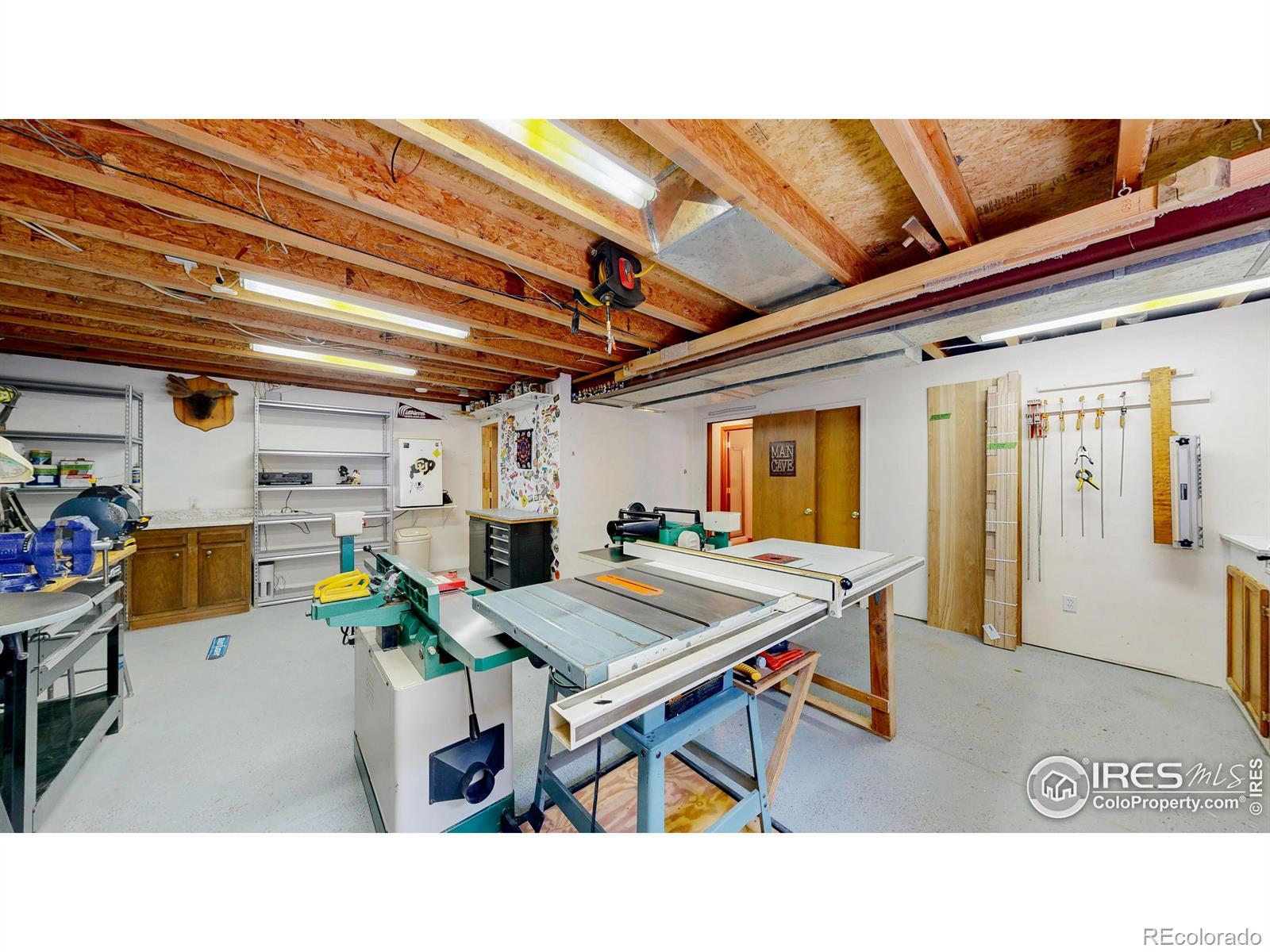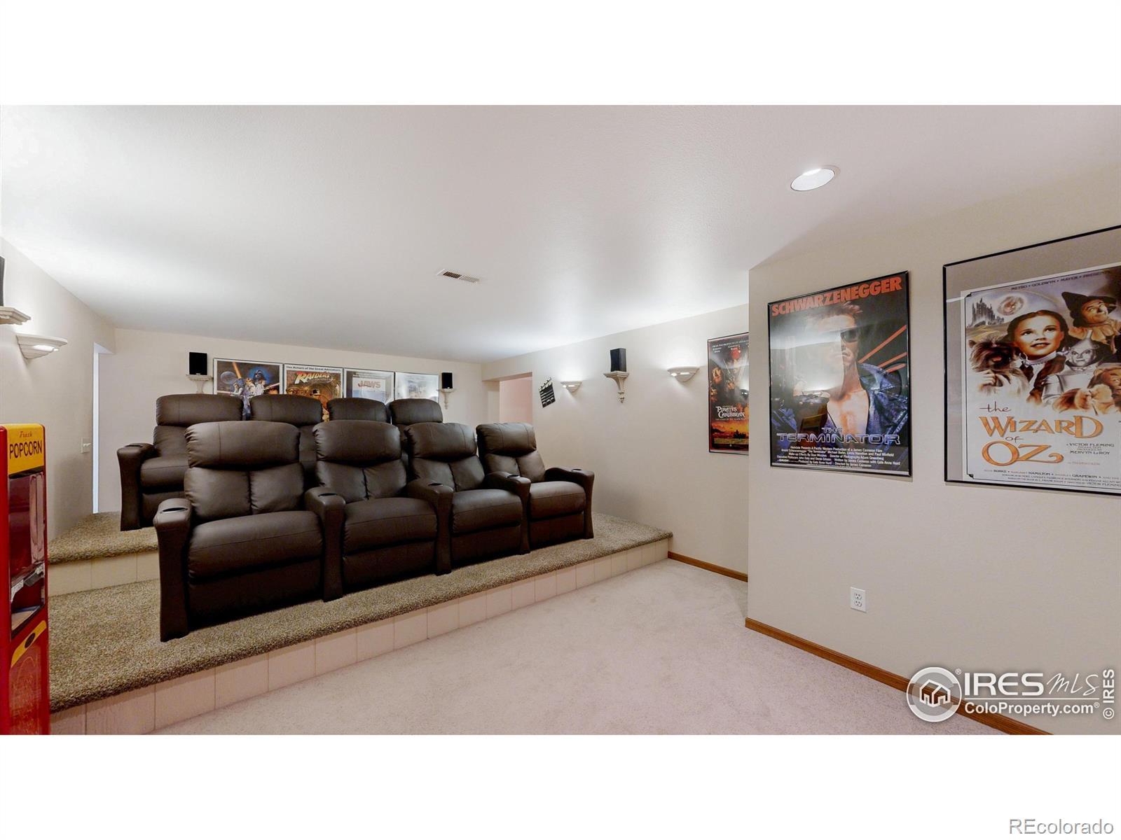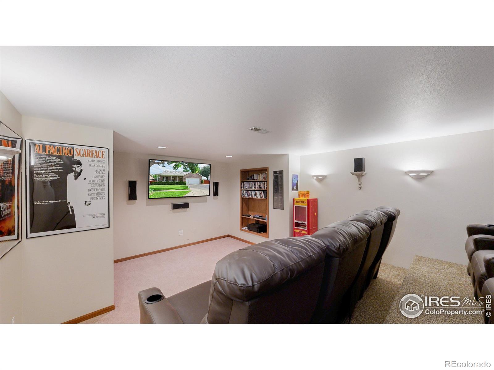 NO HOA and NO METRO DISTRICT! Great walkability score. Easy walking to Berthoud High, Turner Middle and Ivy Stockwell Elementrary, as well as Hay's Market, the dog park, Bein Park, Berthoud Brewing, A & W, downtown. Large ranch-style home has many features to appeal to a variety of interests-- large room in the basement with large window that will allow you to easily bring in materials for all your crafts and projects without having to go through the house. This home features a theater room with stadium seating, surround sound, TV and 8 leather recliners, perfect for movie night and the big game. Two large raised garden beds (with zoned water) that double as putting greens; outdoor kitchen with sink and refrigerator; covered patio with electrical outlets and lighting; very nicely landscaped with mature trees, bushes and lovely perennials; auto sprinklers front and back lawns, zoned water to plants); potting shed for outdoor storage is a charming miniature of the house. It has a unique roll-out sink with water; wood- fenced with gates on both sides of the house; RV parking that will accommodate a very large RV, or perhaps smaller RV and a boat + 30 amp and water hookup. Special features and amenities of the house include an open floor plan in the living/kitchen area, vaulted ceiling, gas log fireplace, an abundance of knotty hickory cabinets in the kitchen, built-in pantry with pull-out cookware racks and drawers, up/down cordless blinds, high elongated toilets, on and on. The streets are lined with fabulous mature trees, so nice in hot weather. All window coverings and appliances are included: full size refrigerator and freezer in kitchen, dishwasher, microwave, gas range with dual fuel, washer and dryer, refrigerators in outdoor kitchen, garage and in shop. Unique subdivision--no two houses alike.