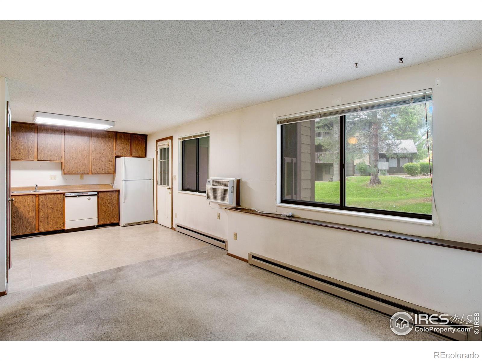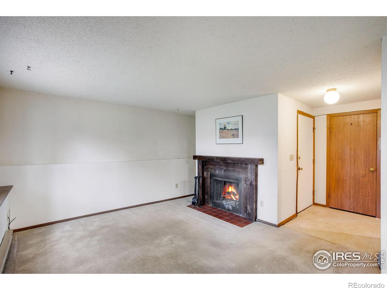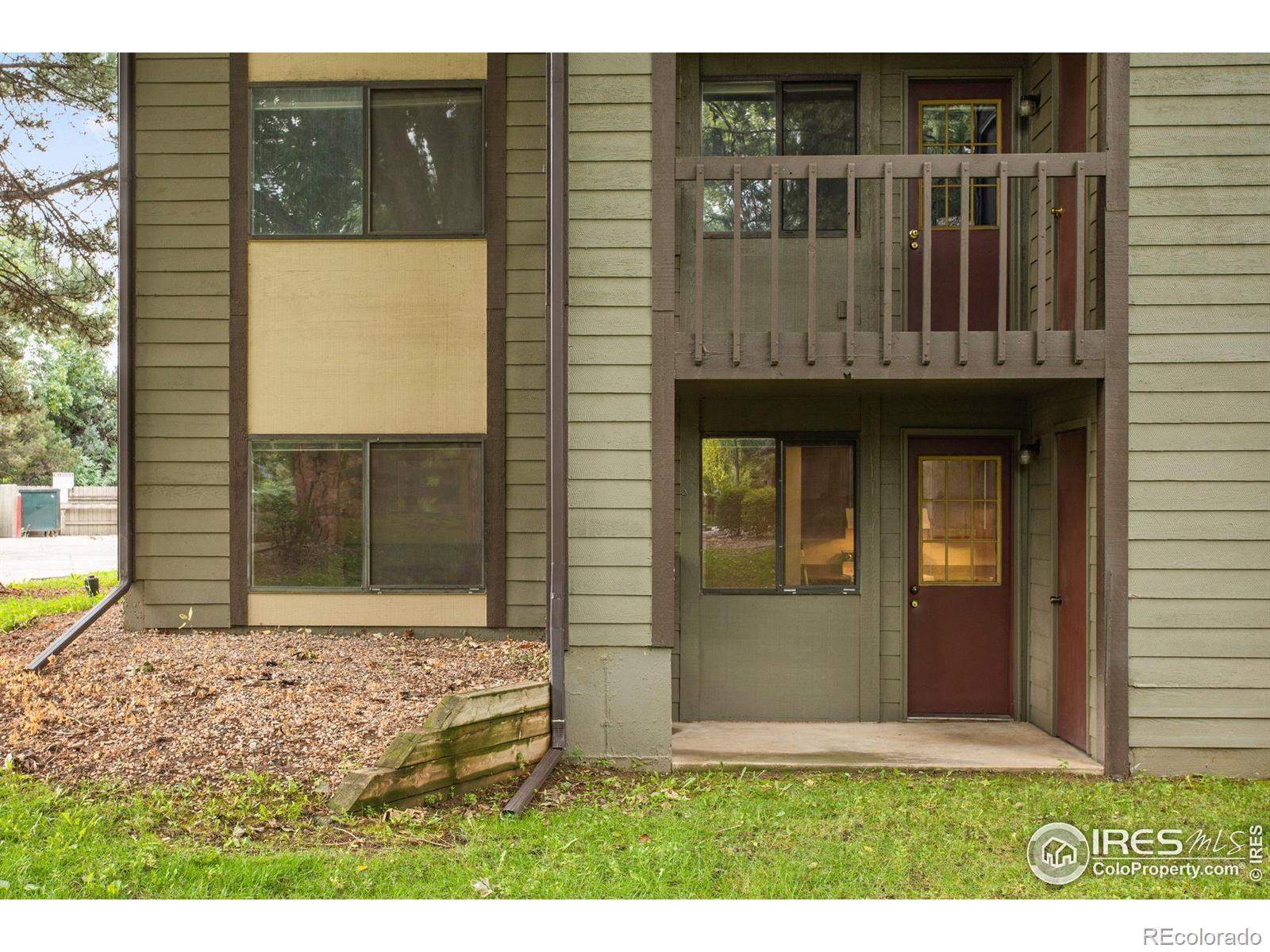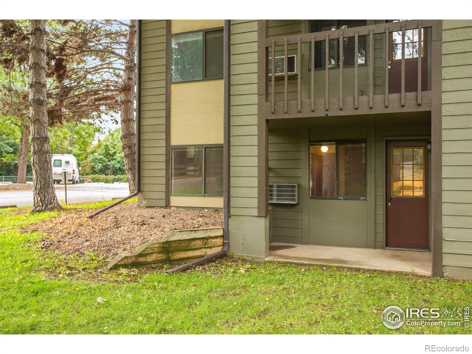 Walk out your front or back door and into a lush, park-like, tree-filled green space. This cute 1 bedroom, 1 bath condominium is an end unit, ground floor/garden level with a lovely walk-out patio facing the greenbelt. There is an extra storage closet out on the patio, and a small patio area by the garden-level front door. Enjoy the open floor plan between living room and nice-sized kitchen. Brand new high efficiency water heater installed April 2025. In the living room is a rarely found and seldom used wood burning fireplace and mantle giving this unit a distinct "Colorado" look.. HOA covers water, sewer, trash, ground maintenance, snow removal, building insurance (buyer would insure interior). All appliances in unit are included. All square footage and room measurements, as well as schools and any HOA rules, pet restrictions, etc., to be verified by buyer.