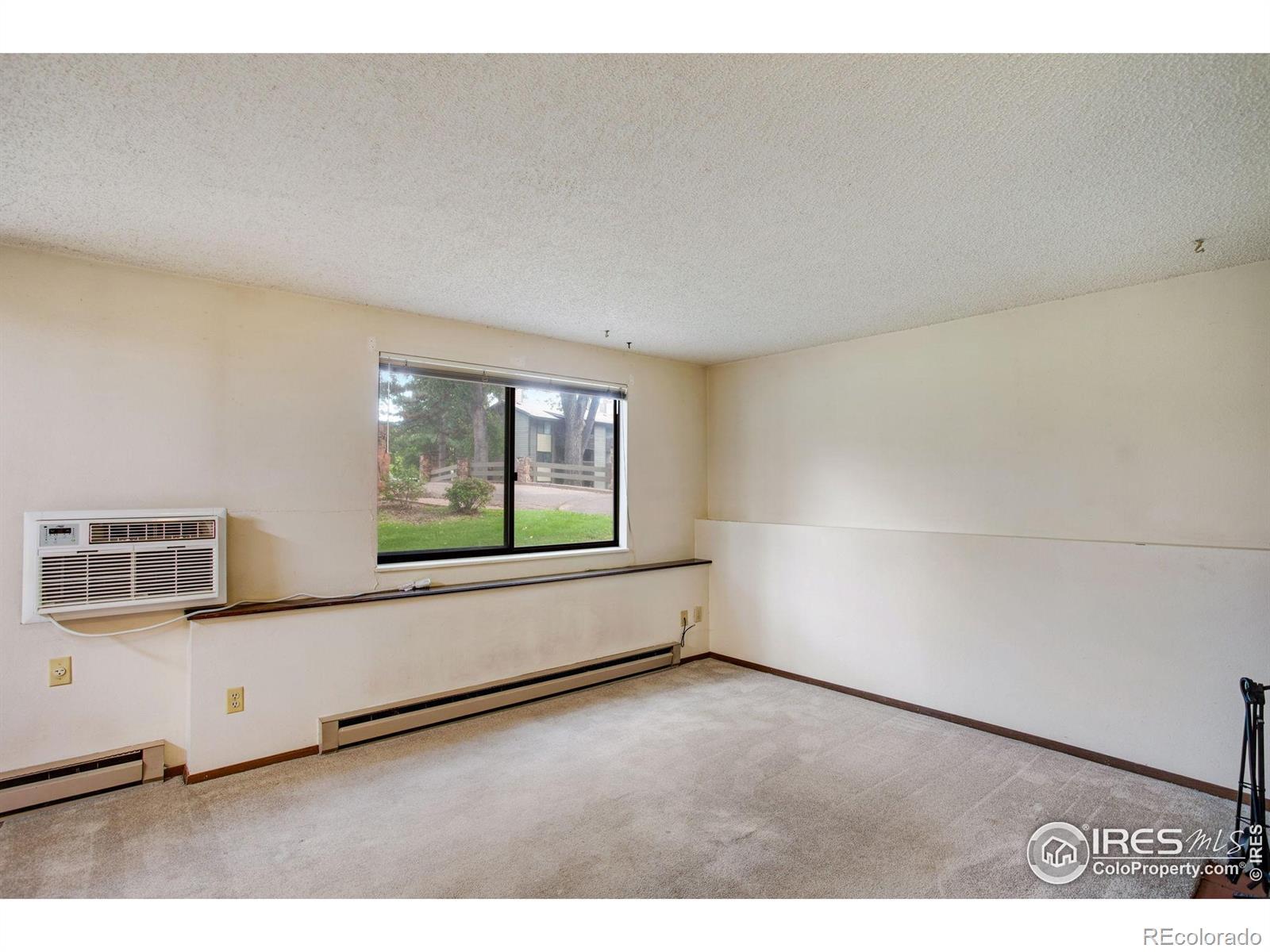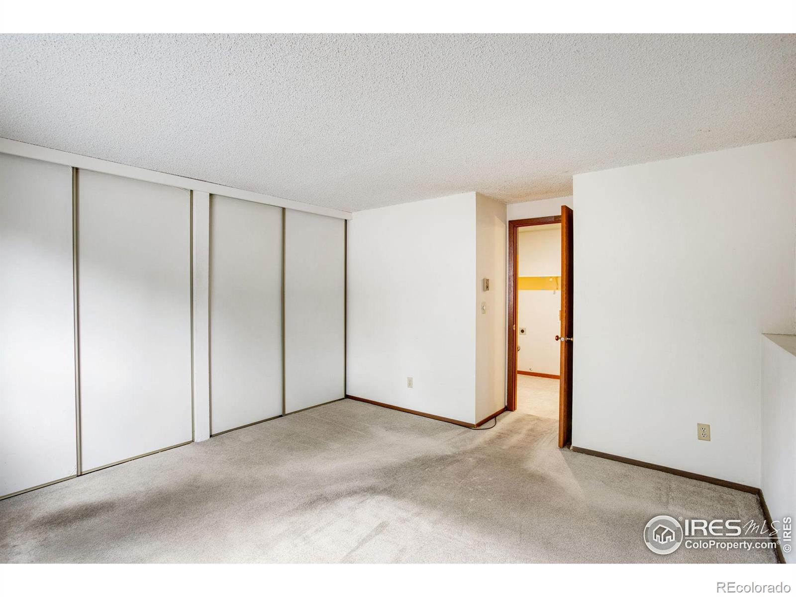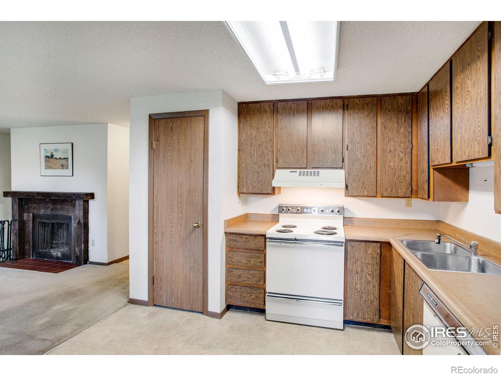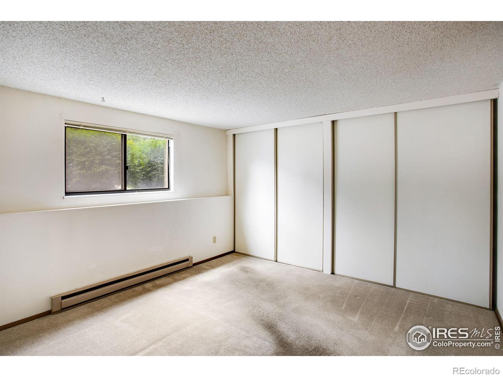 Walk out your front or back door and into a lush, park-like, tree-filled green space. This cute 1 bedroom, 1 bath condominium is an end unit, ground floor/garden level with a lovely walk-out patio facing the greenbelt. There is an extra storage closet out on the patio, and a small patio area by the garden-level front door. Enjoy the open floor plan between living room and nice-sized kitchen. Brand new high efficiency water heater installed April 2025. In the living room is a rarely found and seldom used wood burning fireplace and mantle giving this unit a distinct "Colorado" look.. HOA covers water, sewer, trash, ground maintenance, snow removal, building insurance (buyer would insure interior). All appliances in unit are included. All square footage and room measurements, as well as schools and any HOA rules, pet restrictions, etc., to be verified by buyer.