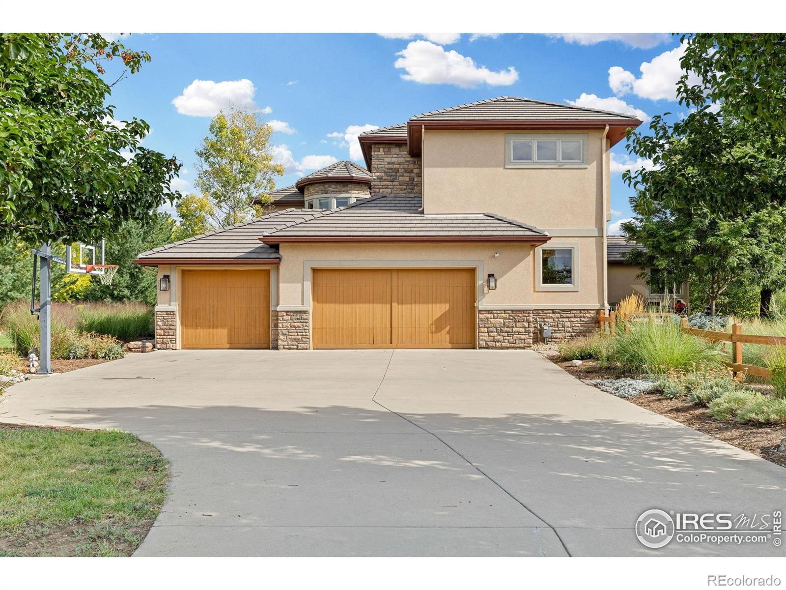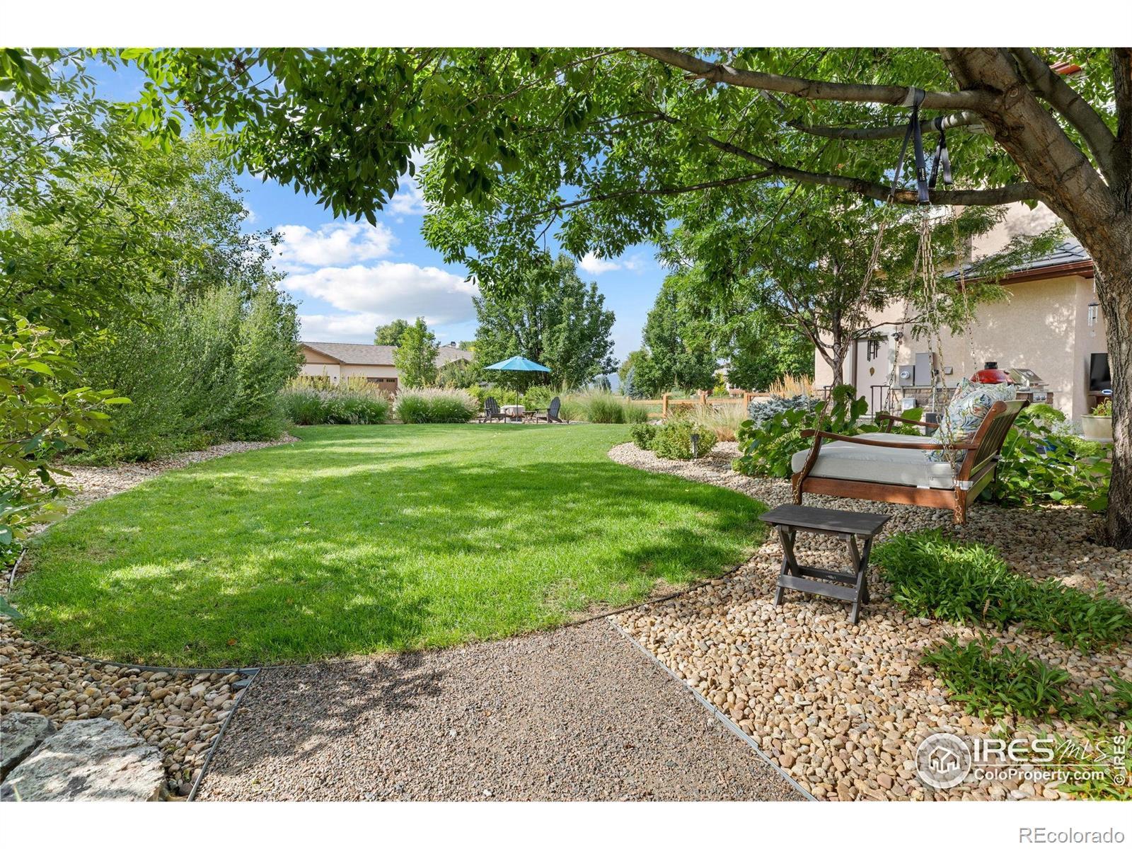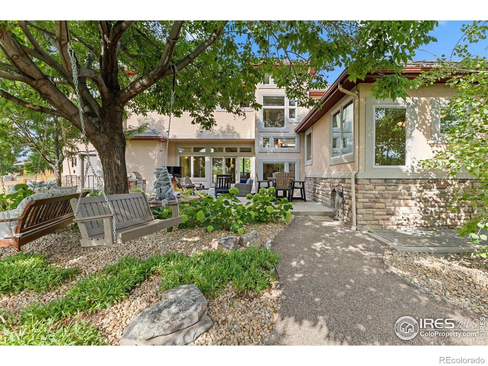 Nestled in the SW corner of Longmont lies an idyllic neighborhood of custom homes among tree lined streets. The Summerlin neighborhood provides charm and seclusion as well as the sought after convenience to parks, shopping, and access to Boulder. 8584 Summerlin Place is a prominent and distinguished home within the neighborhood standing on nearly an acre of land. Upon stepping inside you are greeted by an open foyer with a gorgeous wood inlay accenting the high arched ceiling. The main level opens up to a warm and generous living area with an adjacent dining space that flows directly to the kitchen. The kitchen is well appointed with designer finishes, plenty of prep space, and a breakfast nook, all of which is complimented by a warm stone fireplace. Two comfortable guest suites with a shared bathroom are also located on the main level which can also serve as a terrific office space. At the top of the stairs is yet another outdoor living space. The protected patio with its gas fireplace is a terrific spot to unwind. The upper level branches off into two wings. One side is host to the primary suite that includes a cozy sitting area with bay windows and a fireplace. The bathroom has the modern spa touches of radiant floor heating, an oversized glass steam shower with dual heads, and a sleek soaking tub. The second wing is where you'll find two additional bedrooms, a shared bathroom, and the laundry room. A highlight of the home is the outdoor living which is serene among a well landscaped and fenced in backyard. It's also a popular space for gathering with friends for a bbq and watching the Broncos game. The owner has kept incredible care of this home with a number of notable updates including a beautiful remodels of the kitchen and primary bathroom. This home is an exceptional opportunity to enjoy the luxurious comforts of a custom home within a boutique neighborhood.