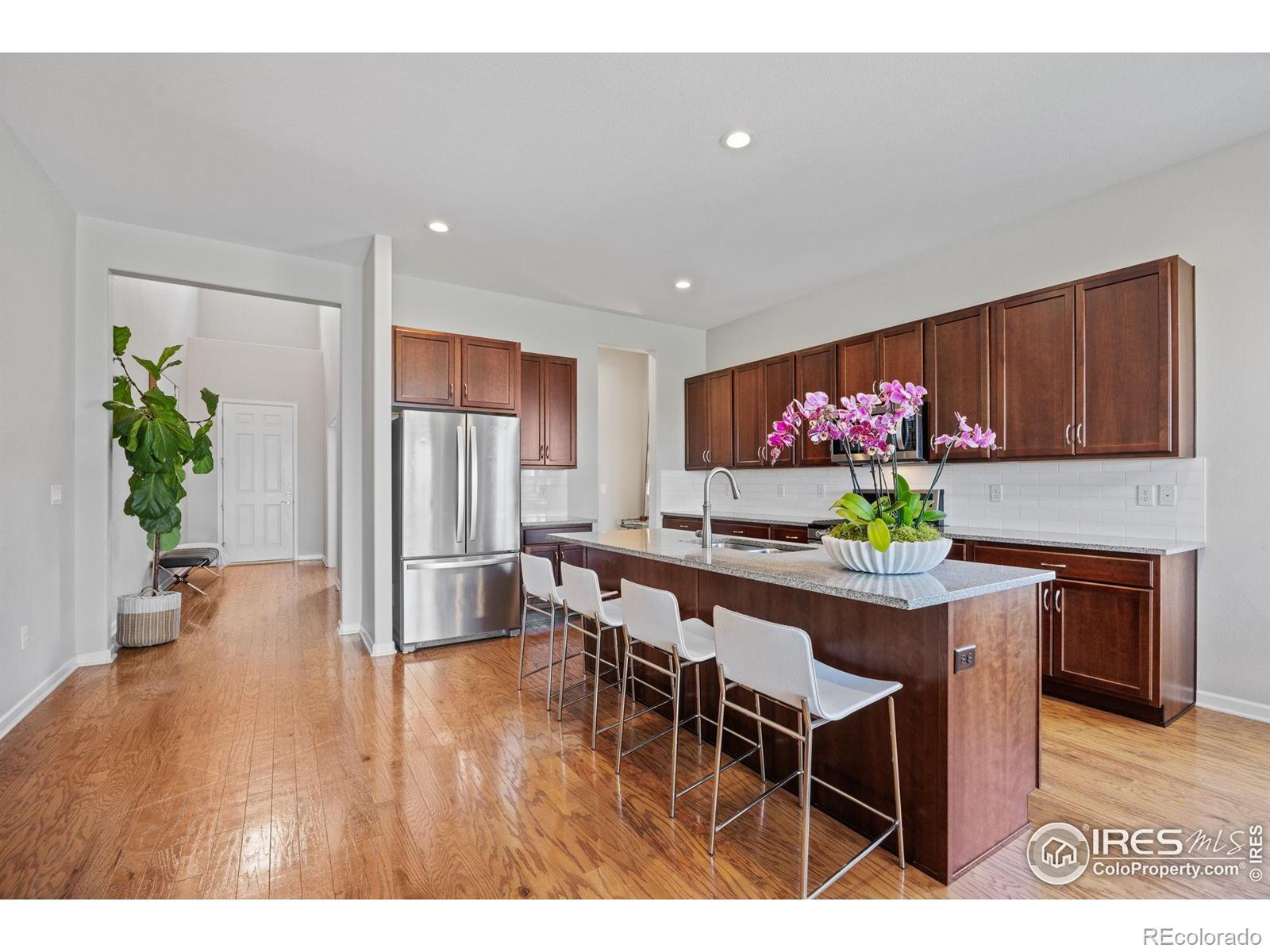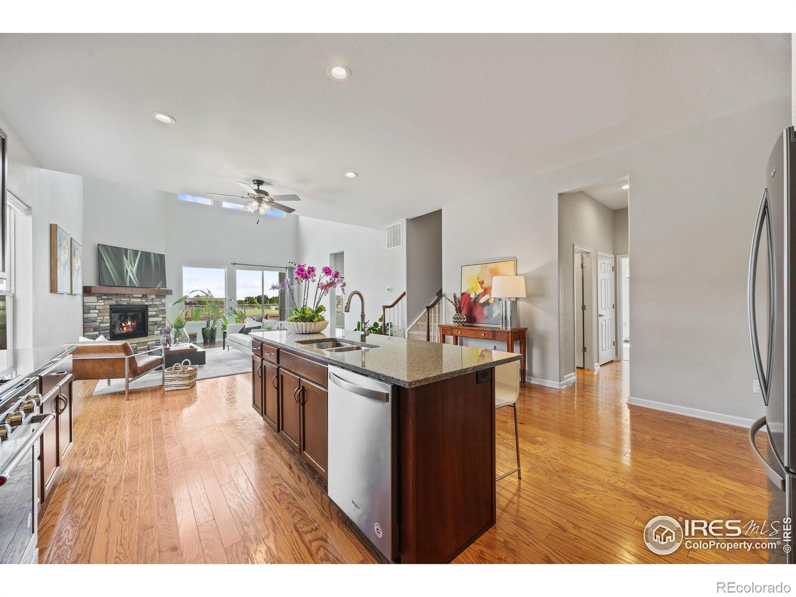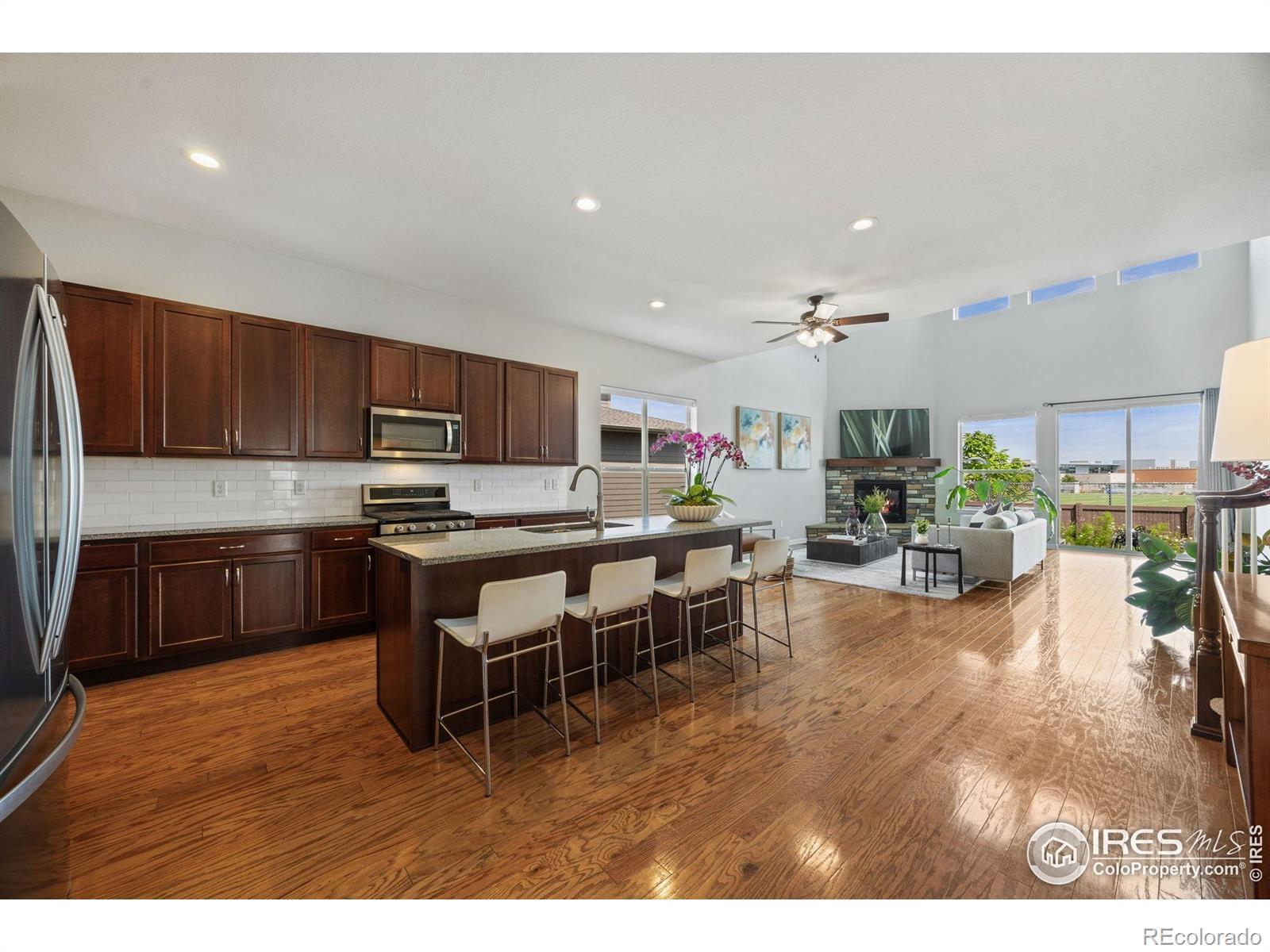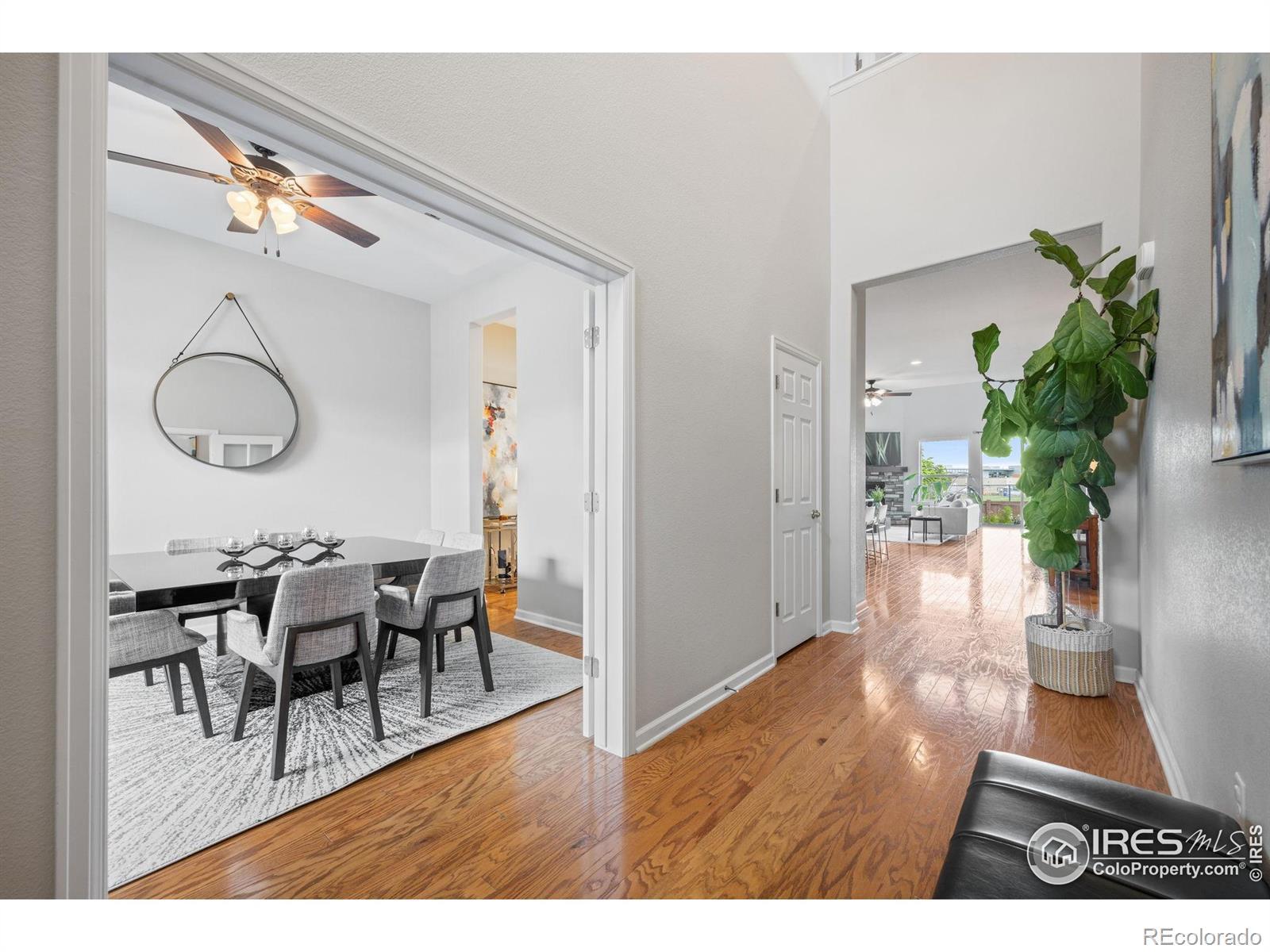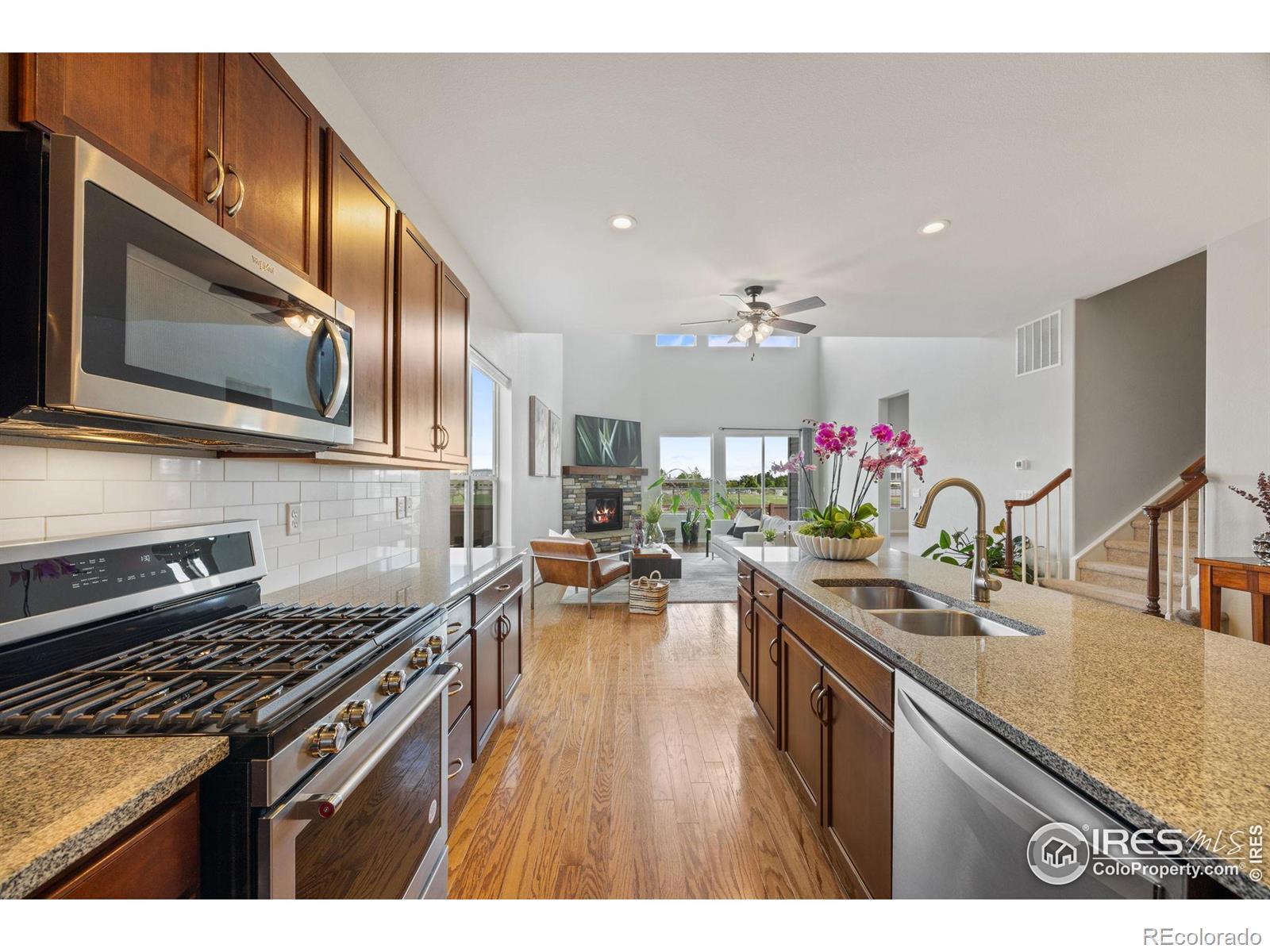 This beautifully designed home offers 5,180 sq. ft. of living space plus a three-car garage, blending generous proportions with everyday comfort and style. From the moment you step into the soaring two-story entry, you'll feel the sense of light and openness that carries throughout the home.The main floor primary suite creates a private retreat, while a dedicated main floor study makes working from home effortless. At the heart of the home, the kitchen, breakfast nook, and great room connect in a seamless open plan-highlighted by warm wood floors and a cozy gas fireplace. The kitchen is a chef's delight with abundant cabinetry, expansive granite counters, a large central island, walk-in pantry, stainless steel appliances, and a gas range. A formal dining room adds versatility, perfect for elegant gatherings or as a second office.Upstairs, you'll find three spacious bedrooms (each with a walk-in closet), two full baths, a large loft that works beautifully as a second living room, playroom, or media space, plus a dedicated storage room. Comfort is enhanced by a second furnace for efficient climate control. For even more possibilities, the unfinished basement offers plenty of room to design the space you've always imagined.Step outside and enjoy Colorado living at its best in the fully fenced, landscaped backyard with both a covered patio and an extended patio-ideal for grilling, entertaining, or simply relaxing in the fresh air.Built in 2018 and backing to Kinard Core Knowledge Middle School, this home is also close to top-rated schools, shopping, dining, recreation, and all the amenities Fort Collins has to offer. Thoughtful design, a main floor primary suite, modern finishes, dual furnaces, and abundant storage make it truly move-in ready. Better than new-and ready for you today!