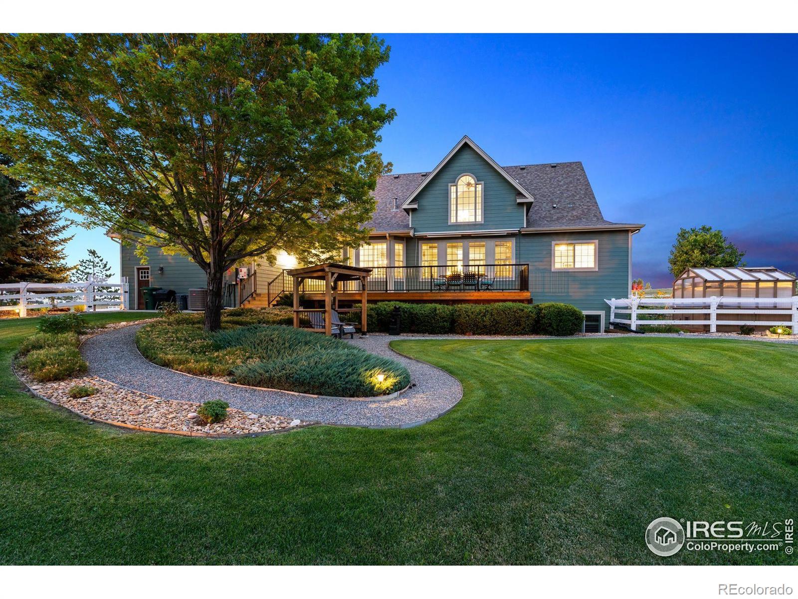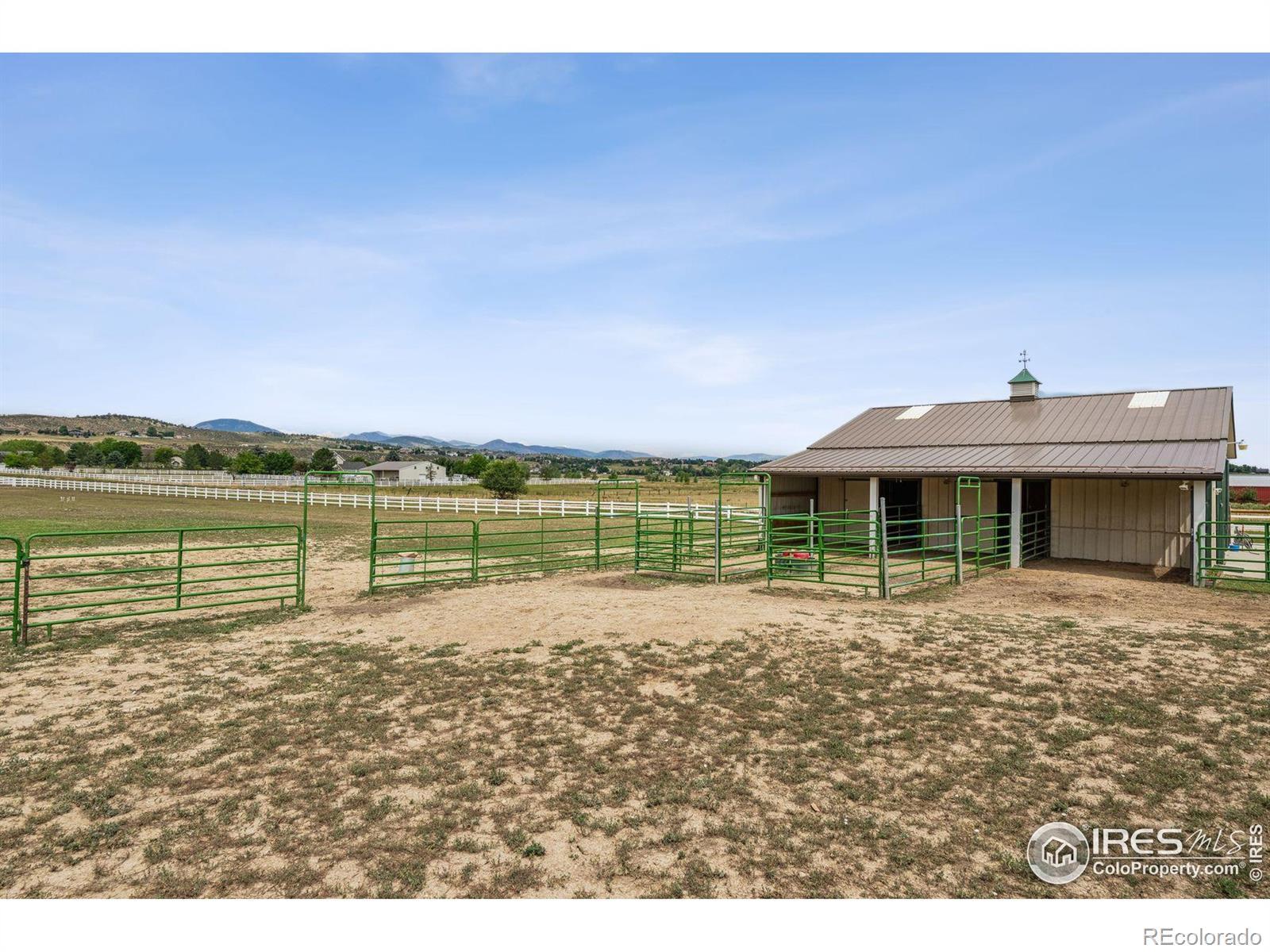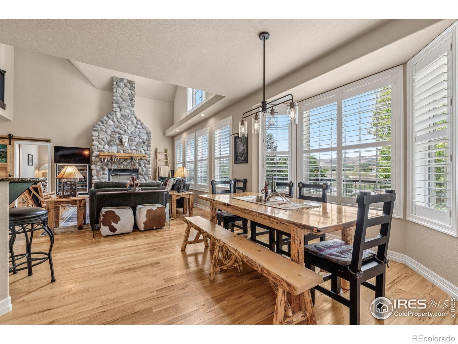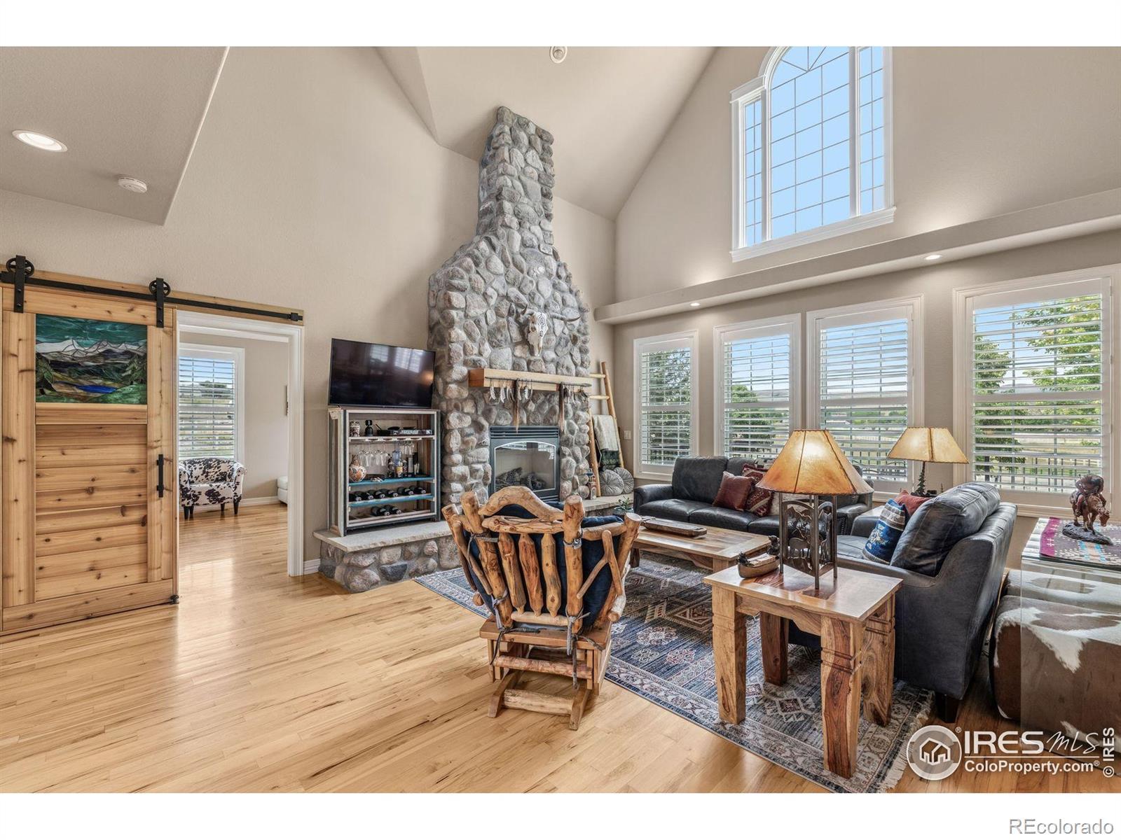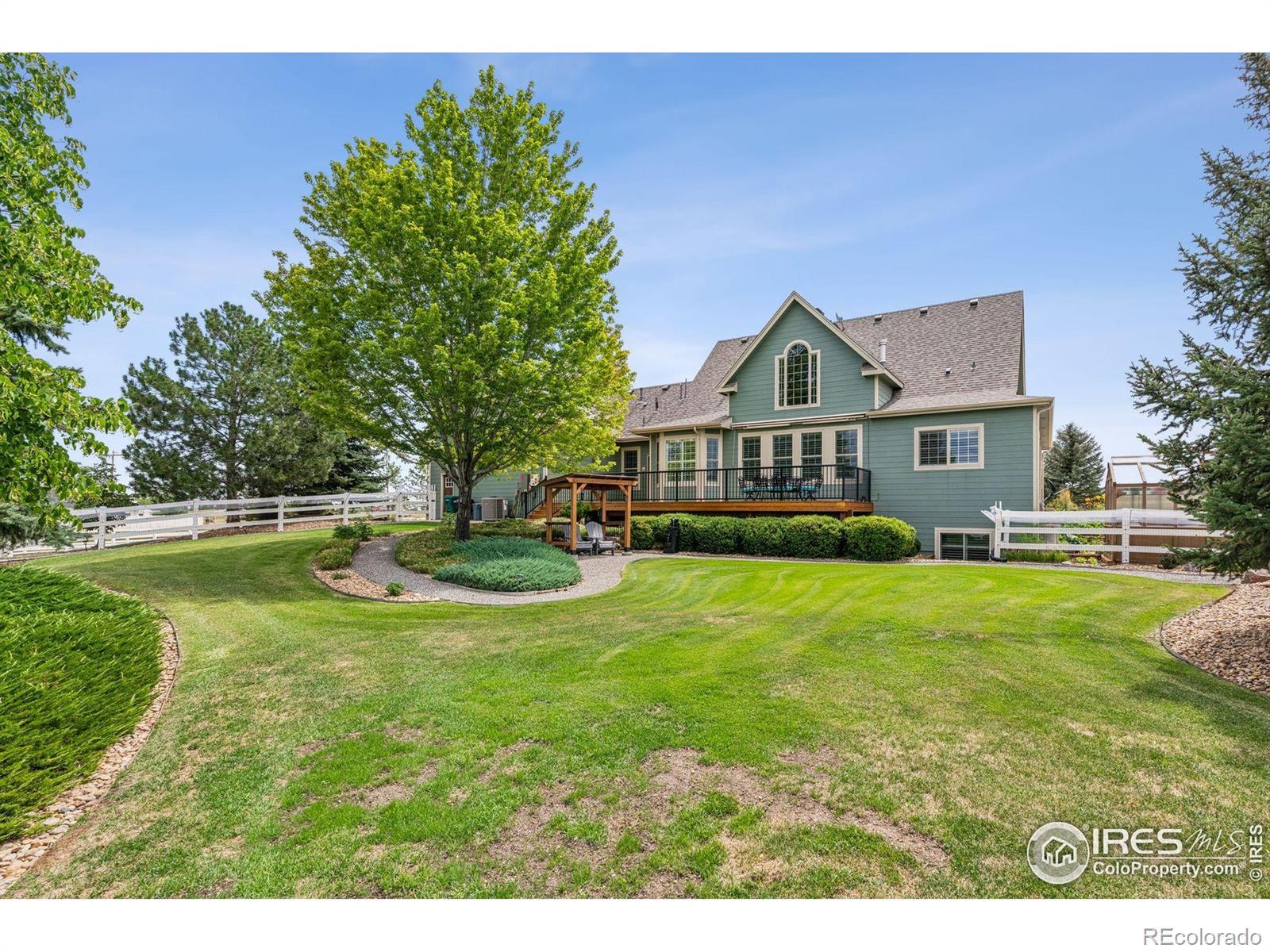 Welcome to your dream retreat on 3.53 pristine acres in the coveted Falcon Pointe community-where luxury living meets equestrian elegance. This beautifully updated 4-bed, 4-bath home showcases custom finishes throughout, including rich hardwood floors on both the main and upper levels, vaulted ceilings, and a spacious primary suite with spa-like comfort. A dedicated study on the main floor offers the perfect work-from-home setup, while the upper level features two generously sized bedrooms and a full bath.The garden-level basement is flooded with natural light and designed for entertaining, complete with a wet bar, expansive rec room, guest bedroom, and abundant storage. Step outside to enjoy lush landscaping, a private front porch, and a large back deck with a powered awning-ideal for soaking in panoramic views of the mountains and foothills.A fully paid-for solar system delivers energy efficiency and long-term savings, making this home as smart as it is stunning.Equestrian enthusiasts will love the newer barn with two horse stalls, tack room, hay storage, and a fully fenced pasture. And with the HOA's private riding arena just steps away, this property lives like 20 acres of open space and opportunity.Location perks? You're just 5 minutes from TPC Colorado at Heron Lakes, 10 minutes to downtown Loveland, and only 35 minutes from Boulder. Plus, you're just minutes from several lakes and scenic trails, offering endless opportunities for hiking, biking, fishing, and paddleboarding.A rare blend of comfort, functionality, and Colorado beauty-this is more than a home, it's a lifestyle.