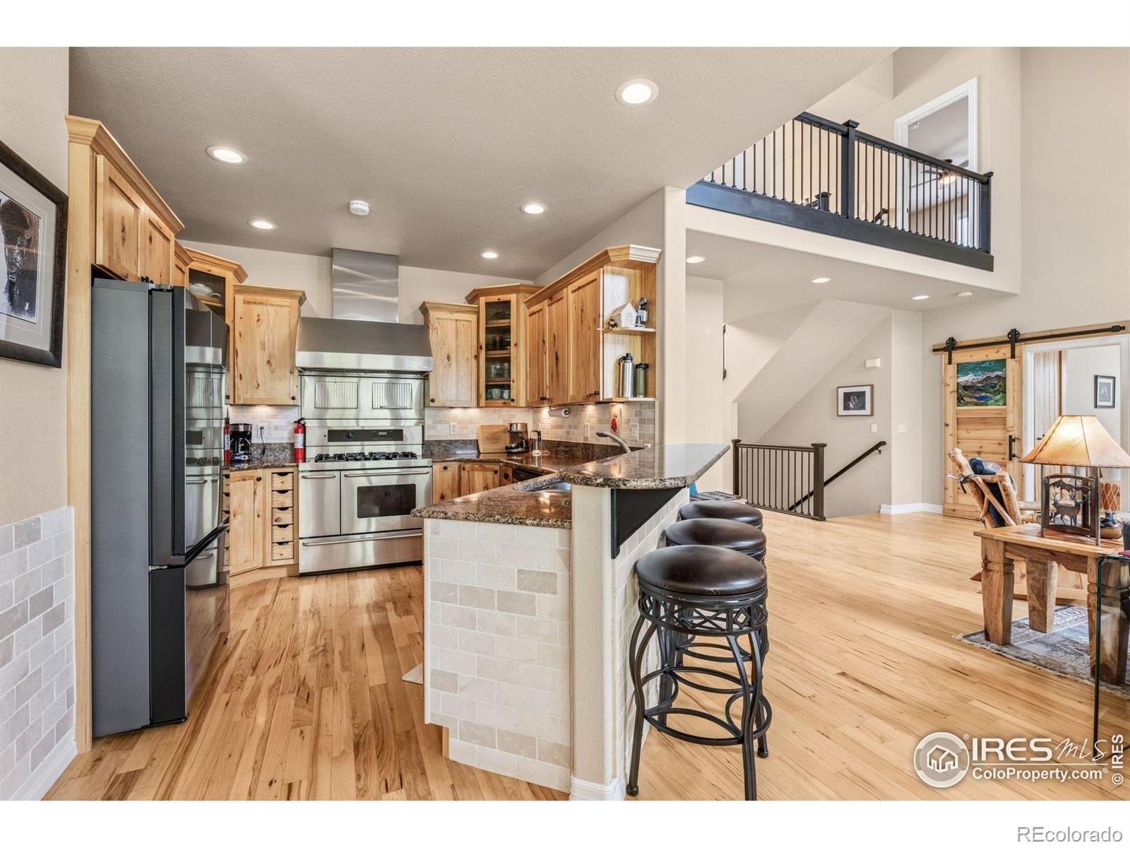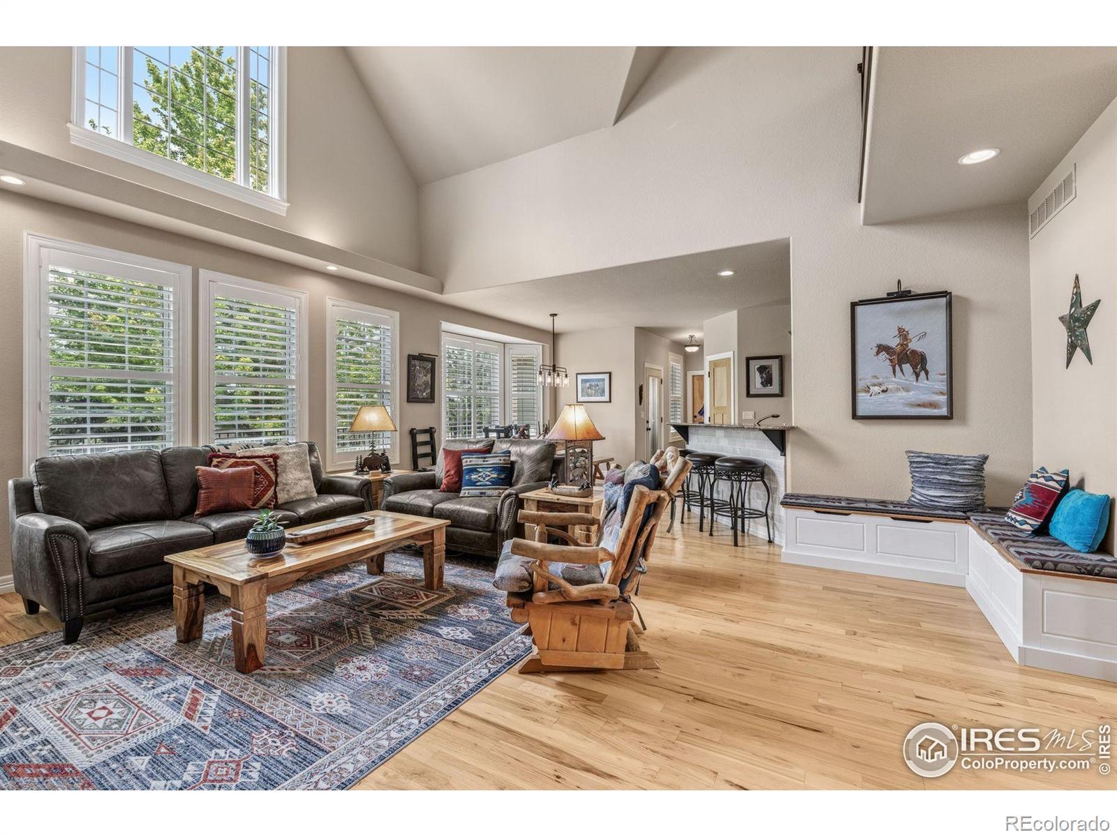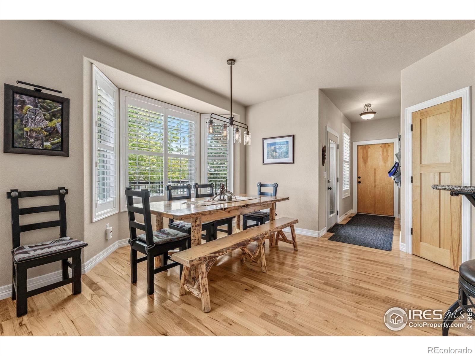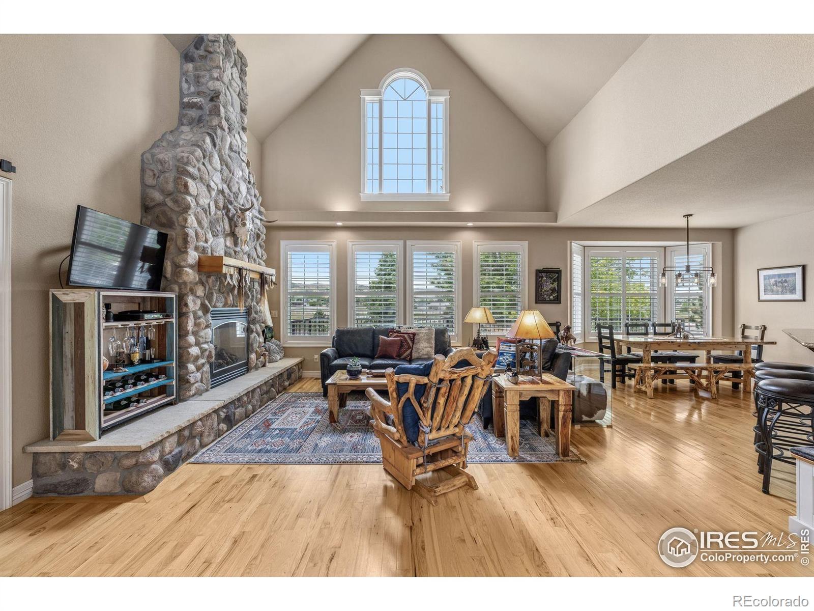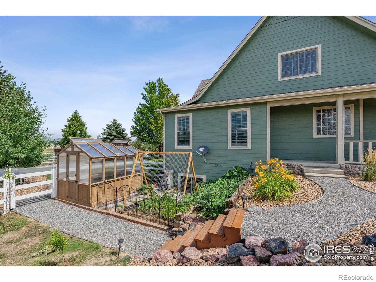 Welcome to your dream retreat on 3.53 pristine acres in the coveted Falcon Pointe community-where luxury living meets equestrian elegance. This beautifully updated 4-bed, 4-bath home showcases custom finishes throughout, including rich hardwood floors on both the main and upper levels, vaulted ceilings, and a spacious primary suite with spa-like comfort. A dedicated study on the main floor offers the perfect work-from-home setup, while the upper level features two generously sized bedrooms and a full bath.The garden-level basement is flooded with natural light and designed for entertaining, complete with a wet bar, expansive rec room, guest bedroom, and abundant storage. Step outside to enjoy lush landscaping, a private front porch, and a large back deck with a powered awning-ideal for soaking in panoramic views of the mountains and foothills.A fully paid-for solar system delivers energy efficiency and long-term savings, making this home as smart as it is stunning.Equestrian enthusiasts will love the newer barn with two horse stalls, tack room, hay storage, and a fully fenced pasture. And with the HOA's private riding arena just steps away, this property lives like 20 acres of open space and opportunity.Location perks? You're just 5 minutes from TPC Colorado at Heron Lakes, 10 minutes to downtown Loveland, and only 35 minutes from Boulder. Plus, you're just minutes from several lakes and scenic trails, offering endless opportunities for hiking, biking, fishing, and paddleboarding.A rare blend of comfort, functionality, and Colorado beauty-this is more than a home, it's a lifestyle.