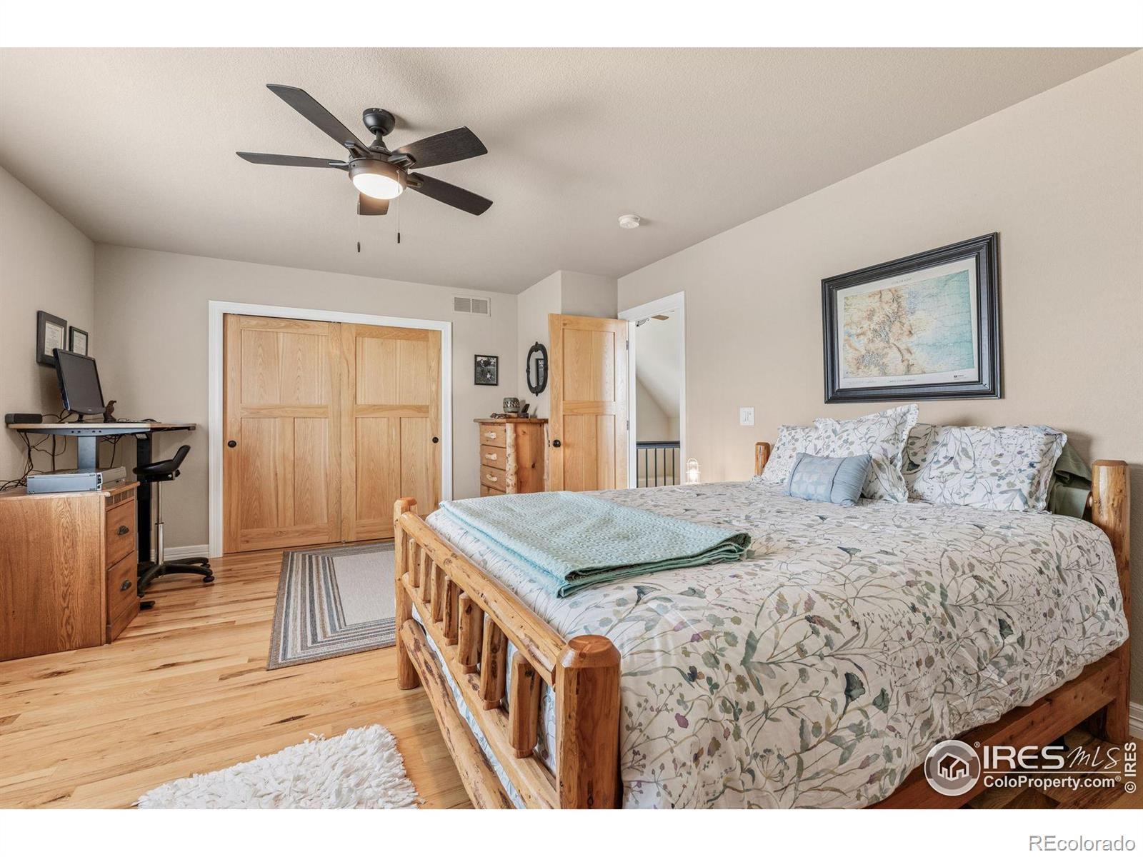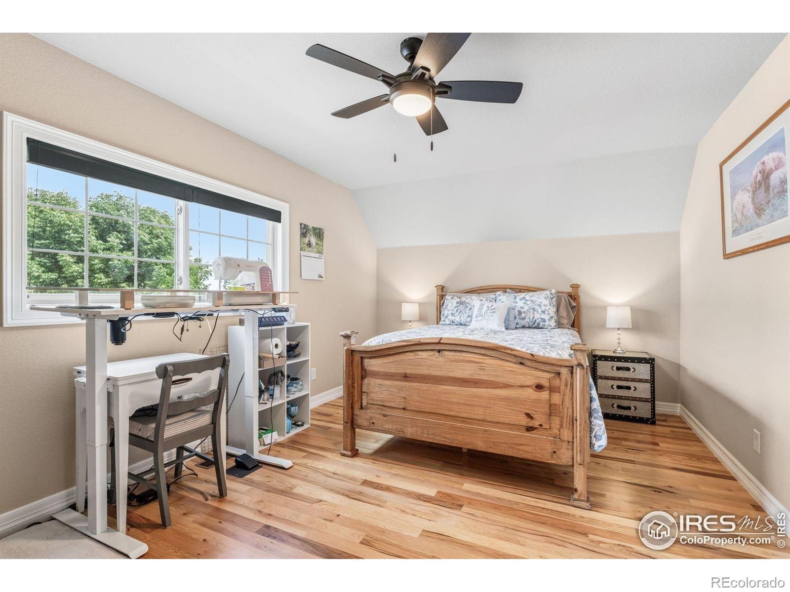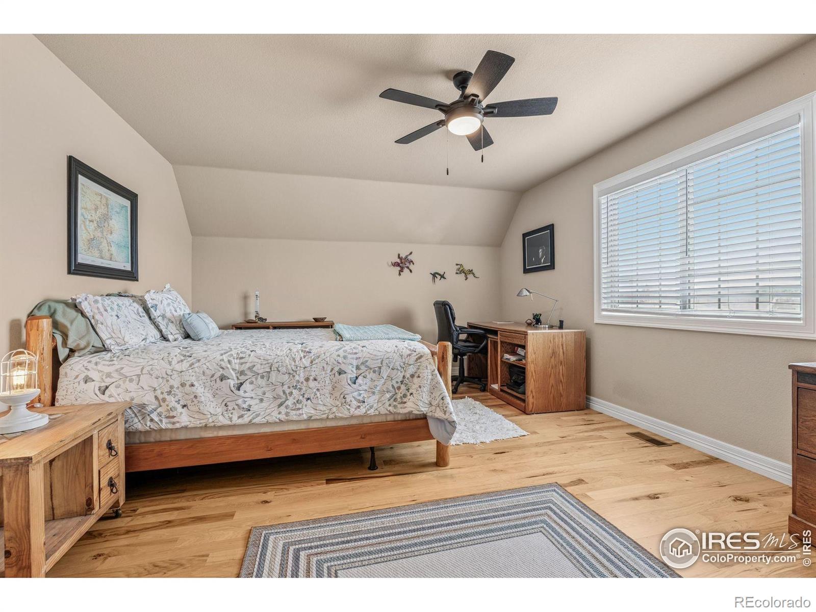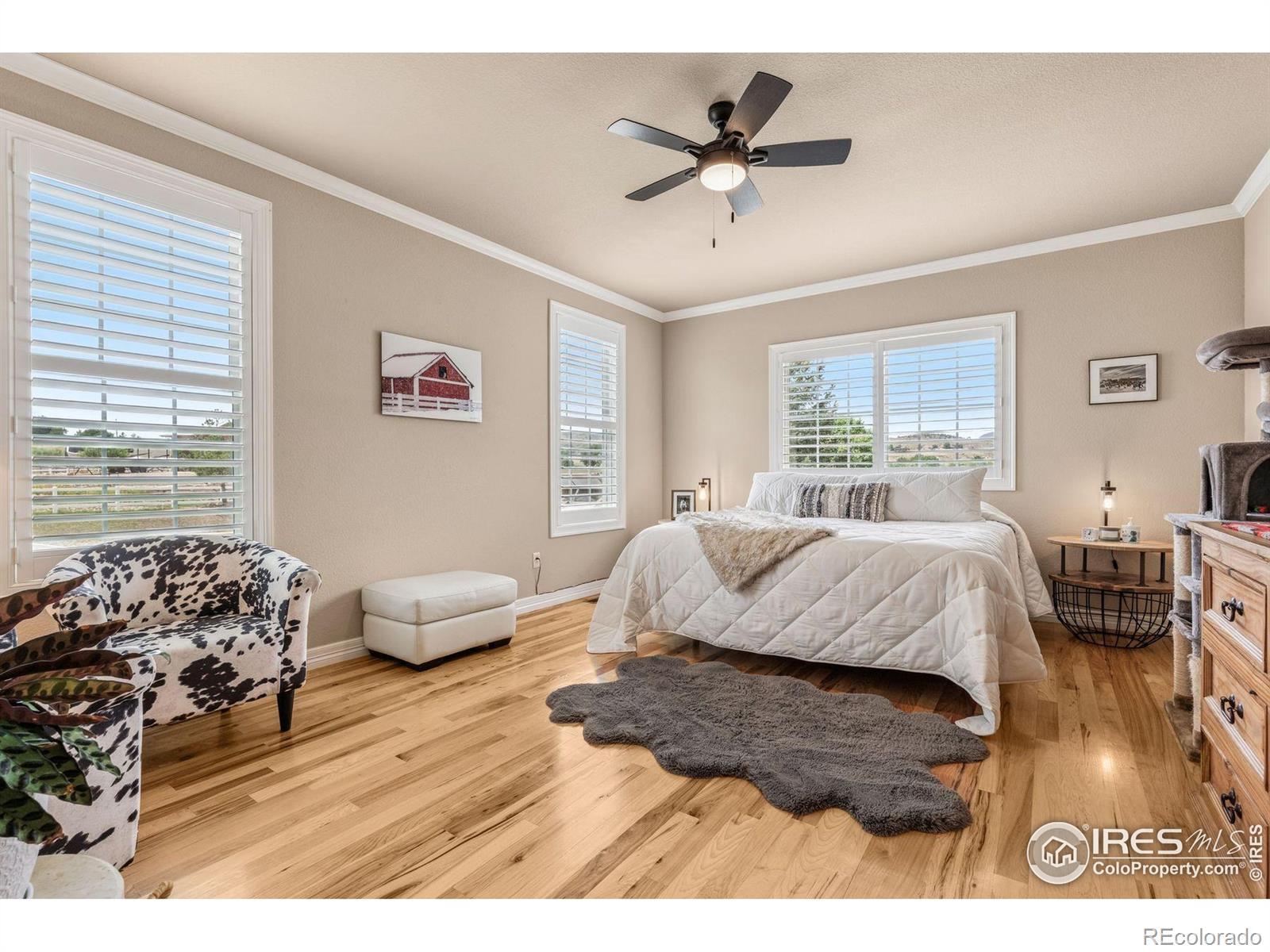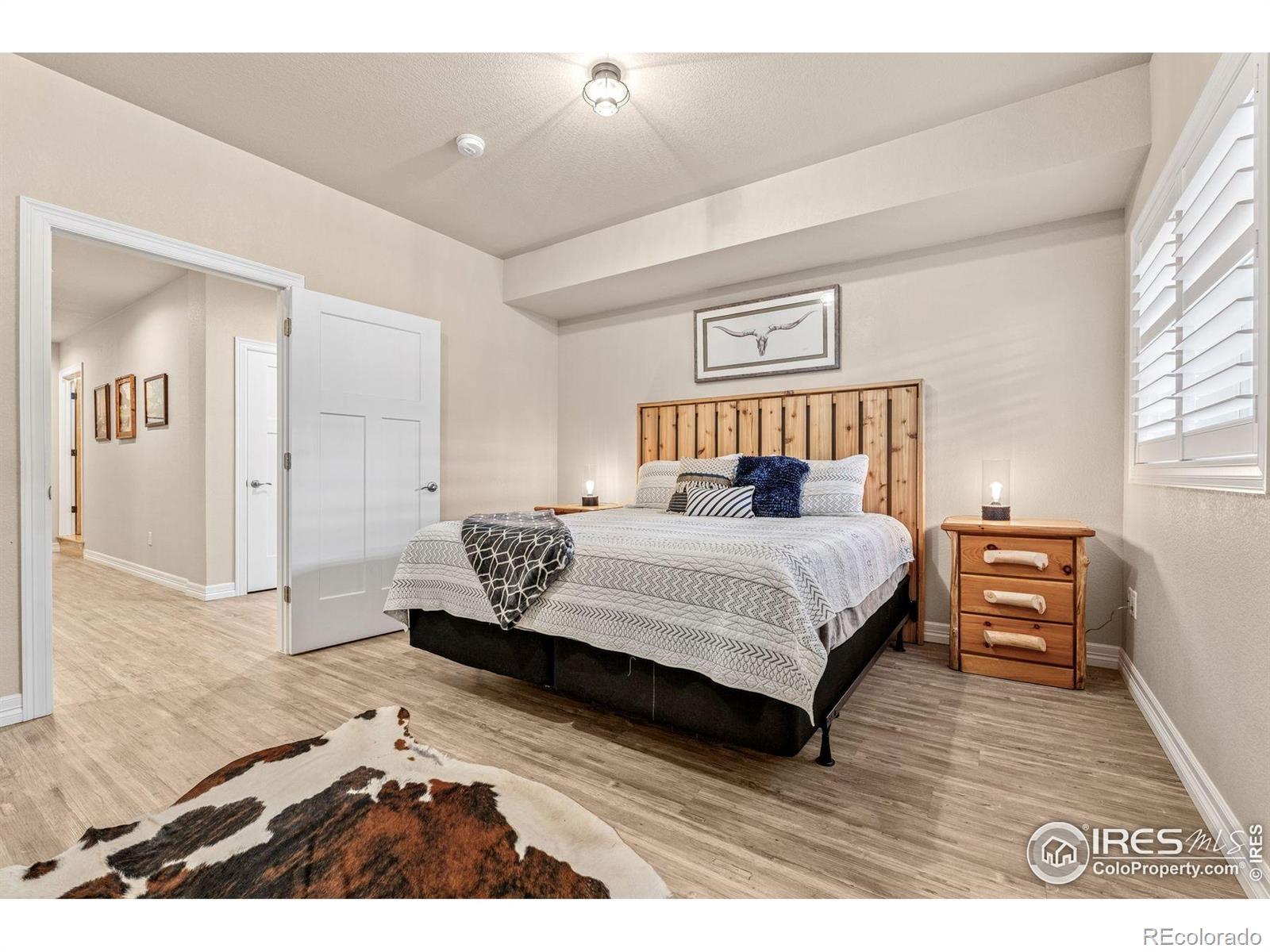 Welcome to your dream retreat on 3.53 pristine acres in the coveted Falcon Pointe community-where luxury living meets equestrian elegance. This beautifully updated 4-bed, 4-bath home showcases custom finishes throughout, including rich hardwood floors on both the main and upper levels, vaulted ceilings, and a spacious primary suite with spa-like comfort. A dedicated study on the main floor offers the perfect work-from-home setup, while the upper level features two generously sized bedrooms and a full bath.The garden-level basement is flooded with natural light and designed for entertaining, complete with a wet bar, expansive rec room, guest bedroom, and abundant storage. Step outside to enjoy lush landscaping, a private front porch, and a large back deck with a powered awning-ideal for soaking in panoramic views of the mountains and foothills.A fully paid-for solar system delivers energy efficiency and long-term savings, making this home as smart as it is stunning.Equestrian enthusiasts will love the newer barn with two horse stalls, tack room, hay storage, and a fully fenced pasture. And with the HOA's private riding arena just steps away, this property lives like 20 acres of open space and opportunity.Location perks? You're just 5 minutes from TPC Colorado at Heron Lakes, 10 minutes to downtown Loveland, and only 35 minutes from Boulder. Plus, you're just minutes from several lakes and scenic trails, offering endless opportunities for hiking, biking, fishing, and paddleboarding.A rare blend of comfort, functionality, and Colorado beauty-this is more than a home, it's a lifestyle.
