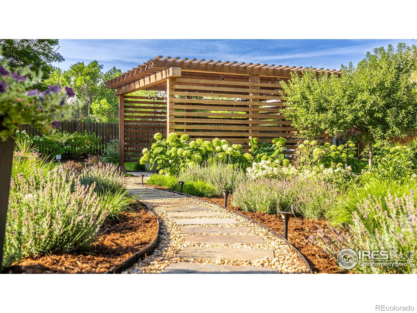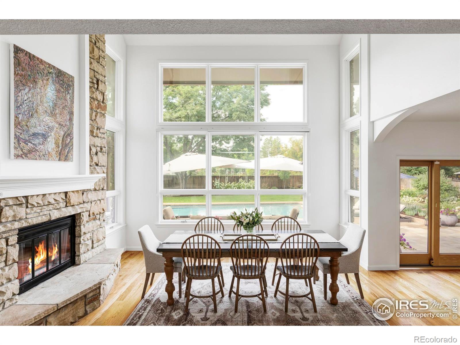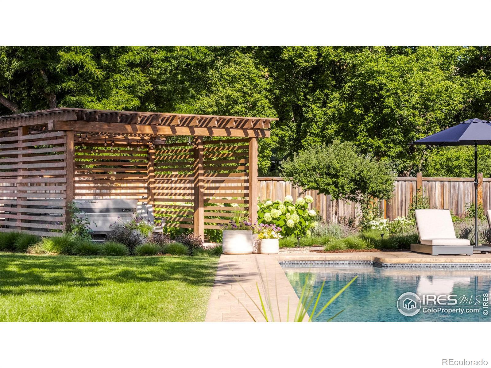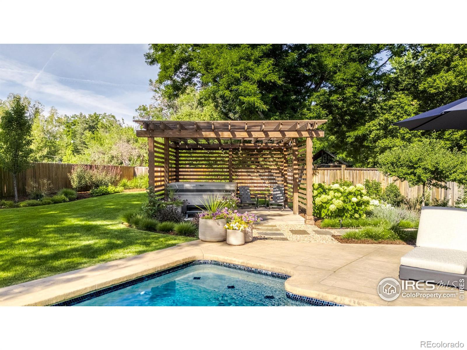 Set on a quiet street in The Reserve at Sombrero Ranch, this Tudor-inspired estate is framed by manicured gardens and timeless curb appeal. Resting on more than a half acre with mature trees, the home blends thoughtful updates and fresh finishes with outdoor spaces that evoke a private resort. Sunlight and serene garden views fill the interiors, creating a lifestyle rarely found in Boulder-elegant, welcoming, and evocative of California living. A double-door stone entry opens to soaring ceilings and light-filled gathering spaces. The family and dining rooms are anchored by a dramatic stone fireplace, while the gourmet kitchen with Wolf and Miele appliances and dual islands connects seamlessly to the backyard. A four-season sunroom with wet bar further extends the living space, opening to an outdoor dining patio. The main-level primary suite opens to a pergola-covered patio with Flatiron views and direct pool access, complemented by a spa-inspired bathroom with dual vanities, soaking tub, steam shower, and custom walk-in closet. Upstairs, the southwest-facing office and a secondary bedroom frame Flatiron views. Two additional bedrooms, including a spacious en suite, are offered along with a well-appointed bathroom. A vaulted bonus wing above the garage provides flexible space for guests or recreation.The backyard is the true showpiece: a sparkling heated saltwater pool surrounded by stone patios, a built-in BBQ and dining area, lounge with outdoor fireplace, and a pergola-covered hot tub. Terraces and winding paths meander through lush gardens of roses, lavender, hydrangea, and a chef's vegetable garden. Designed for privacy and year-round enjoyment, the outdoor spaces invite everything from lively gatherings to peaceful mornings with coffee in the garden, all set against Boulder's stunning mountain backdrop.Residents of The Reserve enjoy a renovated clubhouse, pool, and tennis/pickleball courts, with golf, open space, and Downtown Boulder just minutes away.