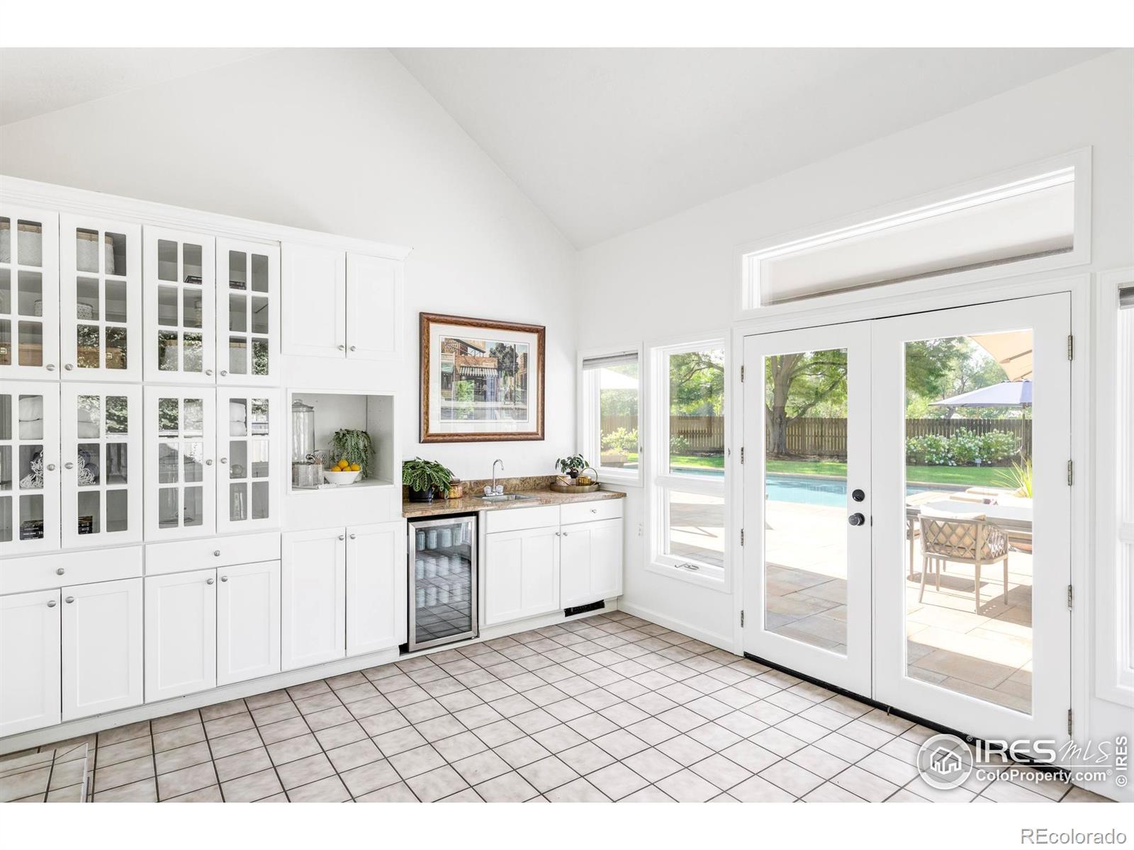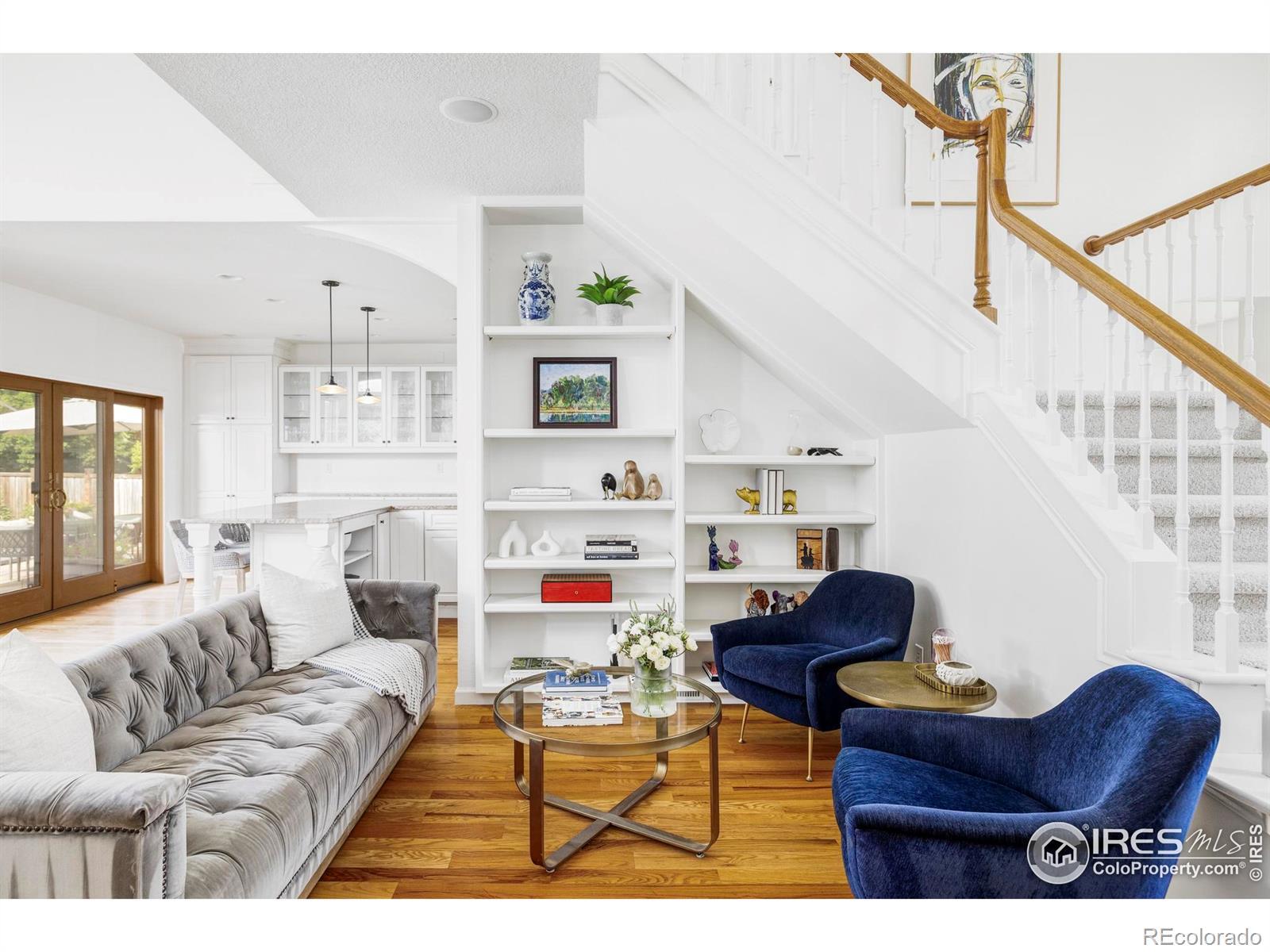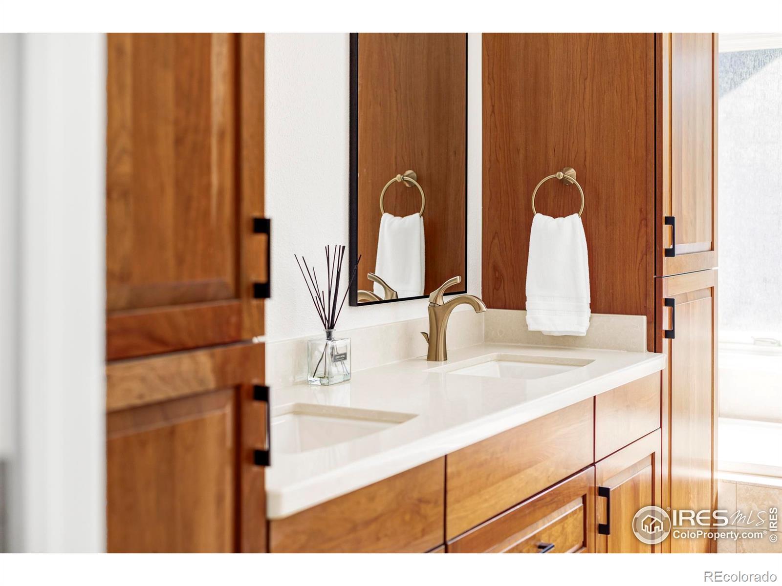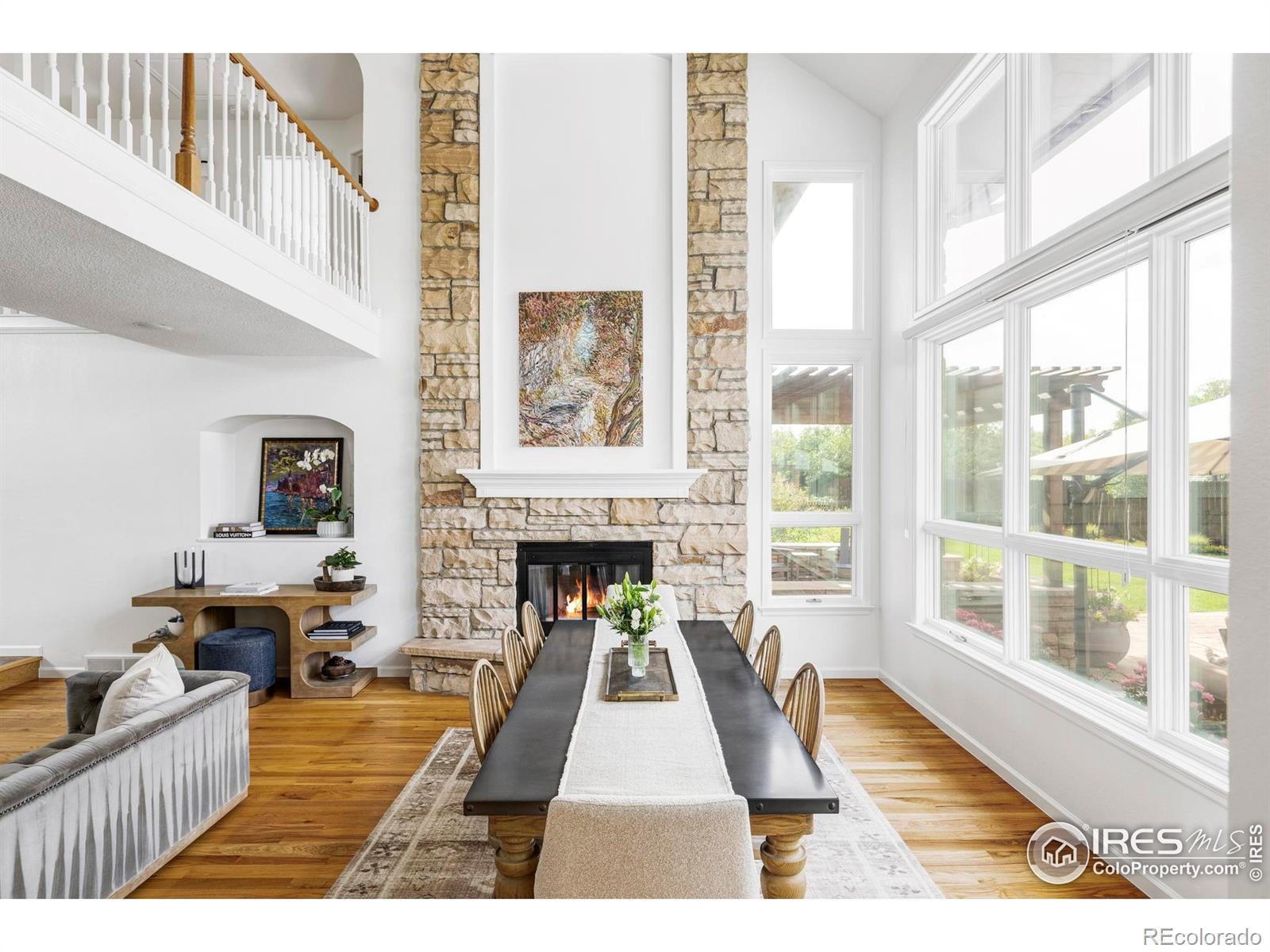 Set on a quiet street in The Reserve at Sombrero Ranch, this Tudor-inspired estate is framed by manicured gardens and timeless curb appeal. Resting on more than a half acre with mature trees, the home blends thoughtful updates and fresh finishes with outdoor spaces that evoke a private resort. Sunlight and serene garden views fill the interiors, creating a lifestyle rarely found in Boulder-elegant, welcoming, and evocative of California living. A double-door stone entry opens to soaring ceilings and light-filled gathering spaces. The family and dining rooms are anchored by a dramatic stone fireplace, while the gourmet kitchen with Wolf and Miele appliances and dual islands connects seamlessly to the backyard. A four-season sunroom with wet bar further extends the living space, opening to an outdoor dining patio. The main-level primary suite opens to a pergola-covered patio with Flatiron views and direct pool access, complemented by a spa-inspired bathroom with dual vanities, soaking tub, steam shower, and custom walk-in closet. Upstairs, the southwest-facing office and a secondary bedroom frame Flatiron views. Two additional bedrooms, including a spacious en suite, are offered along with a well-appointed bathroom. A vaulted bonus wing above the garage provides flexible space for guests or recreation.The backyard is the true showpiece: a sparkling heated saltwater pool surrounded by stone patios, a built-in BBQ and dining area, lounge with outdoor fireplace, and a pergola-covered hot tub. Terraces and winding paths meander through lush gardens of roses, lavender, hydrangea, and a chef's vegetable garden. Designed for privacy and year-round enjoyment, the outdoor spaces invite everything from lively gatherings to peaceful mornings with coffee in the garden, all set against Boulder's stunning mountain backdrop.Residents of The Reserve enjoy a renovated clubhouse, pool, and tennis/pickleball courts, with golf, open space, and Downtown Boulder just minutes away.