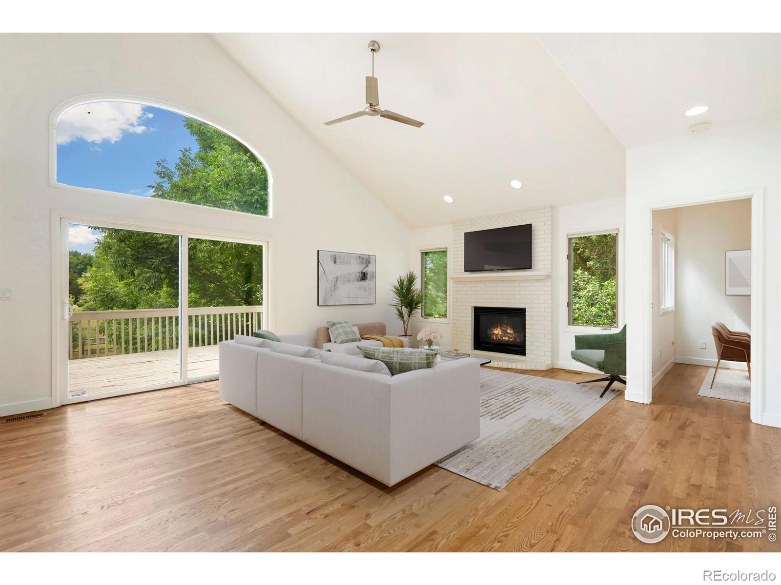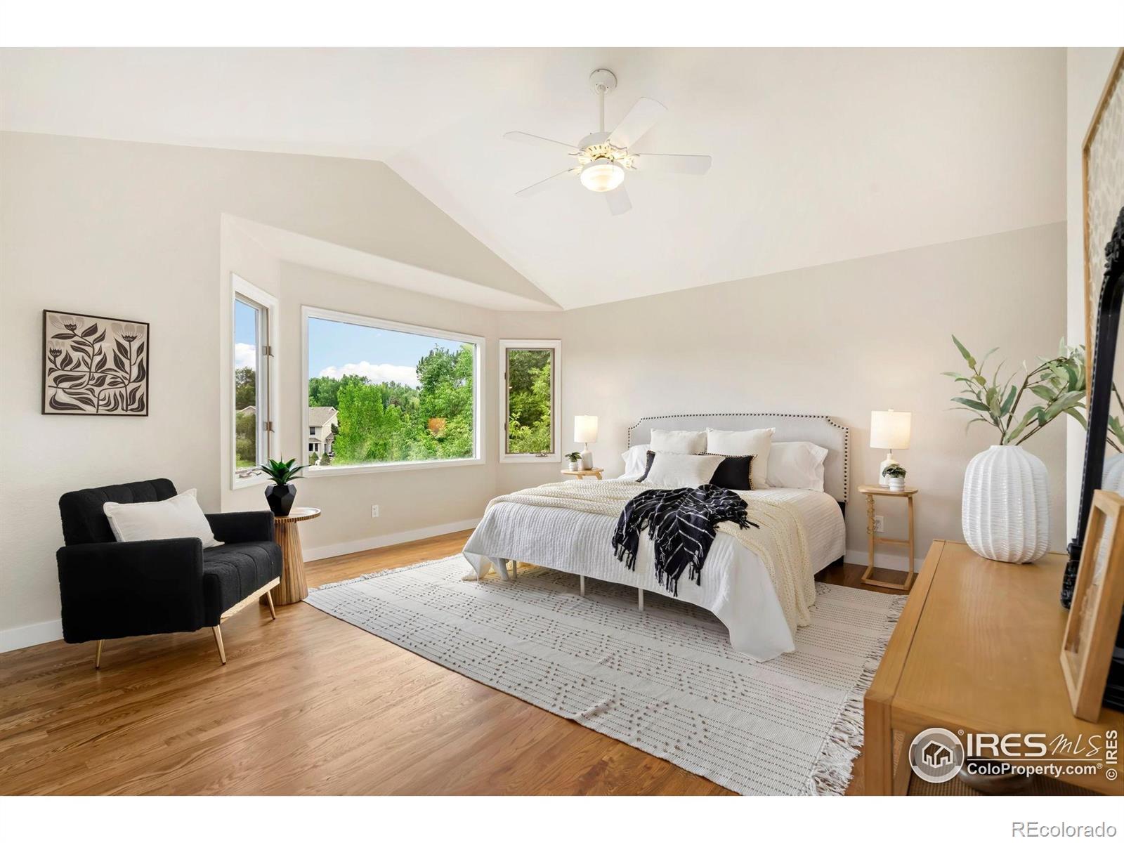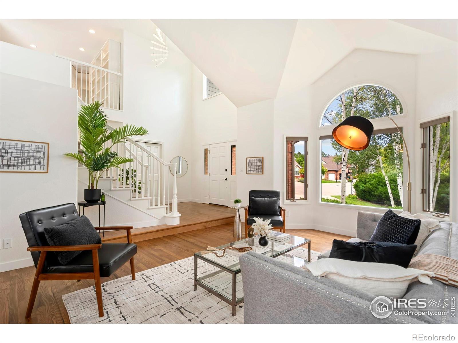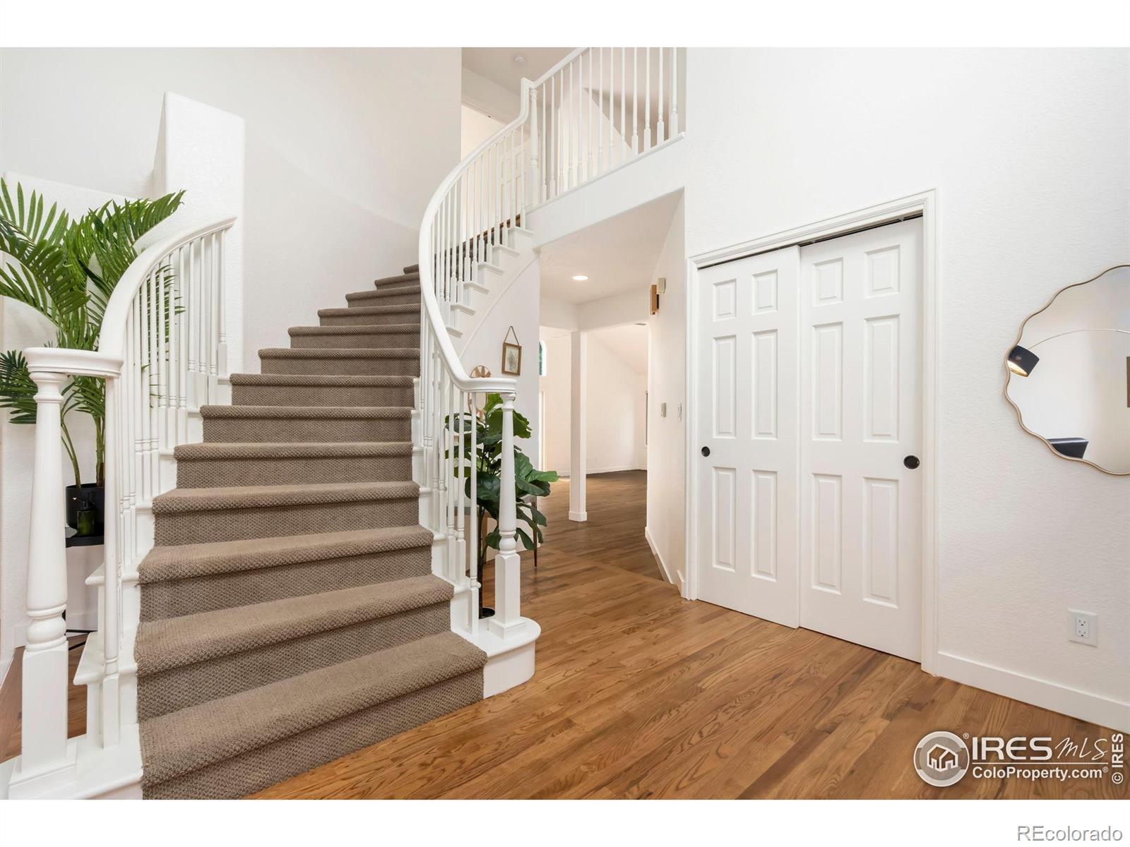 Now is your chance to own a rare Clarendon Hills treasure-nestled at the end of a quiet cul-de-sac on a .61-acre lot with mountain views and Fossil Creek just beyond the backyard. This 4,651 sq ft home blends timeless elegance with modern comfort, offering sun-filled living spaces, custom details, and a setting that feels private yet connected to the best of Fort Collins. From the moment you arrive, the mature trees and landscaping set the tone for something special. Step inside and you're greeted by soaring cathedral ceilings, a dramatic curved staircase, and freshly refinished hardwood floors that flow throughout the main level. The chef's kitchen is a showpiece with custom walnut cabinetry, high-end Wolf gas range and steam oven, and seamless flow into the family room with a gas fireplace and oversized windows to frame the yard and mountain views. A formal dining room, bright living room, and main-floor office/bedroom with attached bath round out the thoughtful layout. Upstairs, the loft connects four bedrooms, including a primary retreat with vaulted ceilings, a private deck, and a luxurious five-piece bath. Hardwood floors run through every upper bedroom, with a skylight adding warmth and light to the shared bathroom. The walkout basement provides flexible space for a rec room, game room, or studio, plus a full bedroom, bathroom, and abundant storage. Outside, entertain on the expansive deck overlooking a fenced yard, garden boxes, and open space-perfect for Colorado evenings. With access to trails, and a quick drive to Horsetooth Reservoir and Old Town Fort Collins, this home offers the rare combination of privacy, community, and lifestyle. A place to live beautifully, entertain effortlessly, and feel at home every day.
