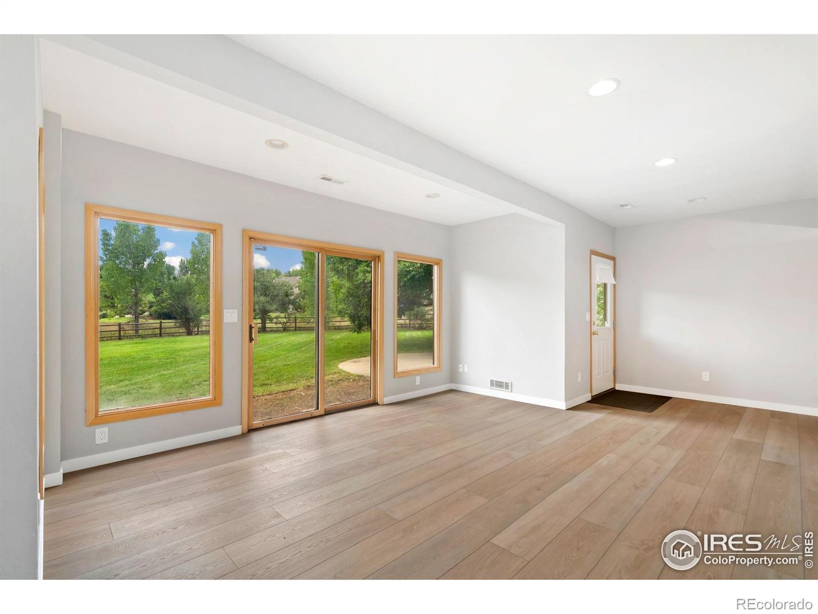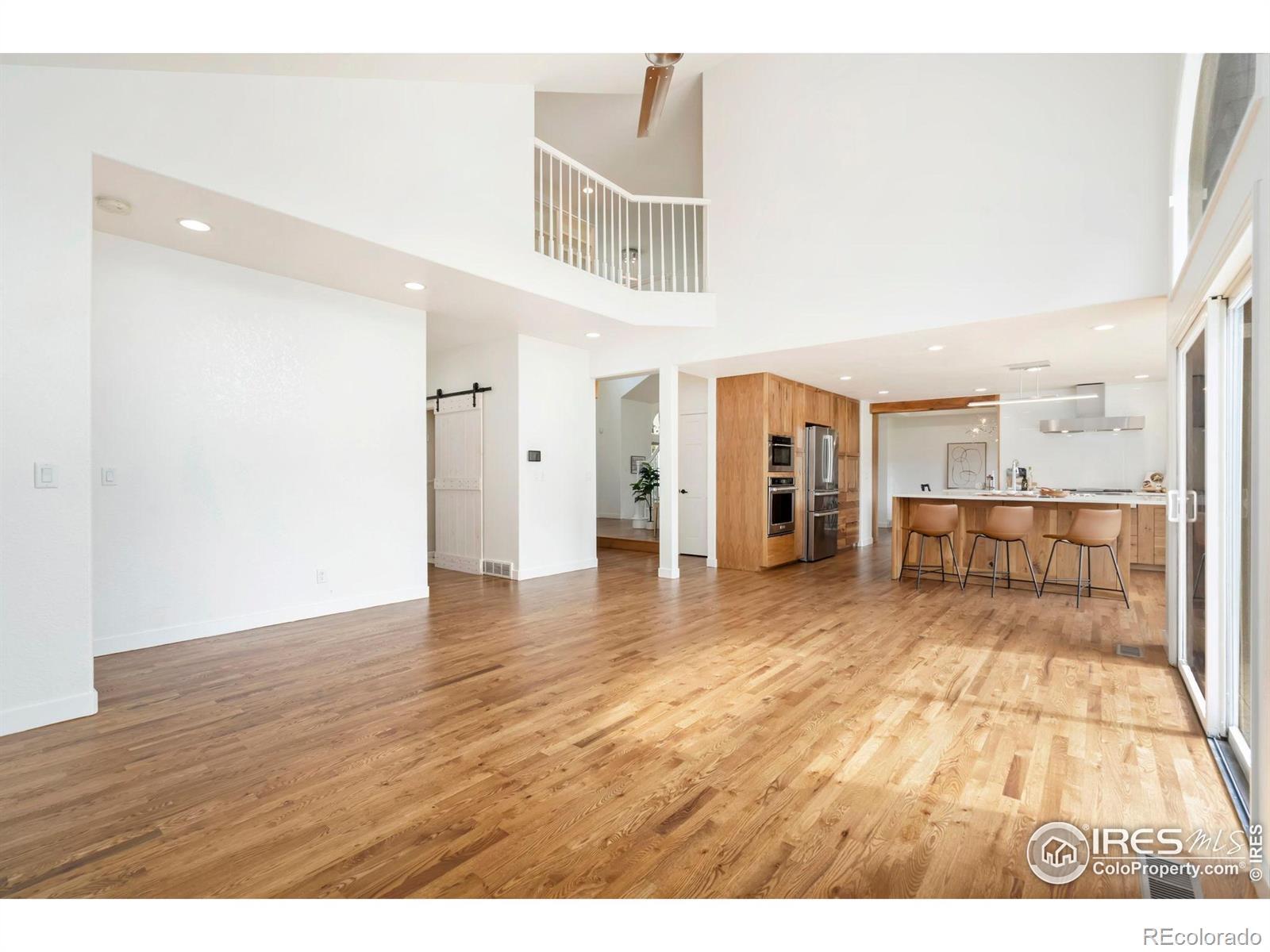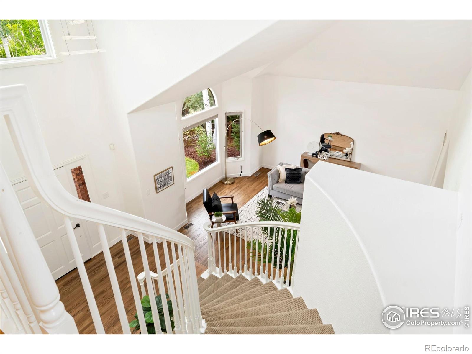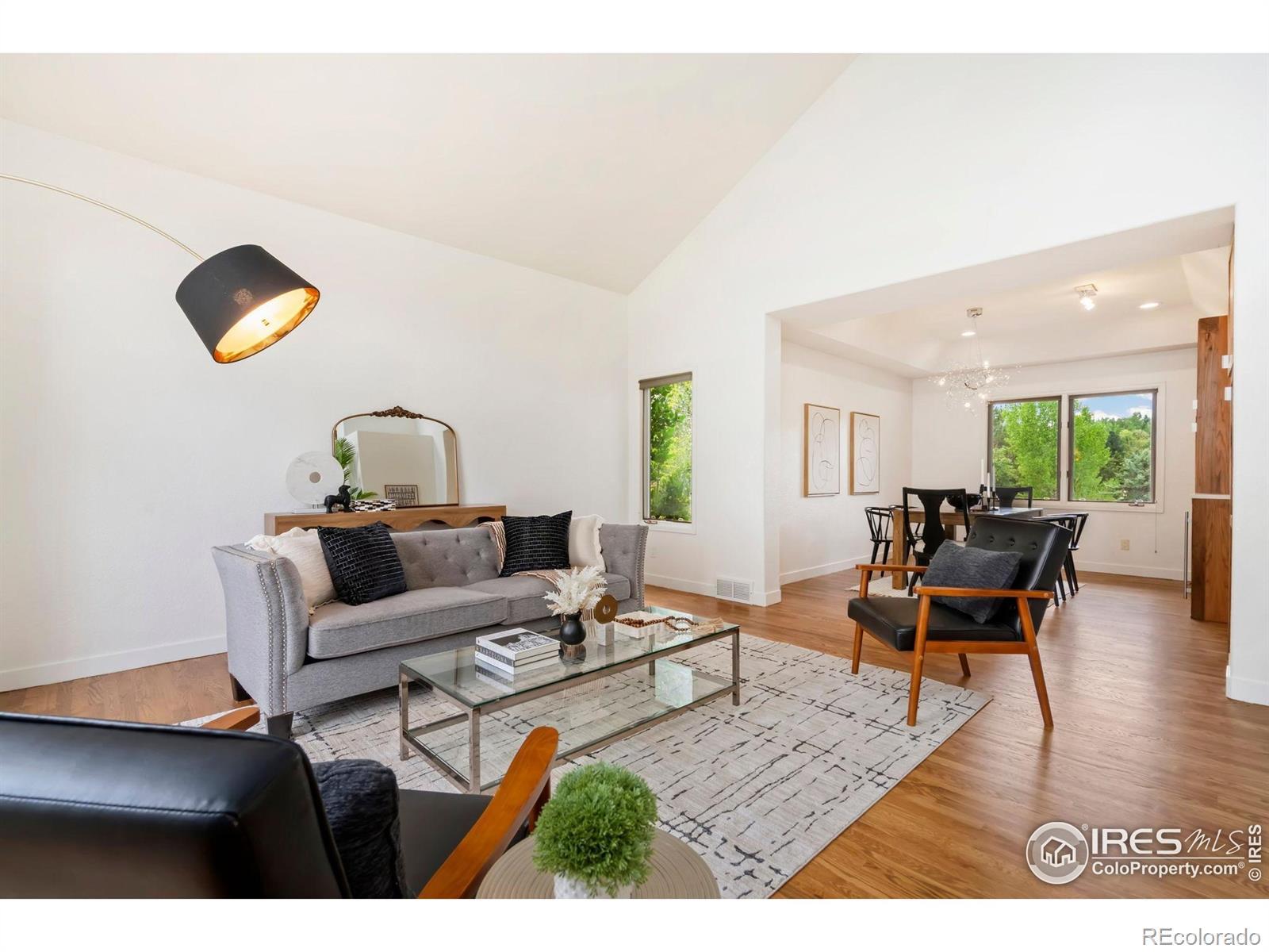 Now is your chance to own a rare Clarendon Hills treasure-nestled at the end of a quiet cul-de-sac on a .61-acre lot with mountain views and Fossil Creek just beyond the backyard. This 4,651 sq ft home blends timeless elegance with modern comfort, offering sun-filled living spaces, custom details, and a setting that feels private yet connected to the best of Fort Collins. From the moment you arrive, the mature trees and landscaping set the tone for something special. Step inside and you're greeted by soaring cathedral ceilings, a dramatic curved staircase, and freshly refinished hardwood floors that flow throughout the main level. The chef's kitchen is a showpiece with custom walnut cabinetry, high-end Wolf gas range and steam oven, and seamless flow into the family room with a gas fireplace and oversized windows to frame the yard and mountain views. A formal dining room, bright living room, and main-floor office/bedroom with attached bath round out the thoughtful layout. Upstairs, the loft connects four bedrooms, including a primary retreat with vaulted ceilings, a private deck, and a luxurious five-piece bath. Hardwood floors run through every upper bedroom, with a skylight adding warmth and light to the shared bathroom. The walkout basement provides flexible space for a rec room, game room, or studio, plus a full bedroom, bathroom, and abundant storage. Outside, entertain on the expansive deck overlooking a fenced yard, garden boxes, and open space-perfect for Colorado evenings. With access to trails, and a quick drive to Horsetooth Reservoir and Old Town Fort Collins, this home offers the rare combination of privacy, community, and lifestyle. A place to live beautifully, entertain effortlessly, and feel at home every day.