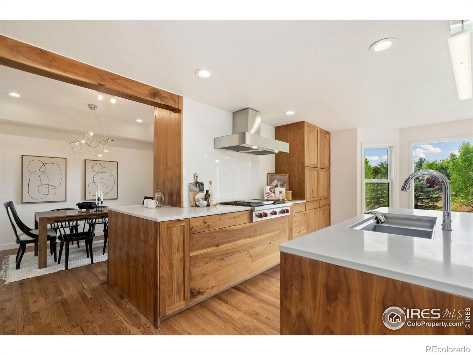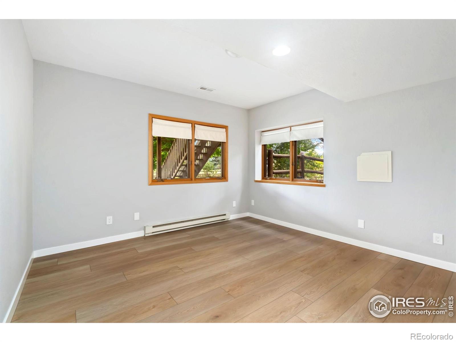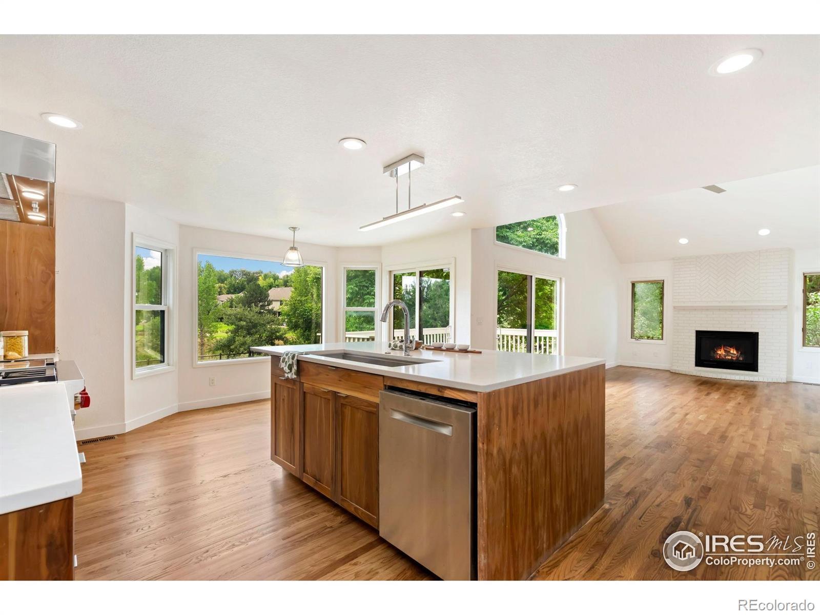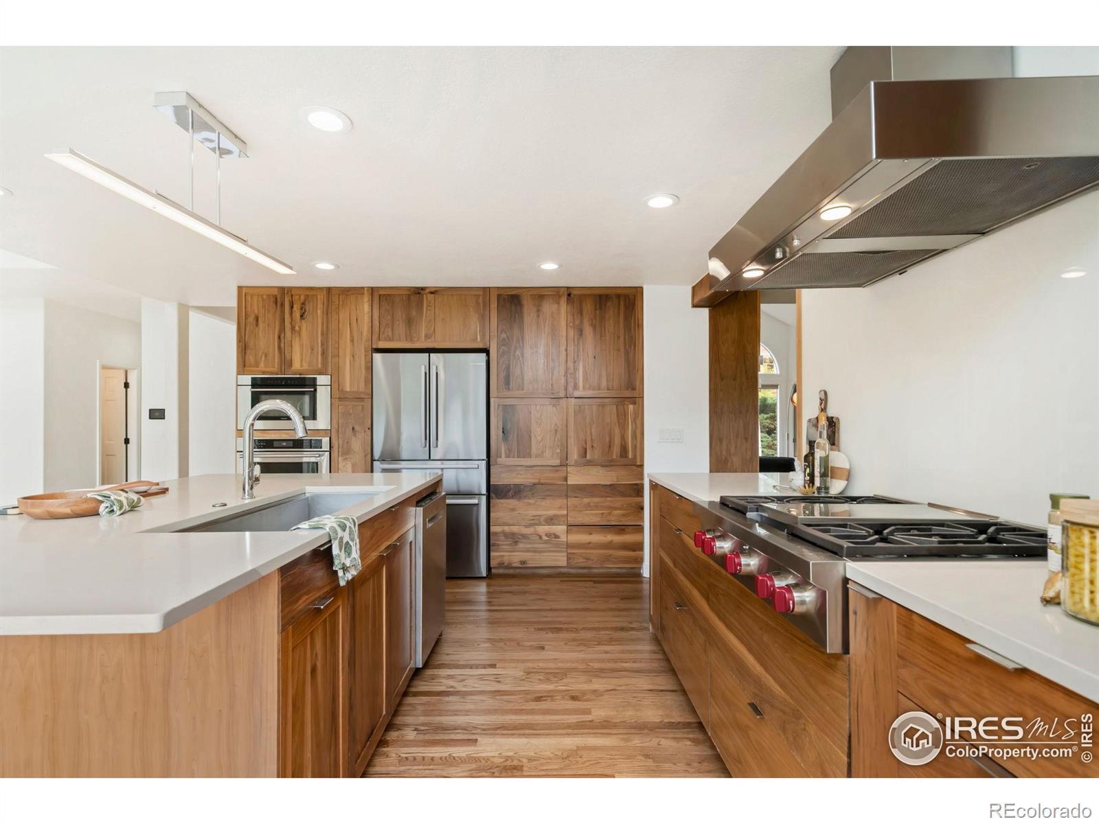 Now is your chance to own a rare Clarendon Hills treasure-nestled at the end of a quiet cul-de-sac on a .61-acre lot with mountain views and Fossil Creek just beyond the backyard. This 4,651 sq ft home blends timeless elegance with modern comfort, offering sun-filled living spaces, custom details, and a setting that feels private yet connected to the best of Fort Collins. From the moment you arrive, the mature trees and landscaping set the tone for something special. Step inside and you're greeted by soaring cathedral ceilings, a dramatic curved staircase, and freshly refinished hardwood floors that flow throughout the main level. The chef's kitchen is a showpiece with custom walnut cabinetry, high-end Wolf gas range and steam oven, and seamless flow into the family room with a gas fireplace and oversized windows to frame the yard and mountain views. A formal dining room, bright living room, and main-floor office/bedroom with attached bath round out the thoughtful layout. Upstairs, the loft connects four bedrooms, including a primary retreat with vaulted ceilings, a private deck, and a luxurious five-piece bath. Hardwood floors run through every upper bedroom, with a skylight adding warmth and light to the shared bathroom. The walkout basement provides flexible space for a rec room, game room, or studio, plus a full bedroom, bathroom, and abundant storage. Outside, entertain on the expansive deck overlooking a fenced yard, garden boxes, and open space-perfect for Colorado evenings. With access to trails, and a quick drive to Horsetooth Reservoir and Old Town Fort Collins, this home offers the rare combination of privacy, community, and lifestyle. A place to live beautifully, entertain effortlessly, and feel at home every day.