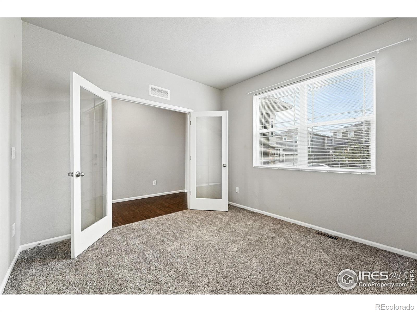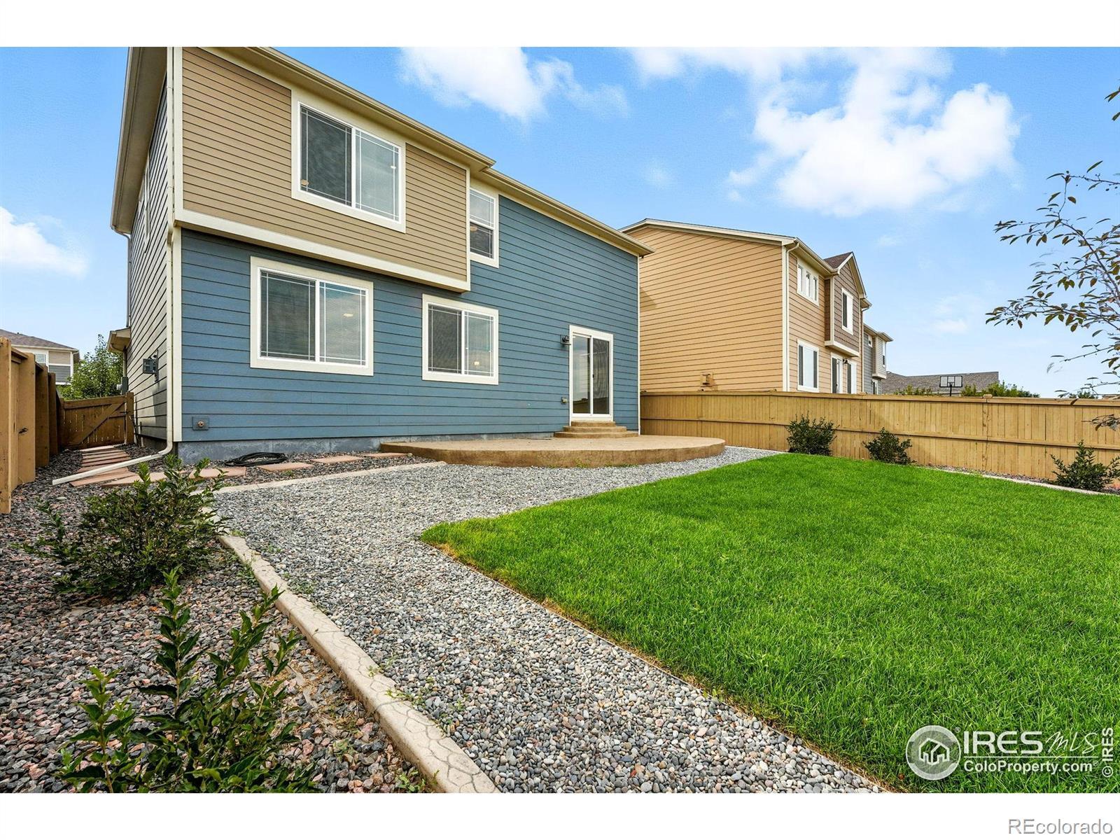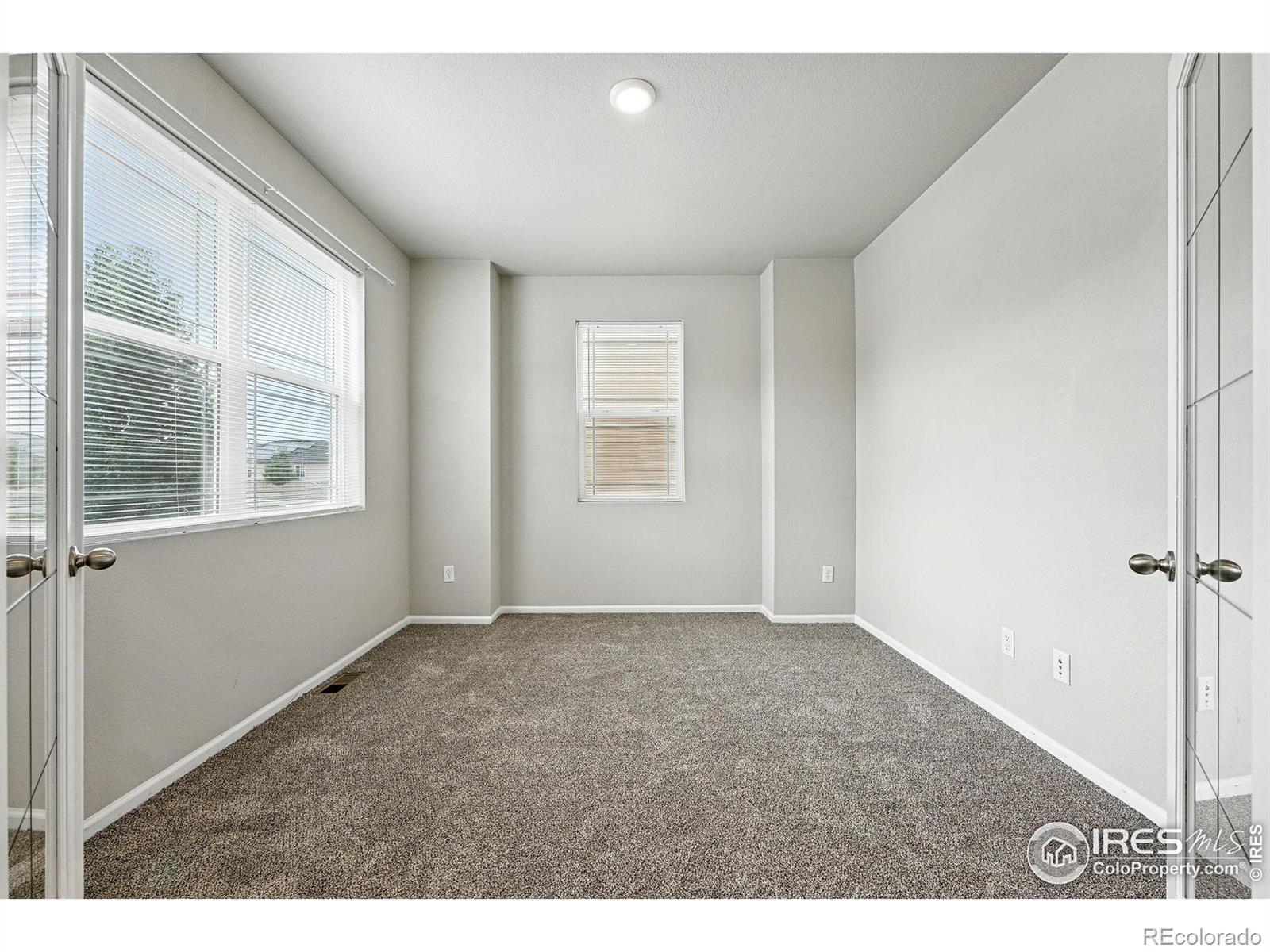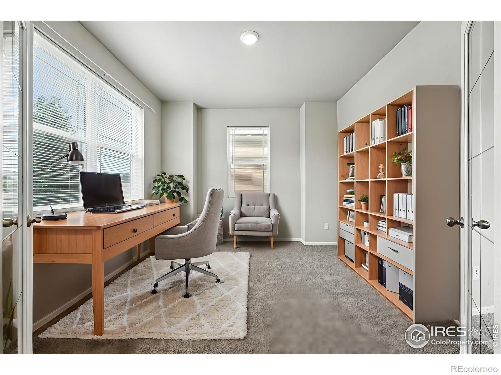 Sleek and efficient, this 2021 Harvest Junction home pairs modern design with smart energy features! Just minutes from restaurants, Costco, and the Longmont Rec Center, as well as quick access to 287, the location is ideal for convenience and access to surrounding areas. The home features soaring 9ft+ ceilings, LVP flooring, and an open layout. French doors off the entry open to a spacious office, offering an ideal work from home space. Sink into the living room and relax around the gas fireplace!. The bright kitchen is a highlight, offering a large island with seating, gas range, walk-in pantry, and access to the landscaped backyard. A mudroom off the two-car garage adds everyday functionality. Upstairs, the spacious primary suite includes a spa like bathroom with generous shower, double vanity and light-filled walk-in closet. Three additional bedrooms, a full bath and laundry, complete the level. The unfinished basement is ready for storage, fitness, or future finishing. Upgrades include a tankless water heater plus Meritage's energy-efficient design with UV-blocking windows, spray-foam insulation, and sealed ducts for comfort year-round. This home is not in a metro district - enjoy the benefit of a new home without the added cost!