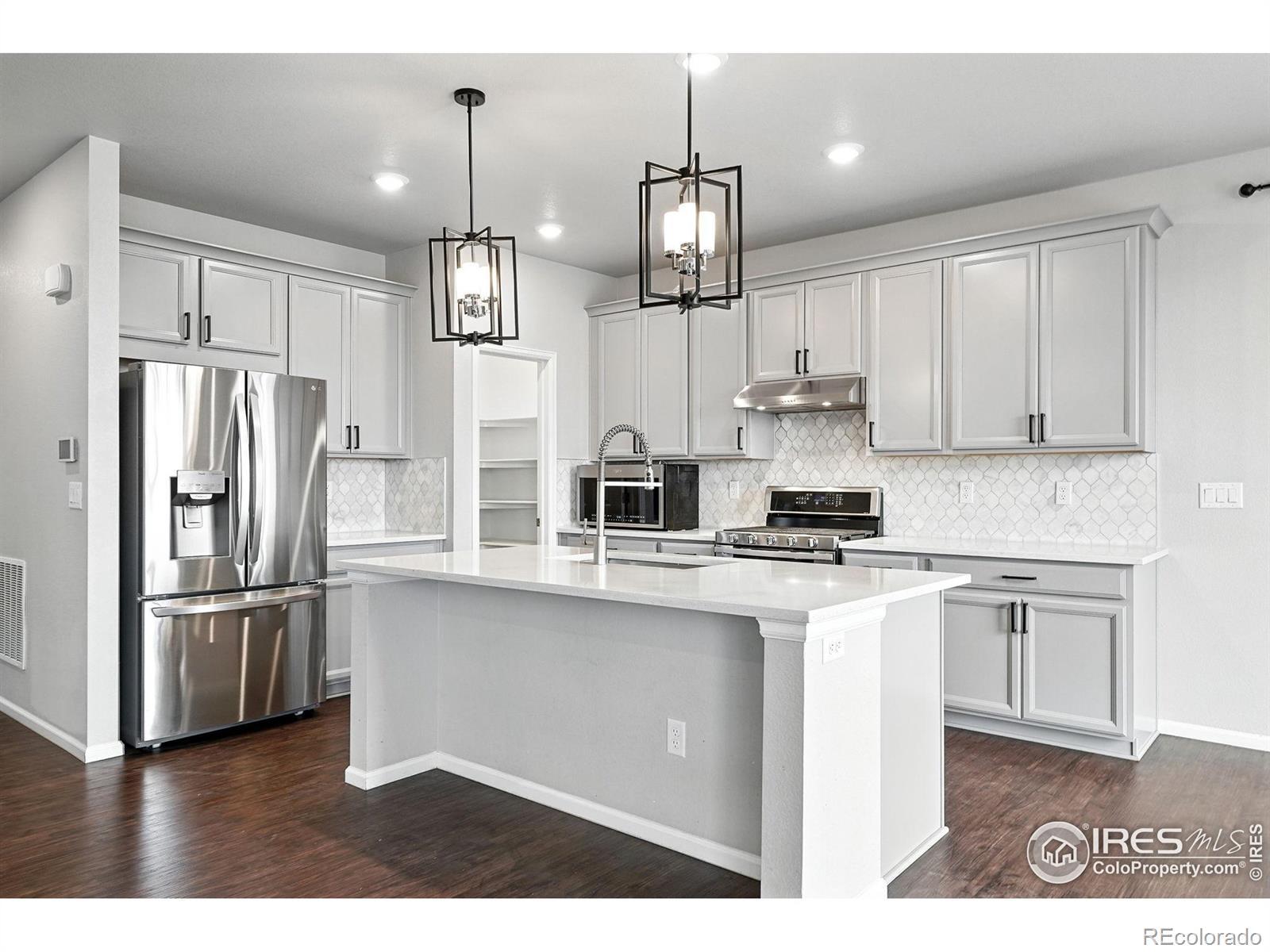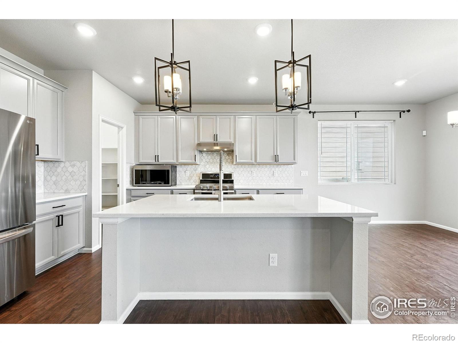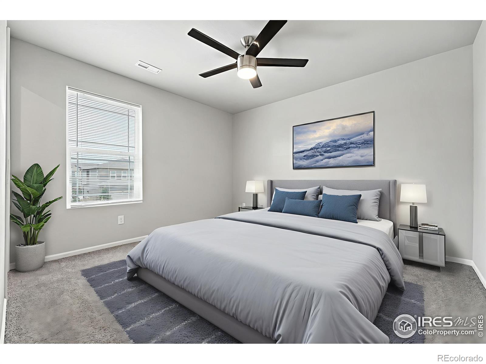 Sleek and efficient, this 2021 Harvest Junction home pairs modern design with smart energy features! Just minutes from restaurants, Costco, and the Longmont Rec Center, as well as quick access to 287, the location is ideal for convenience and access to surrounding areas. The home features soaring 9ft+ ceilings, LVP flooring, and an open layout. French doors off the entry open to a spacious office, offering an ideal work from home space. Sink into the living room and relax around the gas fireplace!. The bright kitchen is a highlight, offering a large island with seating, gas range, walk-in pantry, and access to the landscaped backyard. A mudroom off the two-car garage adds everyday functionality. Upstairs, the spacious primary suite includes a spa like bathroom with generous shower, double vanity and light-filled walk-in closet. Three additional bedrooms, a full bath and laundry, complete the level. The unfinished basement is ready for storage, fitness, or future finishing. Upgrades include a tankless water heater plus Meritage's energy-efficient design with UV-blocking windows, spray-foam insulation, and sealed ducts for comfort year-round. This home is not in a metro district - enjoy the benefit of a new home without the added cost!